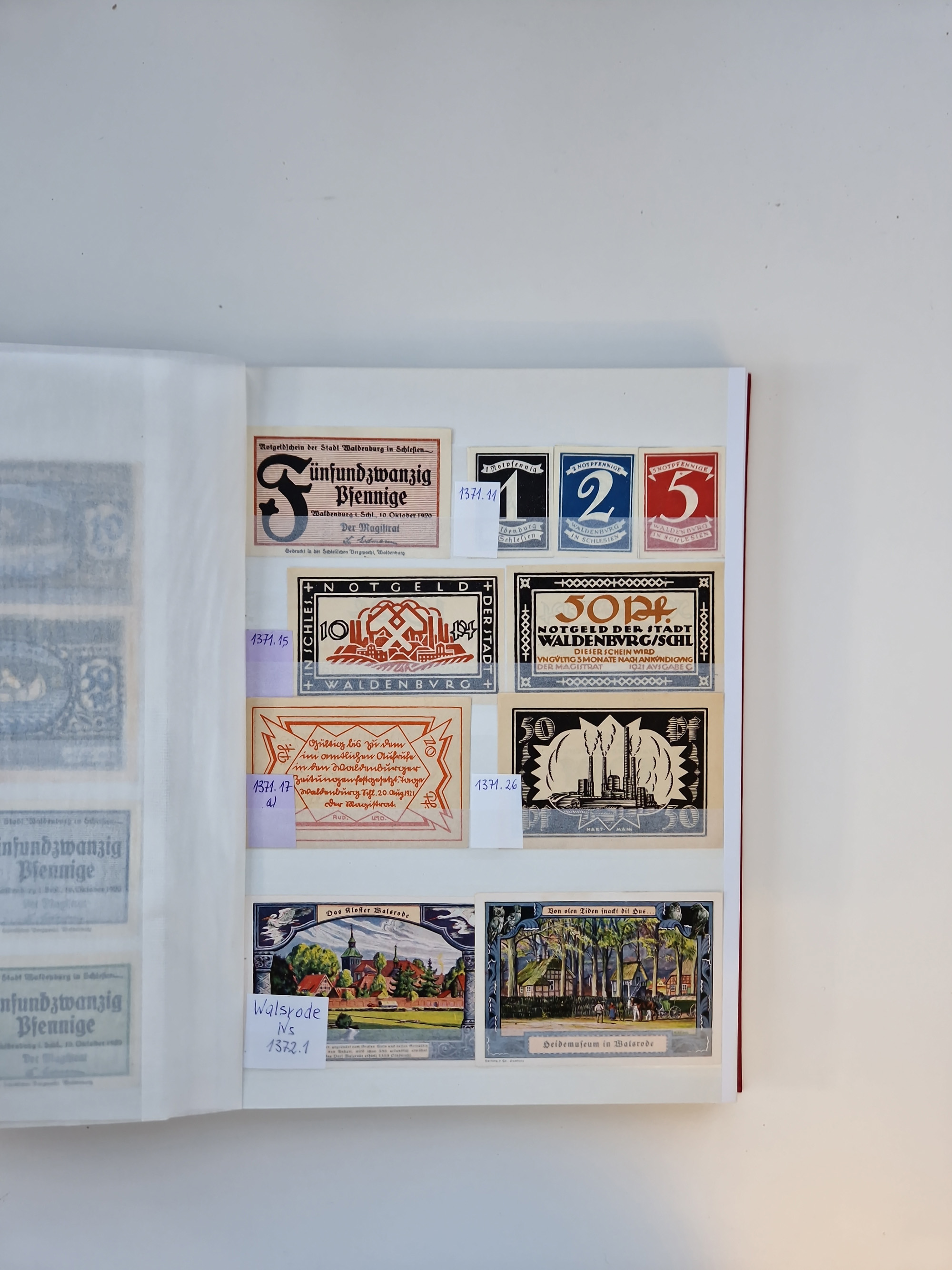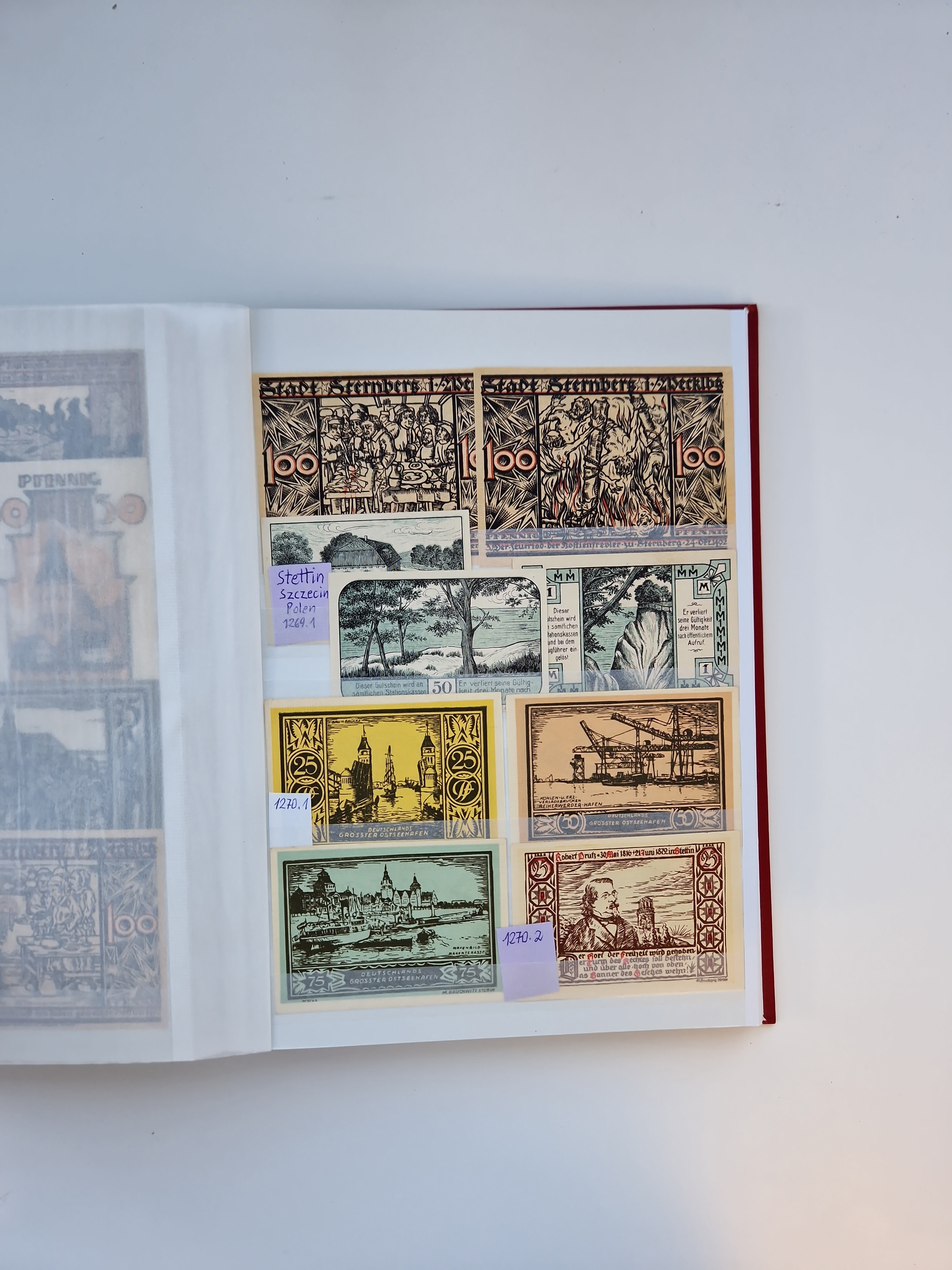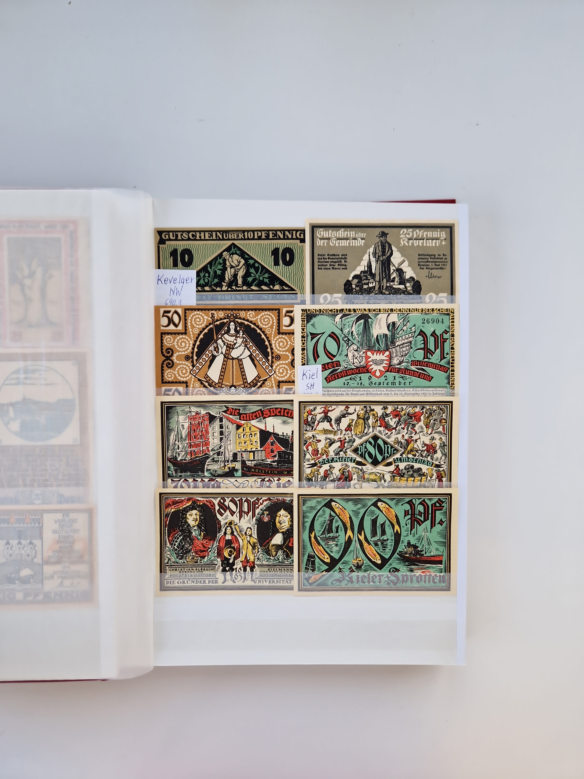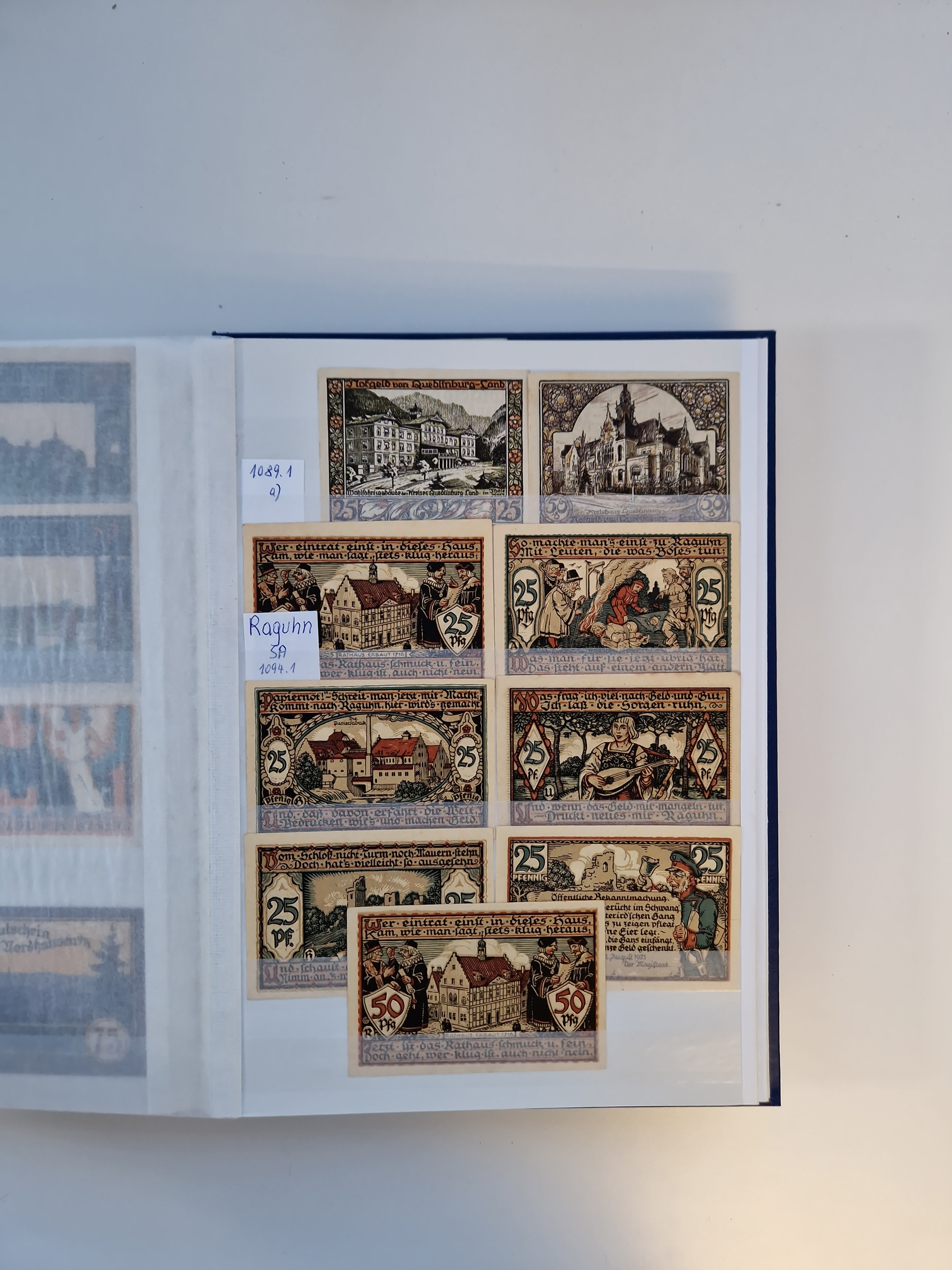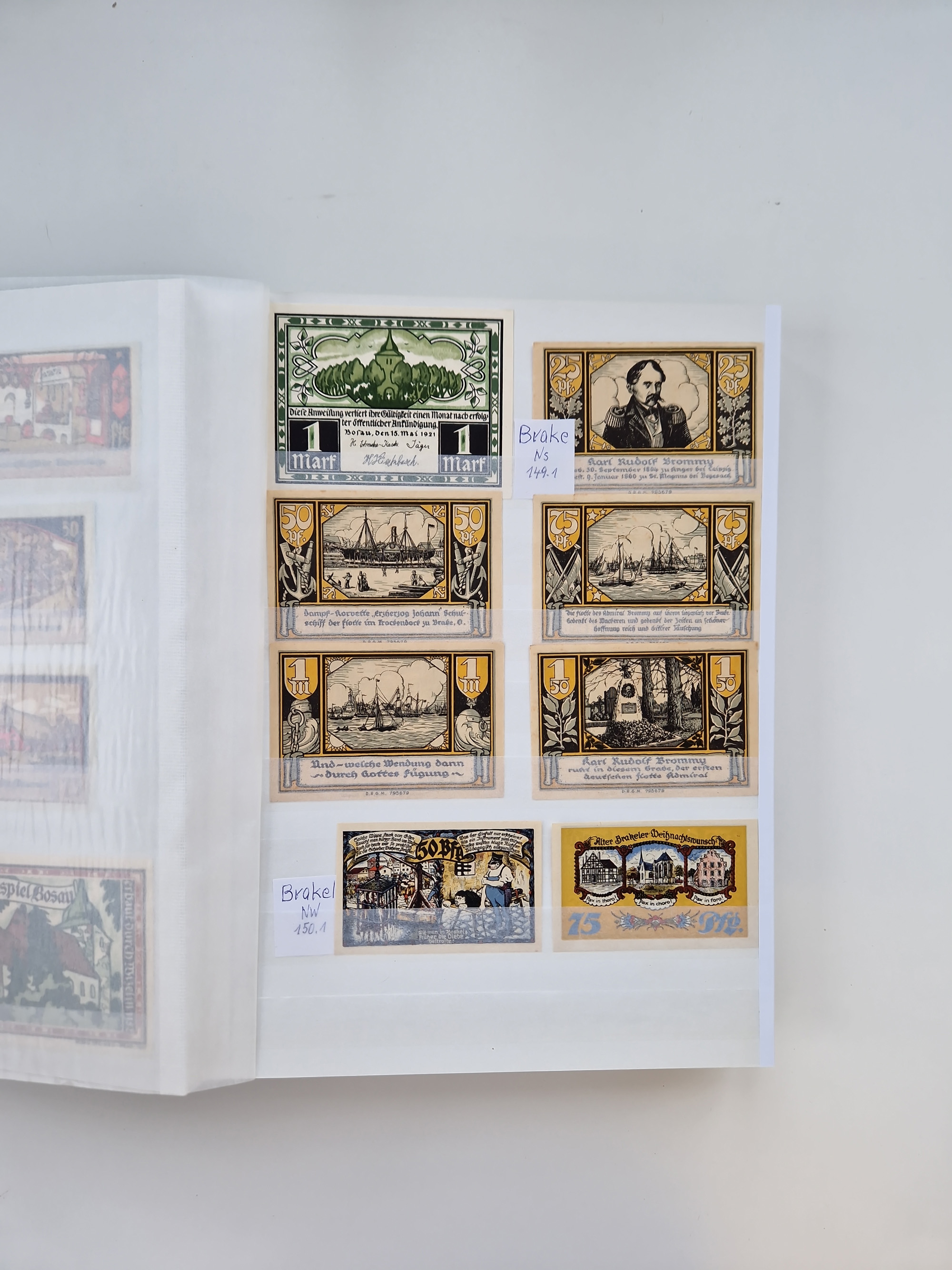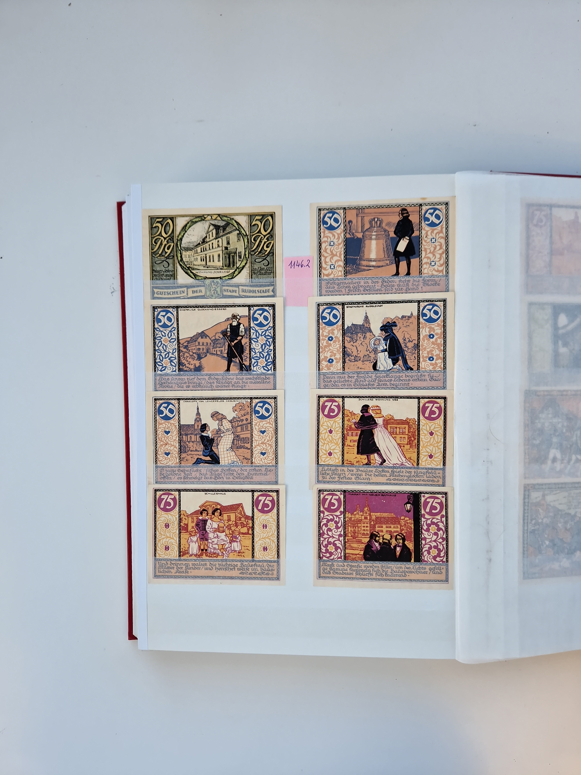 Notgeld-Serienscheine, saubere Sammlung in 16 meist dicken Steckalben, sauber nach Orten und Serien sortiert, überschlägig etwa 7/8000 Stück, dazu 4 Kataloge