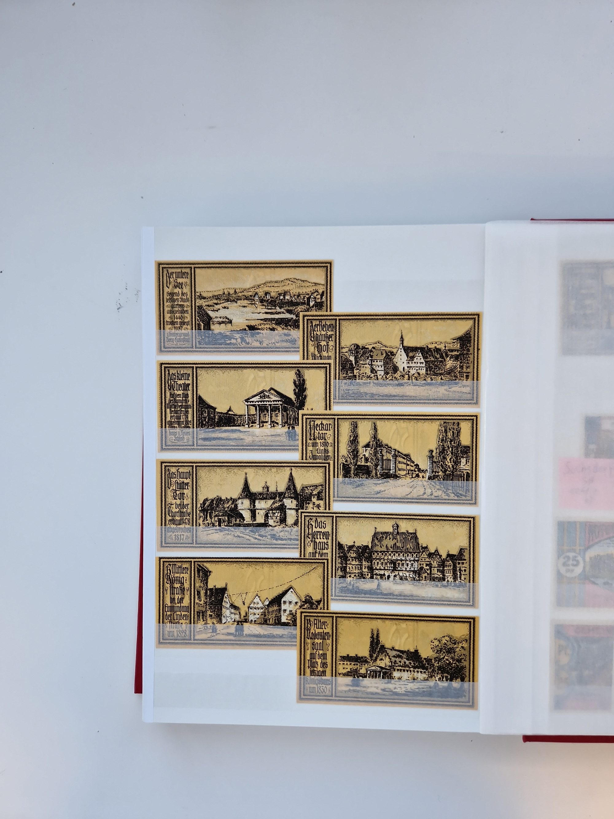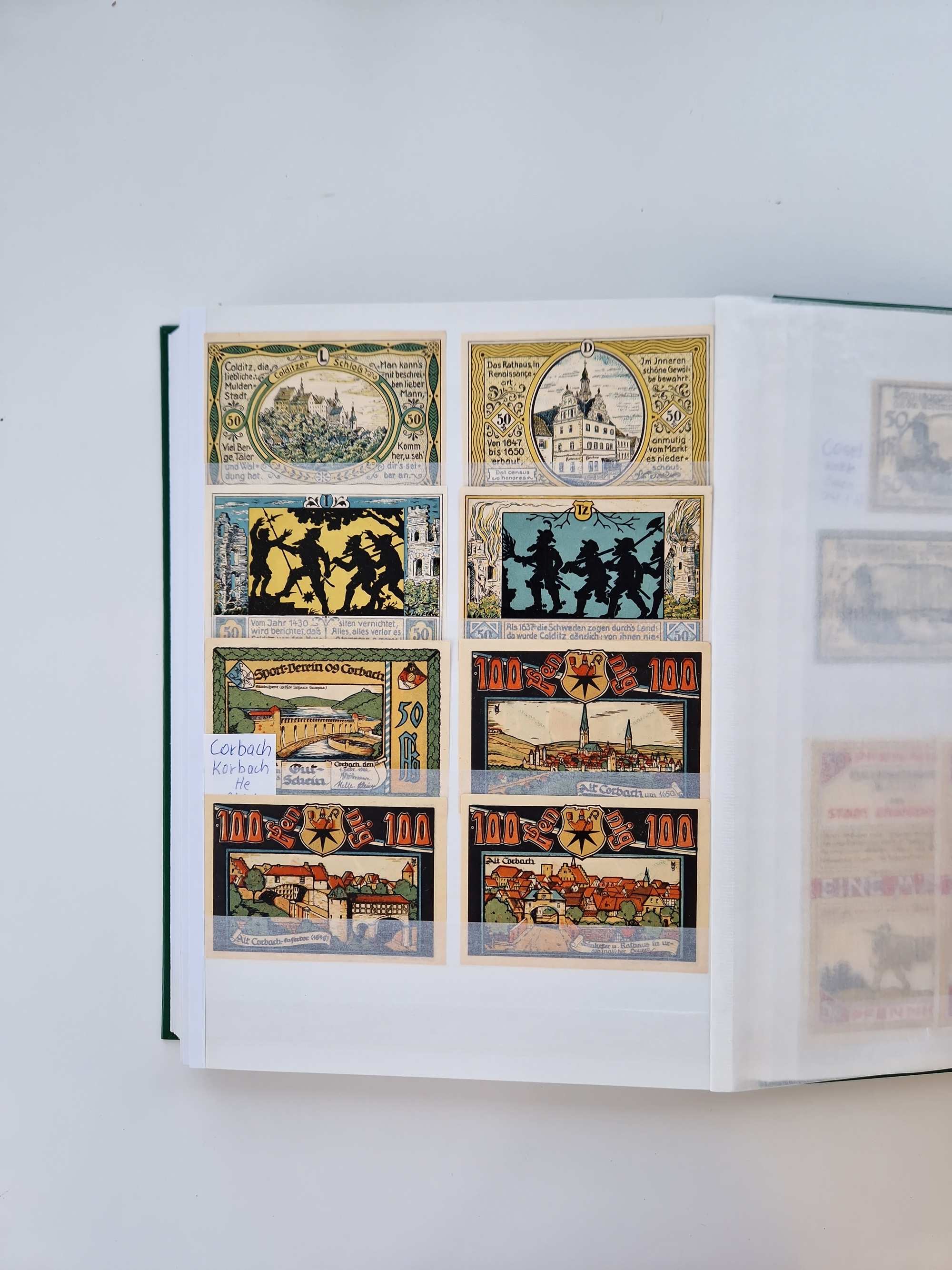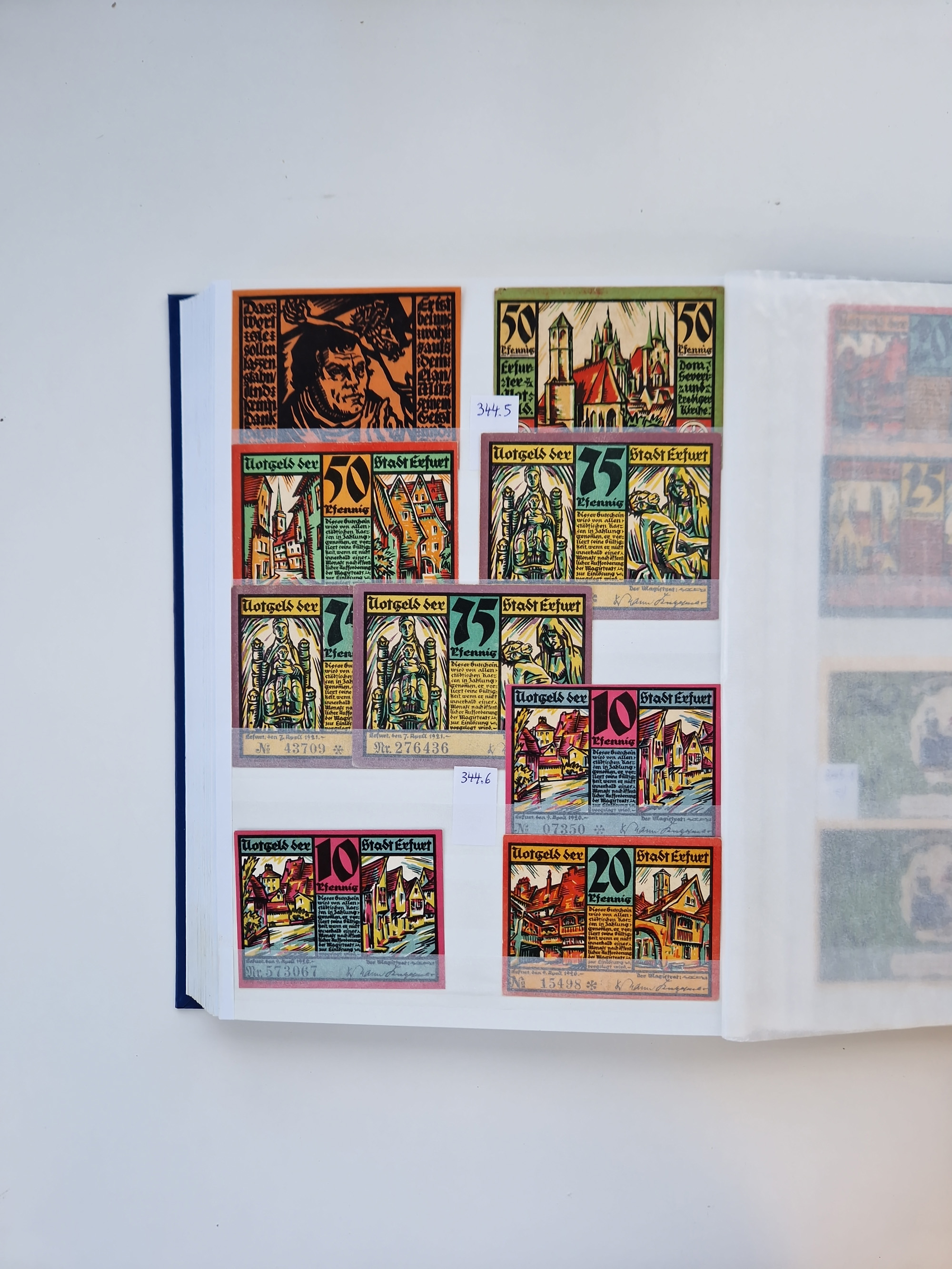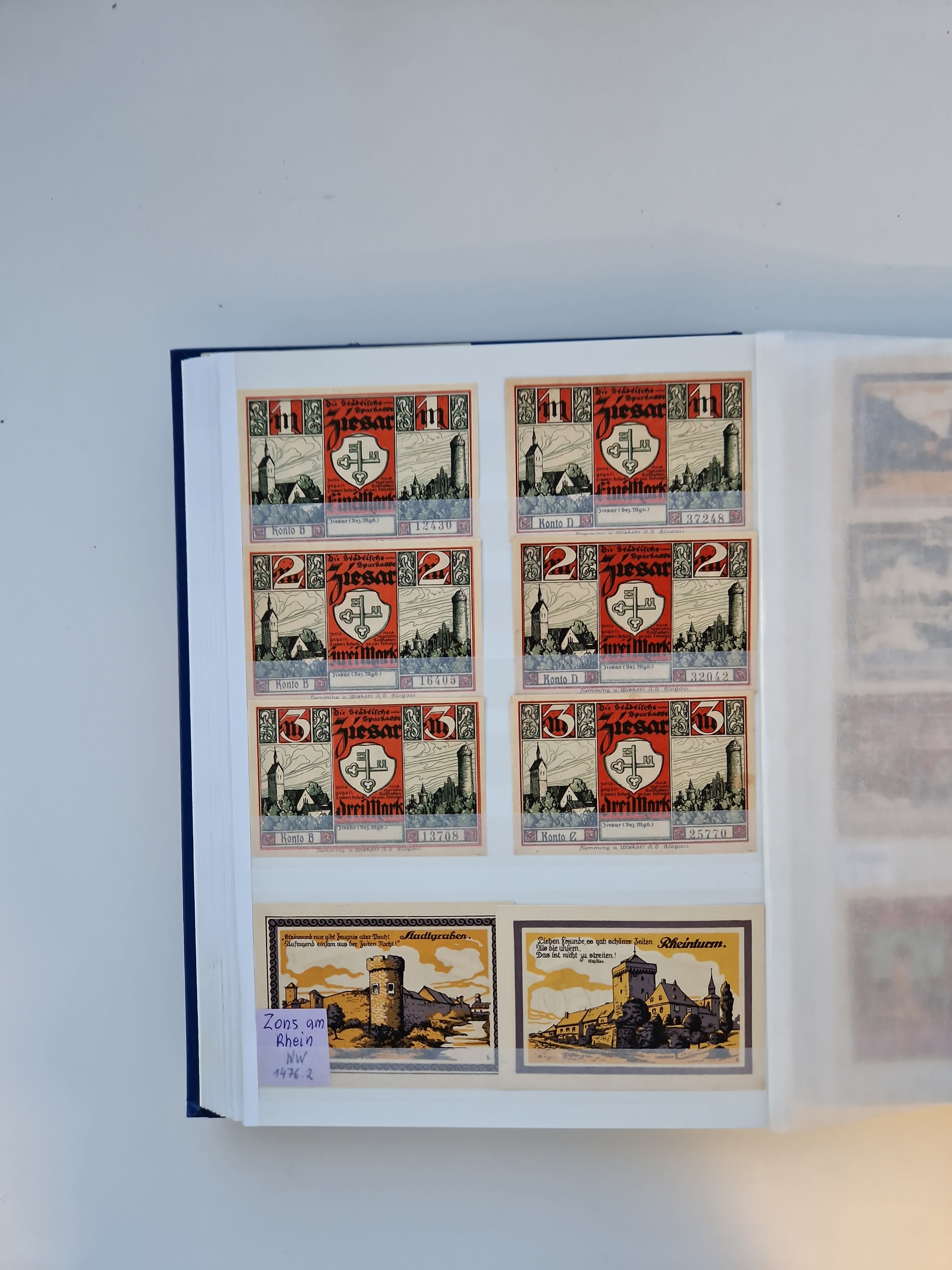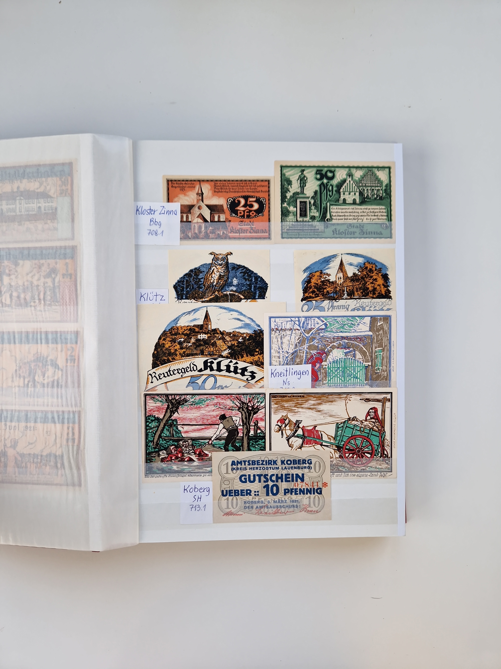 Notgeld-Serienscheine, saubere Sammlung in 16 meist dicken Steckalben, sauber nach Orten und Serien sortiert, überschlägig etwa 7/8000 Stück, dazu 4 Kataloge