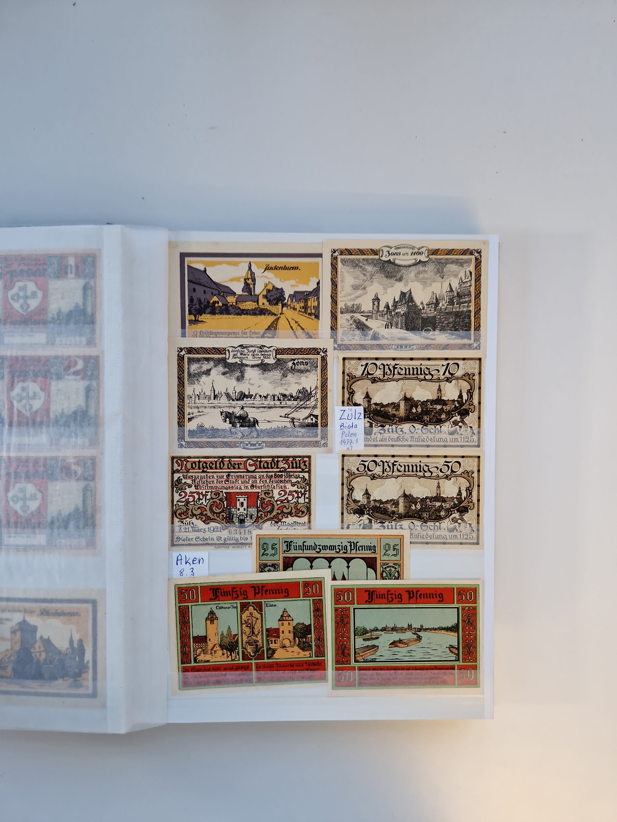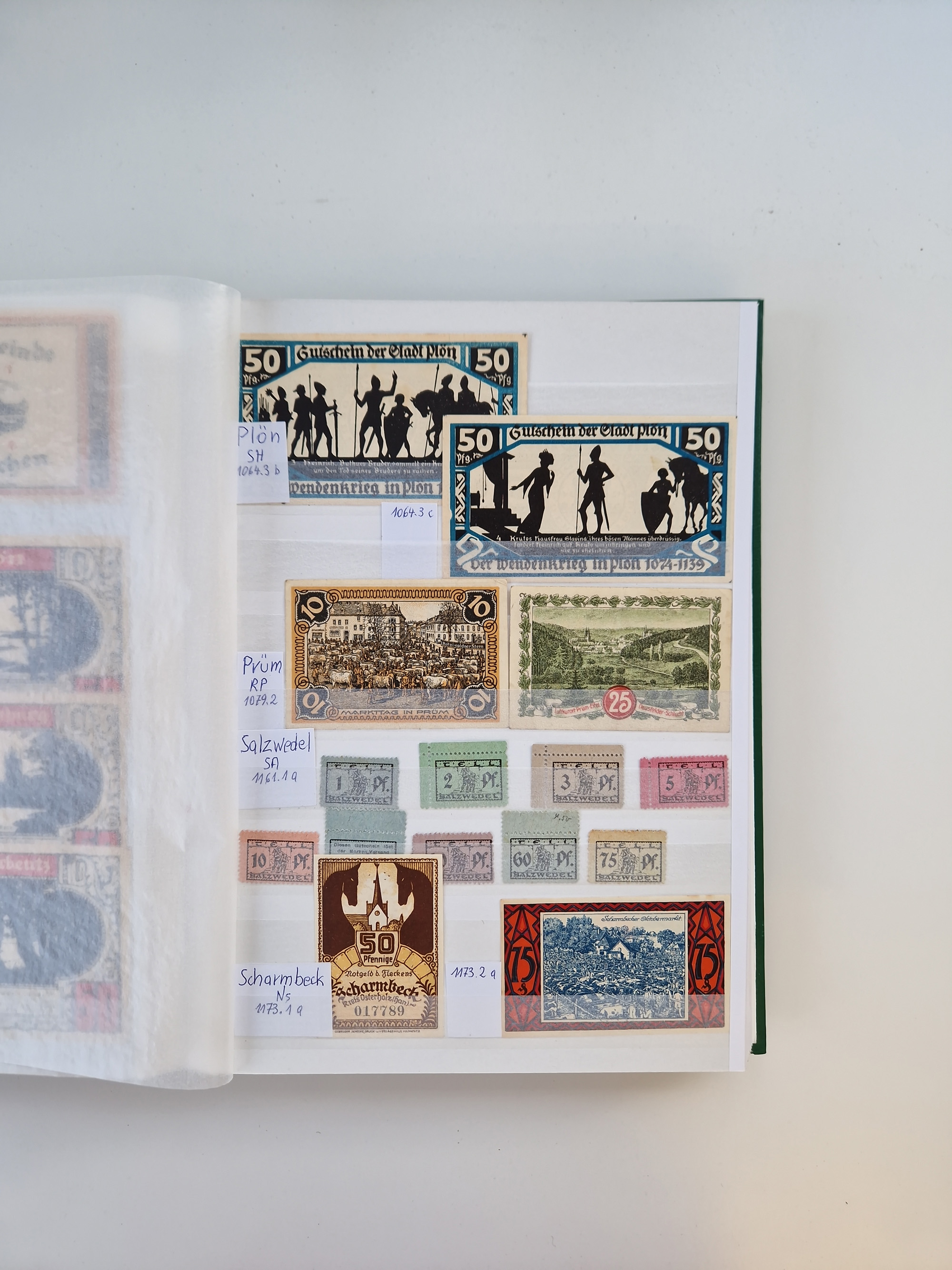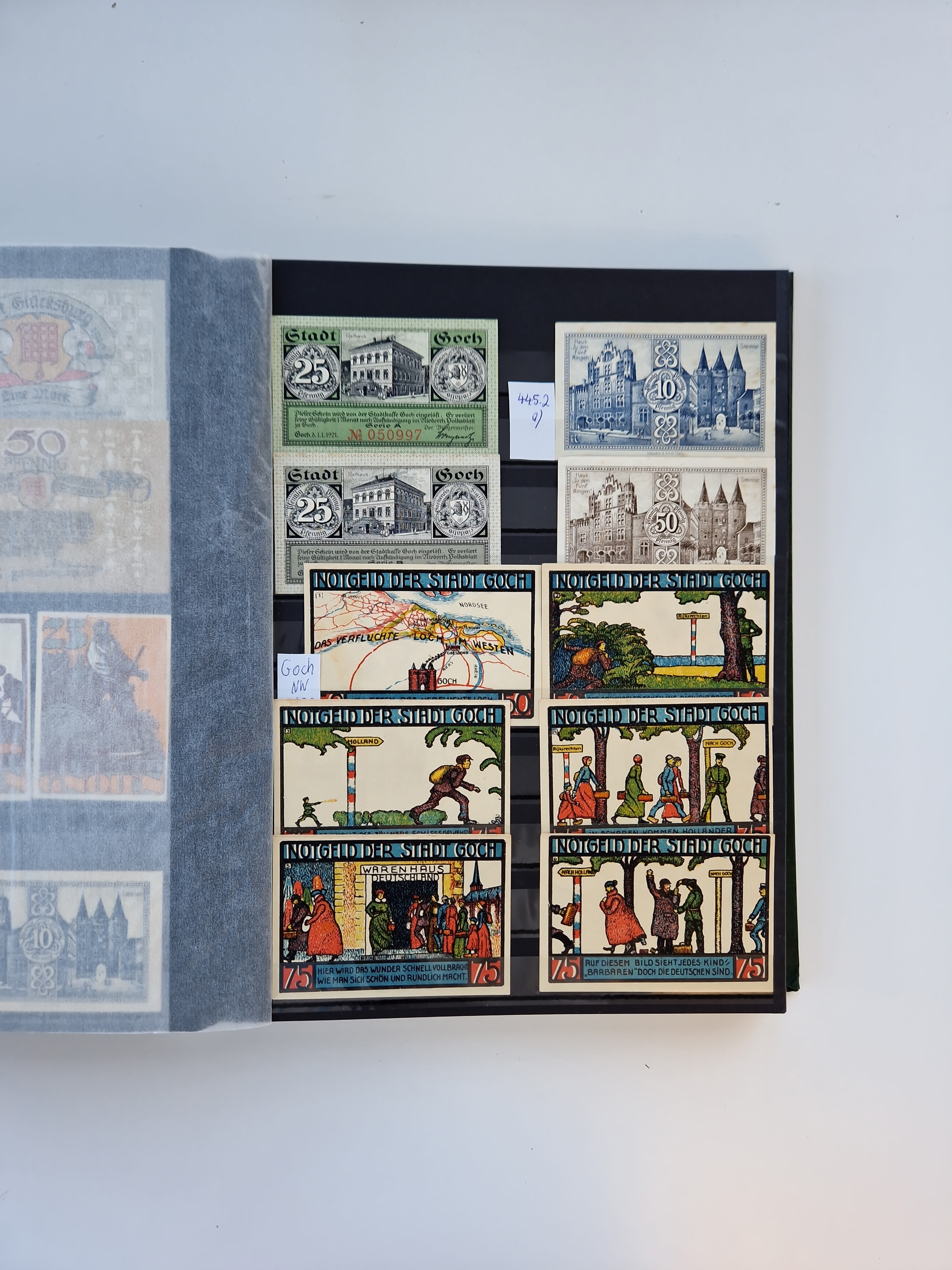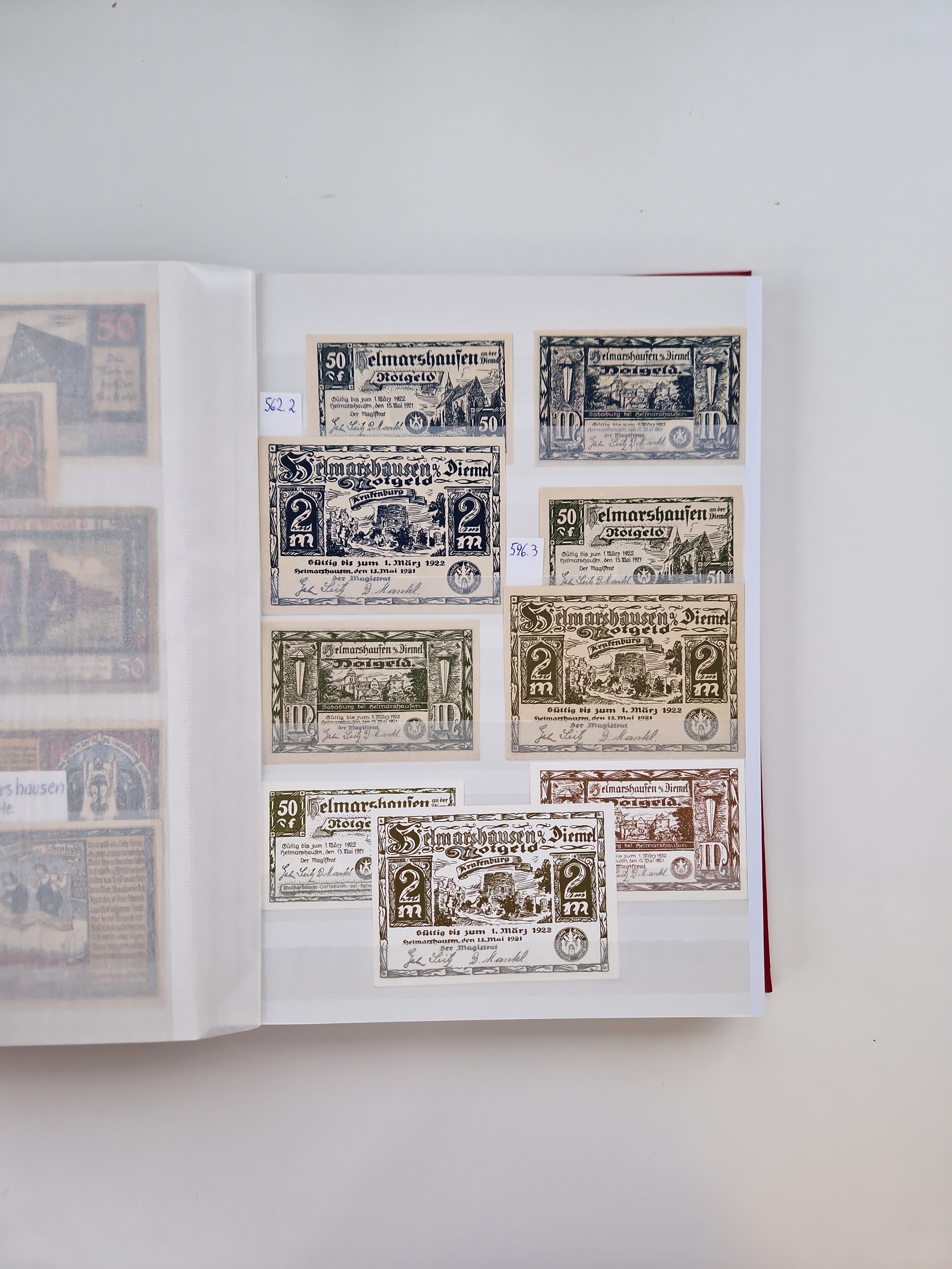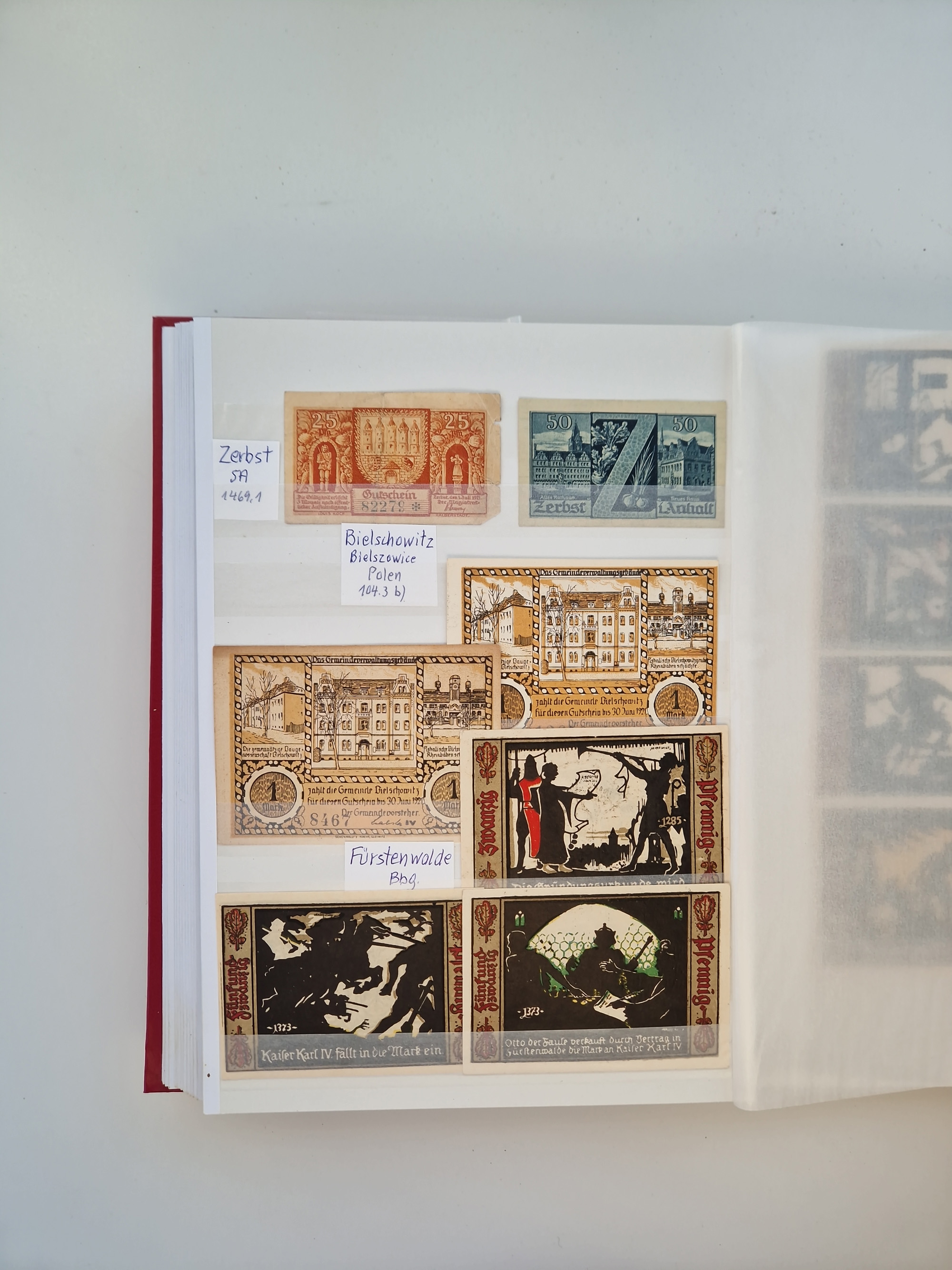 Notgeld-Serienscheine, saubere Sammlung in 16 meist dicken Steckalben, sauber nach Orten und Serien sortiert, überschlägig etwa 7/8000 Stück, dazu 4 Kataloge