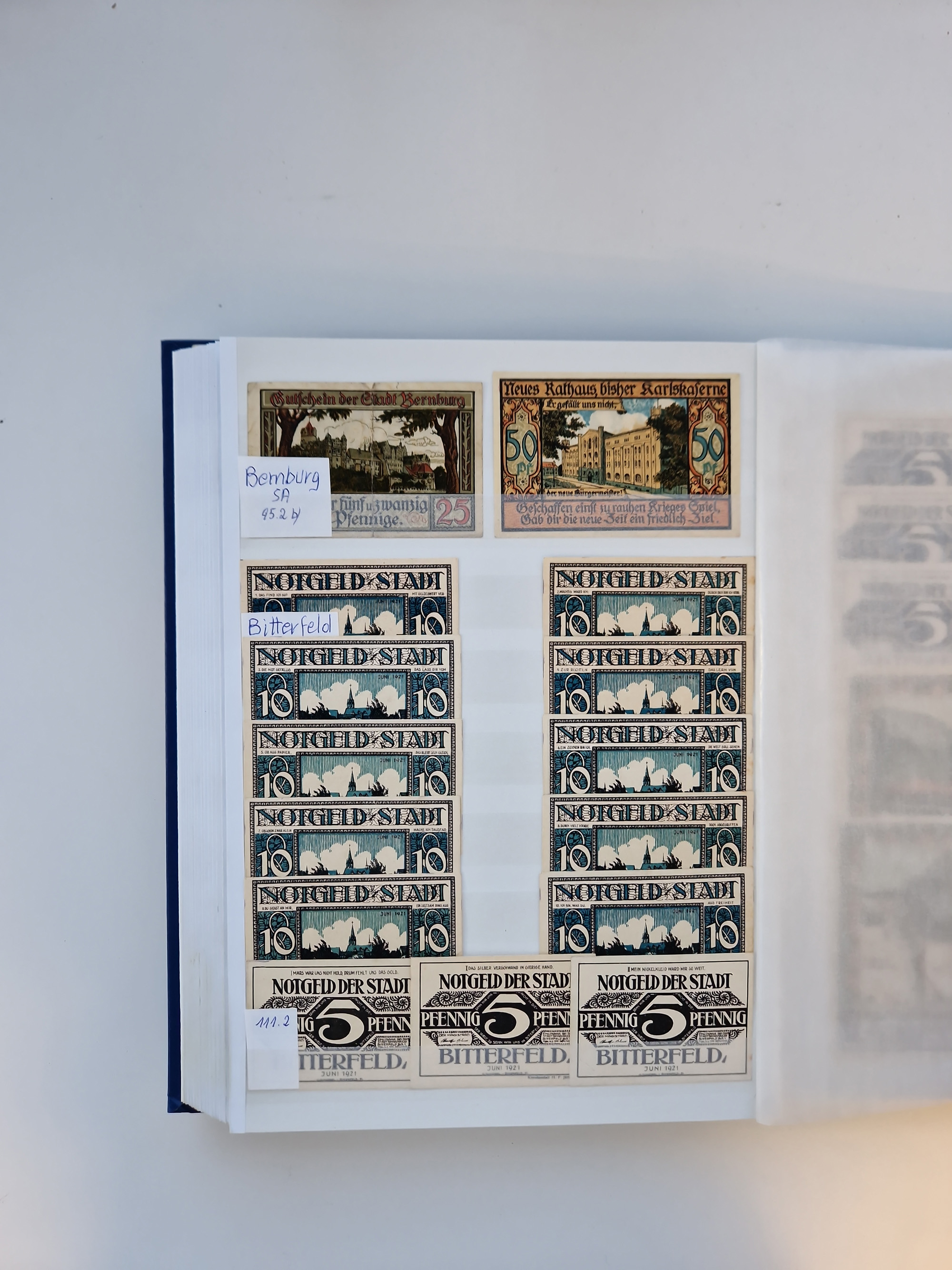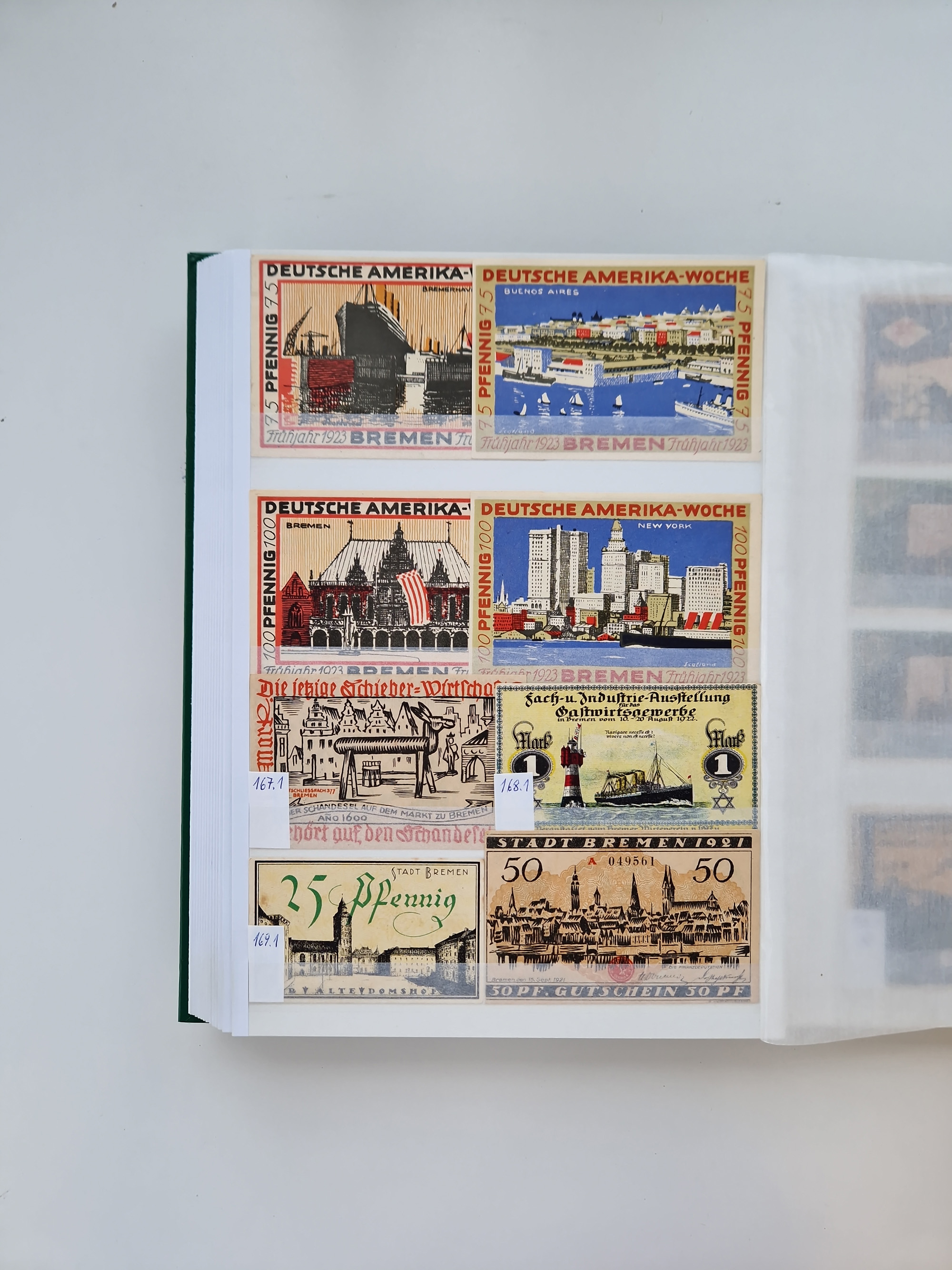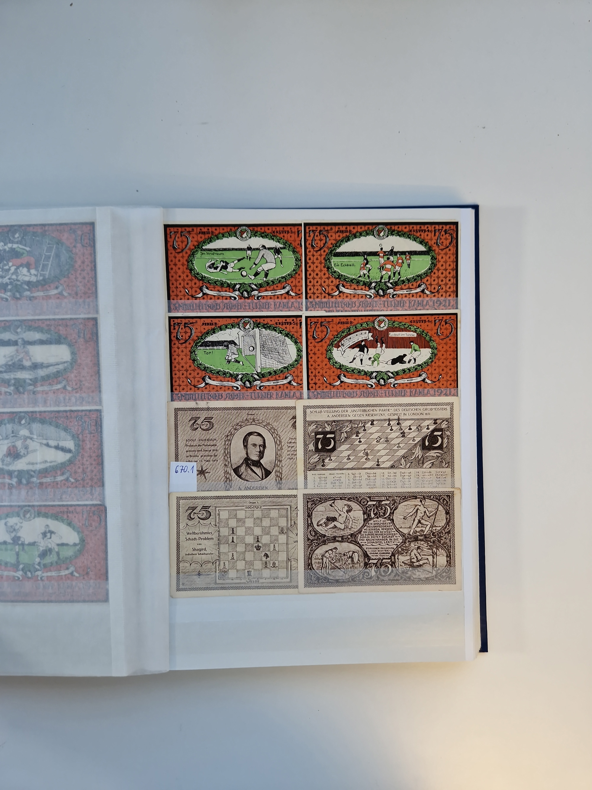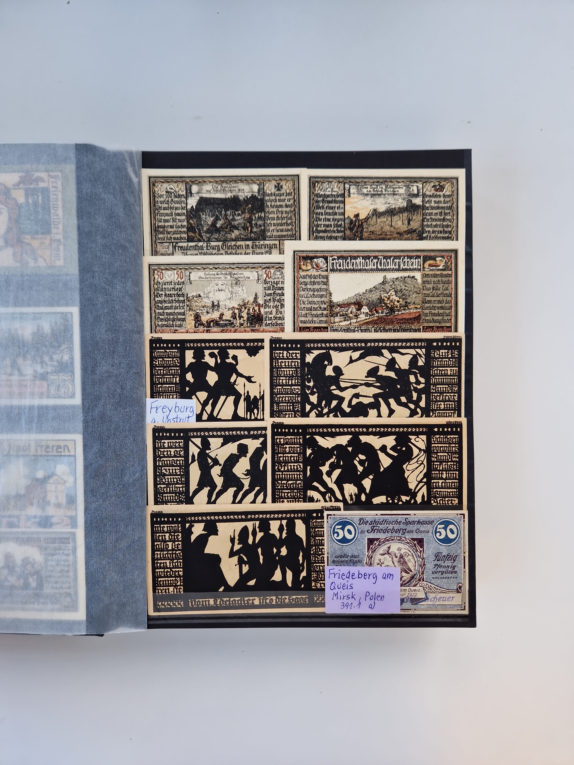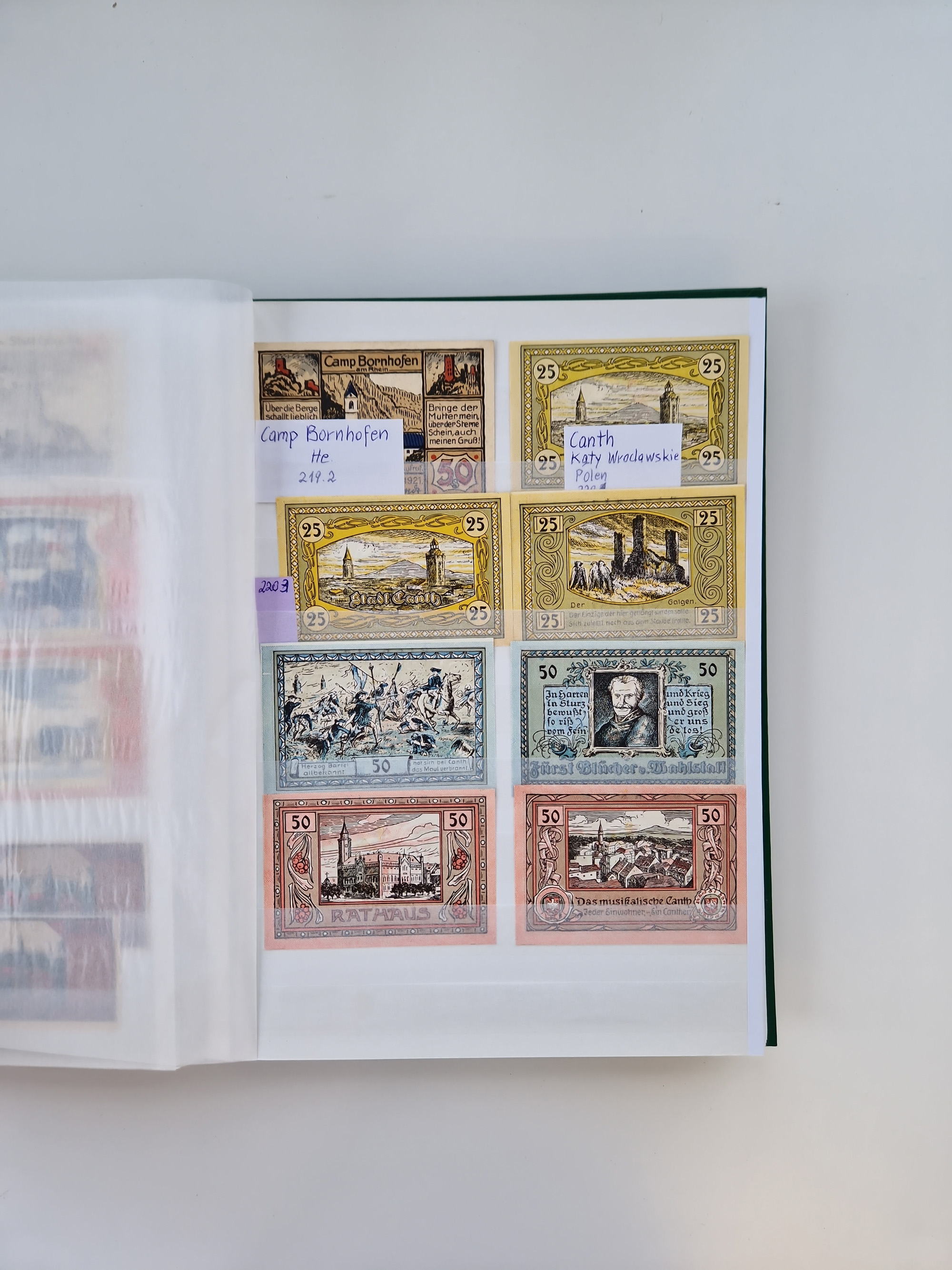 Notgeld-Serienscheine, saubere Sammlung in 16 meist dicken Steckalben, sauber nach Orten und Serien sortiert, überschlägig etwa 7/8000 Stück, dazu 4 Kataloge