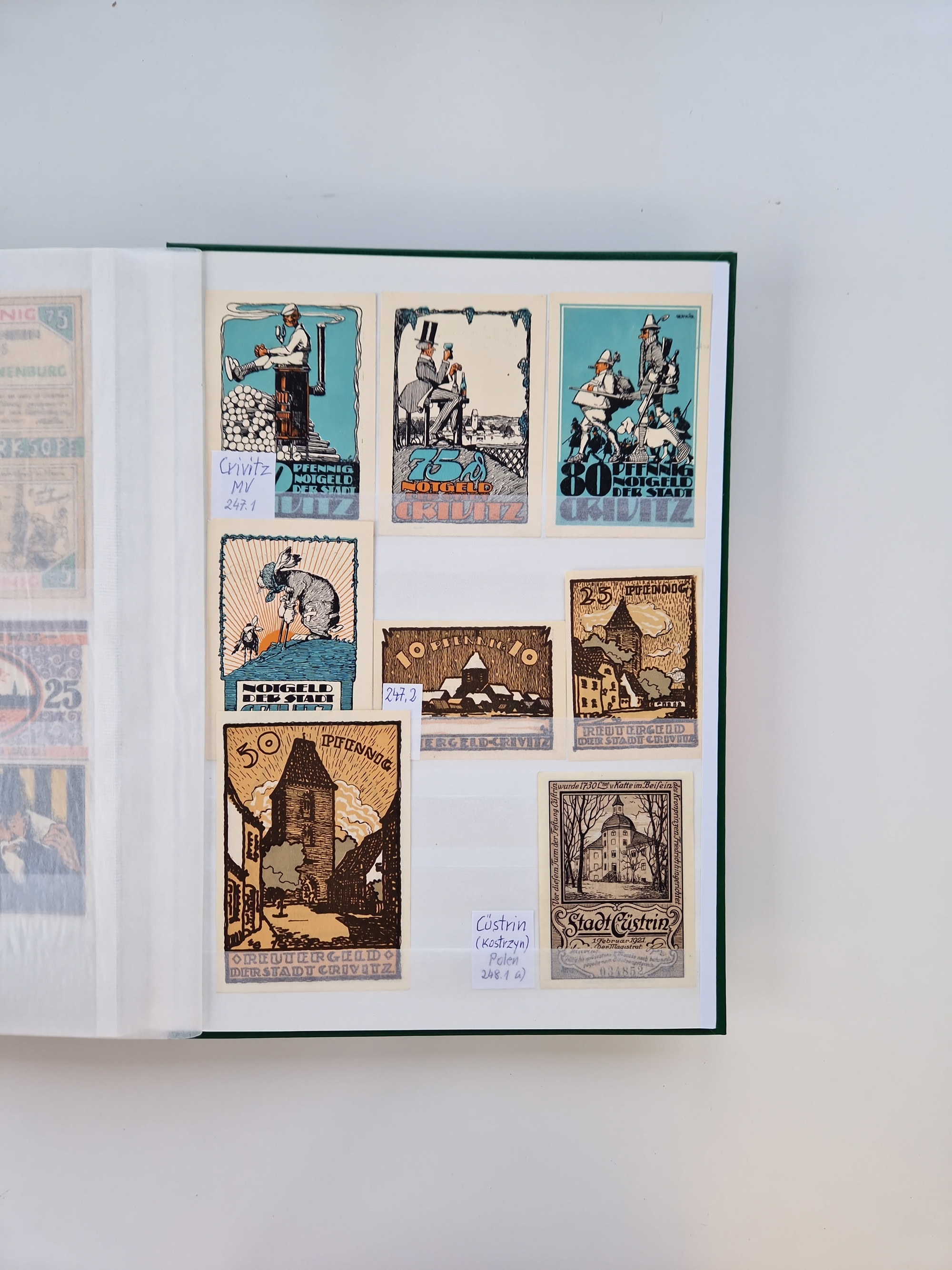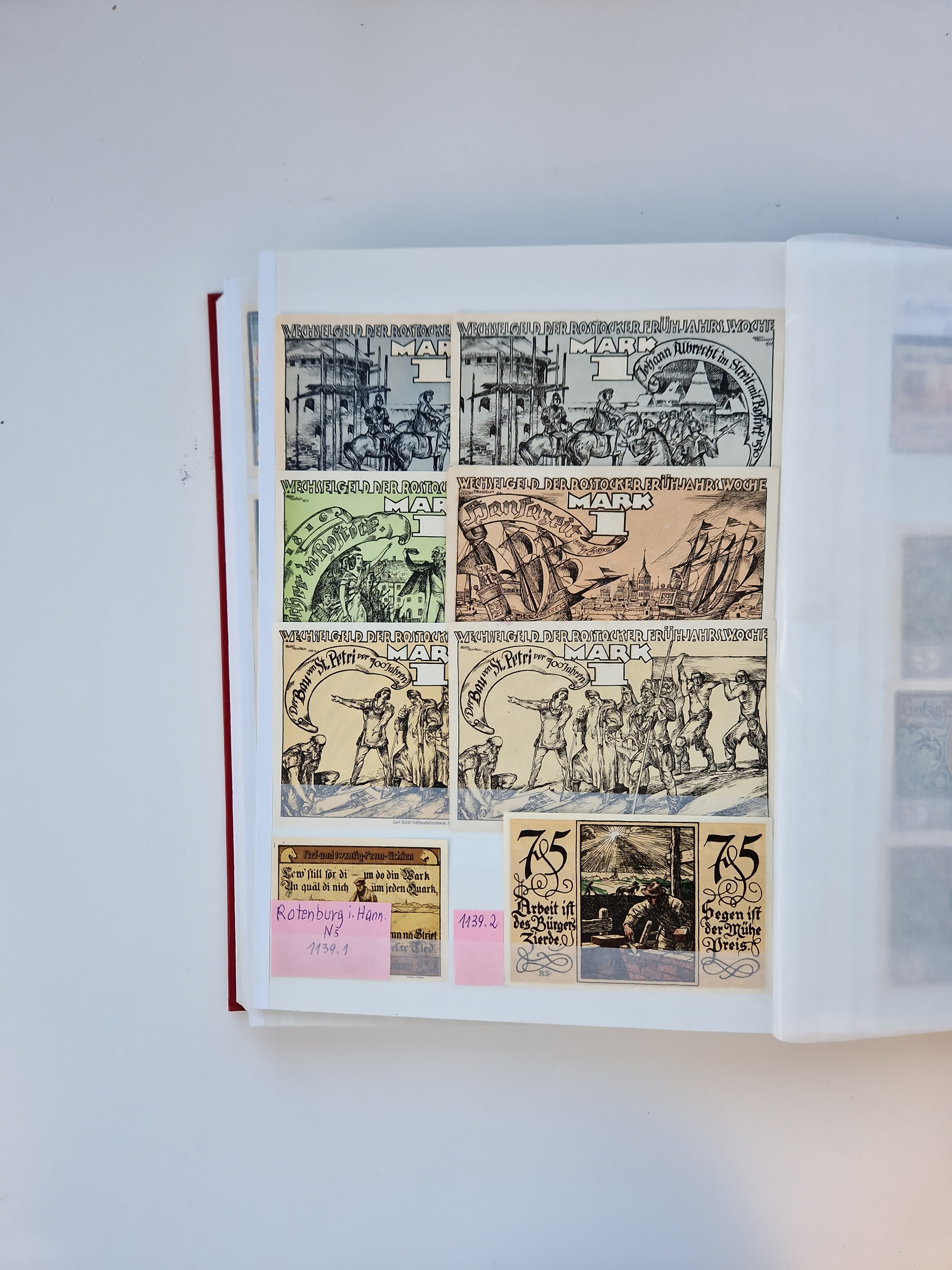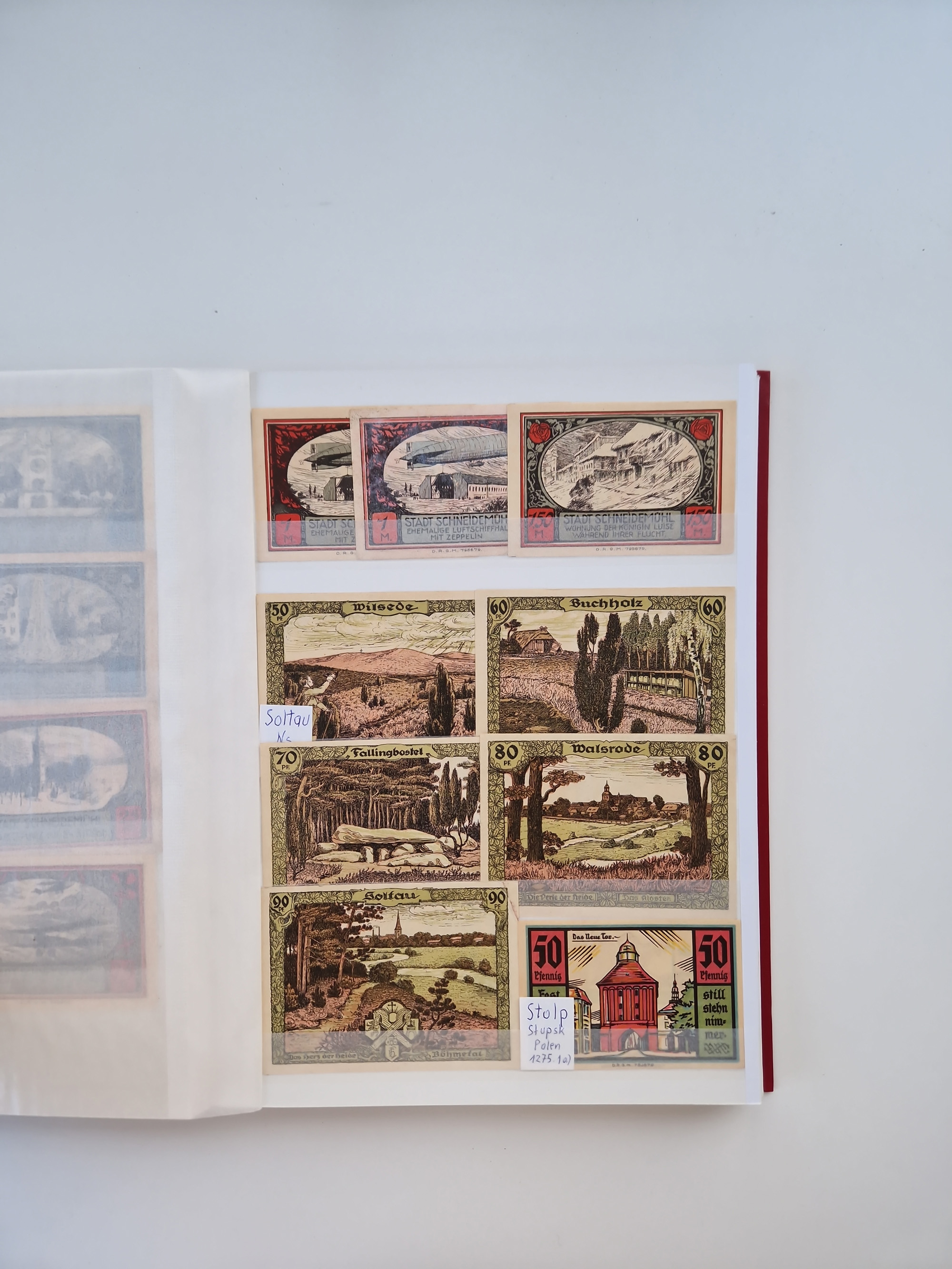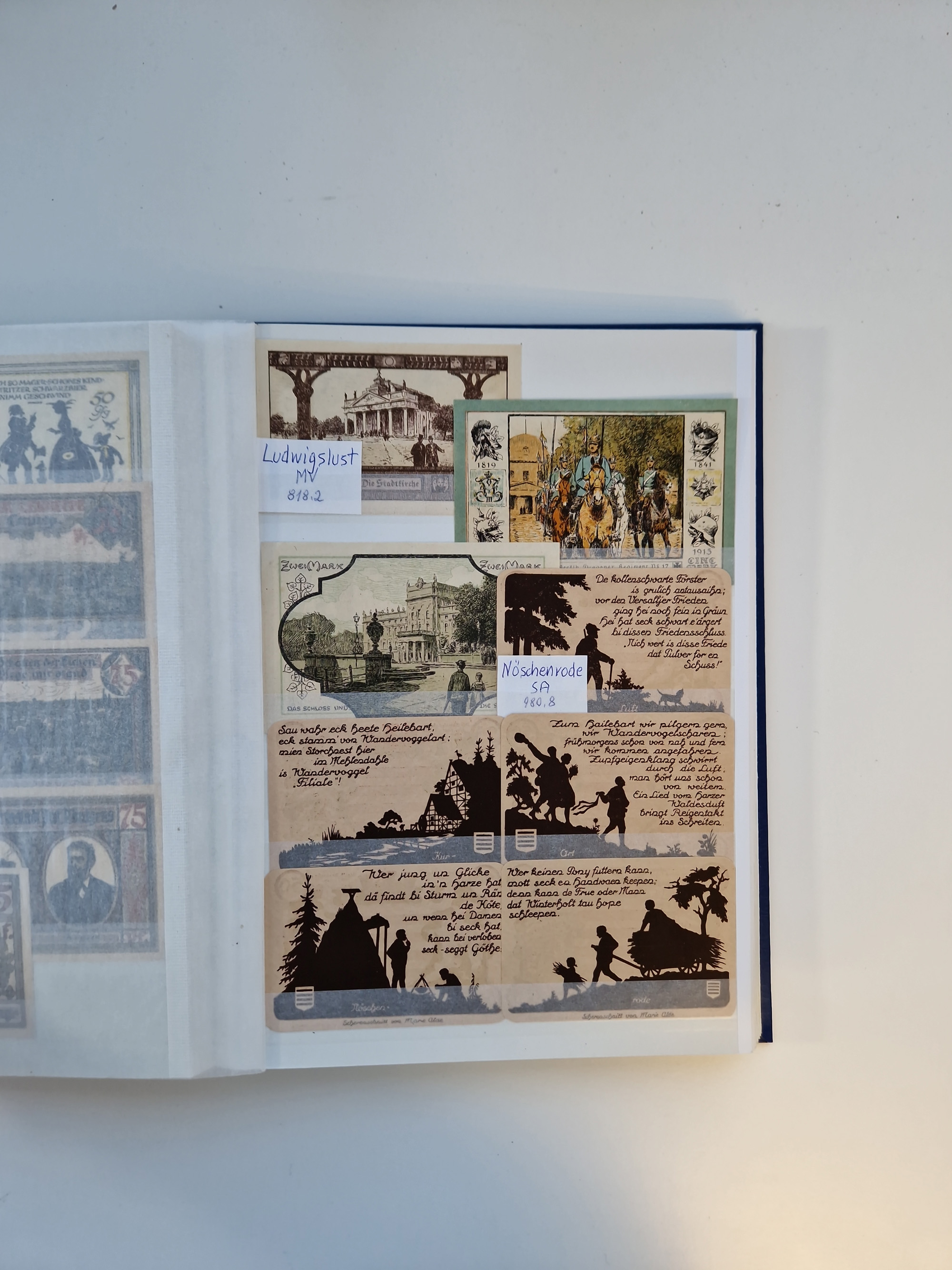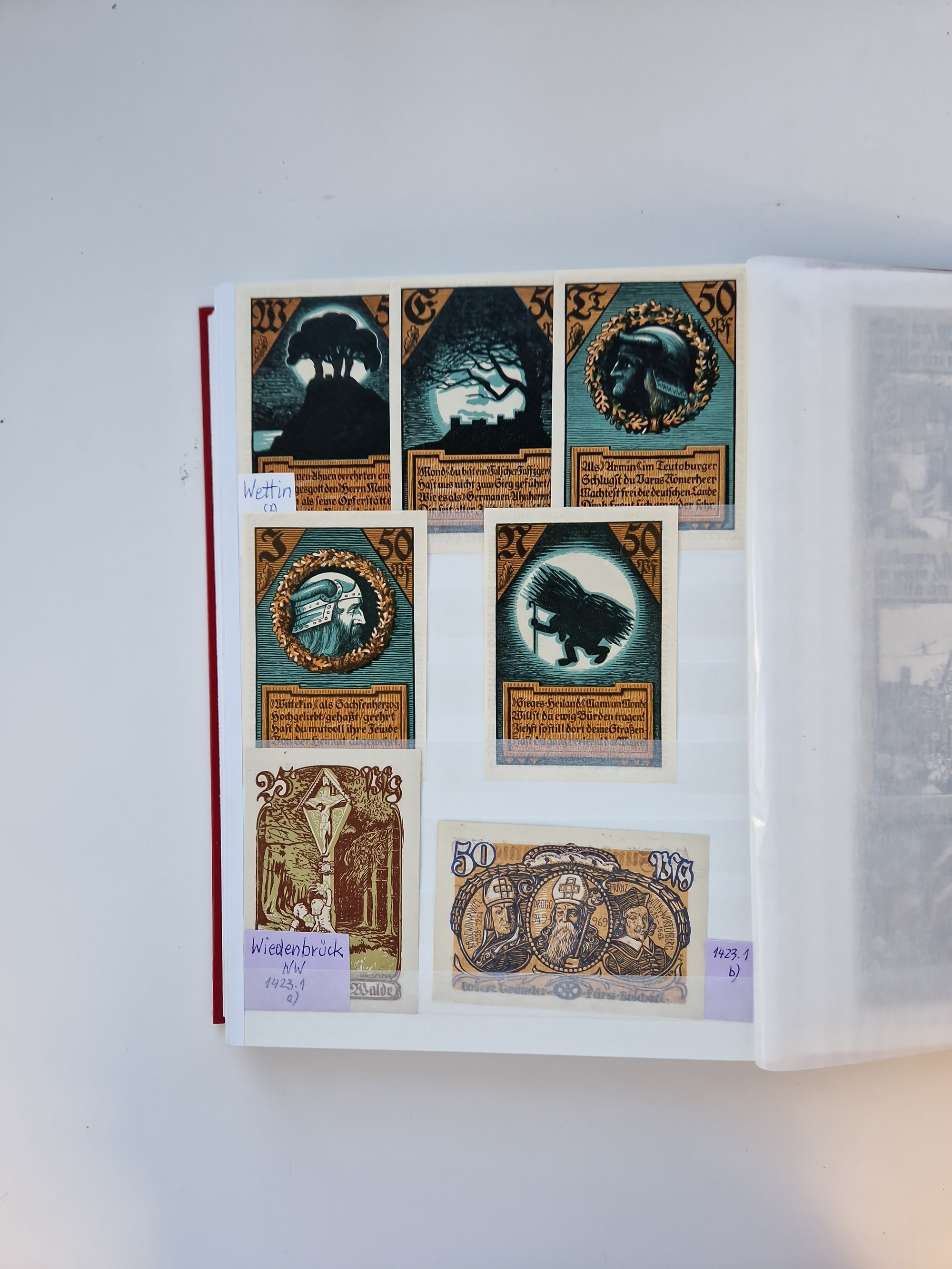 Notgeld-Serienscheine, saubere Sammlung in 16 meist dicken Steckalben, sauber nach Orten und Serien sortiert, überschlägig etwa 7/8000 Stück, dazu 4 Kataloge