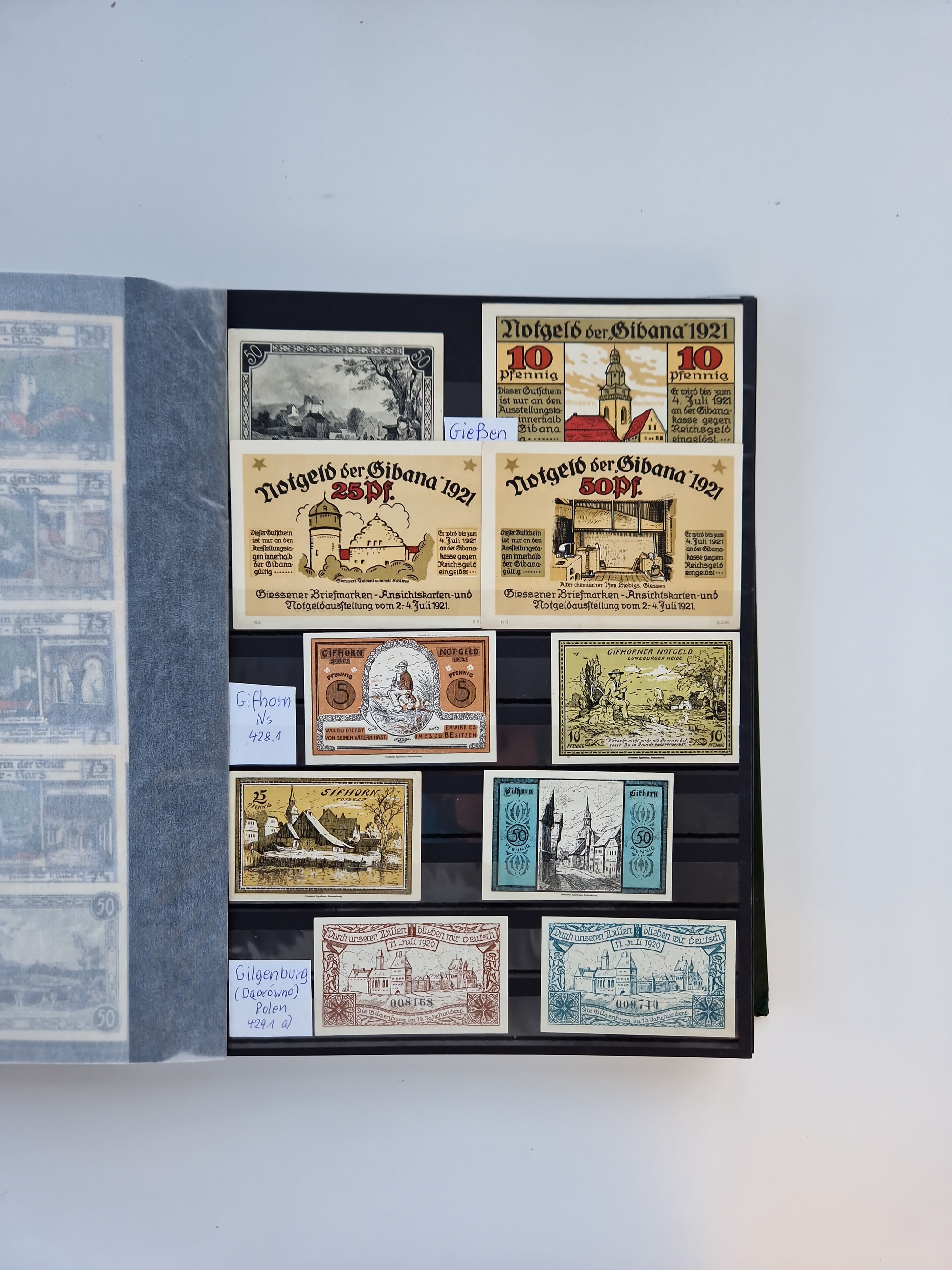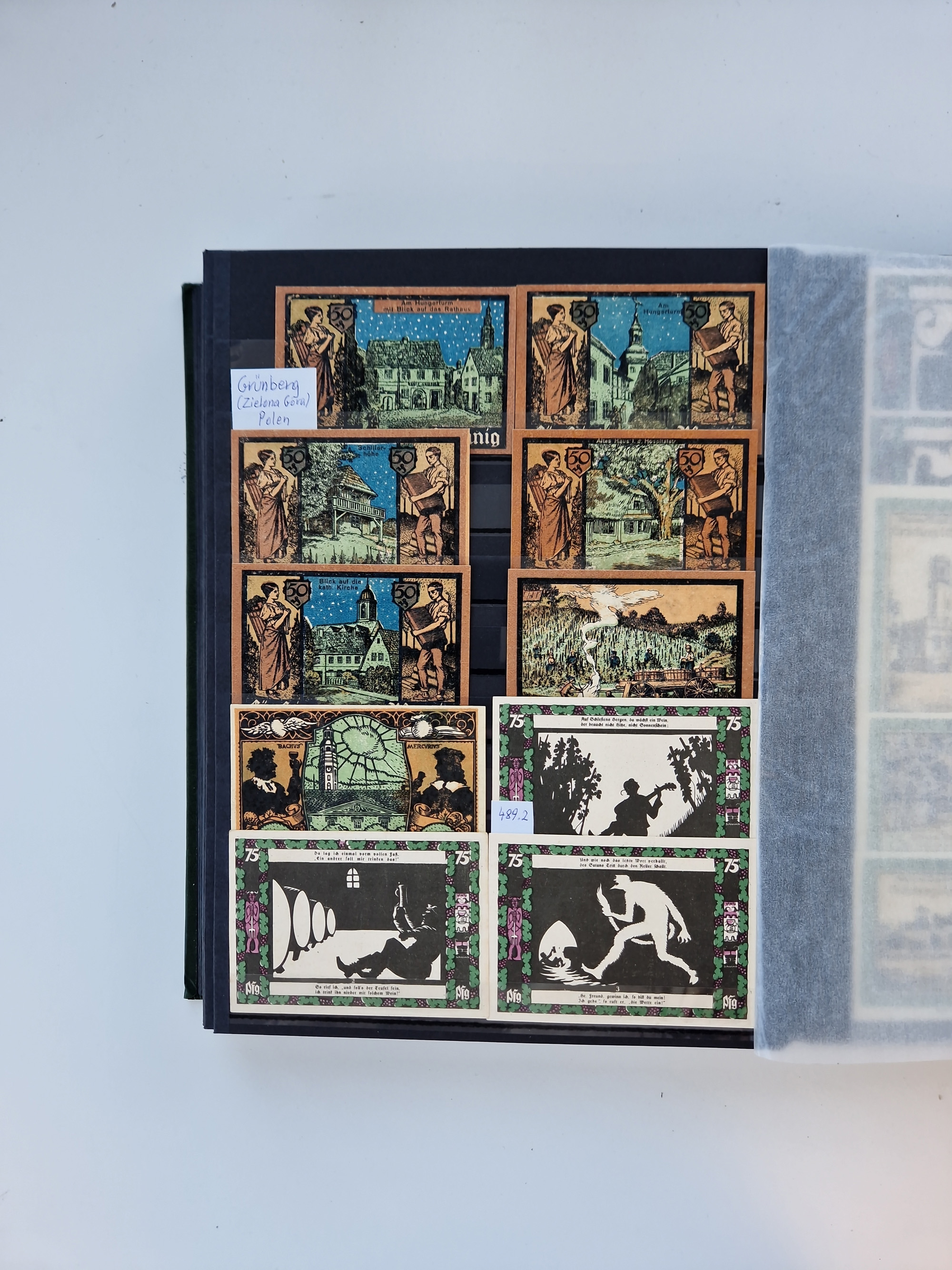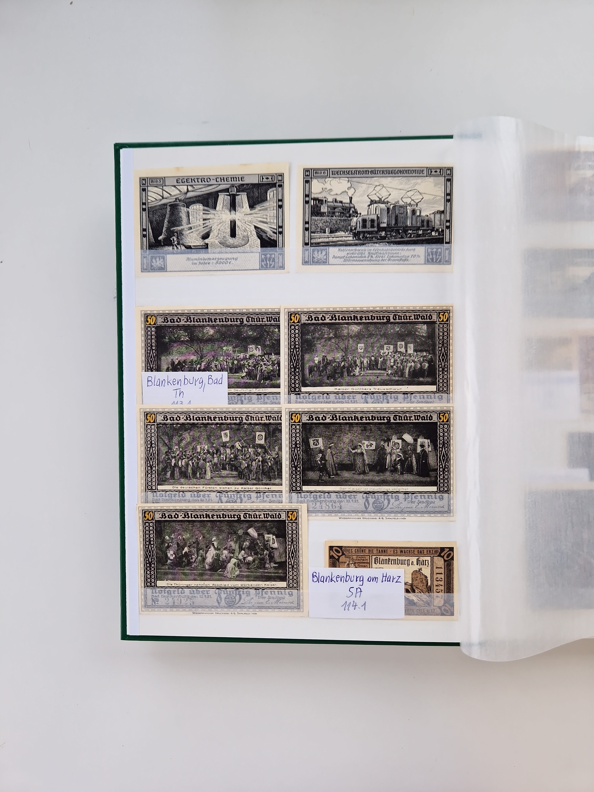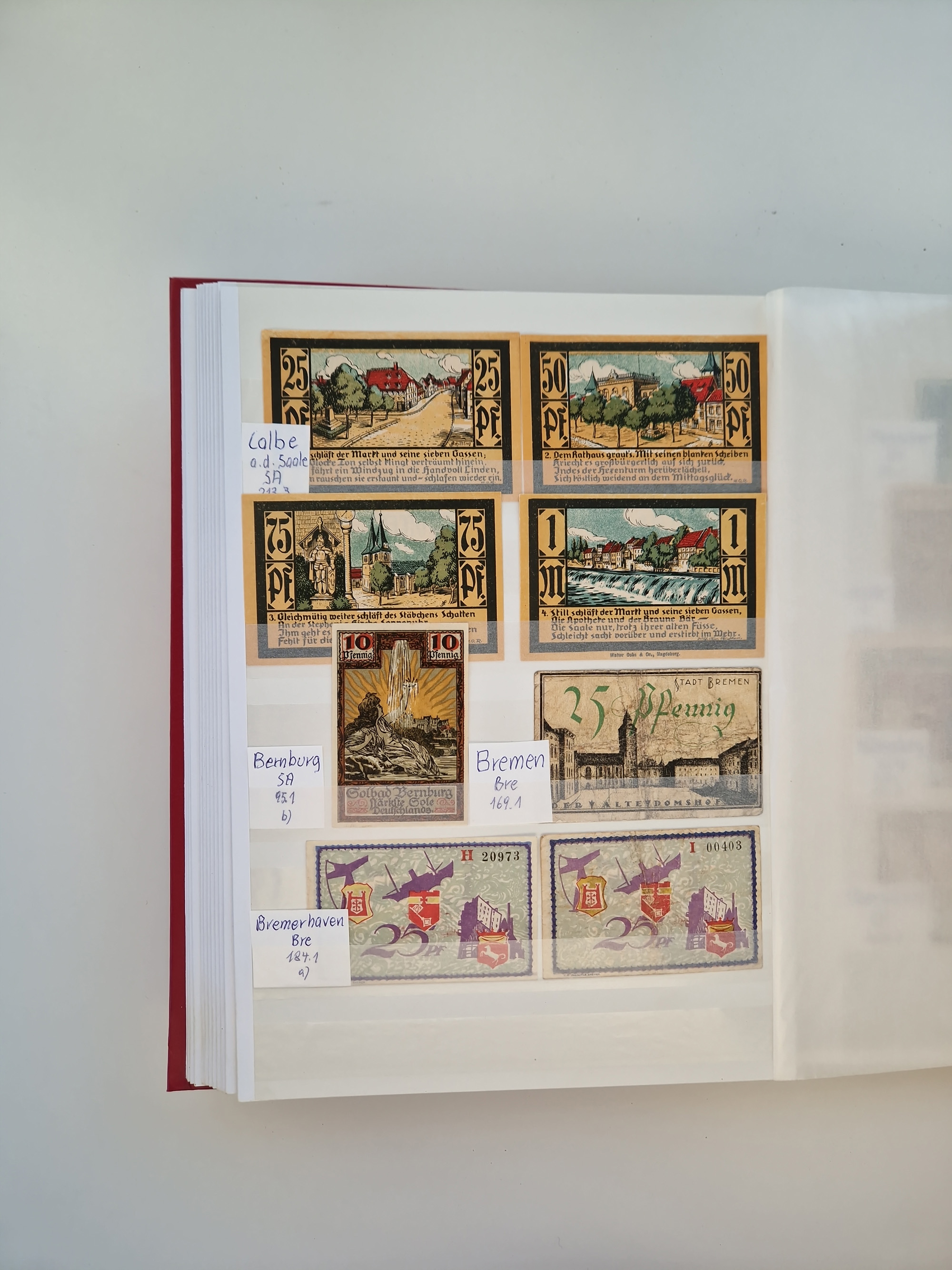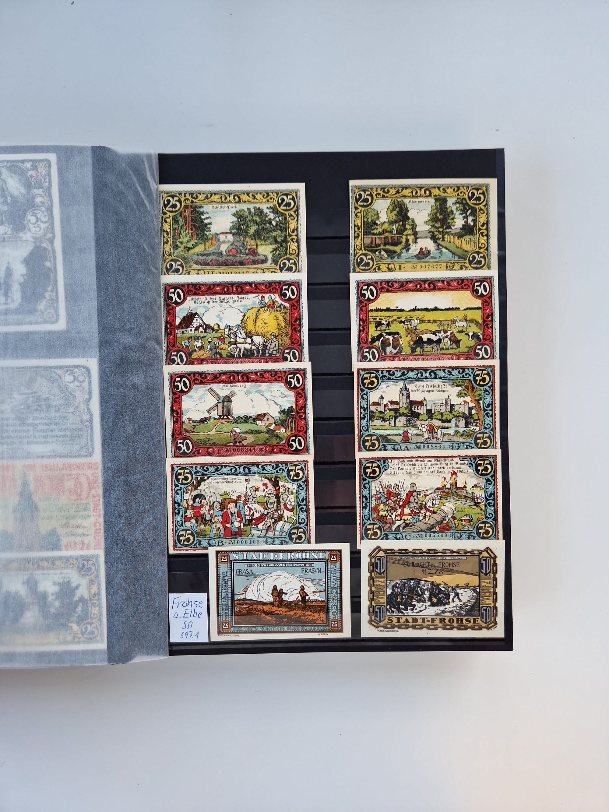 Notgeld-Serienscheine, saubere Sammlung in 16 meist dicken Steckalben, sauber nach Orten und Serien sortiert, überschlägig etwa 7/8000 Stück, dazu 4 Kataloge