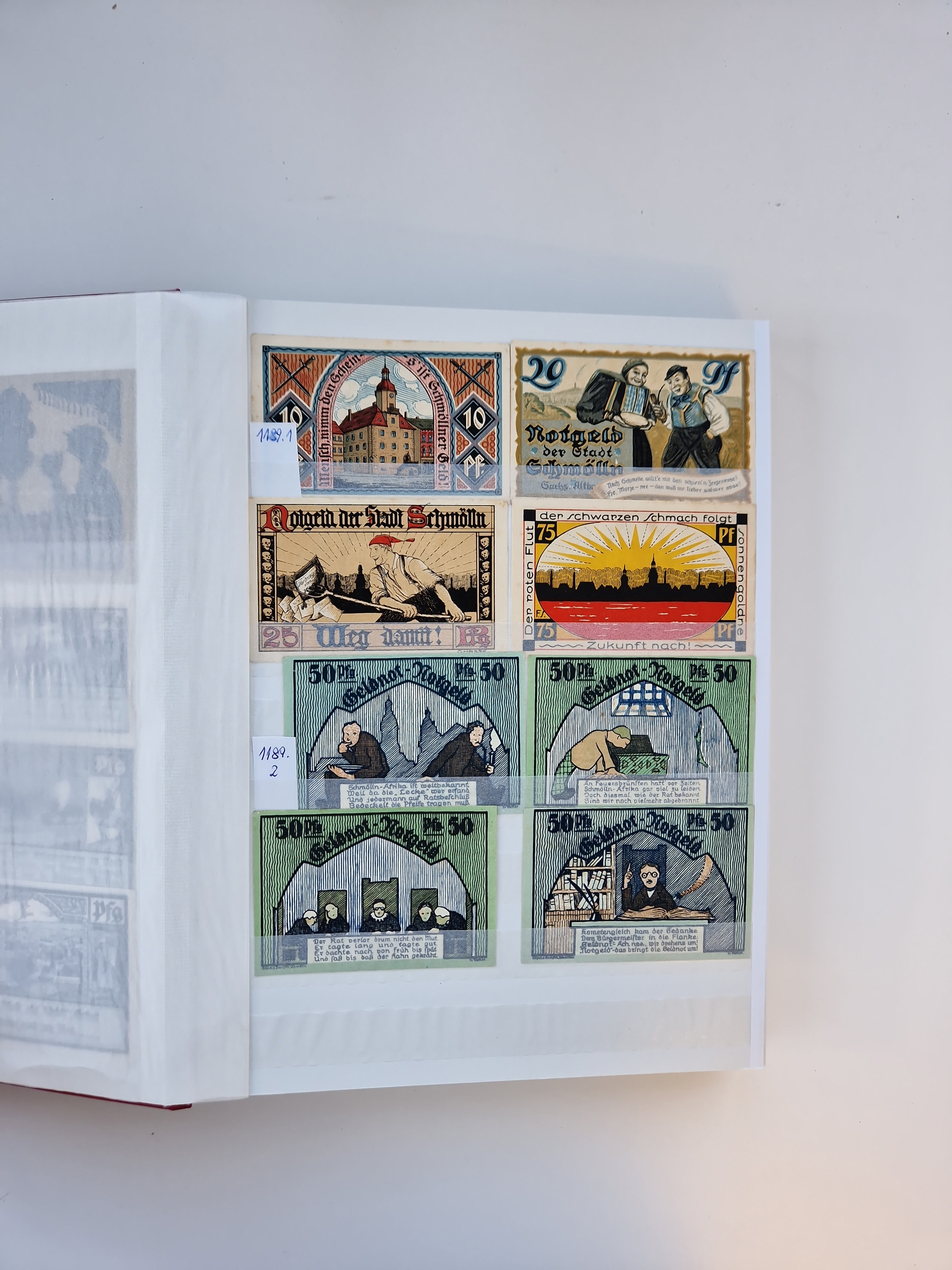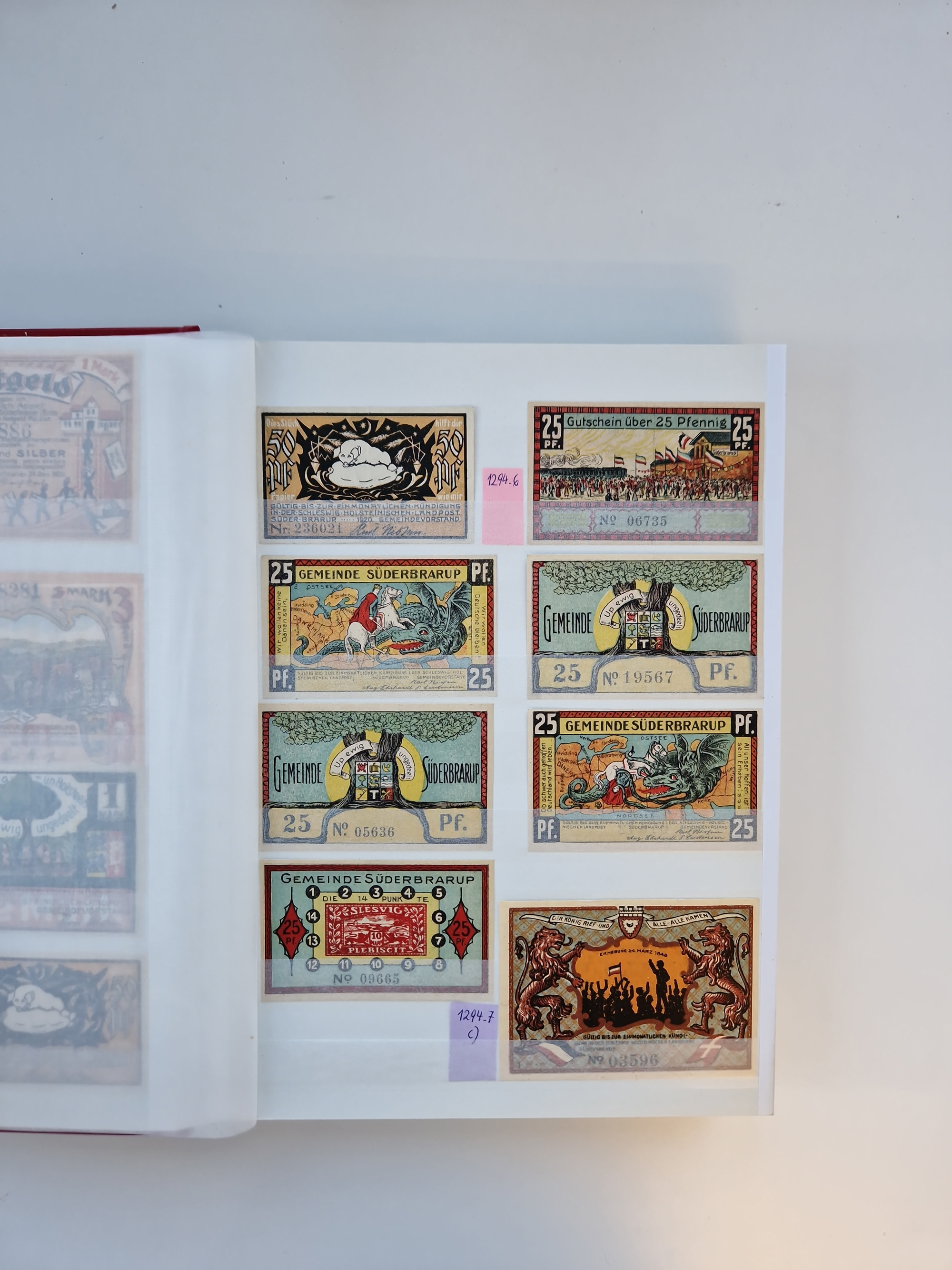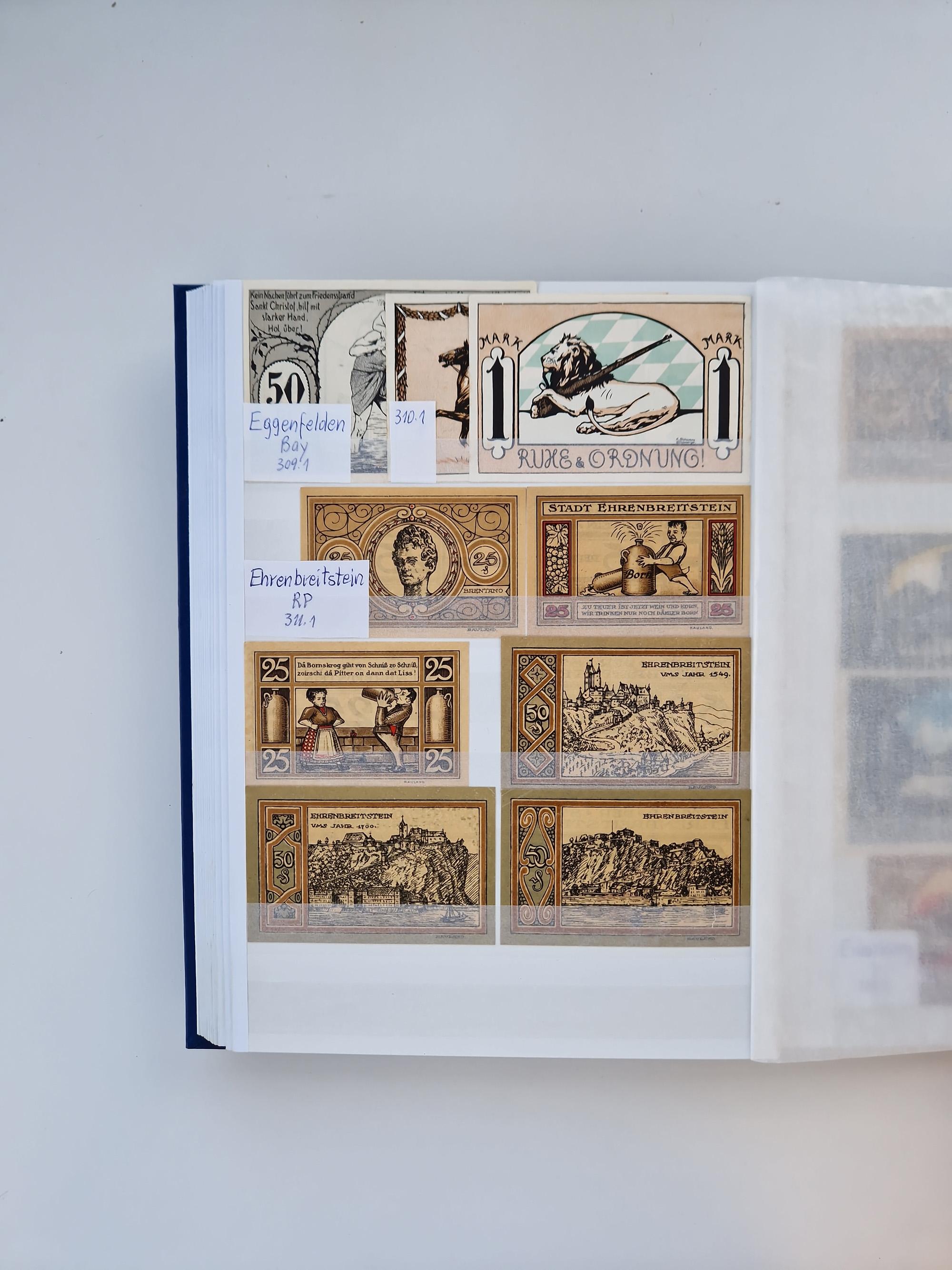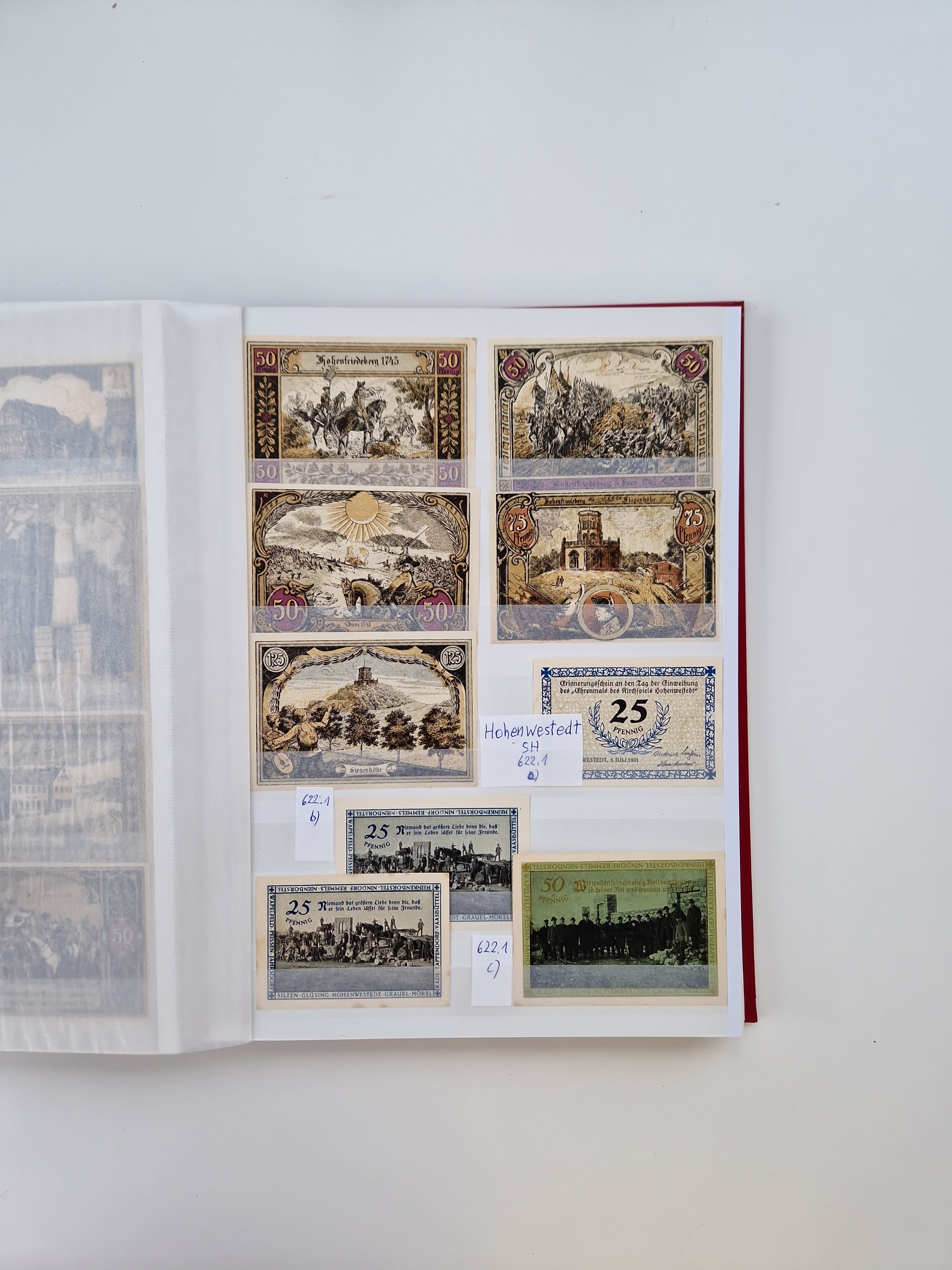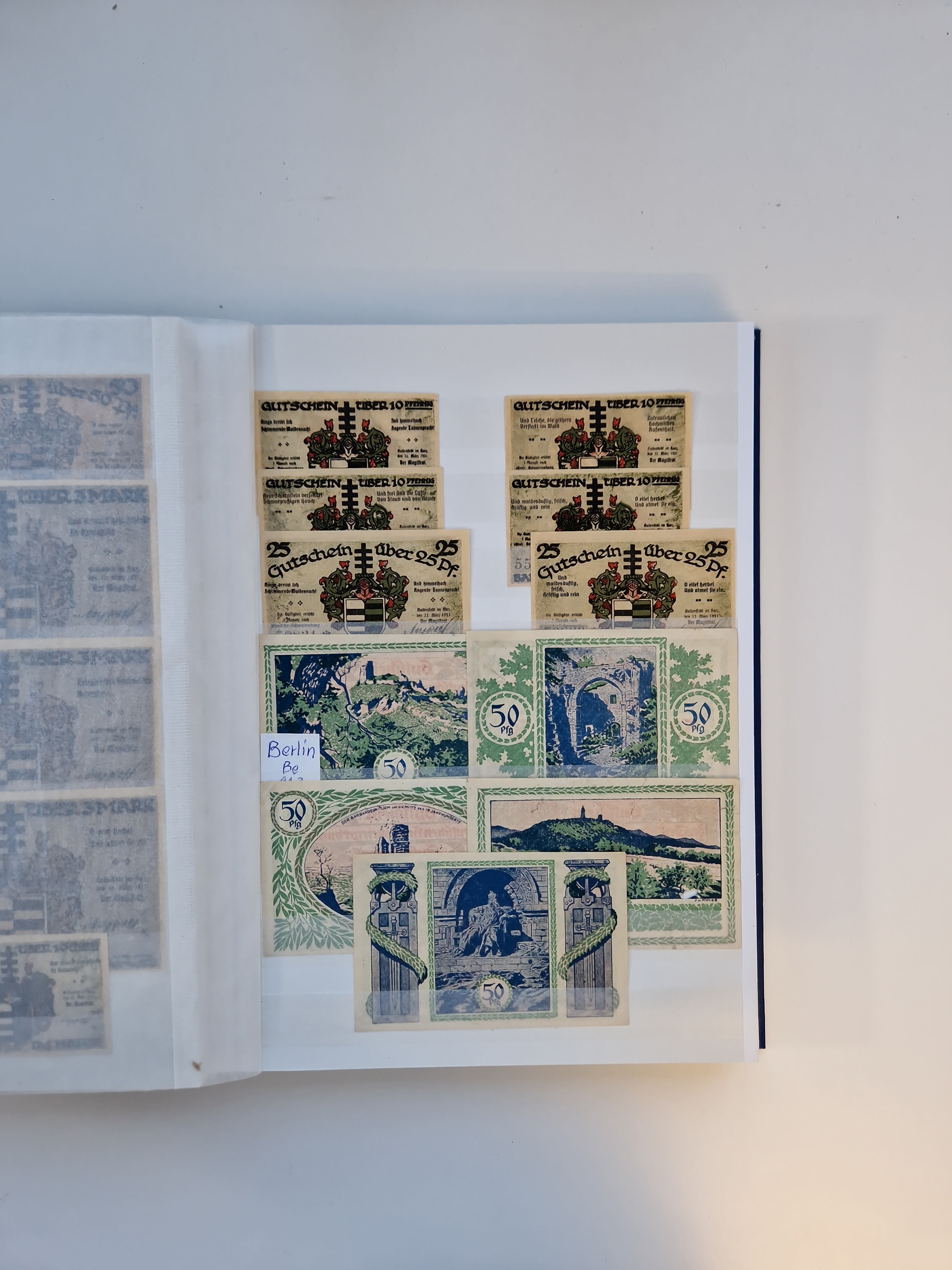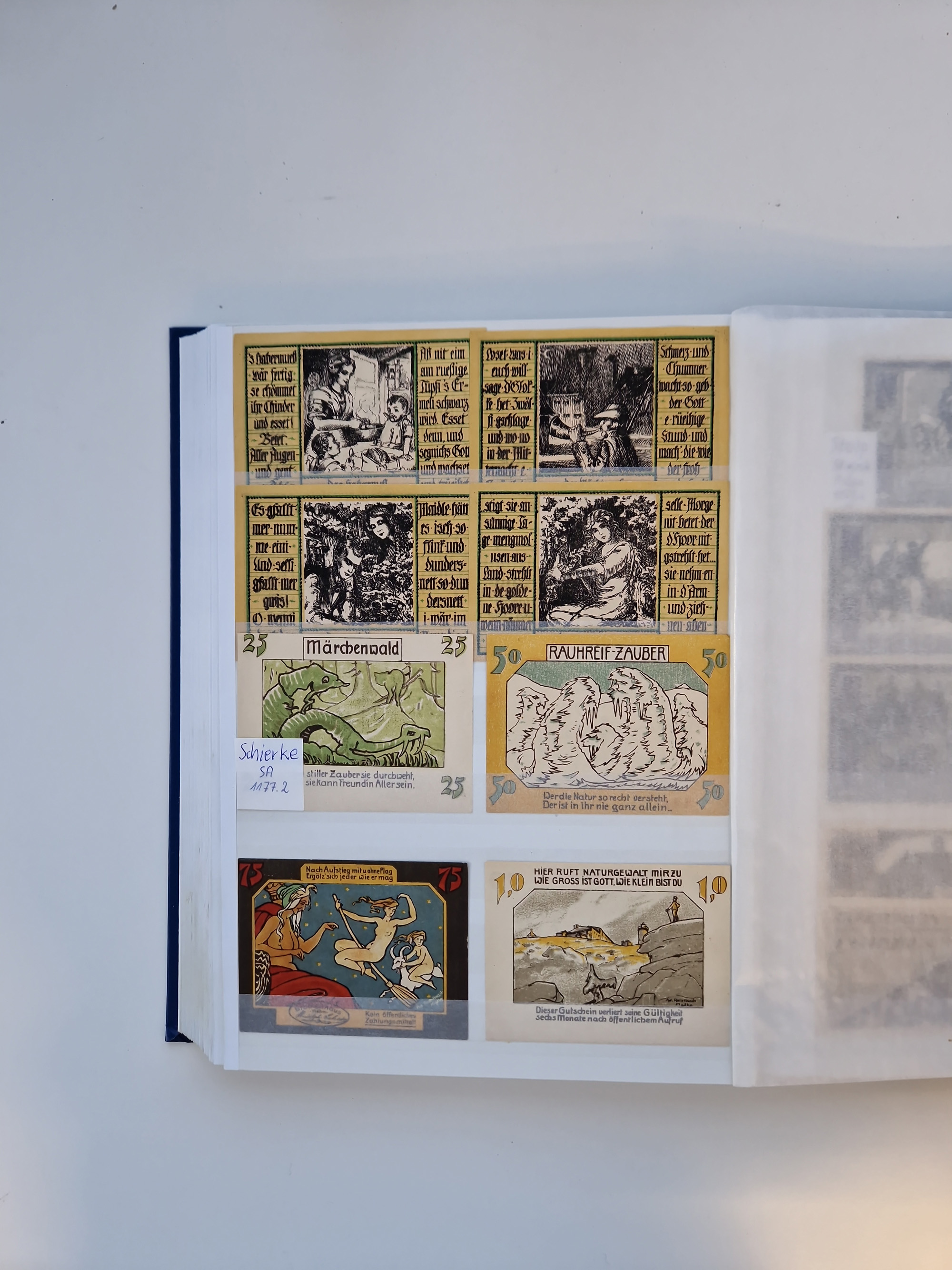 Notgeld-Serienscheine, saubere Sammlung in 16 meist dicken Steckalben, sauber nach Orten und Serien sortiert, überschlägig etwa 7/8000 Stück, dazu 4 Kataloge