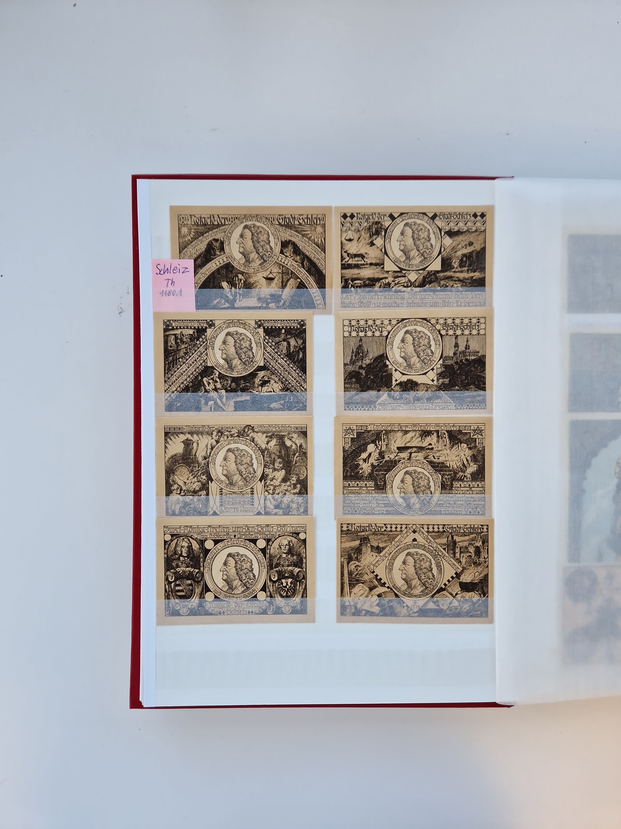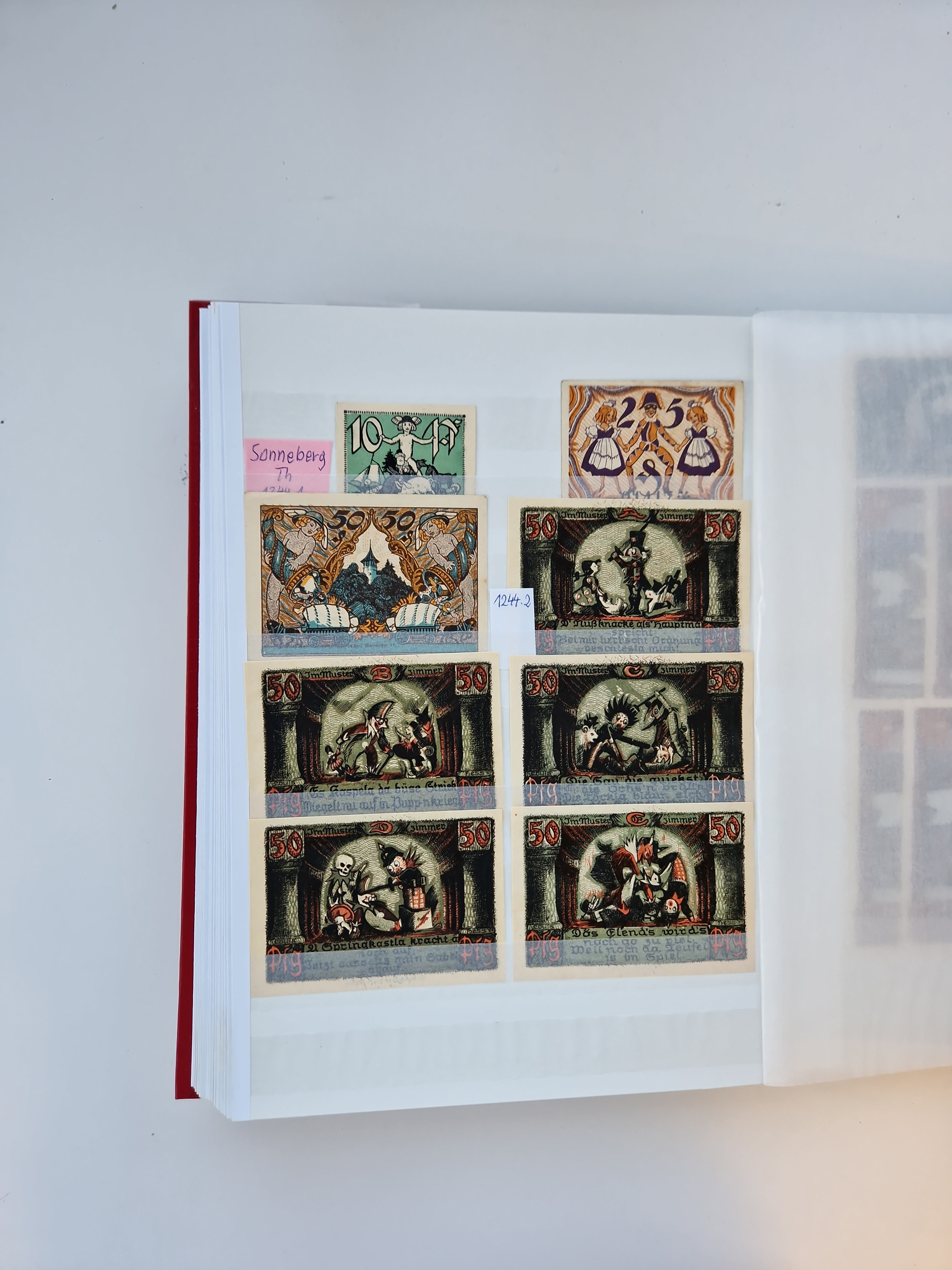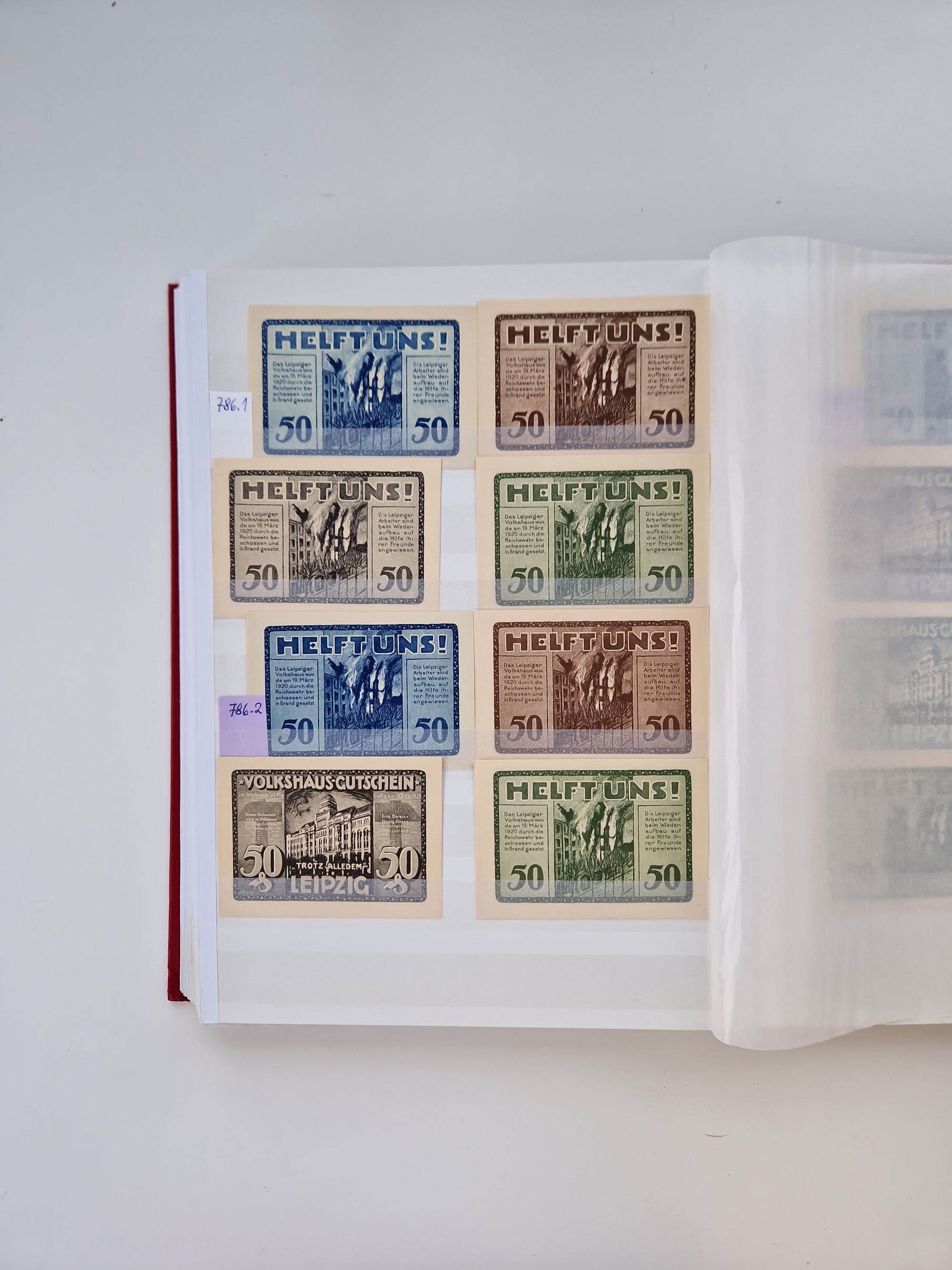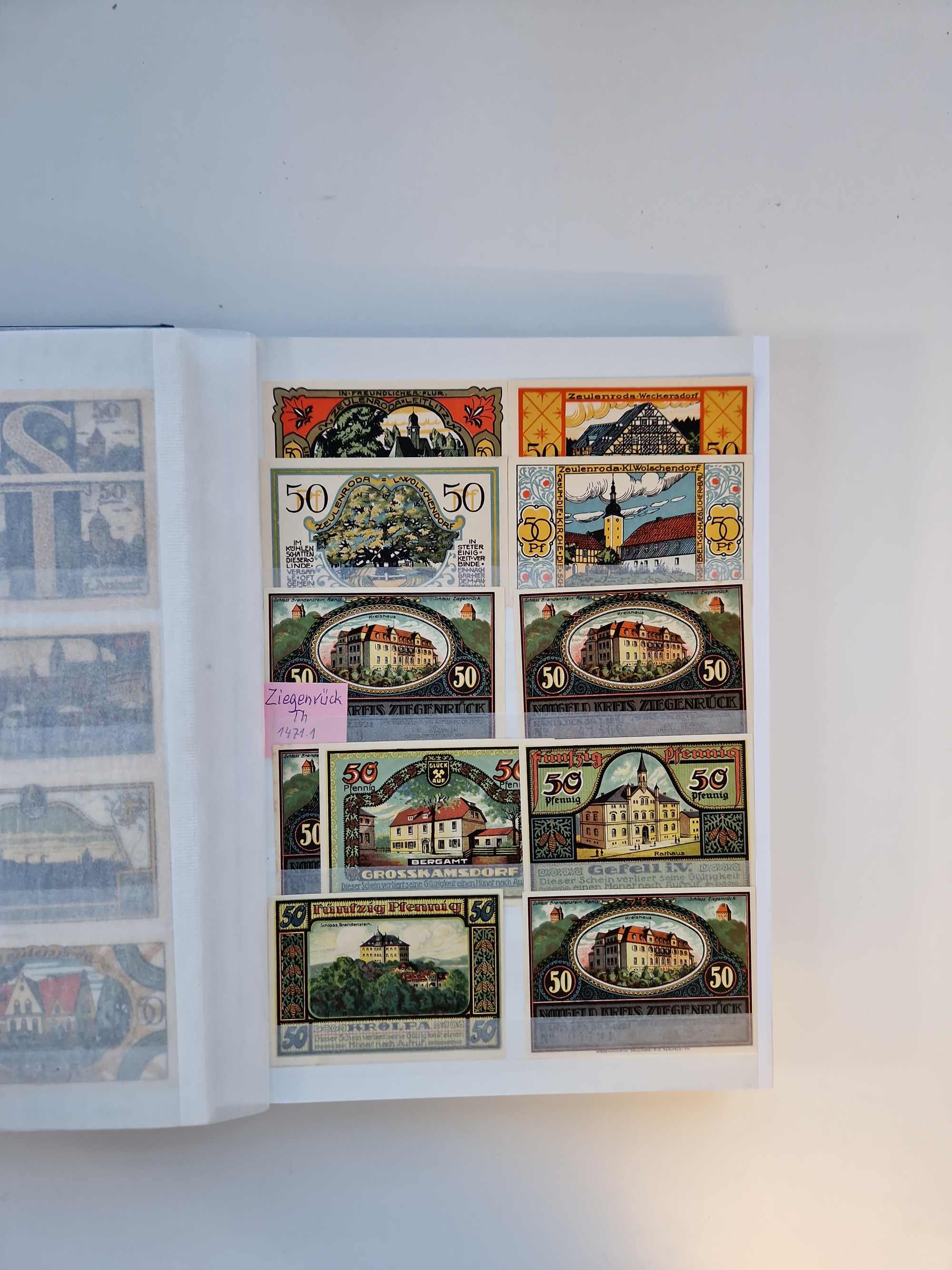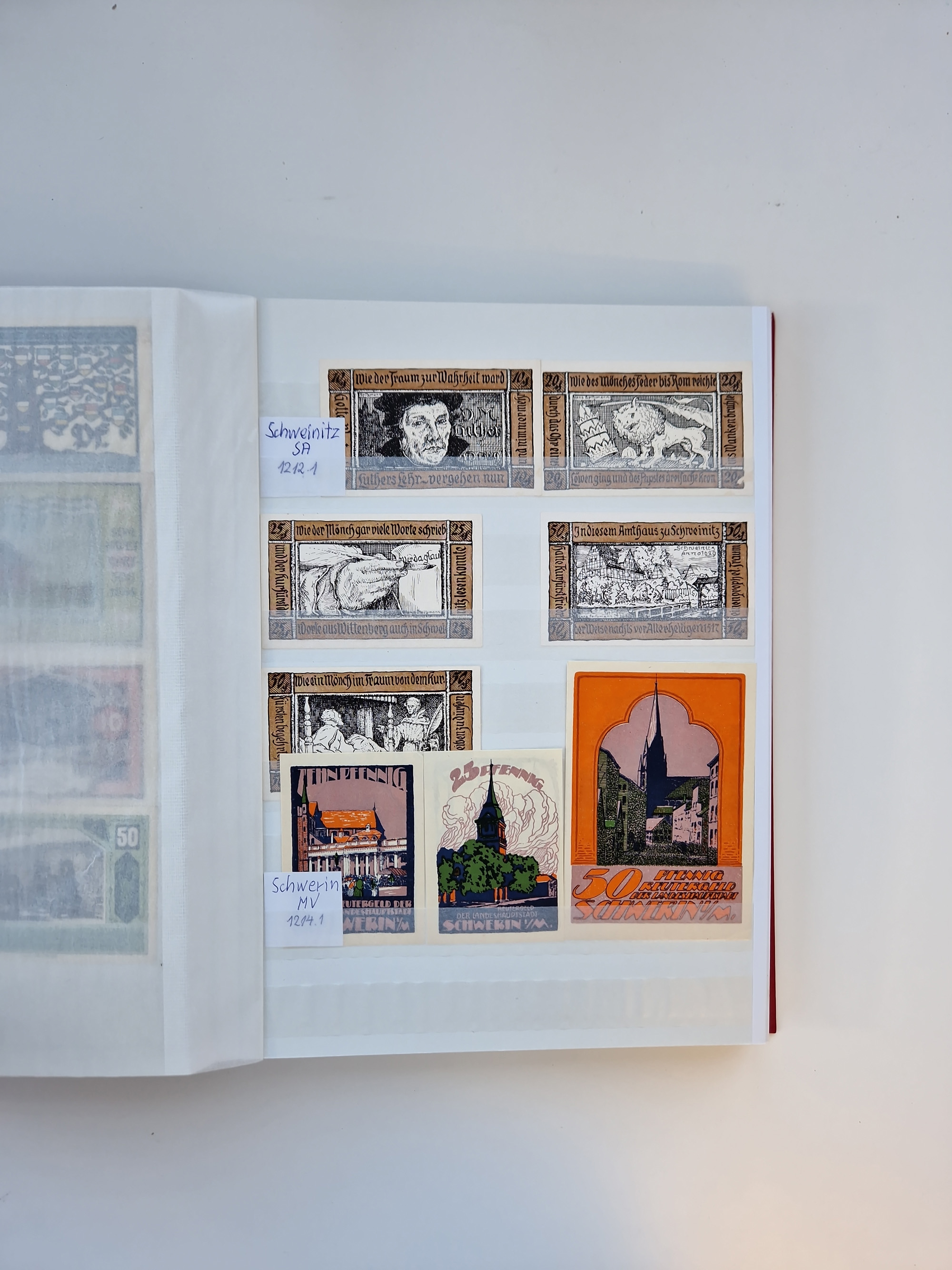 Notgeld-Serienscheine, saubere Sammlung in 16 meist dicken Steckalben, sauber nach Orten und Serien sortiert, überschlägig etwa 7/8000 Stück, dazu 4 Kataloge