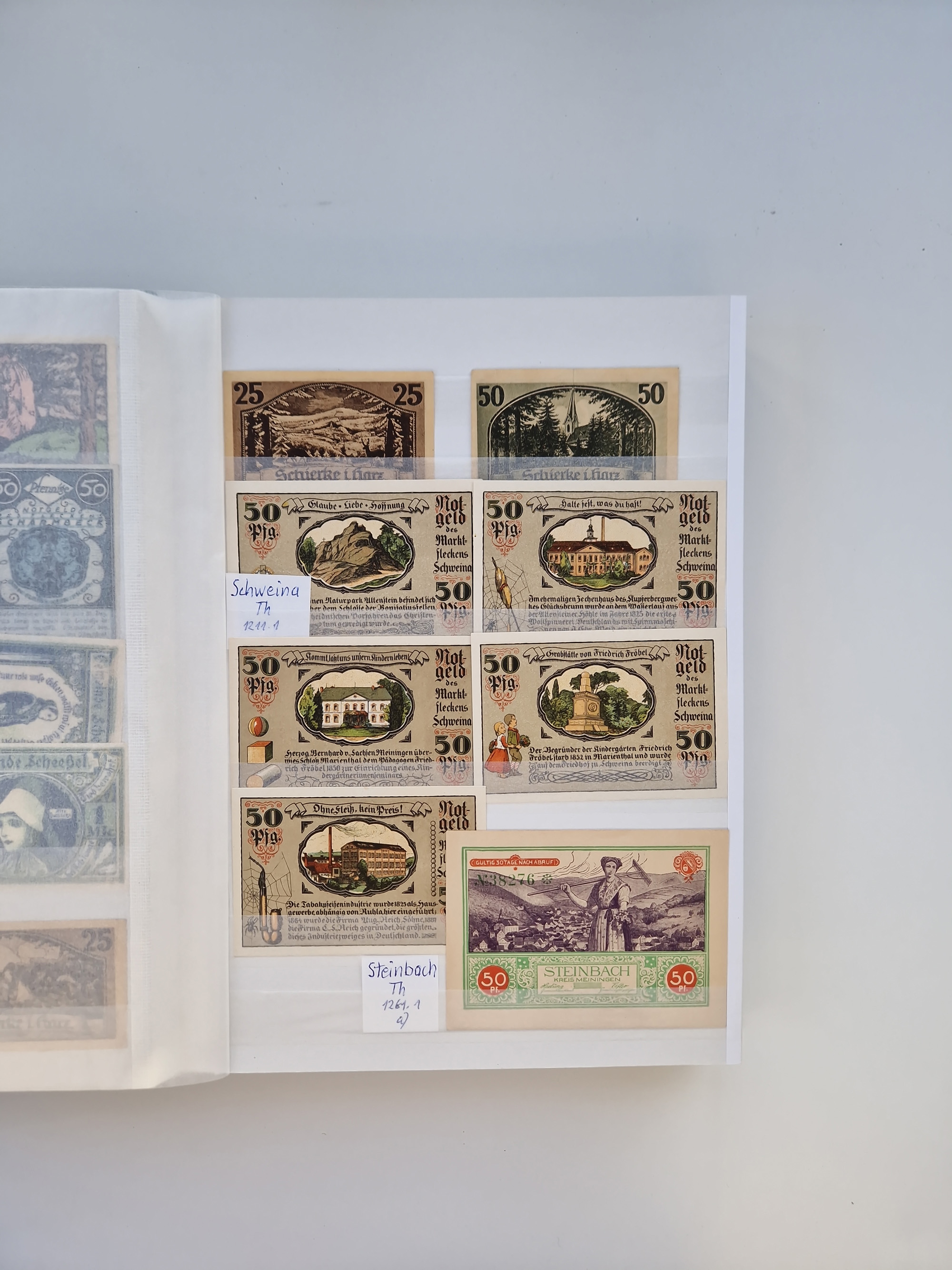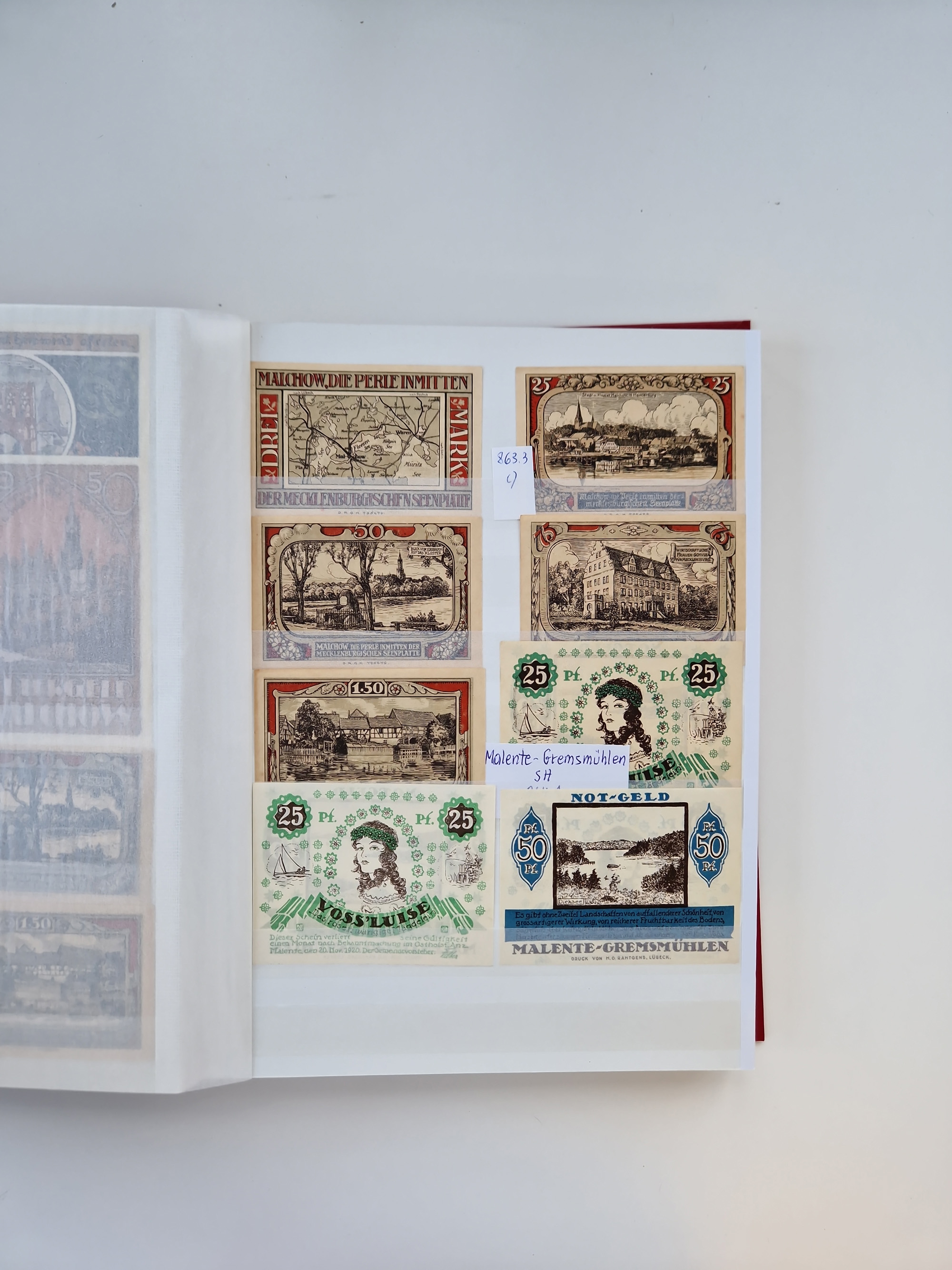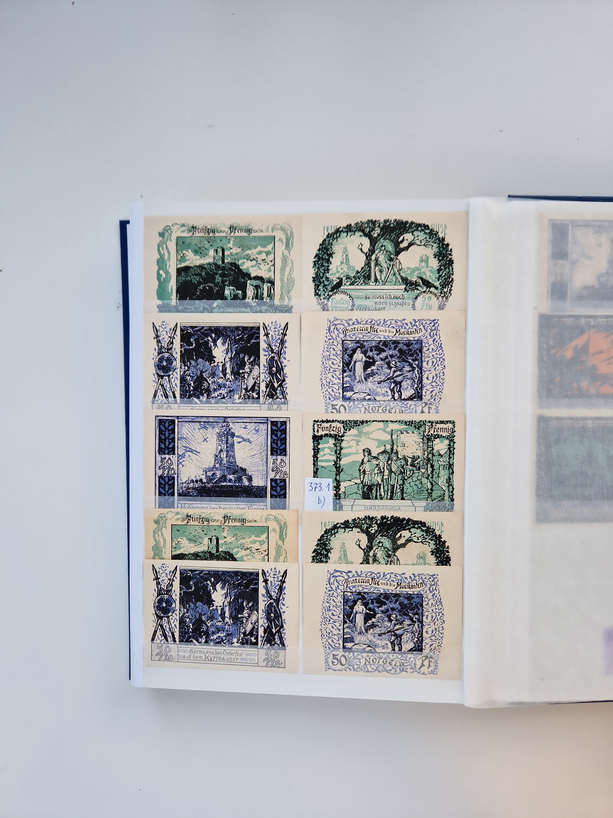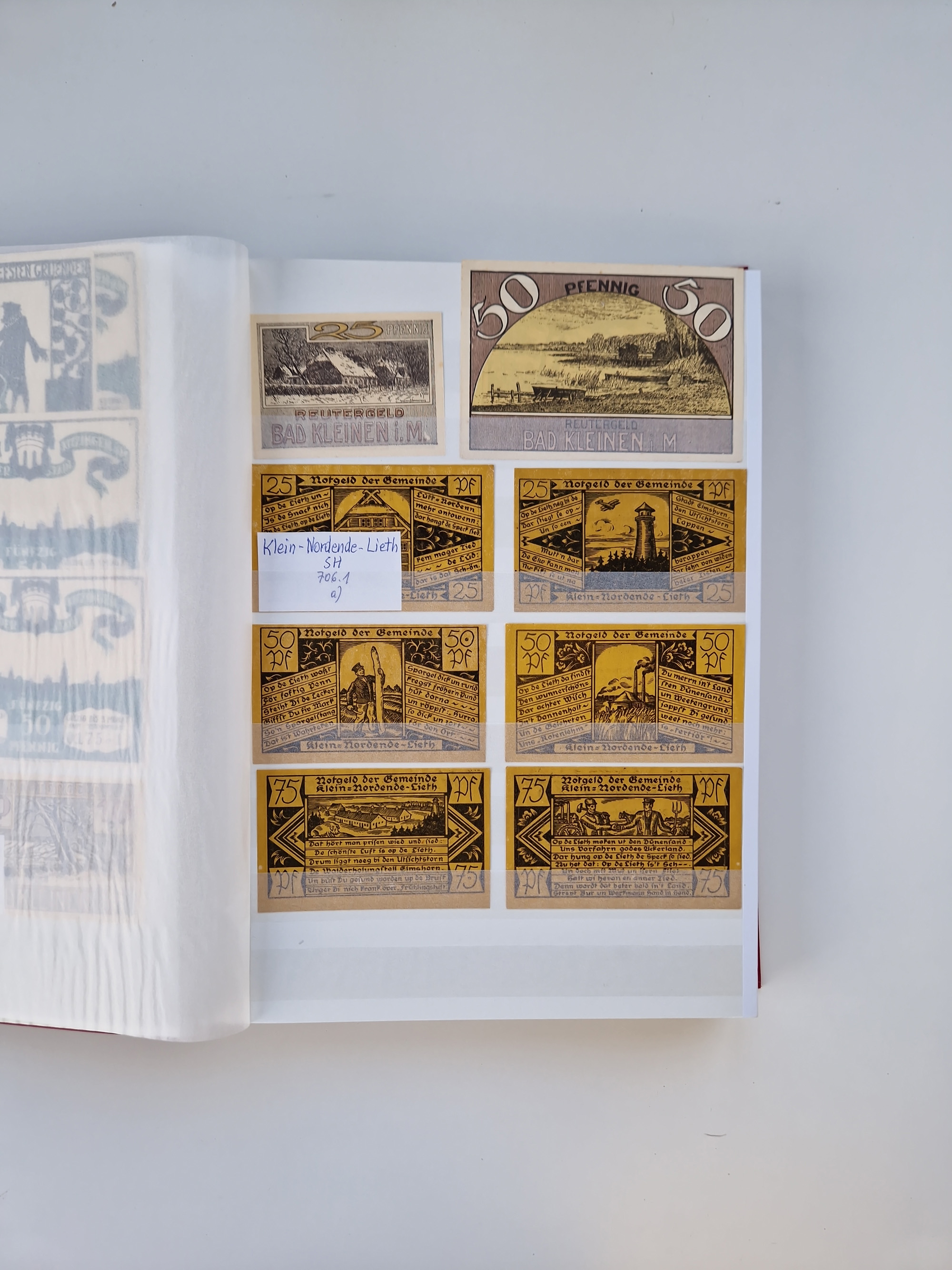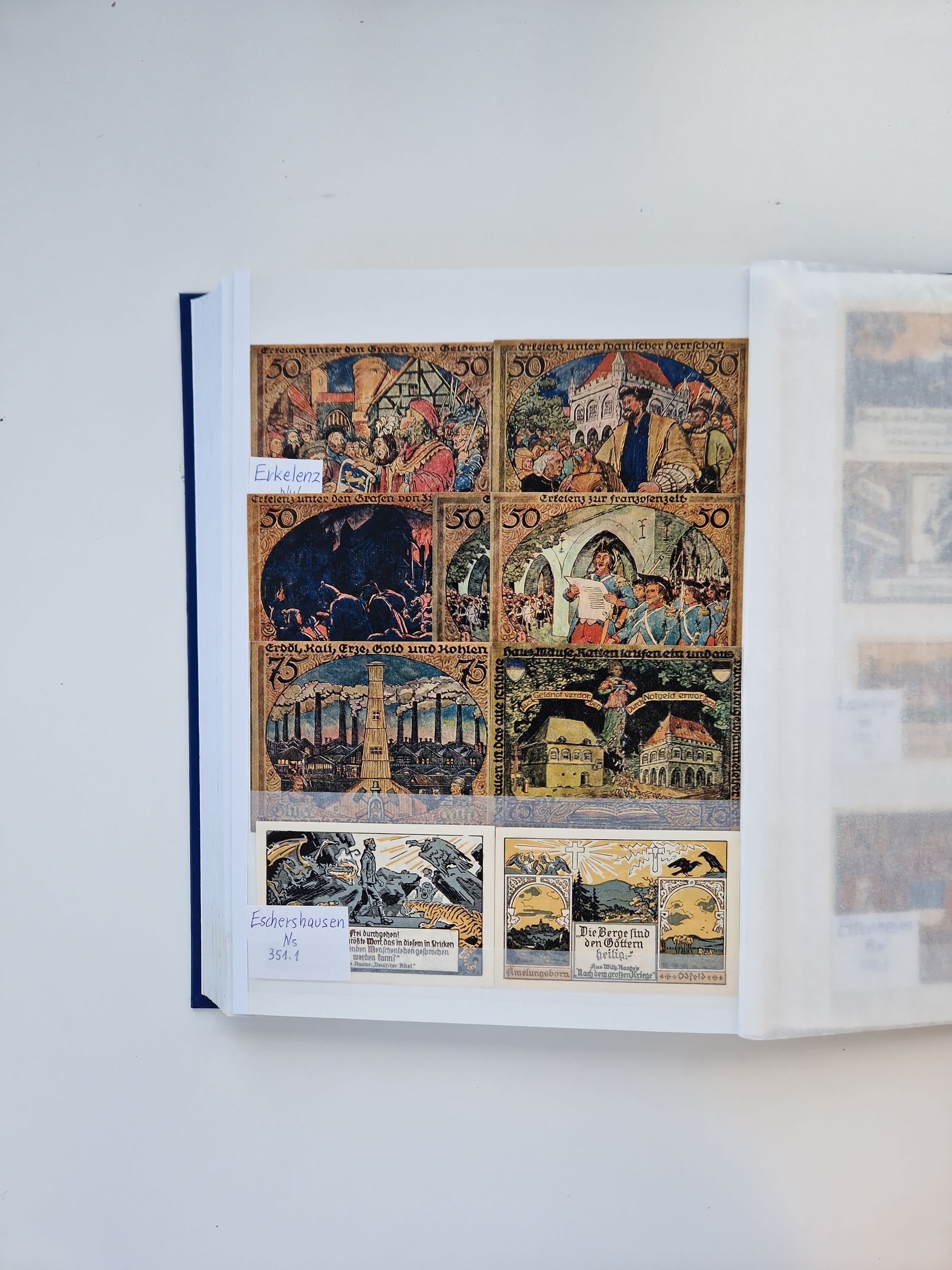 Notgeld-Serienscheine, saubere Sammlung in 16 meist dicken Steckalben, sauber nach Orten und Serien sortiert, überschlägig etwa 7/8000 Stück, dazu 4 Kataloge