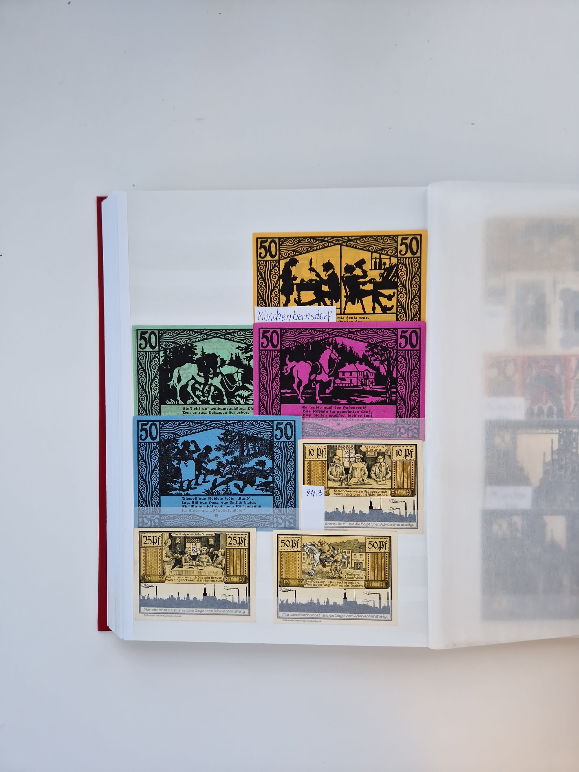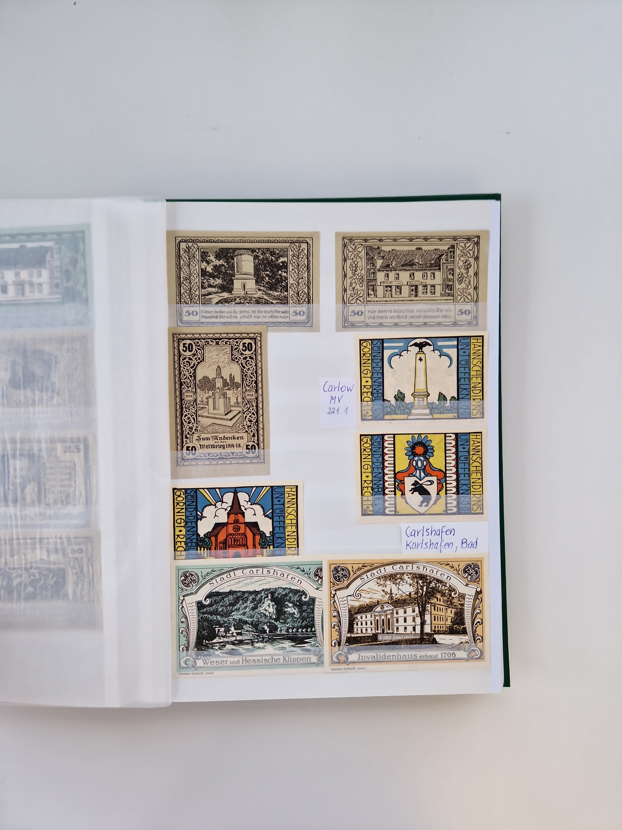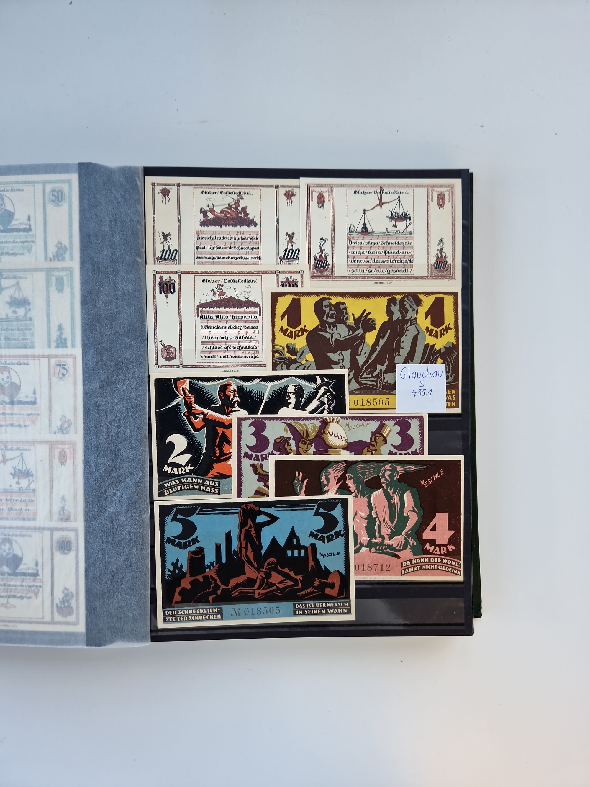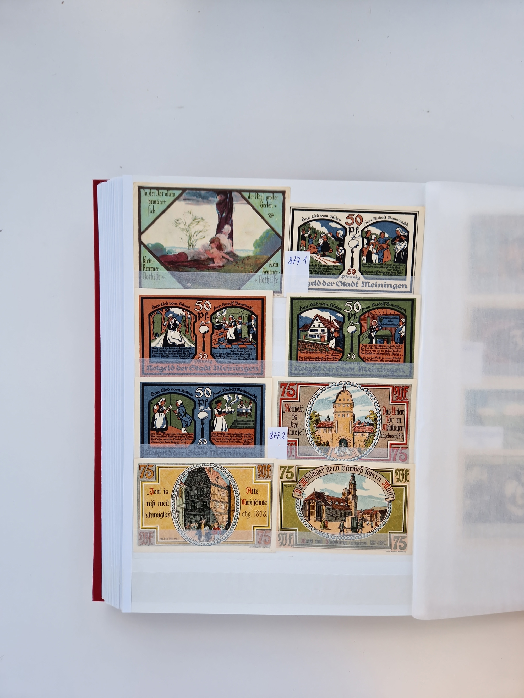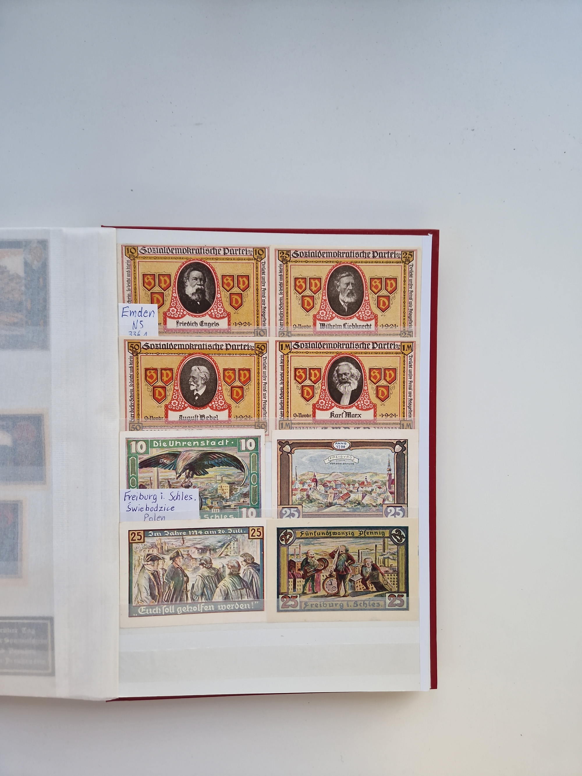 Notgeld-Serienscheine, saubere Sammlung in 16 meist dicken Steckalben, sauber nach Orten und Serien sortiert, überschlägig etwa 7/8000 Stück, dazu 4 Kataloge