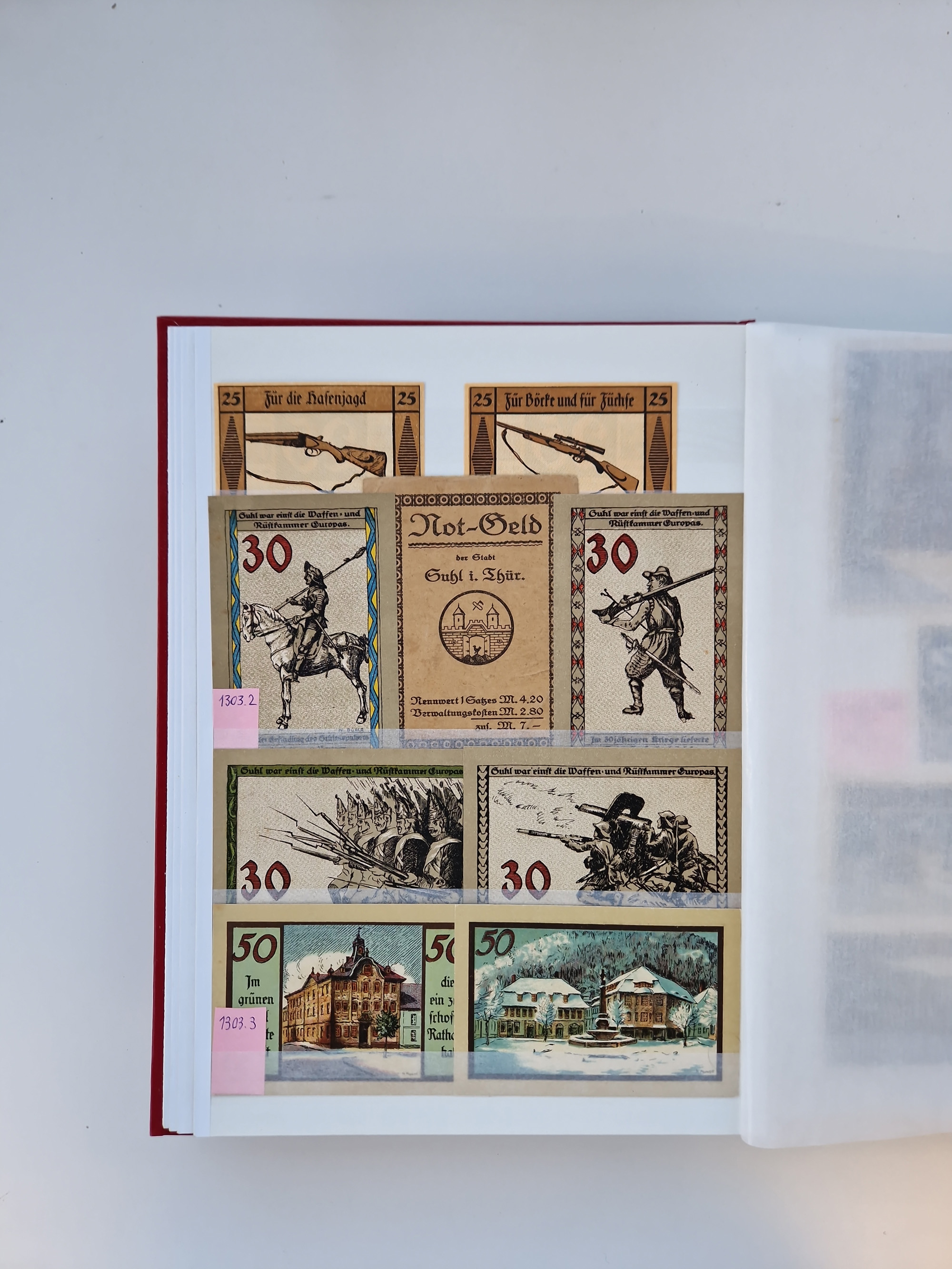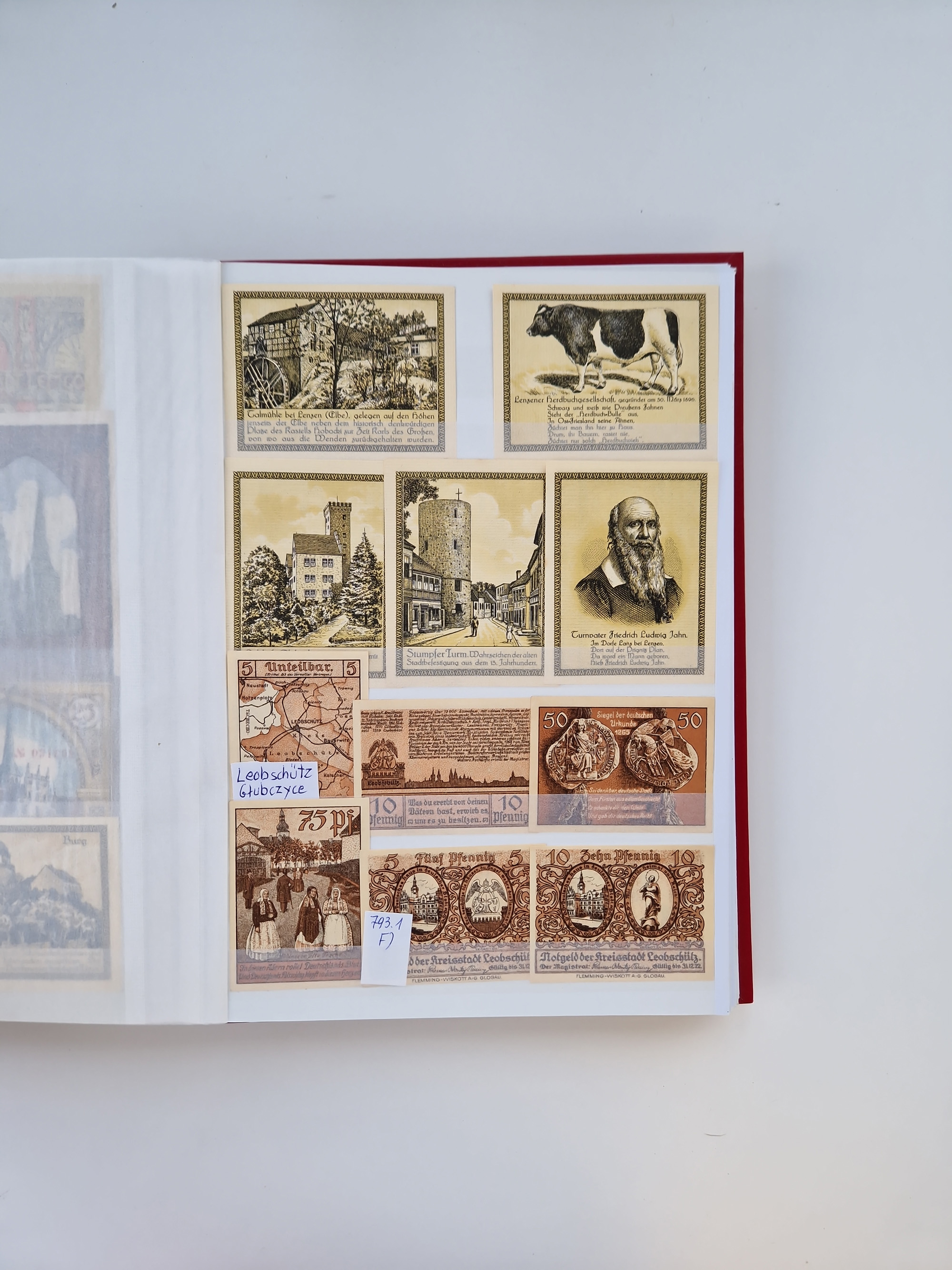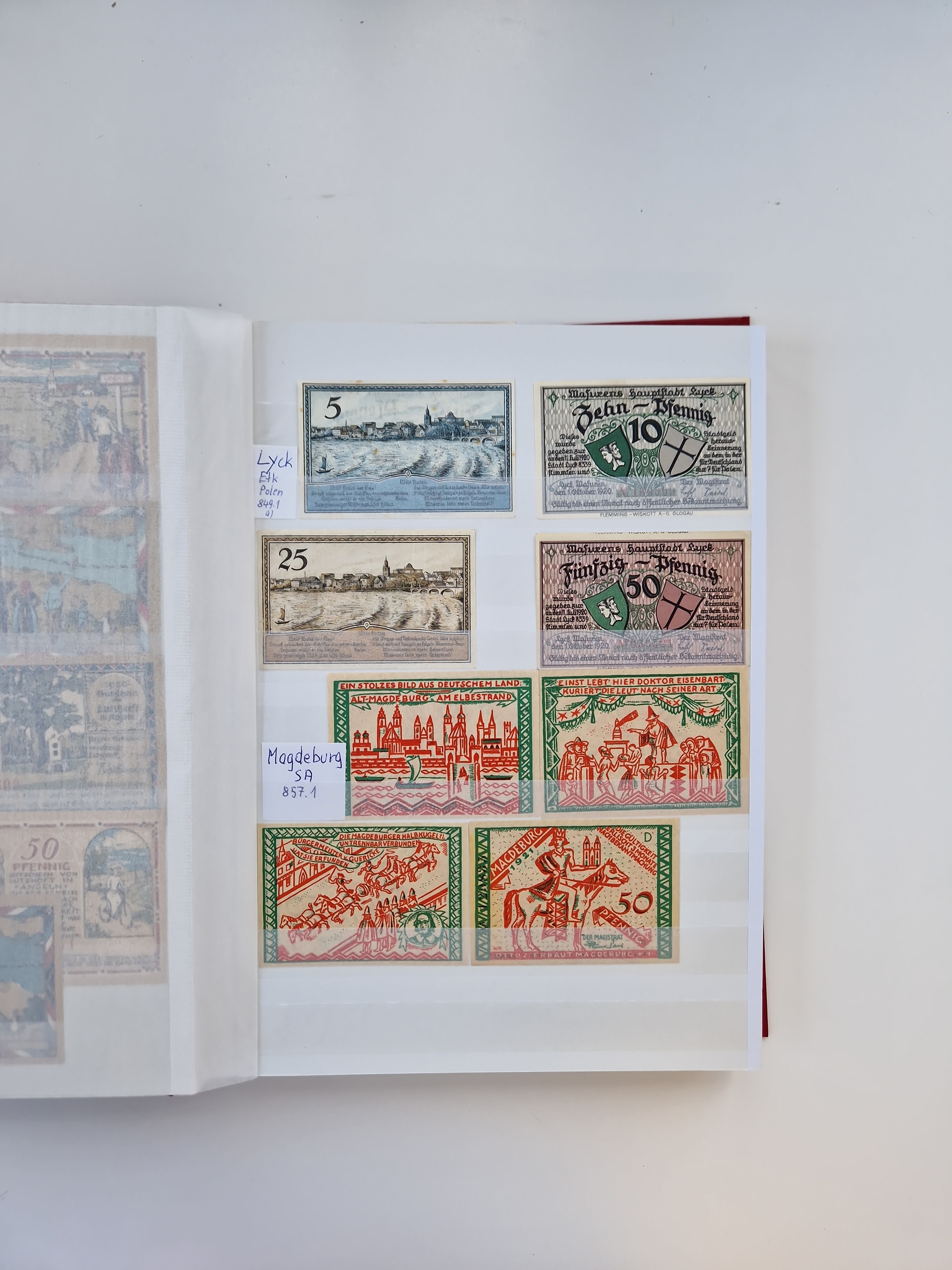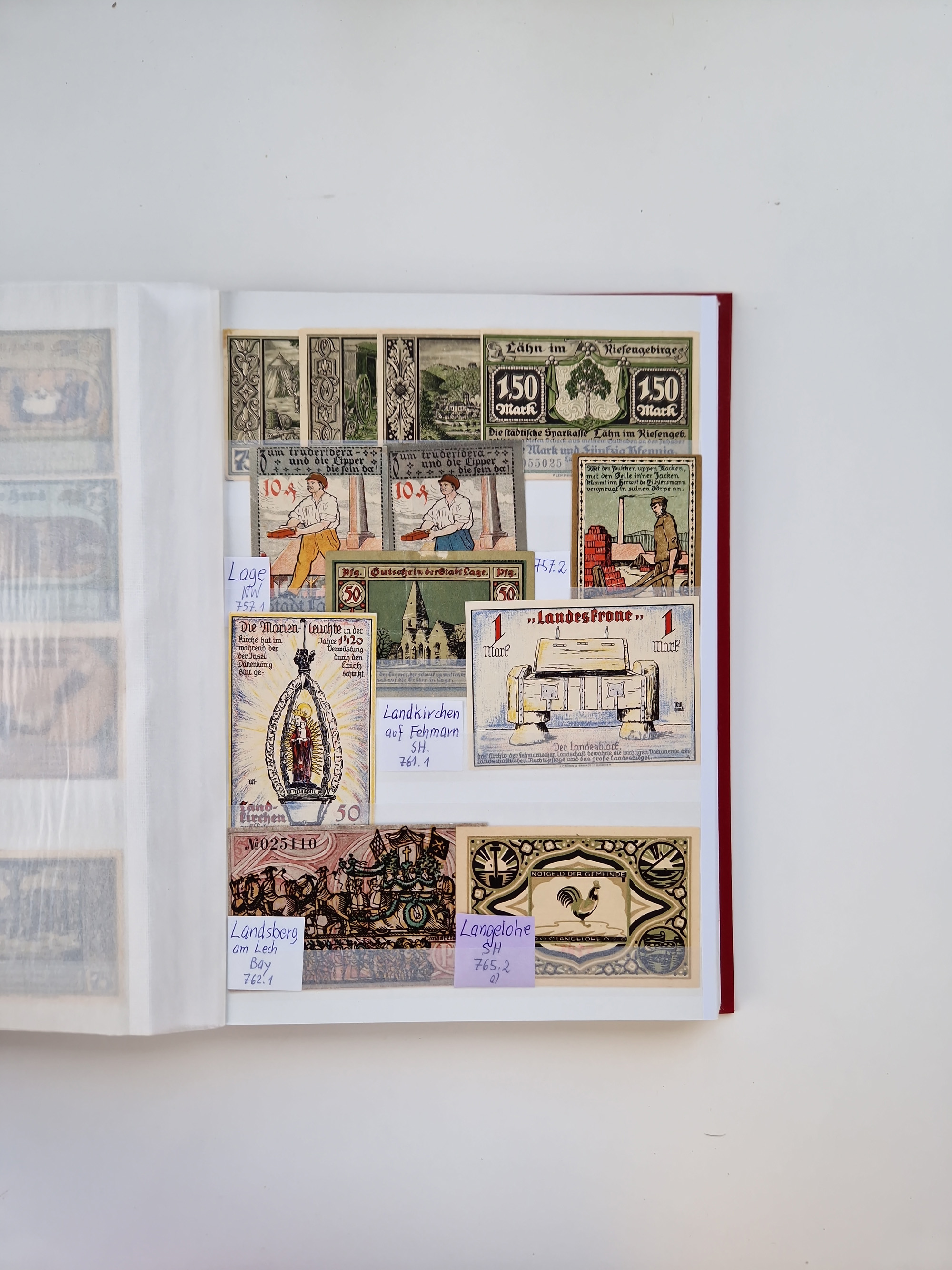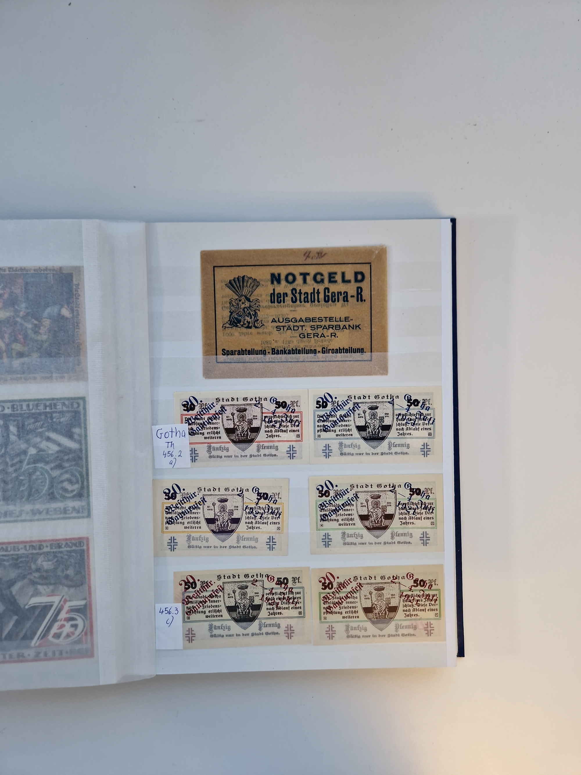 Notgeld-Serienscheine, saubere Sammlung in 16 meist dicken Steckalben, sauber nach Orten und Serien sortiert, überschlägig etwa 7/8000 Stück, dazu 4 Kataloge