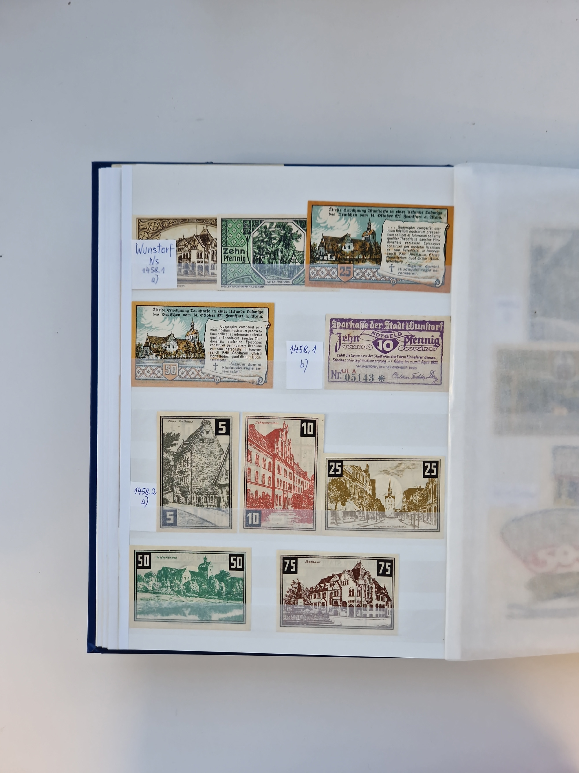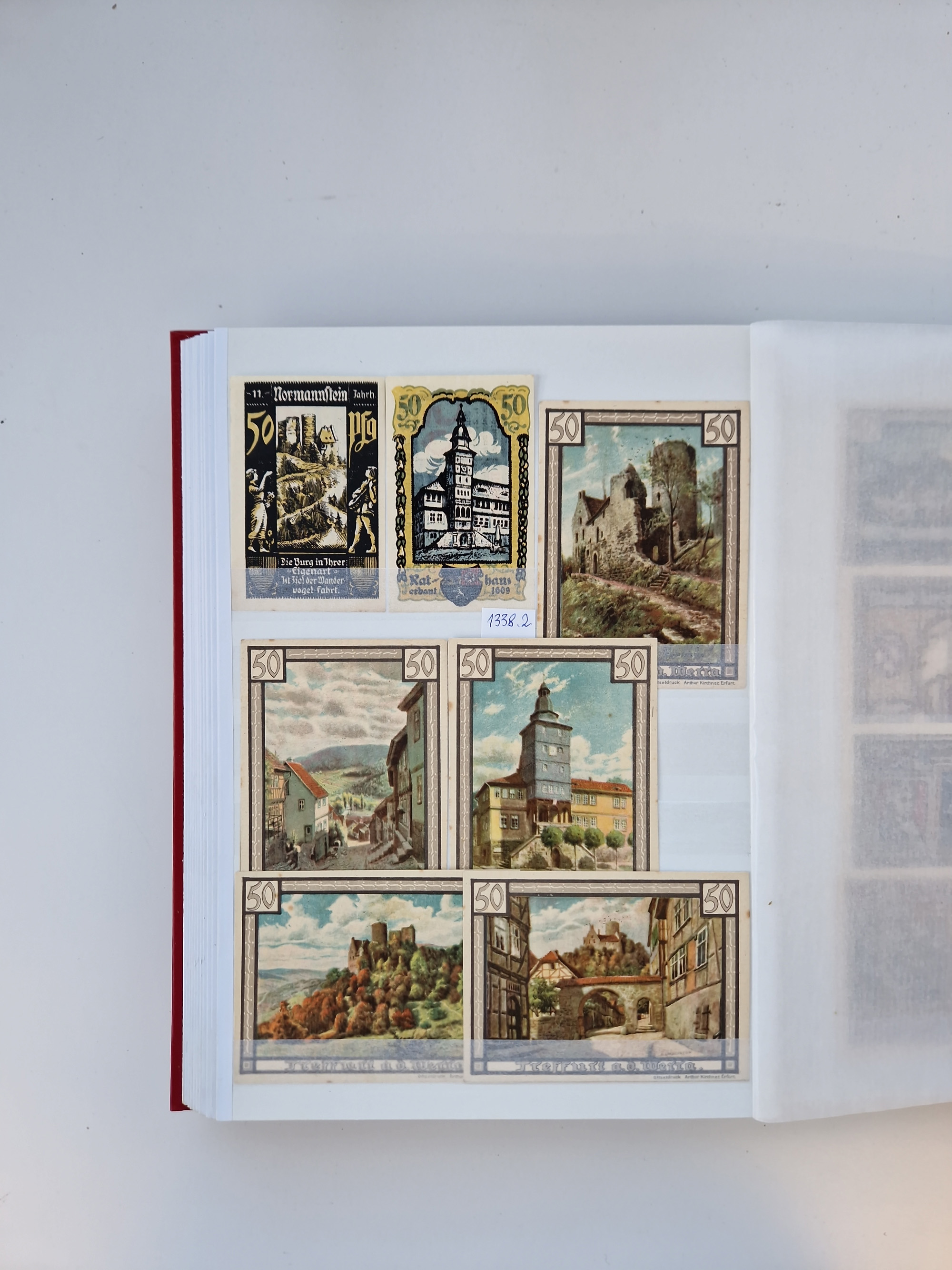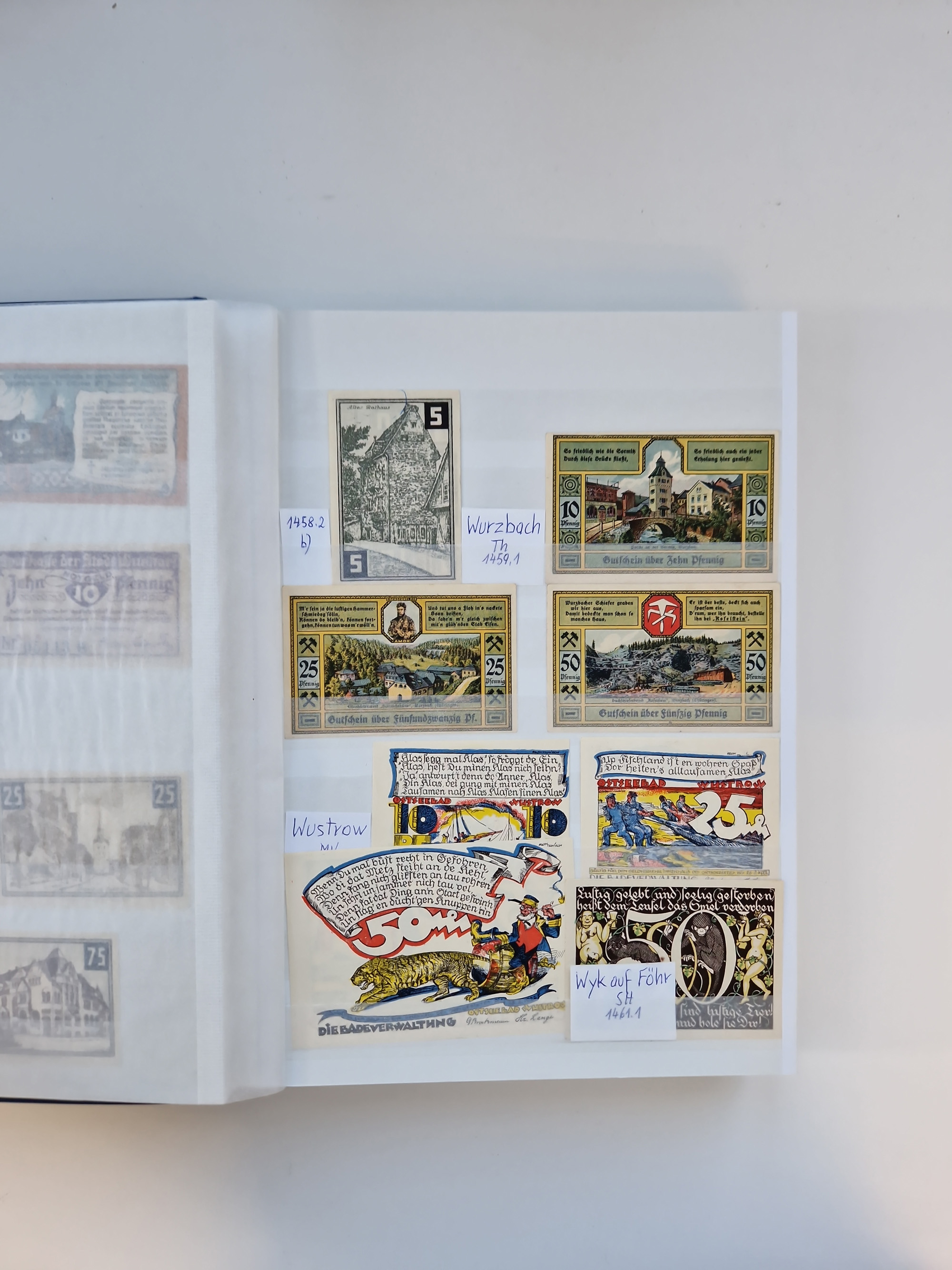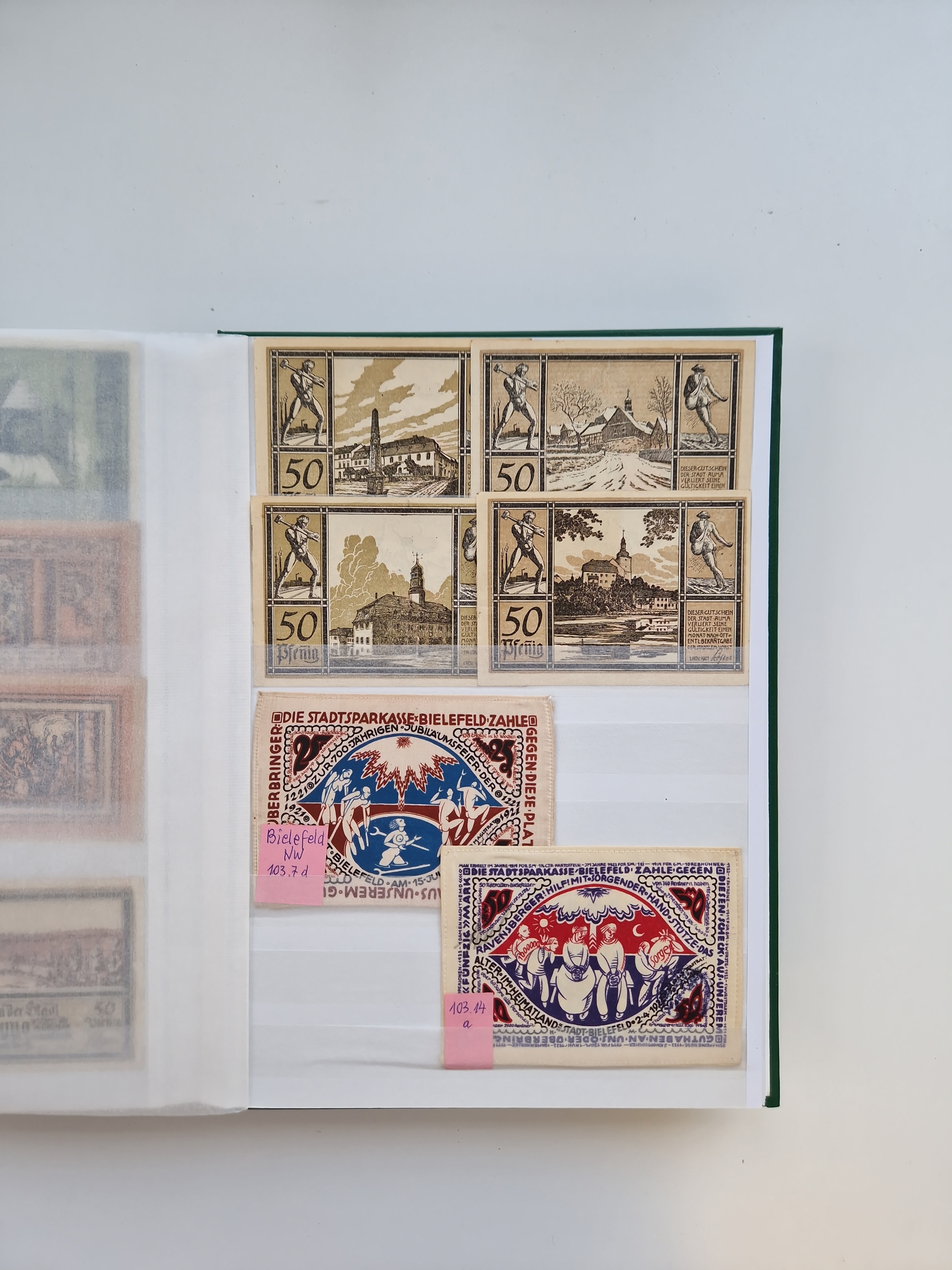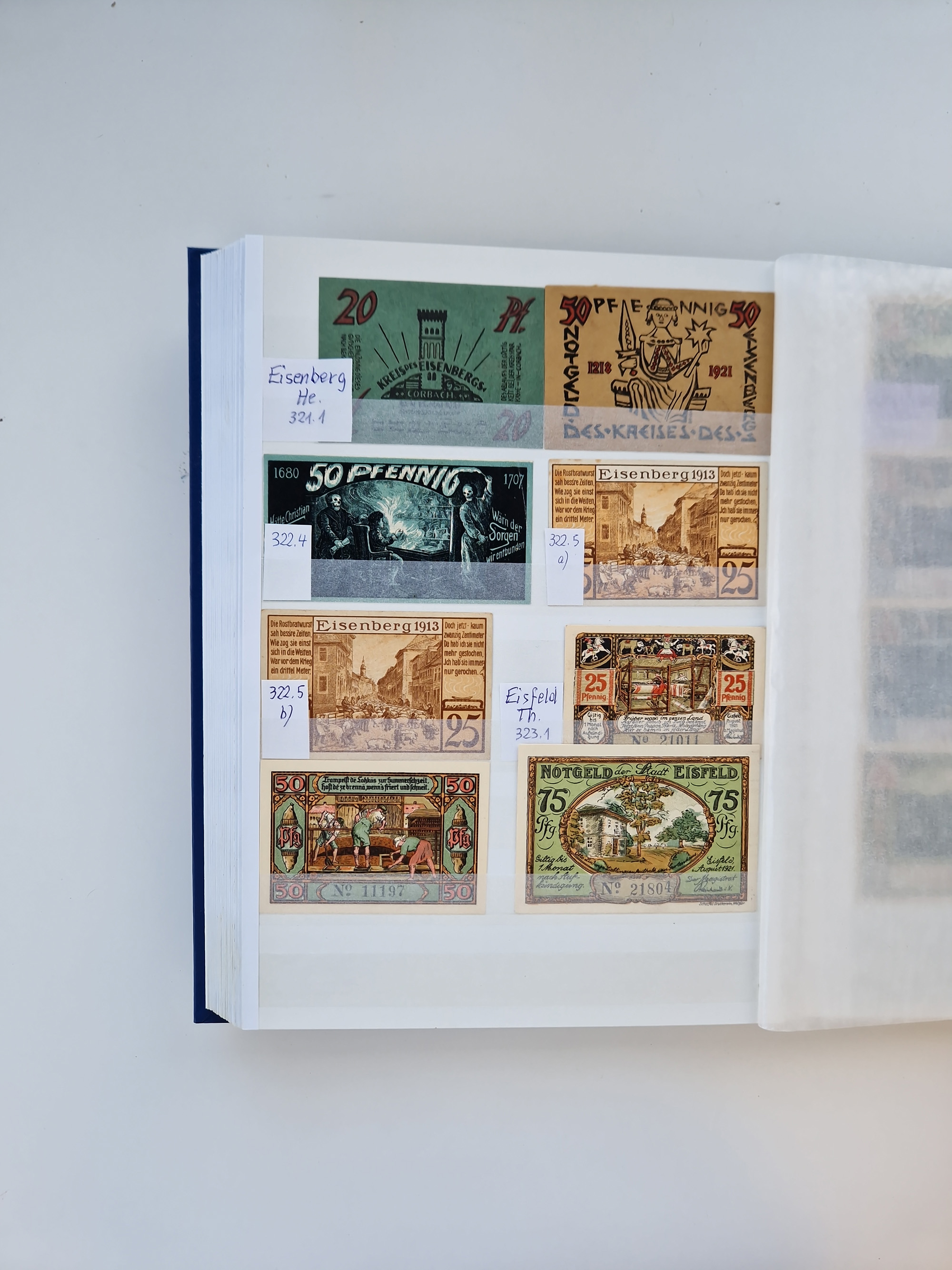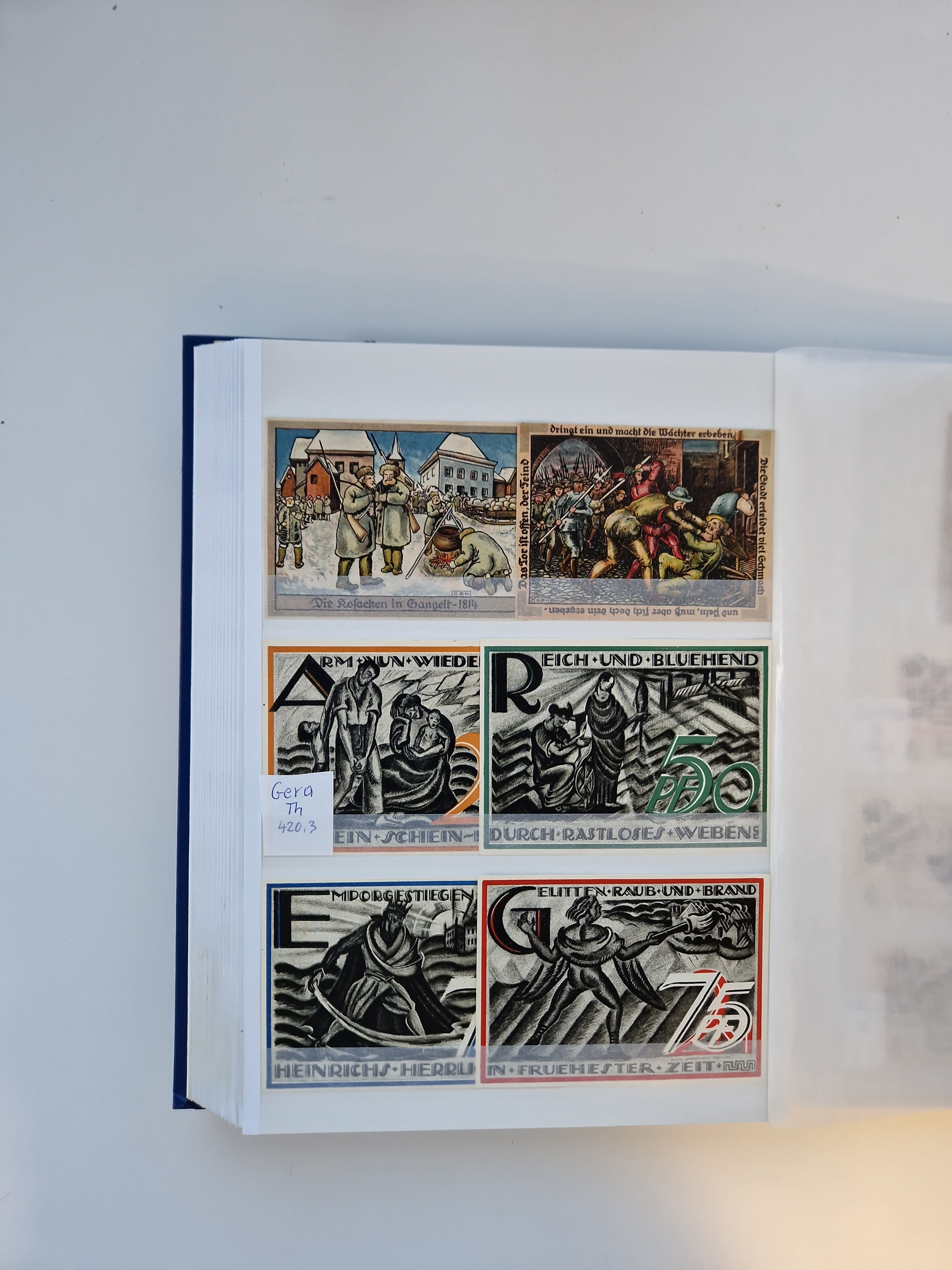 Notgeld-Serienscheine, saubere Sammlung in 16 meist dicken Steckalben, sauber nach Orten und Serien sortiert, überschlägig etwa 7/8000 Stück, dazu 4 Kataloge