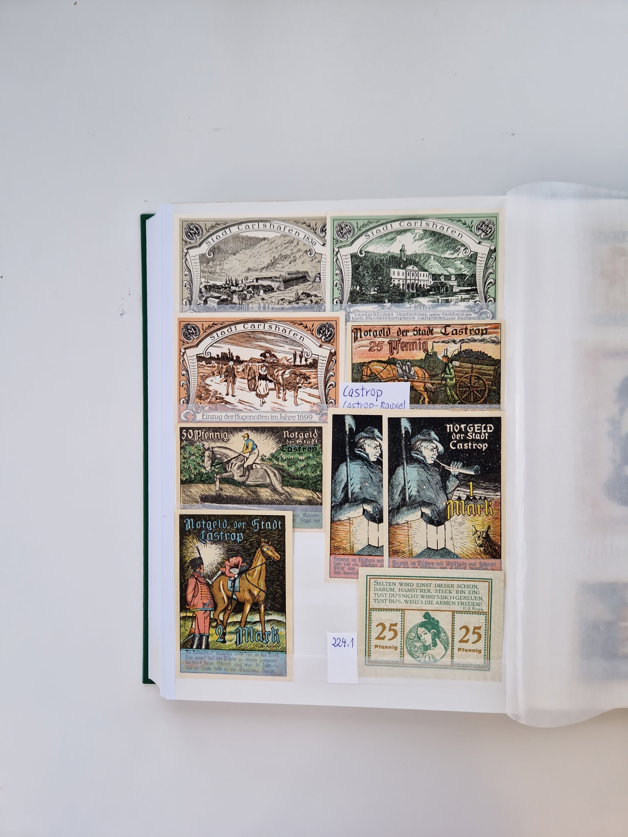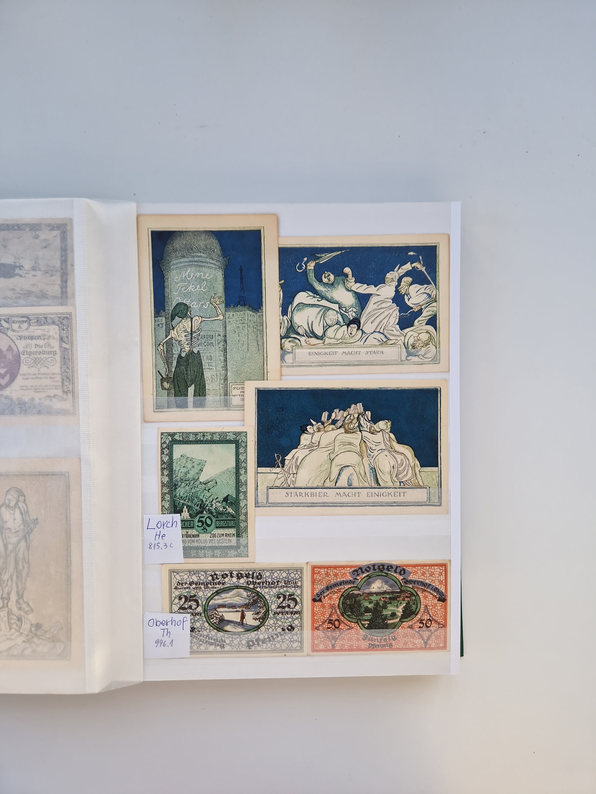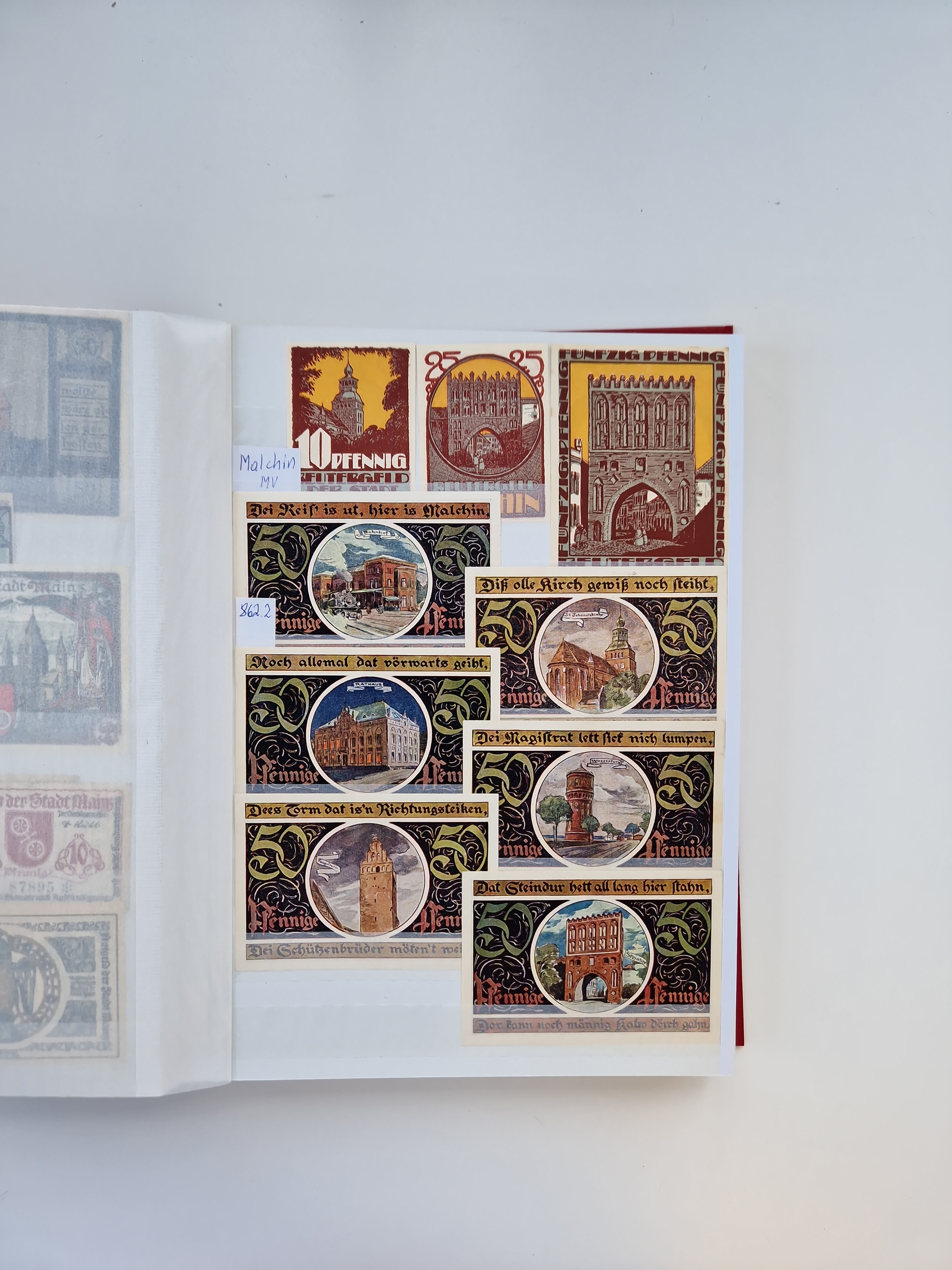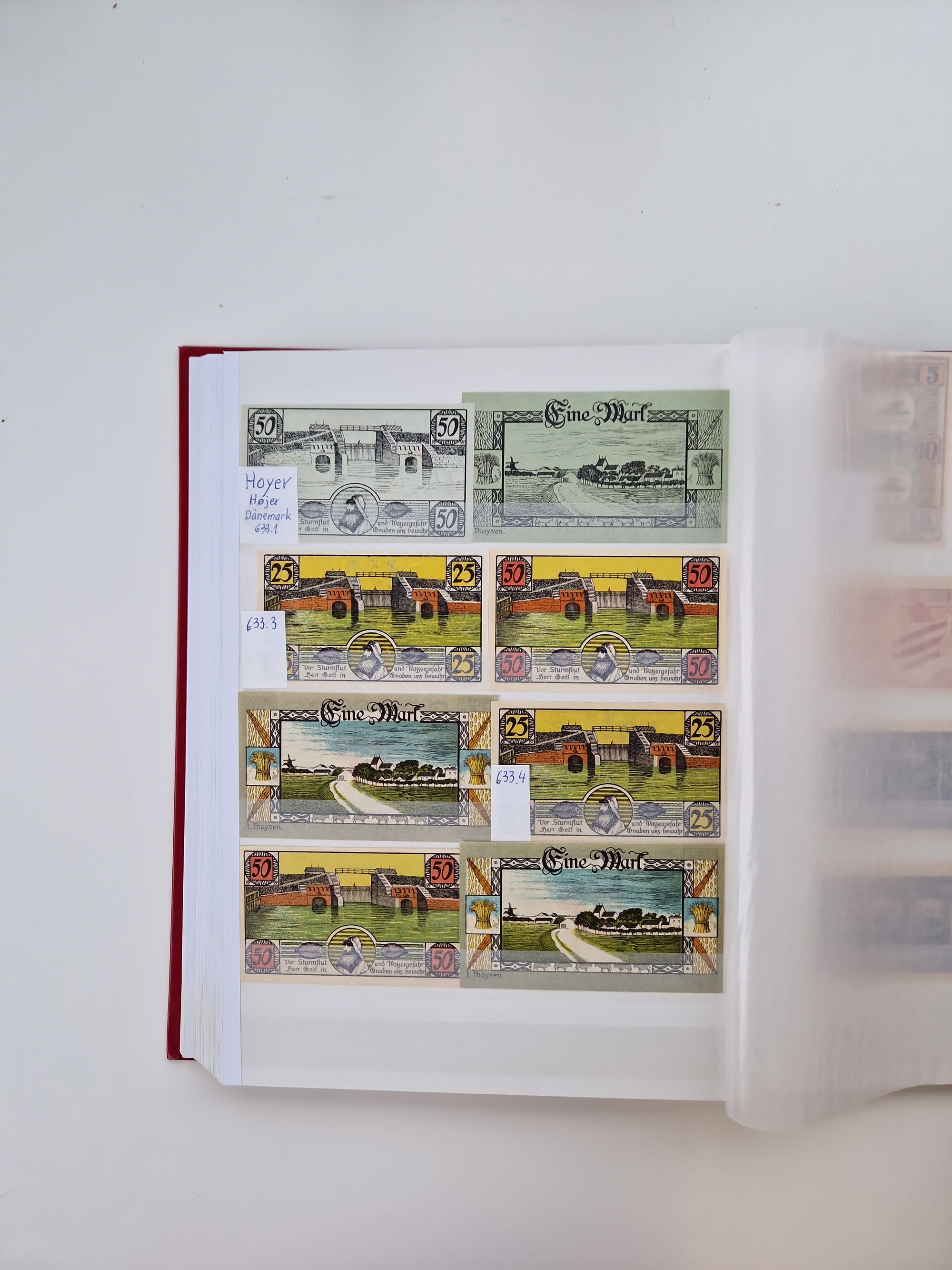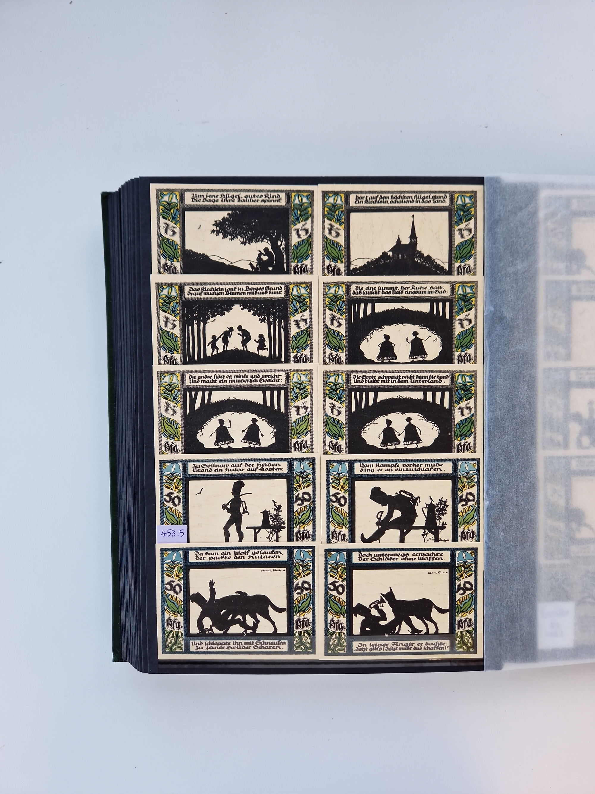 Notgeld-Serienscheine, saubere Sammlung in 16 meist dicken Steckalben, sauber nach Orten und Serien sortiert, überschlägig etwa 7/8000 Stück, dazu 4 Kataloge