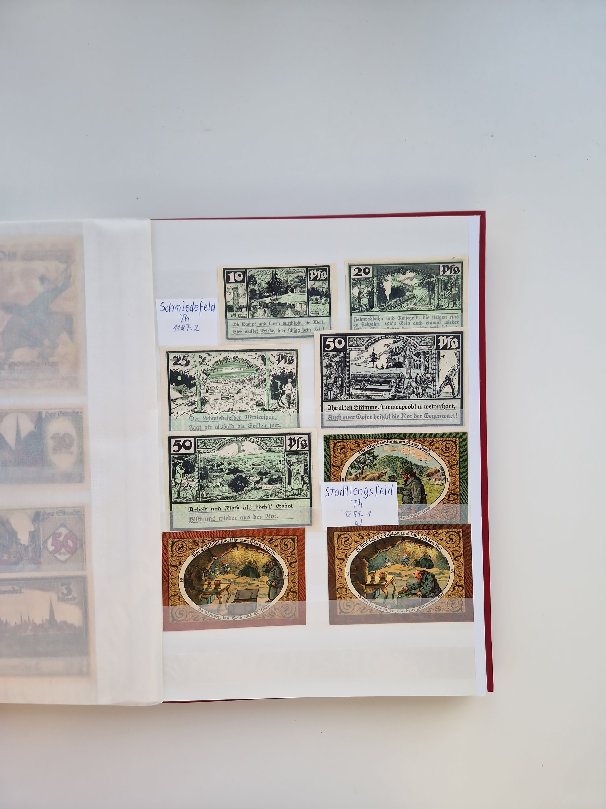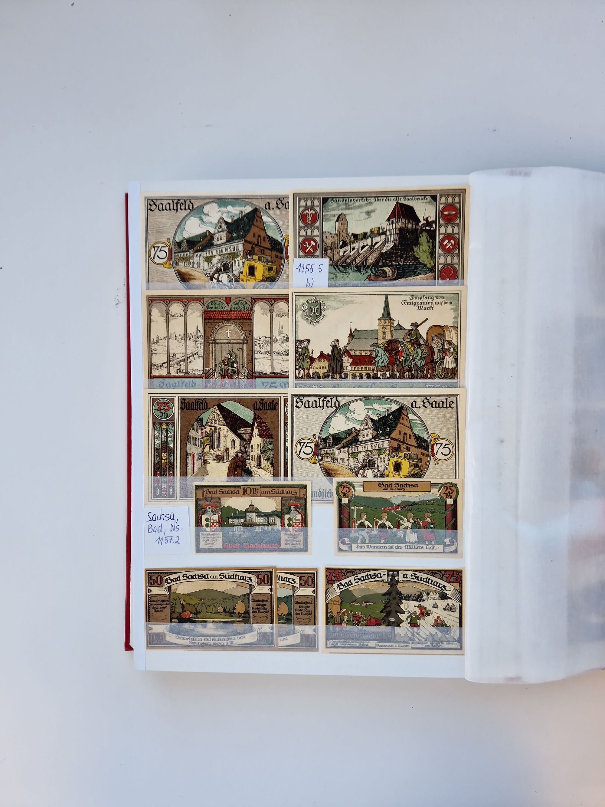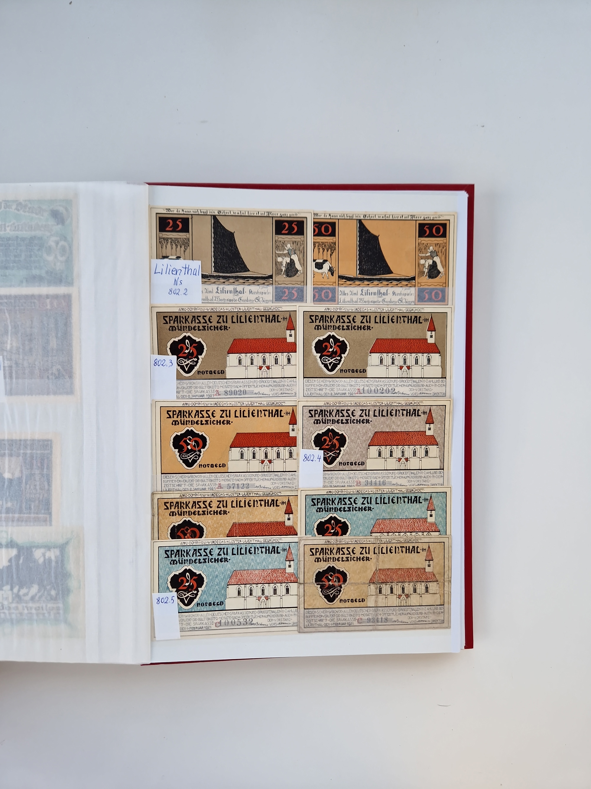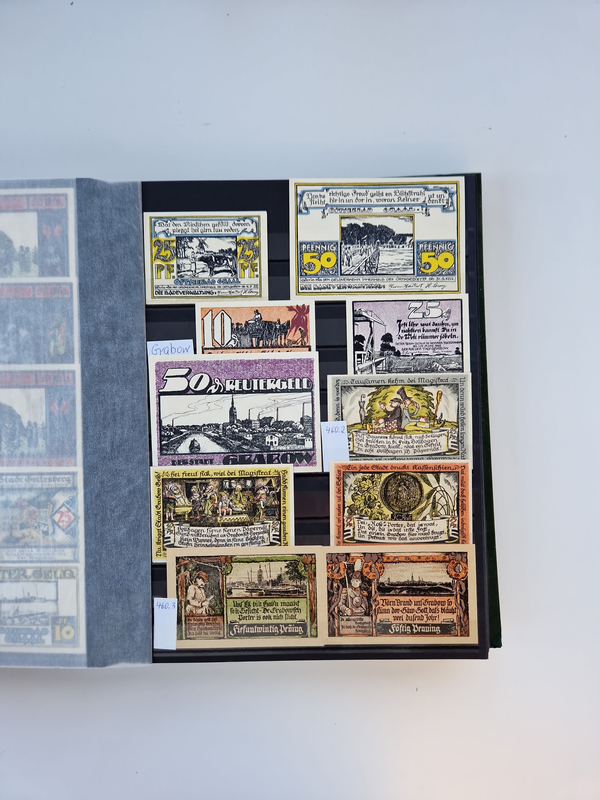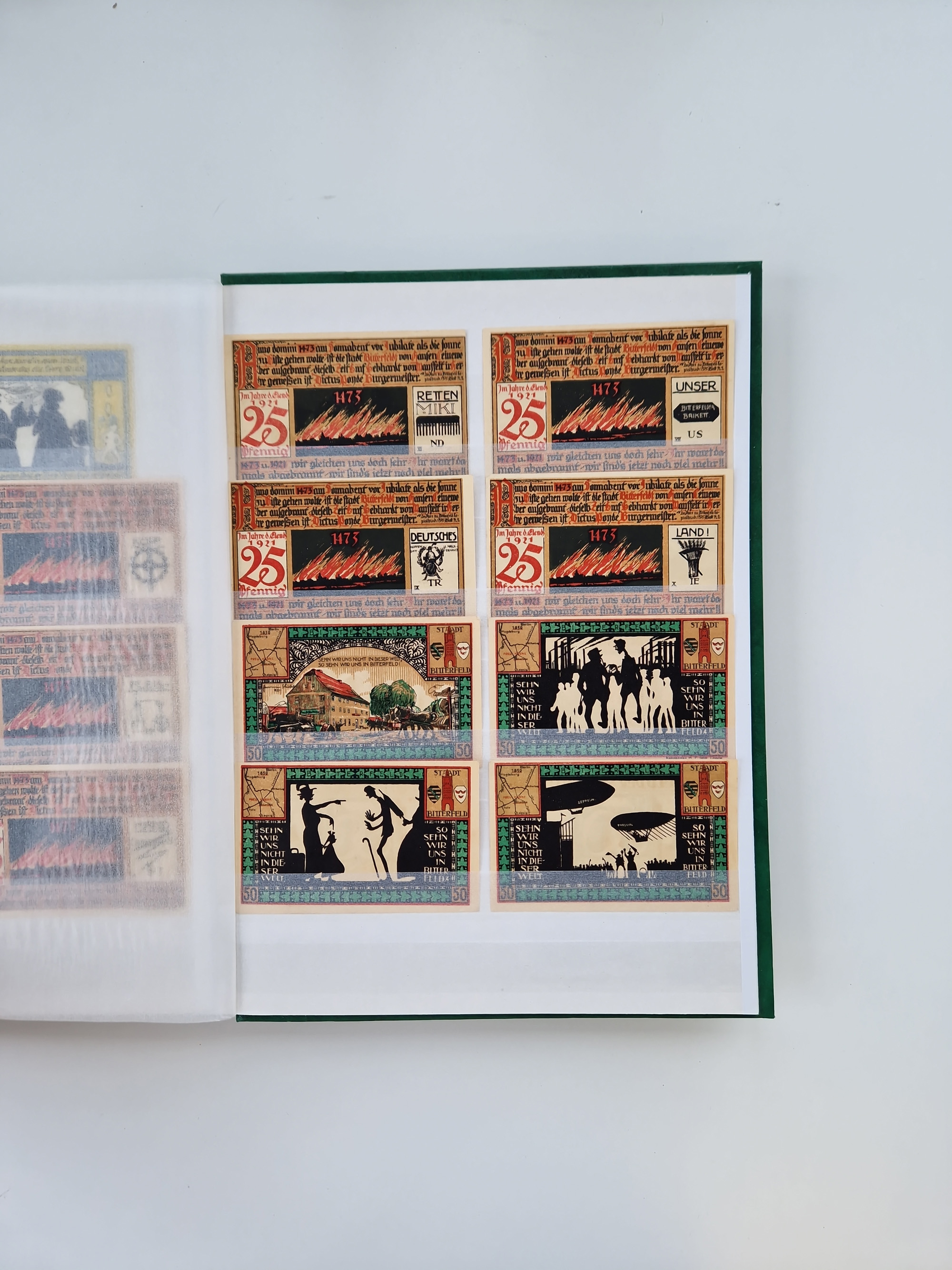 Notgeld-Serienscheine, saubere Sammlung in 16 meist dicken Steckalben, sauber nach Orten und Serien sortiert, überschlägig etwa 7/8000 Stück, dazu 4 Kataloge