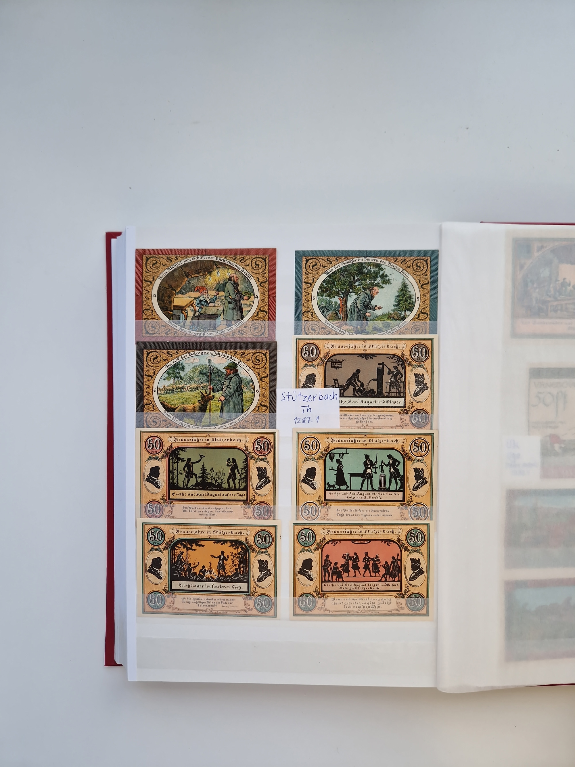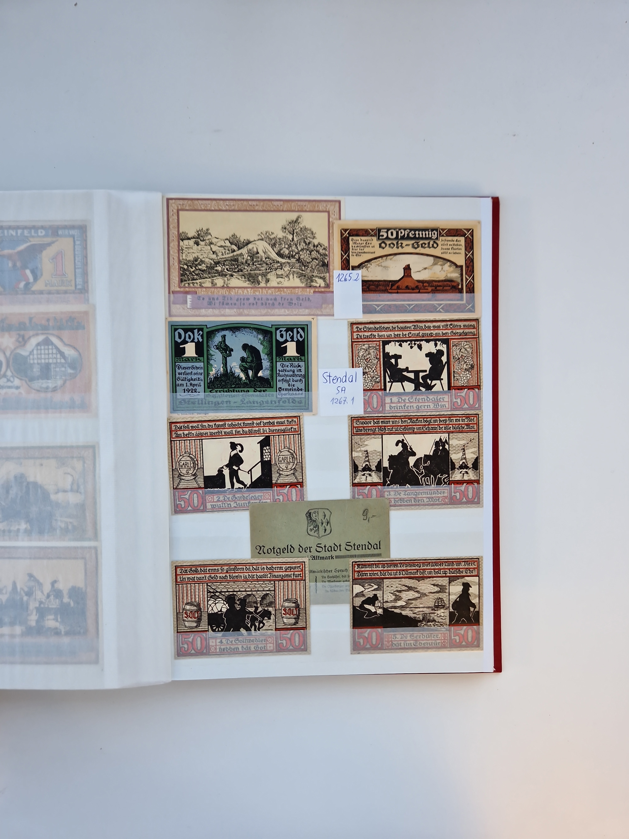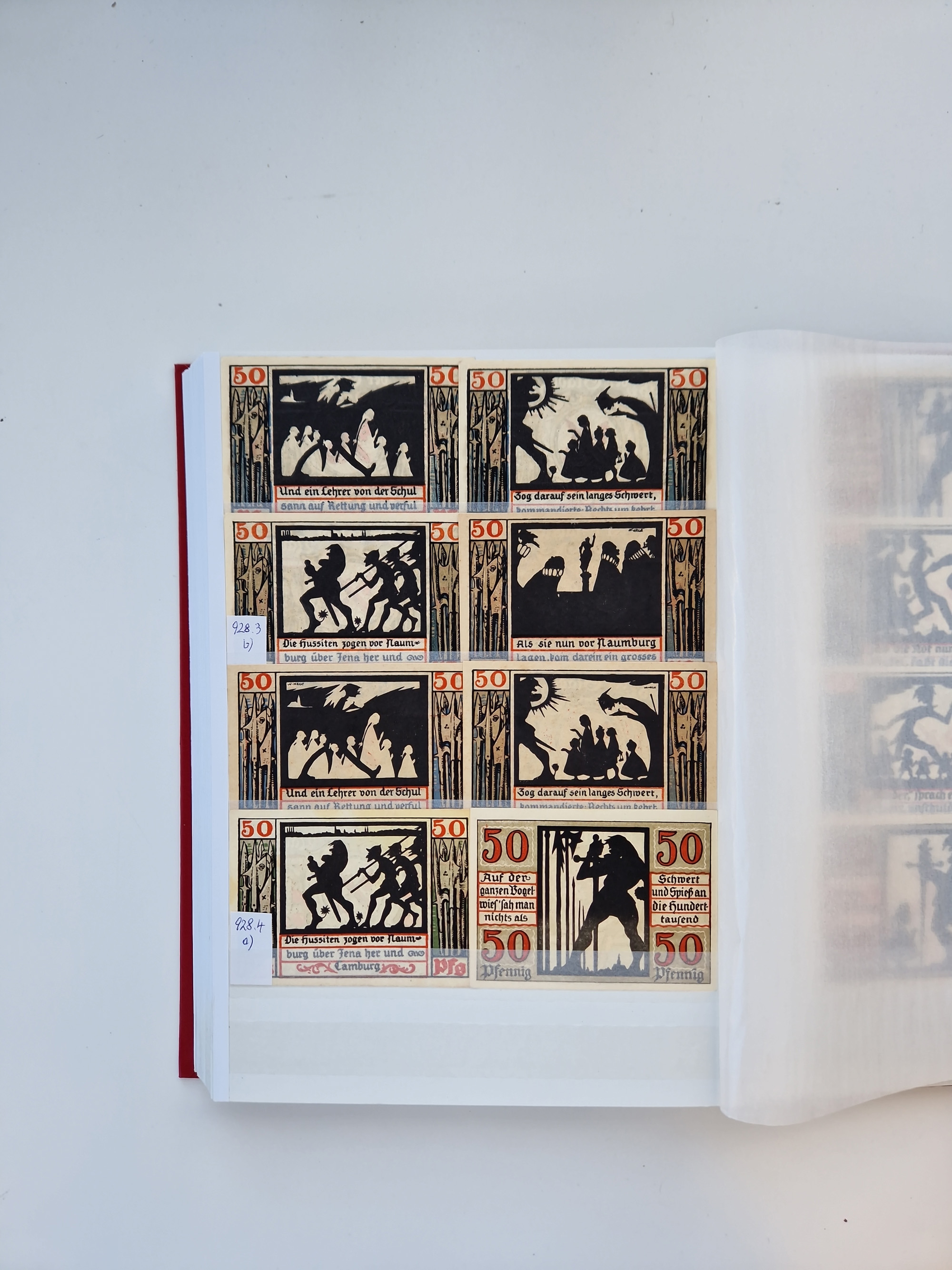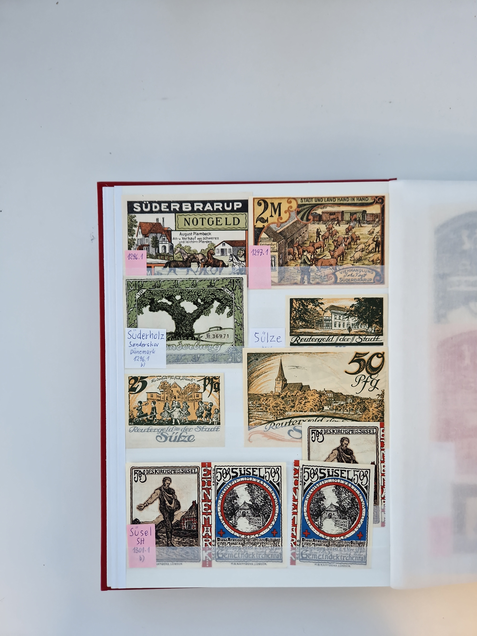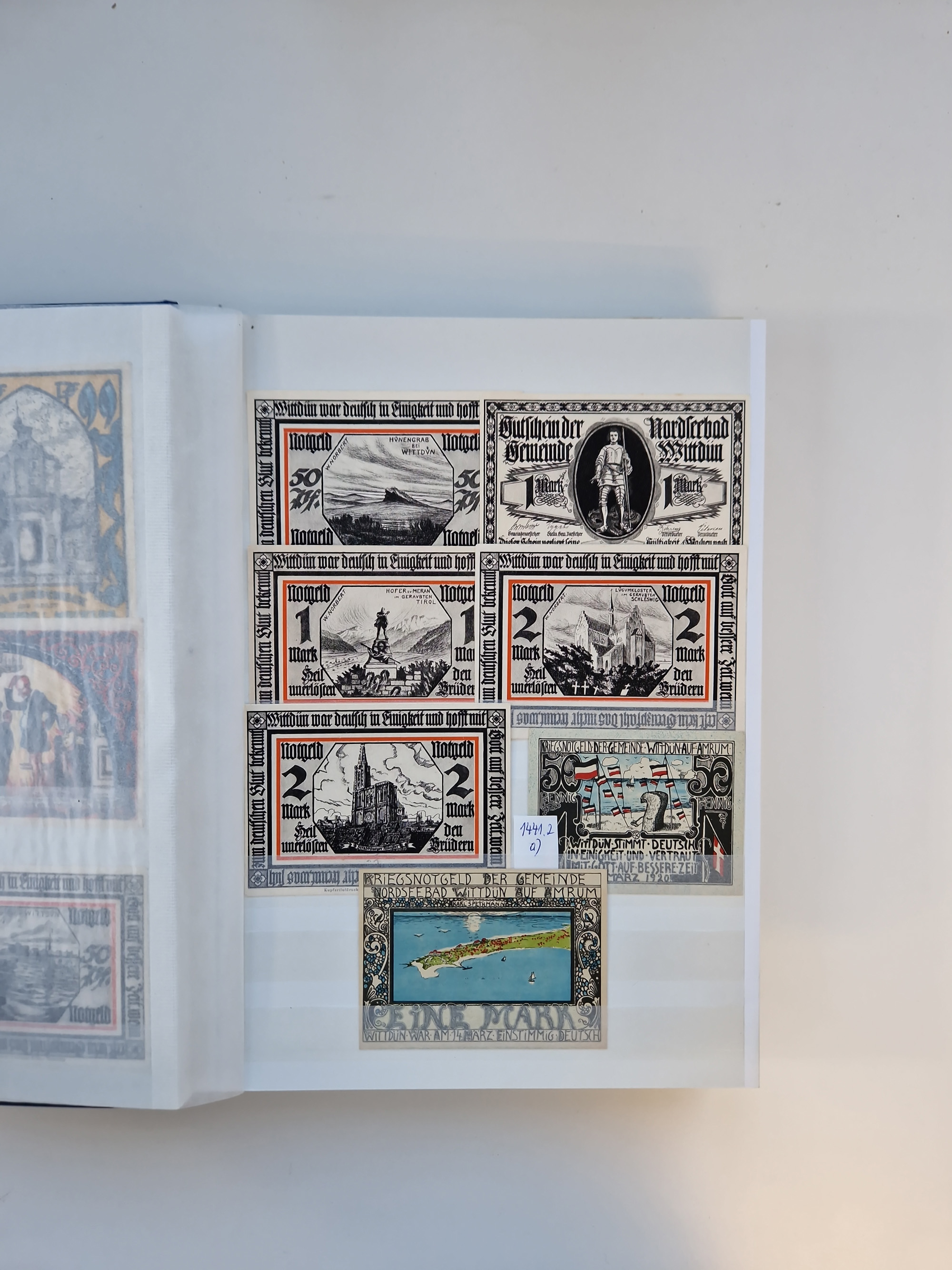 Notgeld-Serienscheine, saubere Sammlung in 16 meist dicken Steckalben, sauber nach Orten und Serien sortiert, überschlägig etwa 7/8000 Stück, dazu 4 Kataloge
