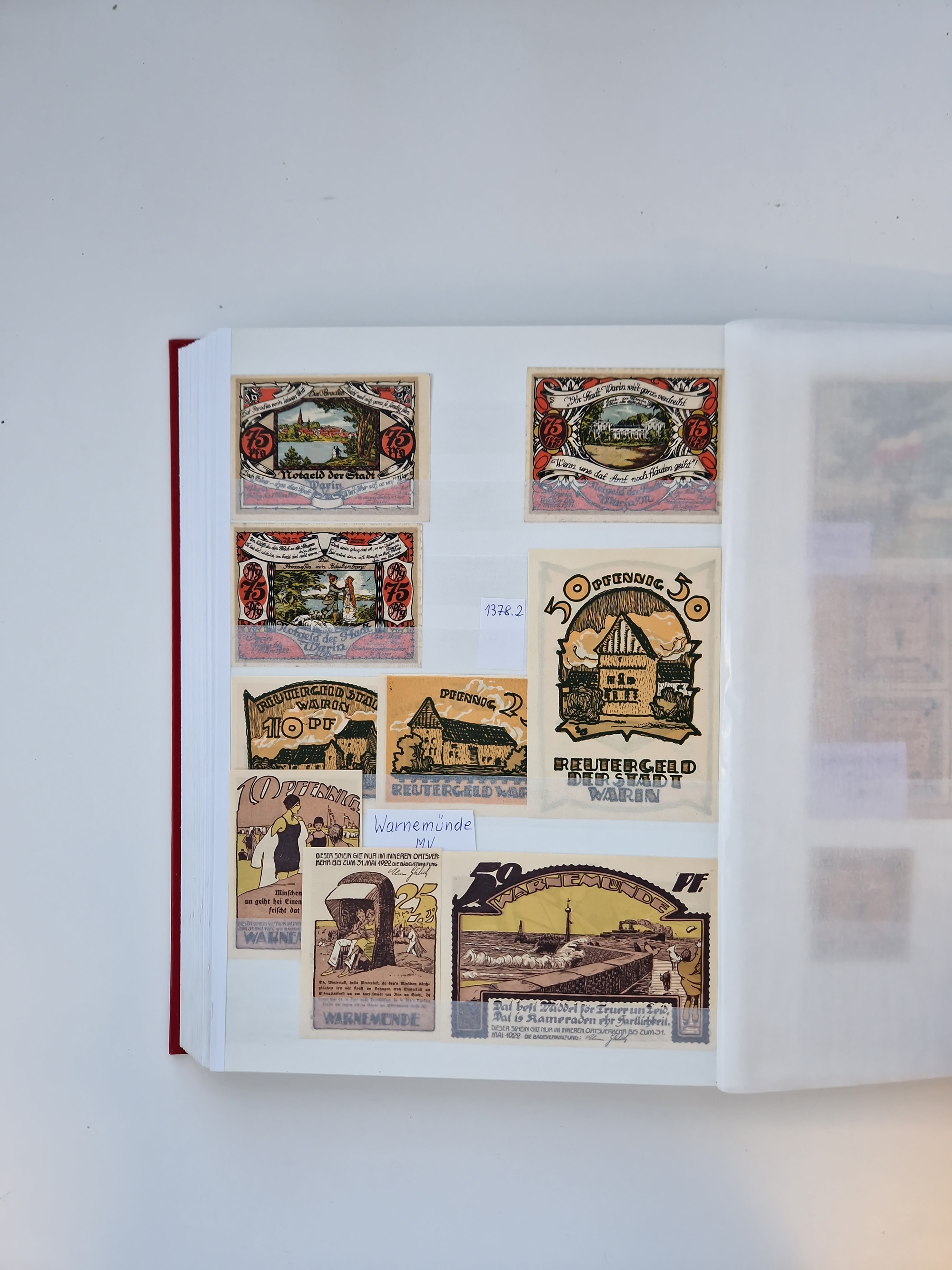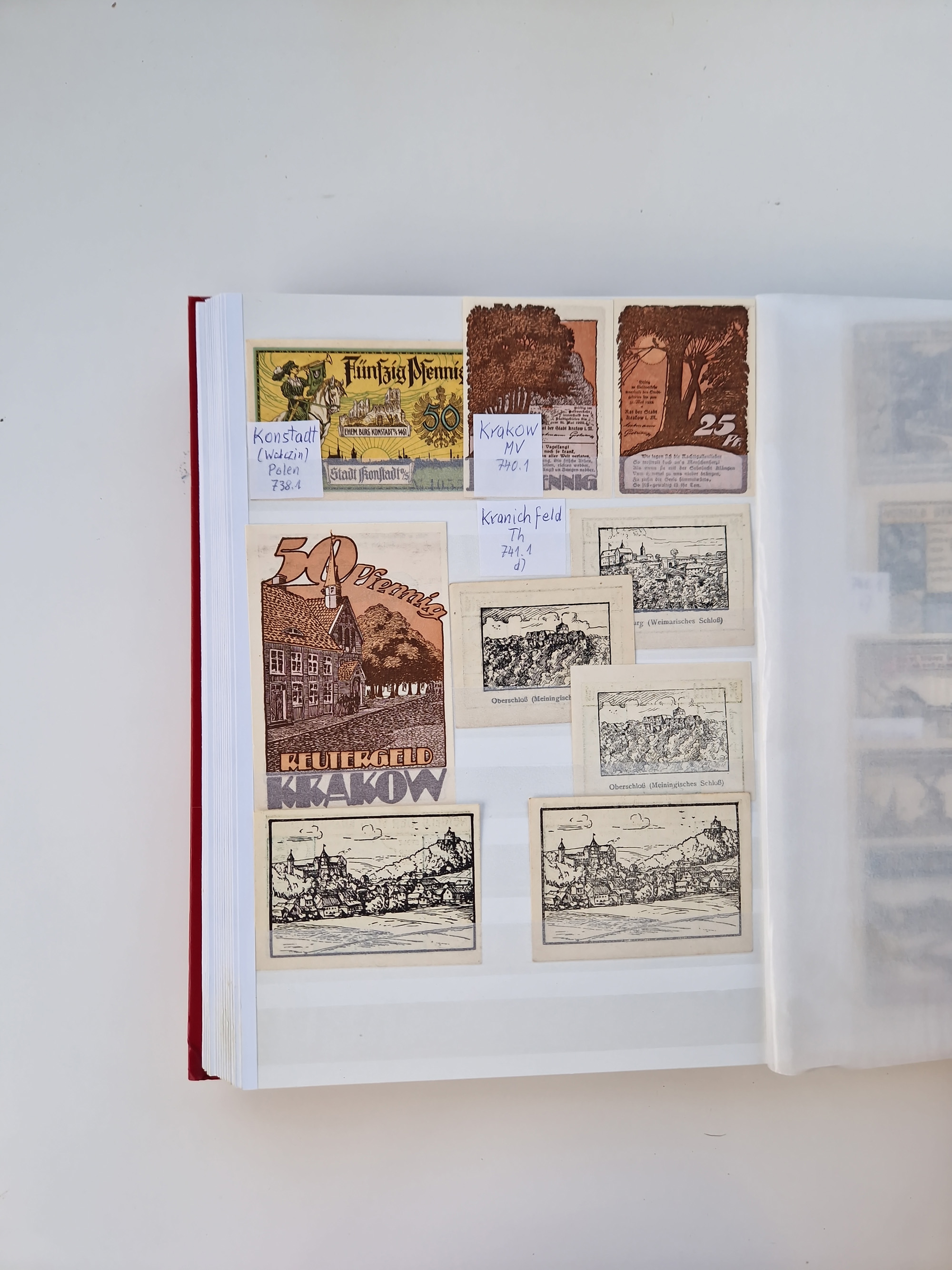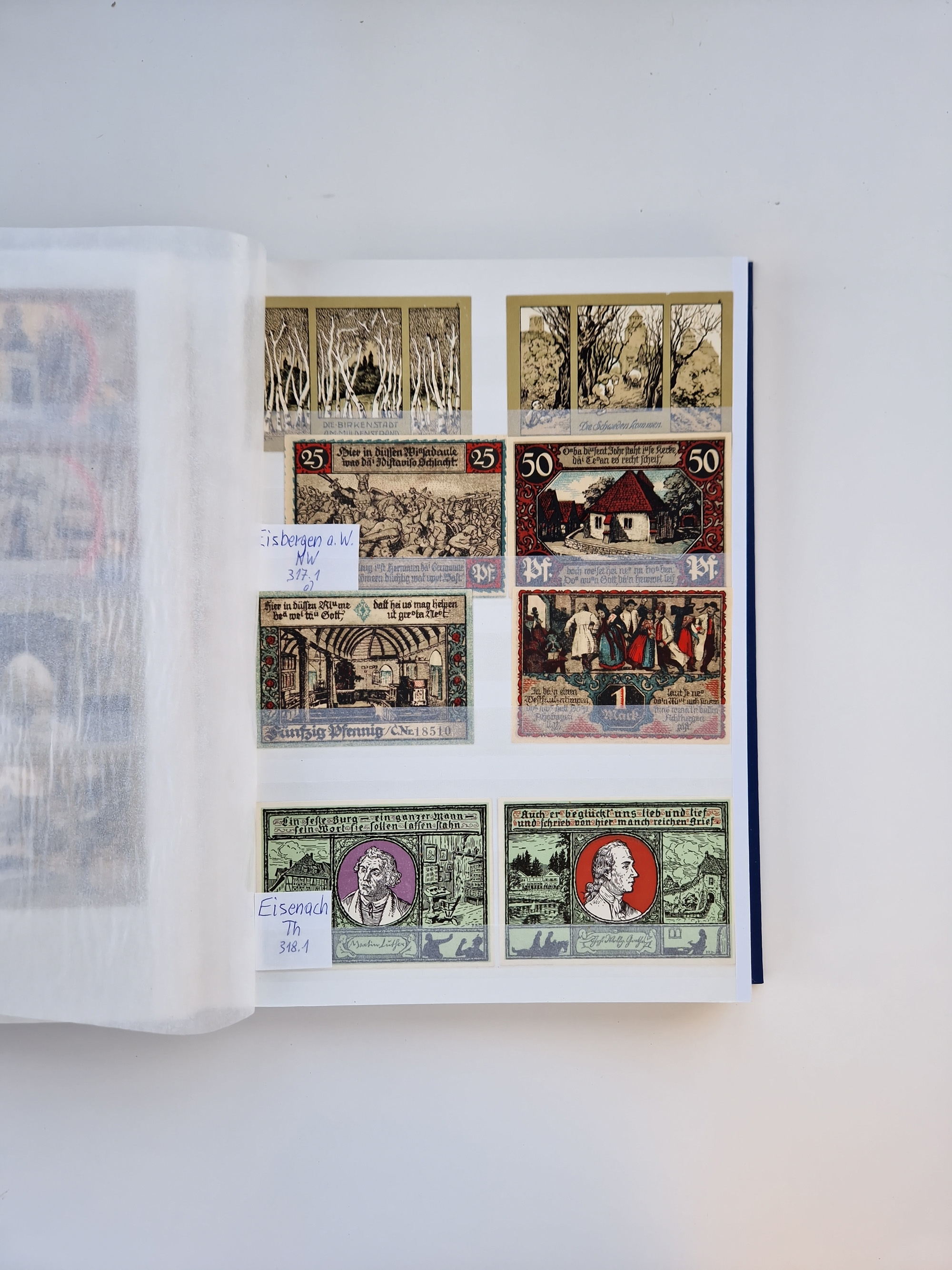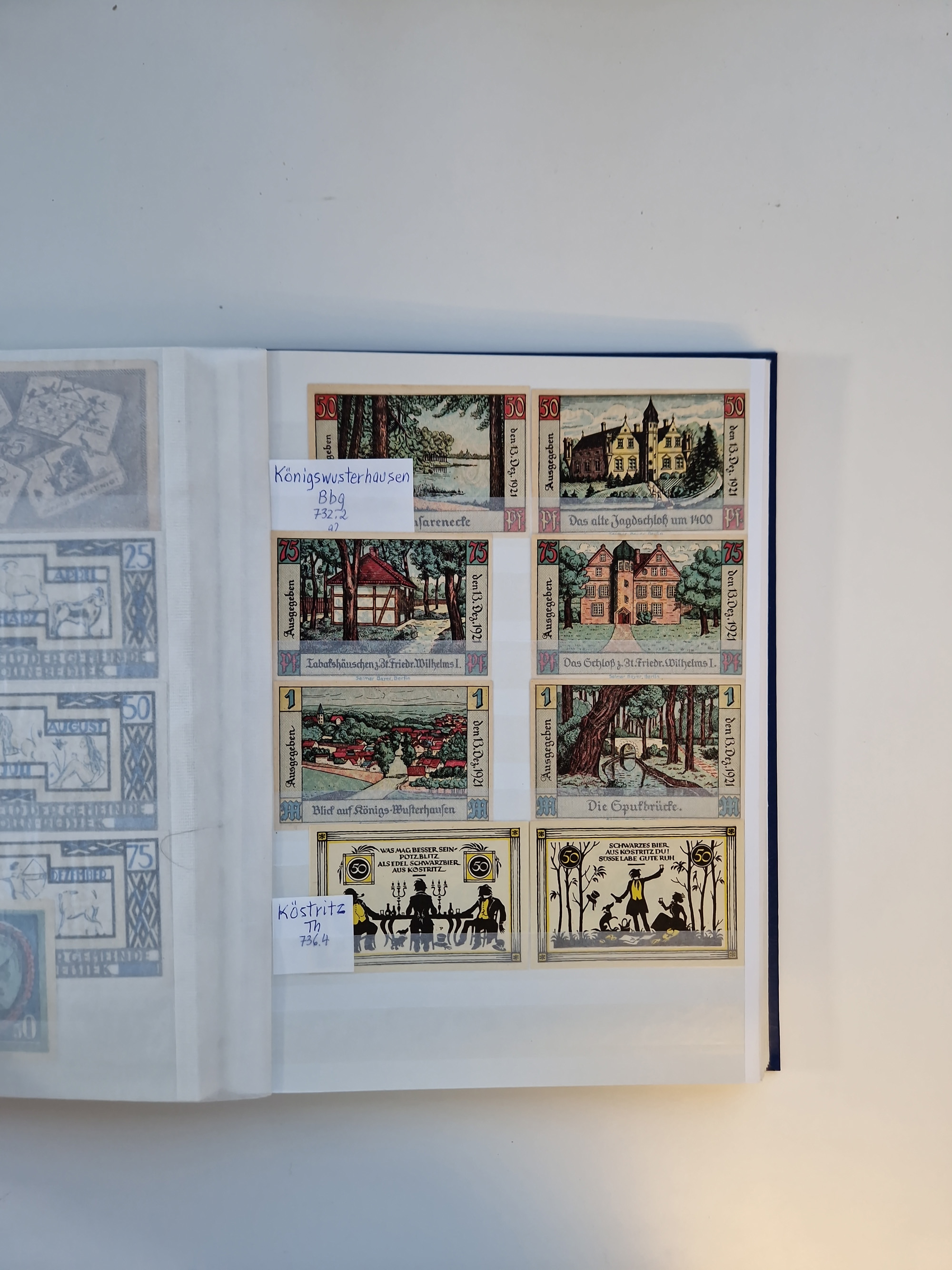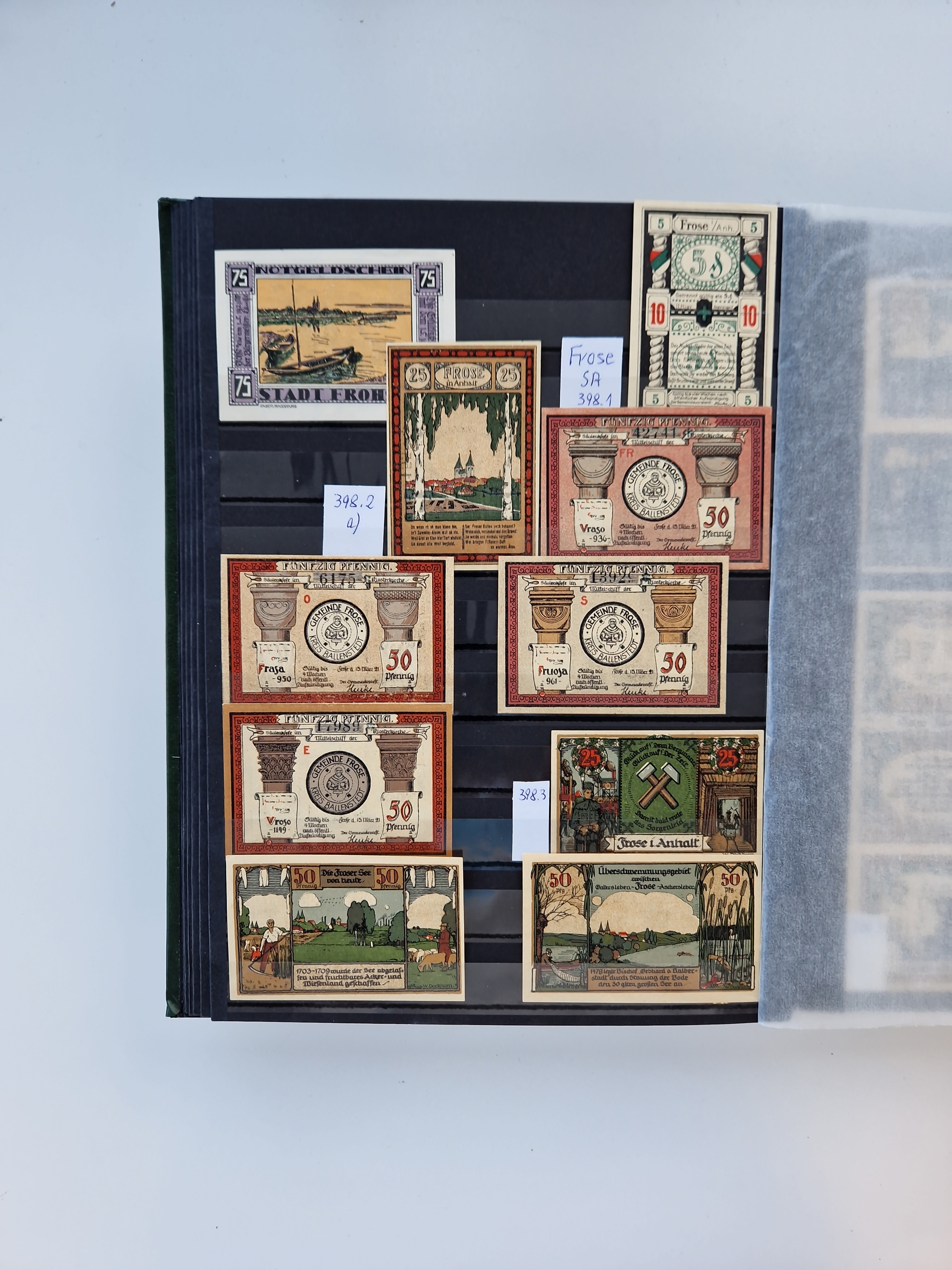 Notgeld-Serienscheine, saubere Sammlung in 16 meist dicken Steckalben, sauber nach Orten und Serien sortiert, überschlägig etwa 7/8000 Stück, dazu 4 Kataloge
