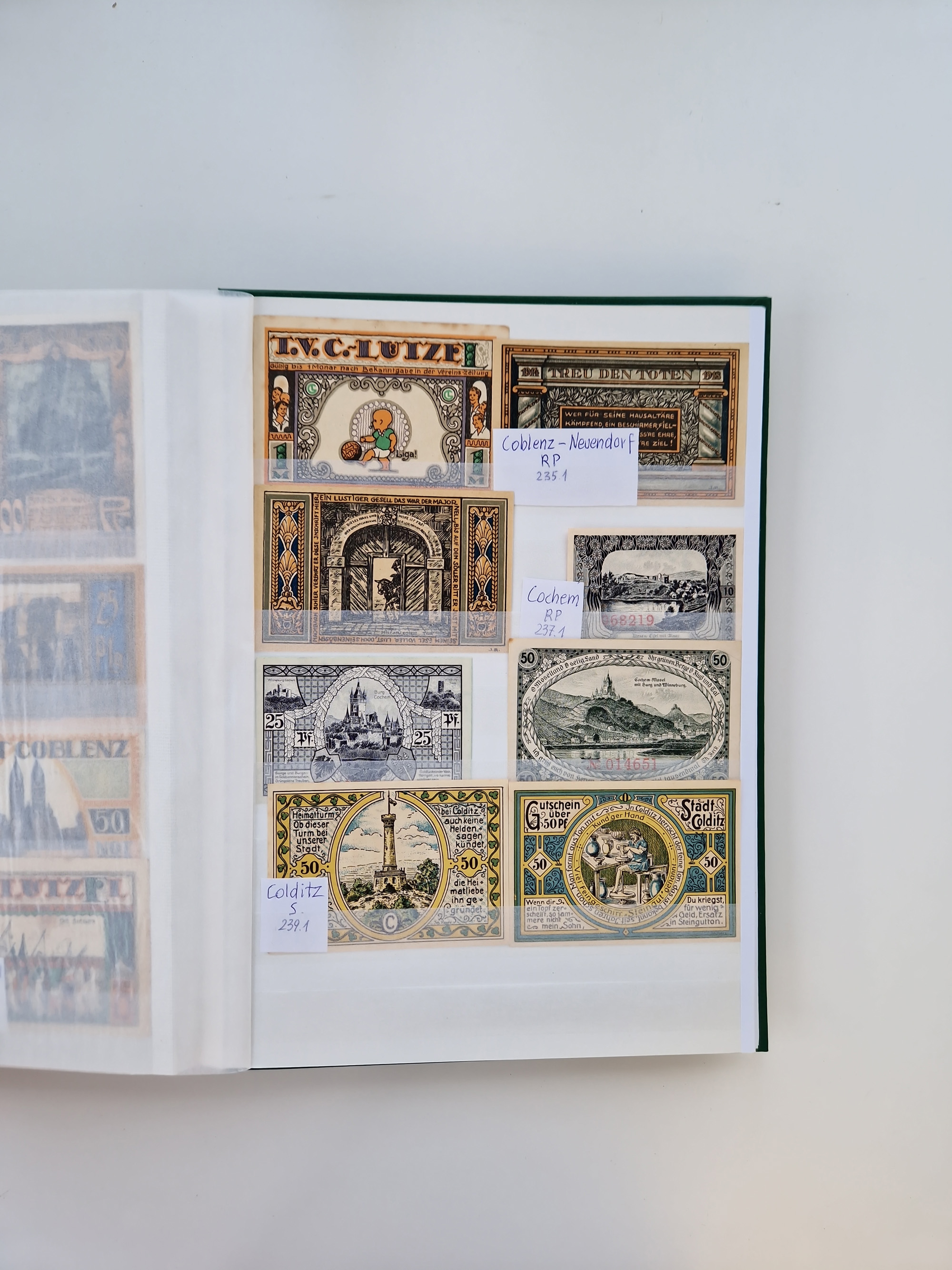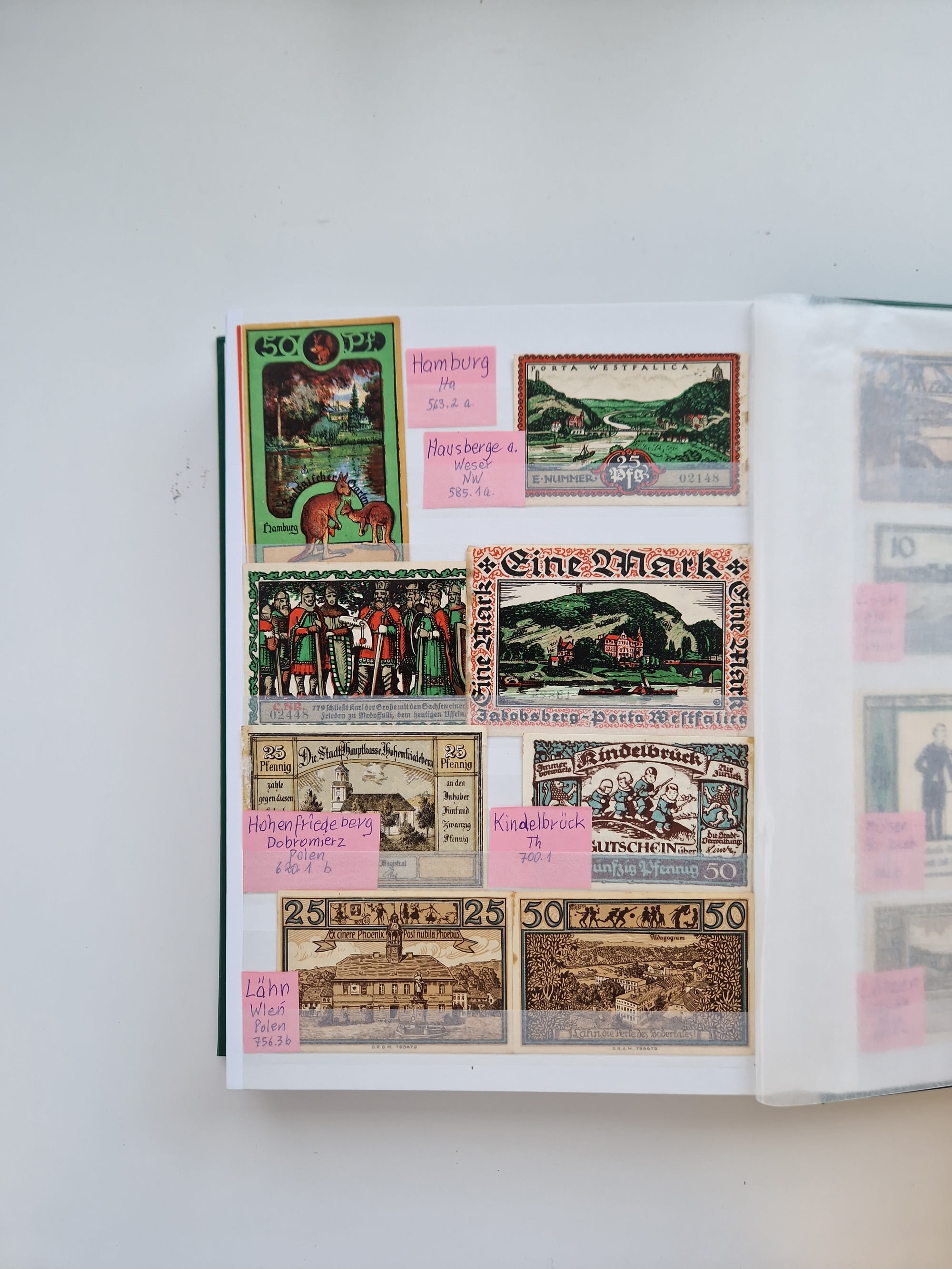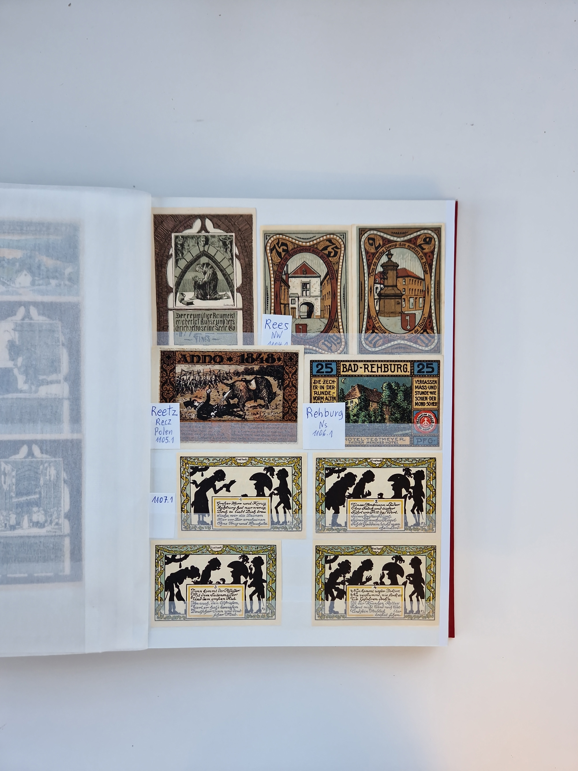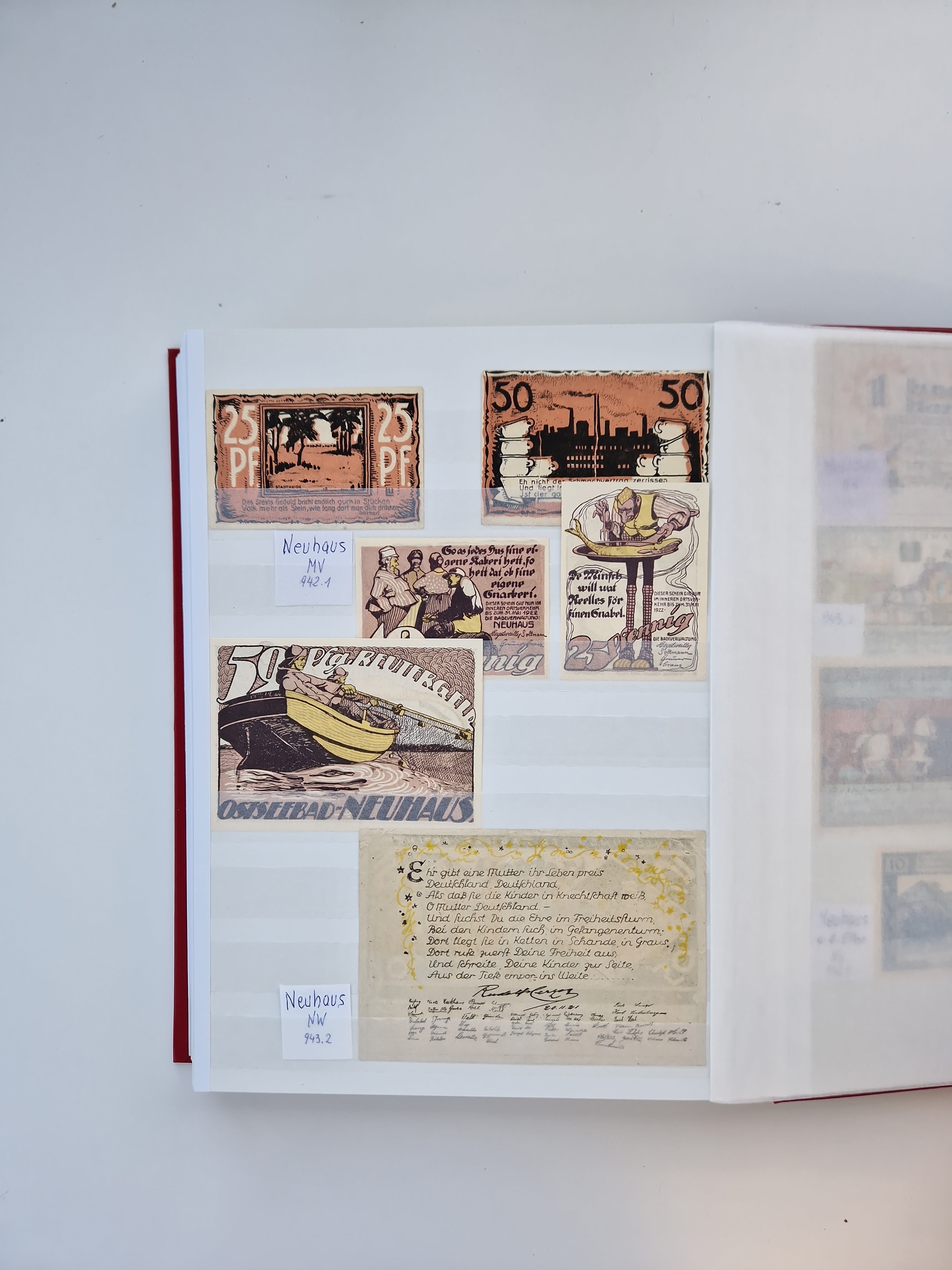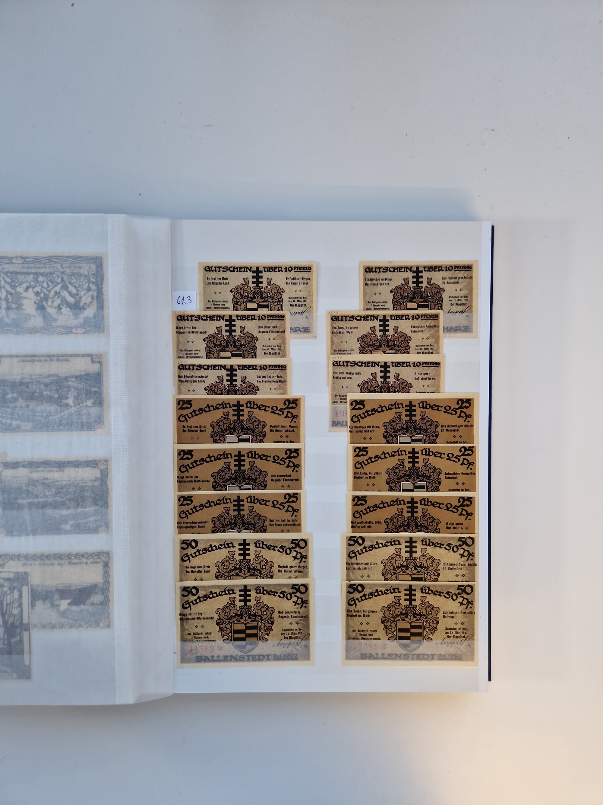 Notgeld-Serienscheine, saubere Sammlung in 16 meist dicken Steckalben, sauber nach Orten und Serien sortiert, überschlägig etwa 7/8000 Stück, dazu 4 Kataloge