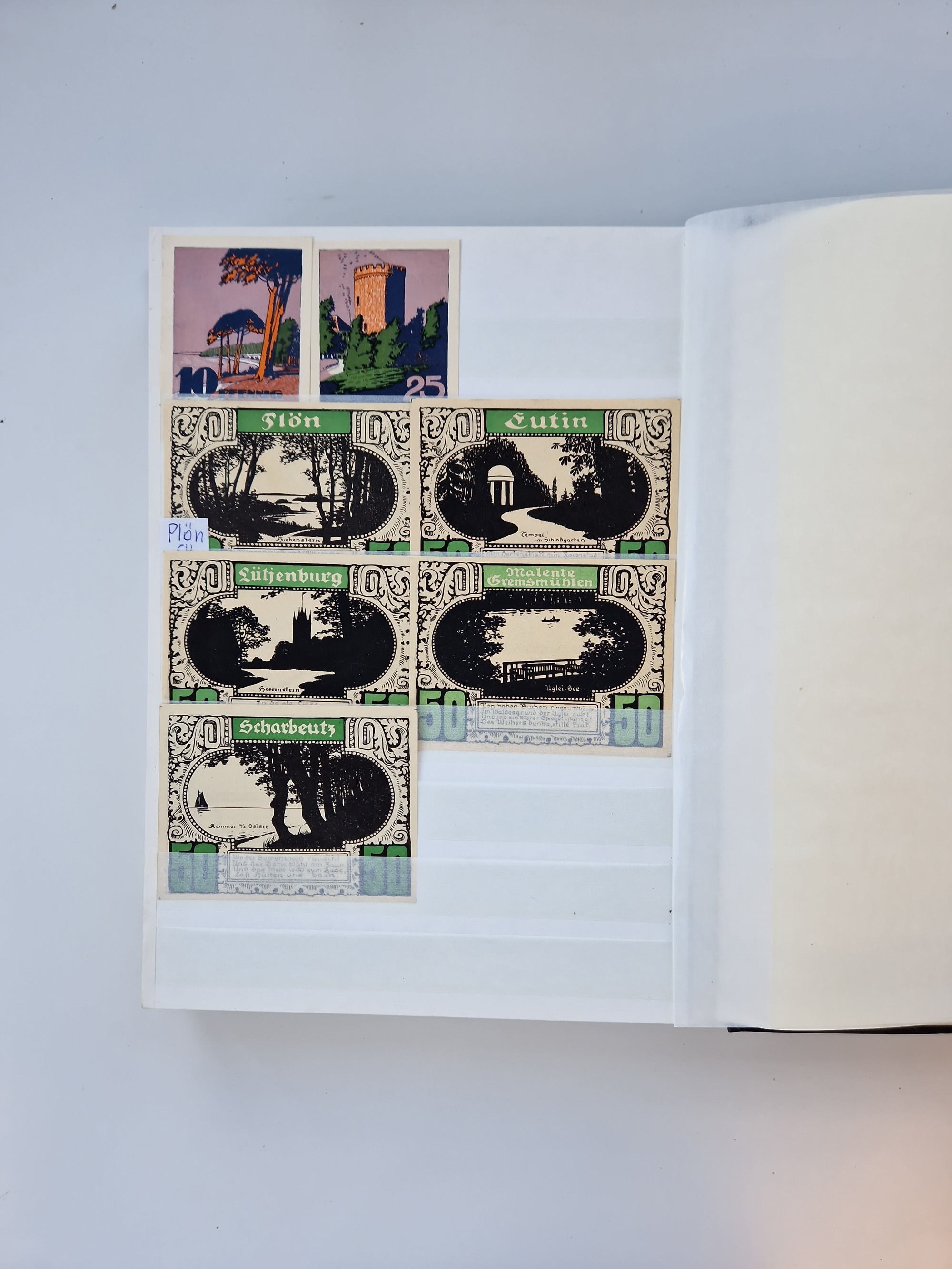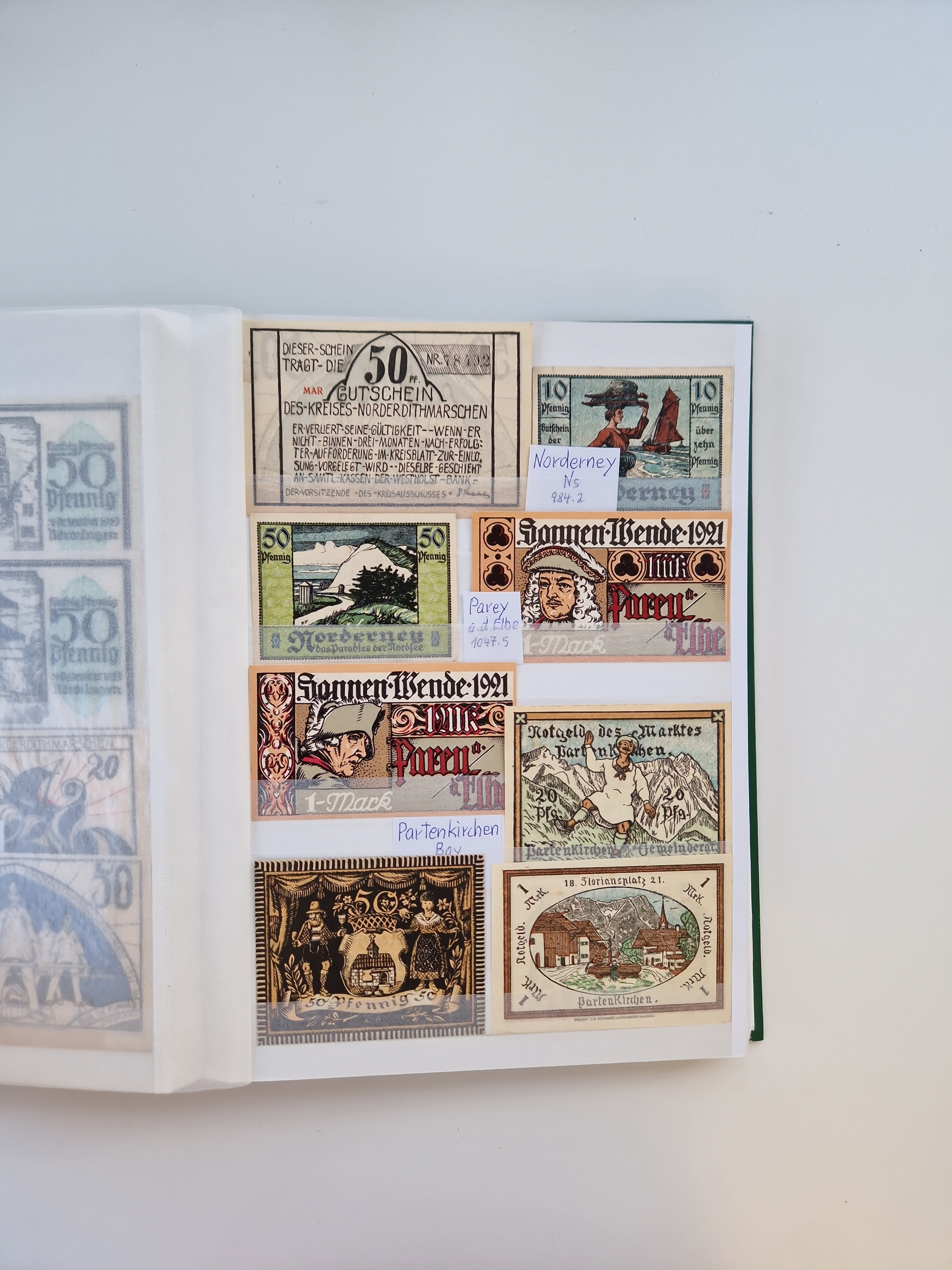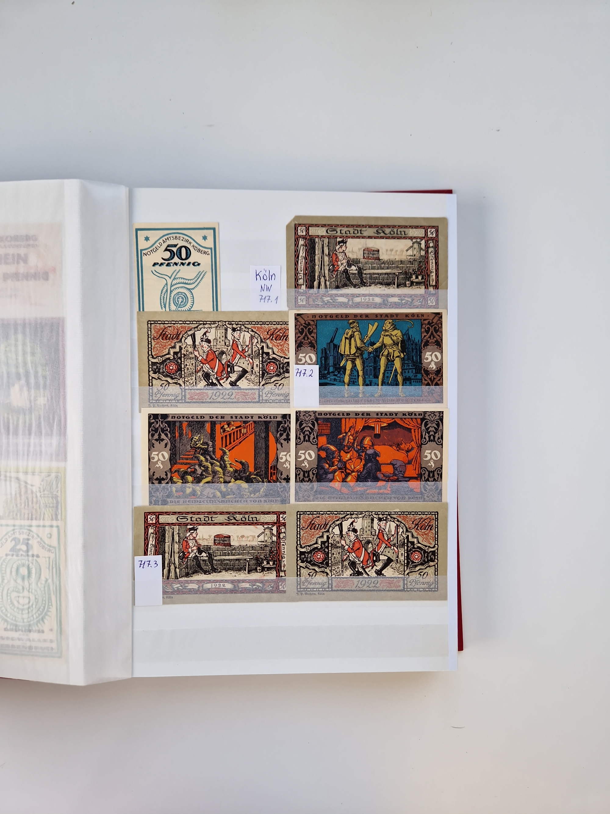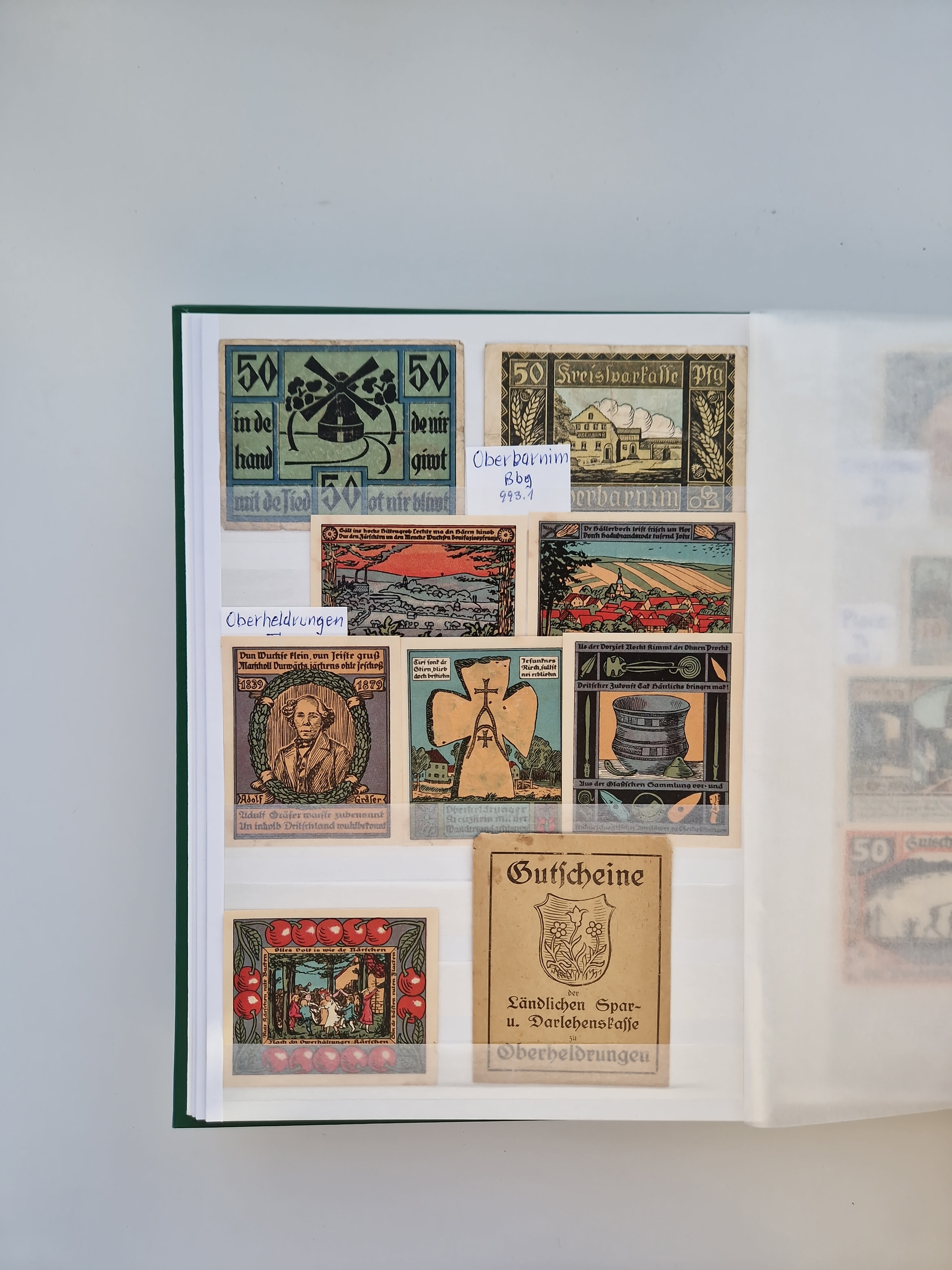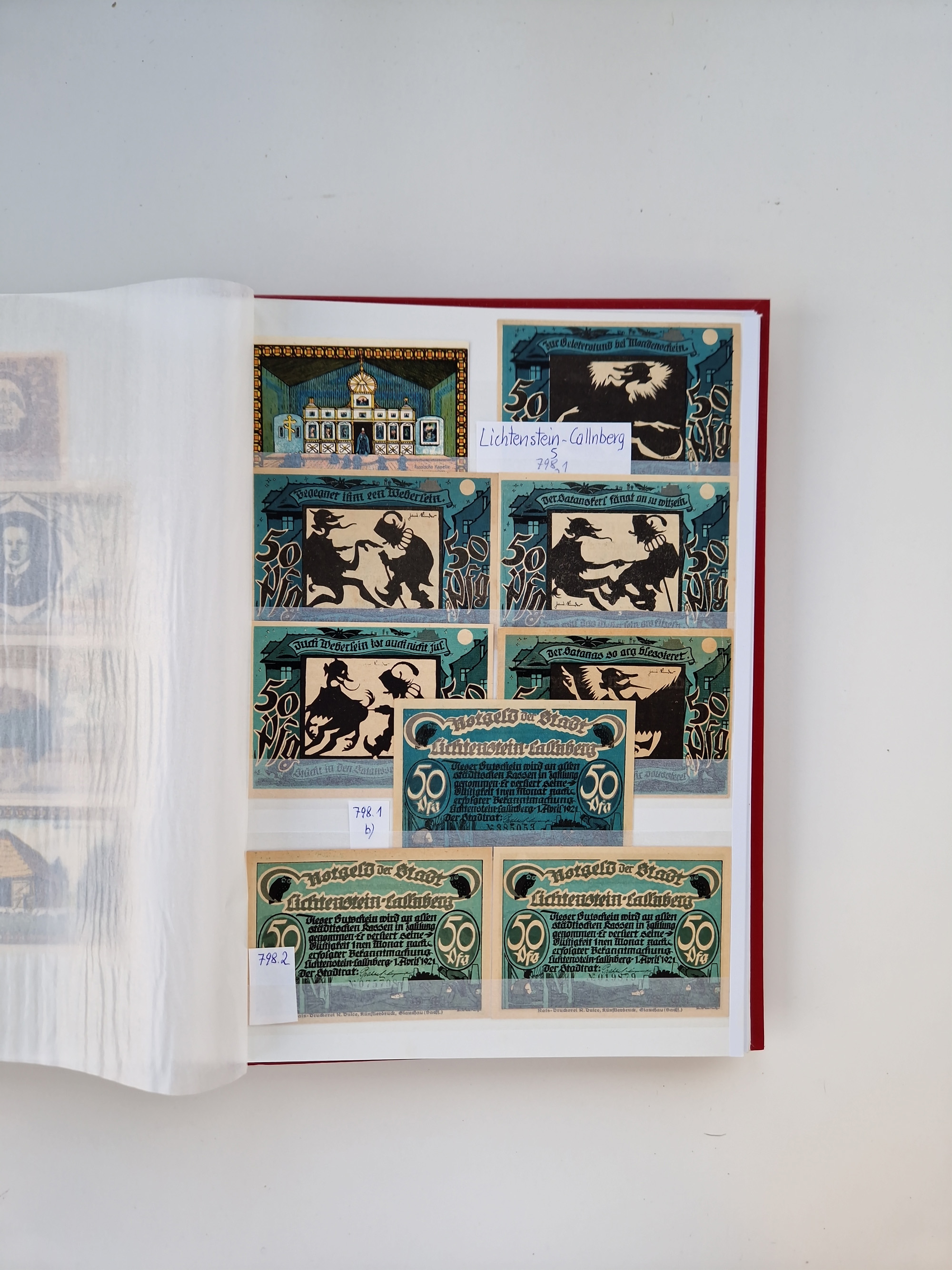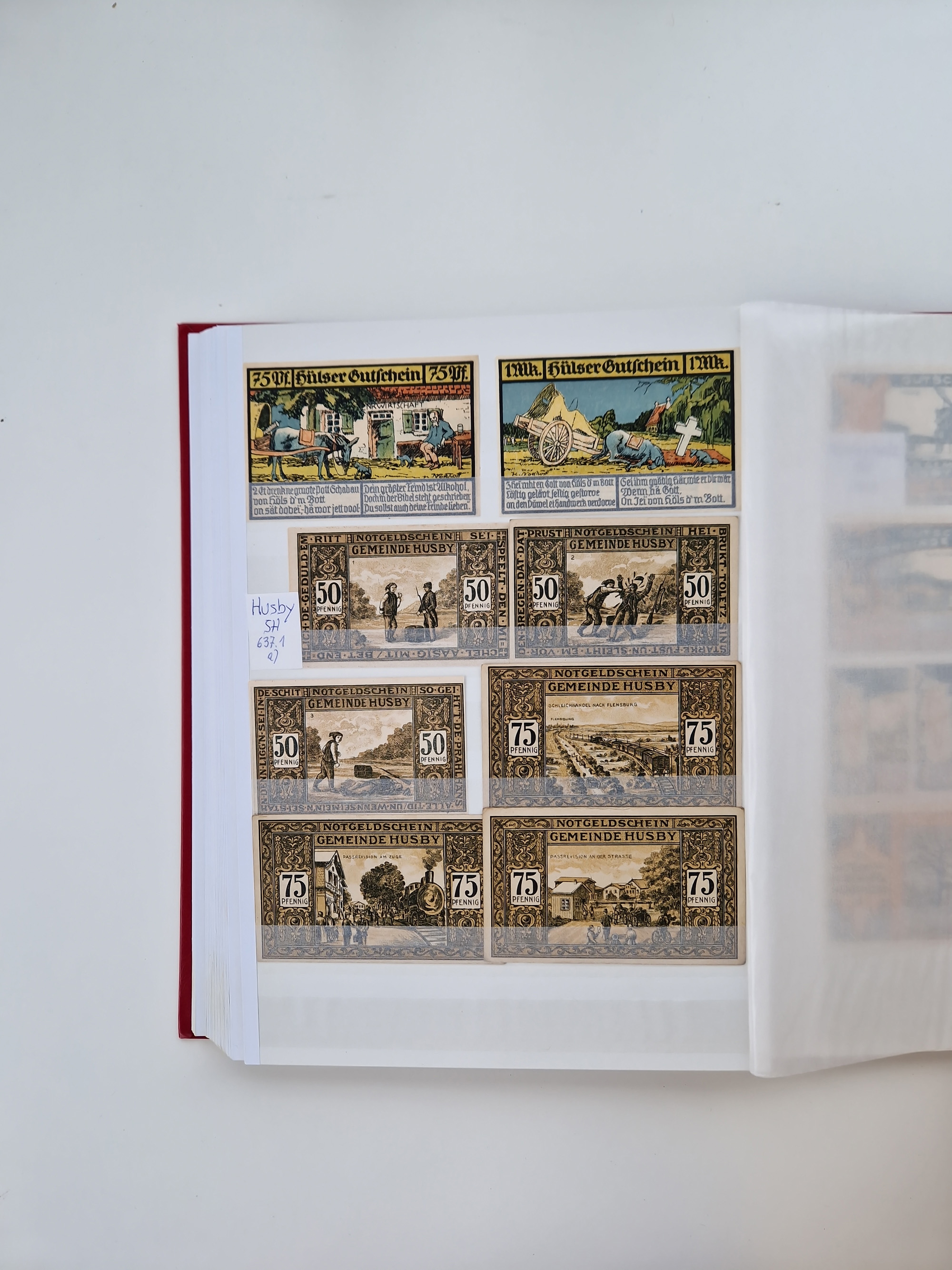 Notgeld-Serienscheine, saubere Sammlung in 16 meist dicken Steckalben, sauber nach Orten und Serien sortiert, überschlägig etwa 7/8000 Stück, dazu 4 Kataloge