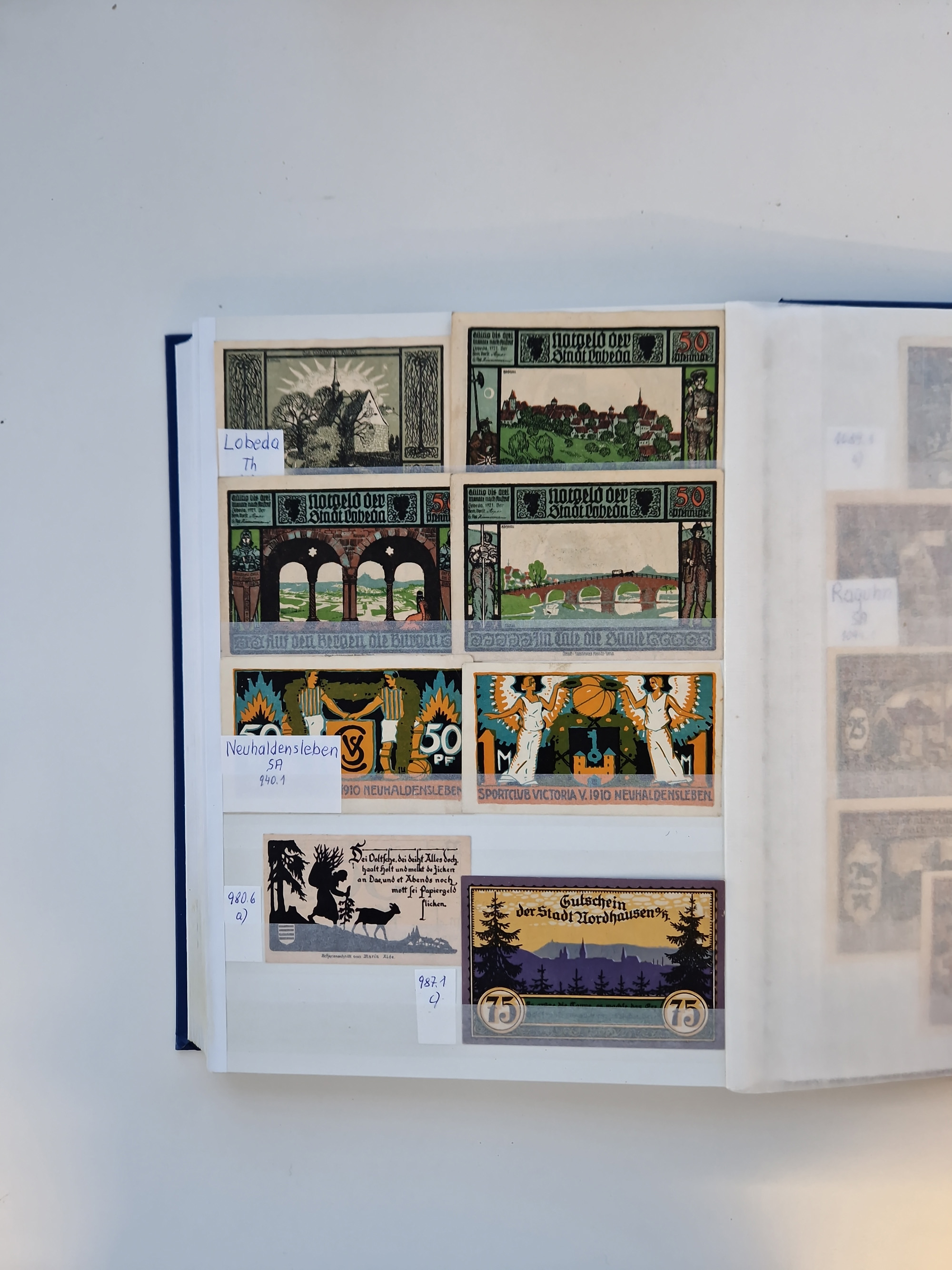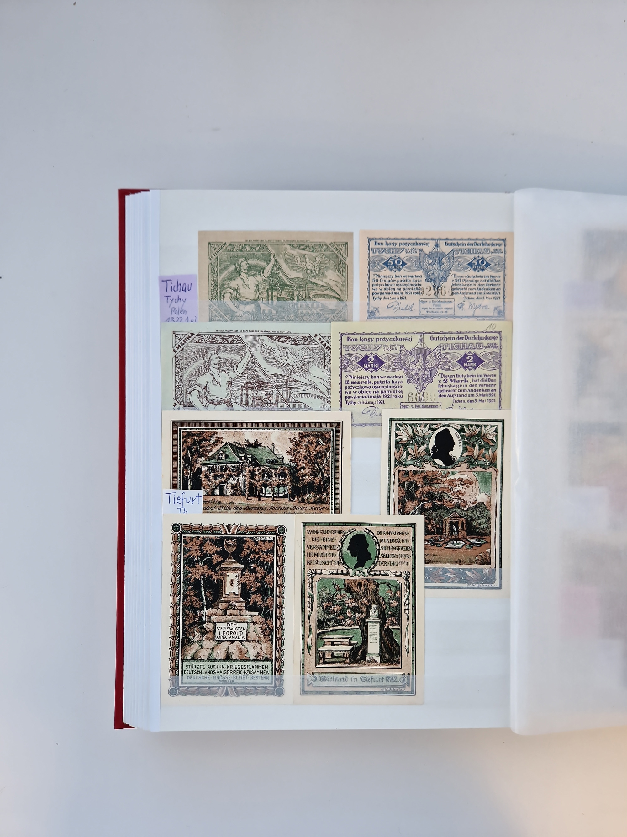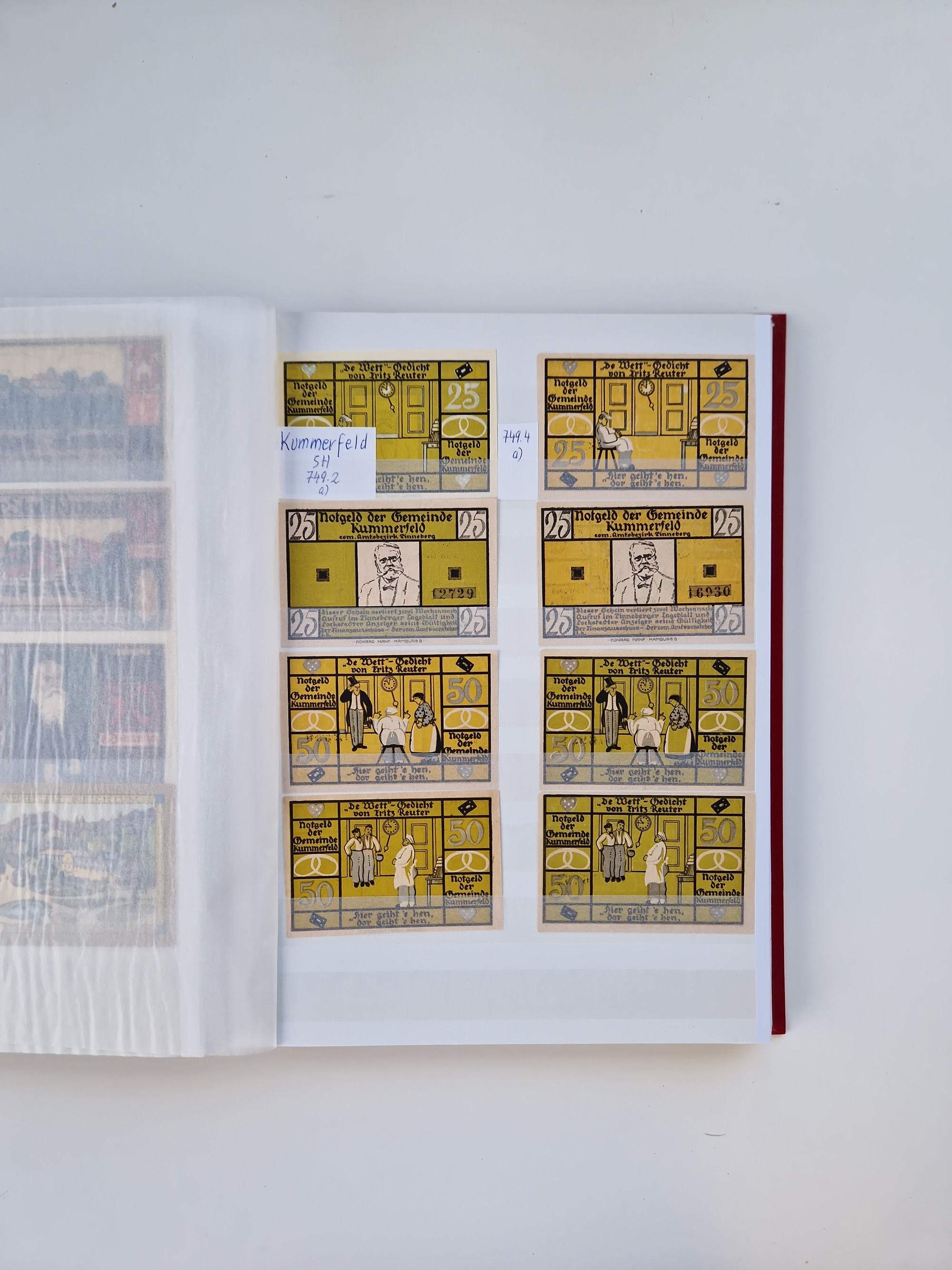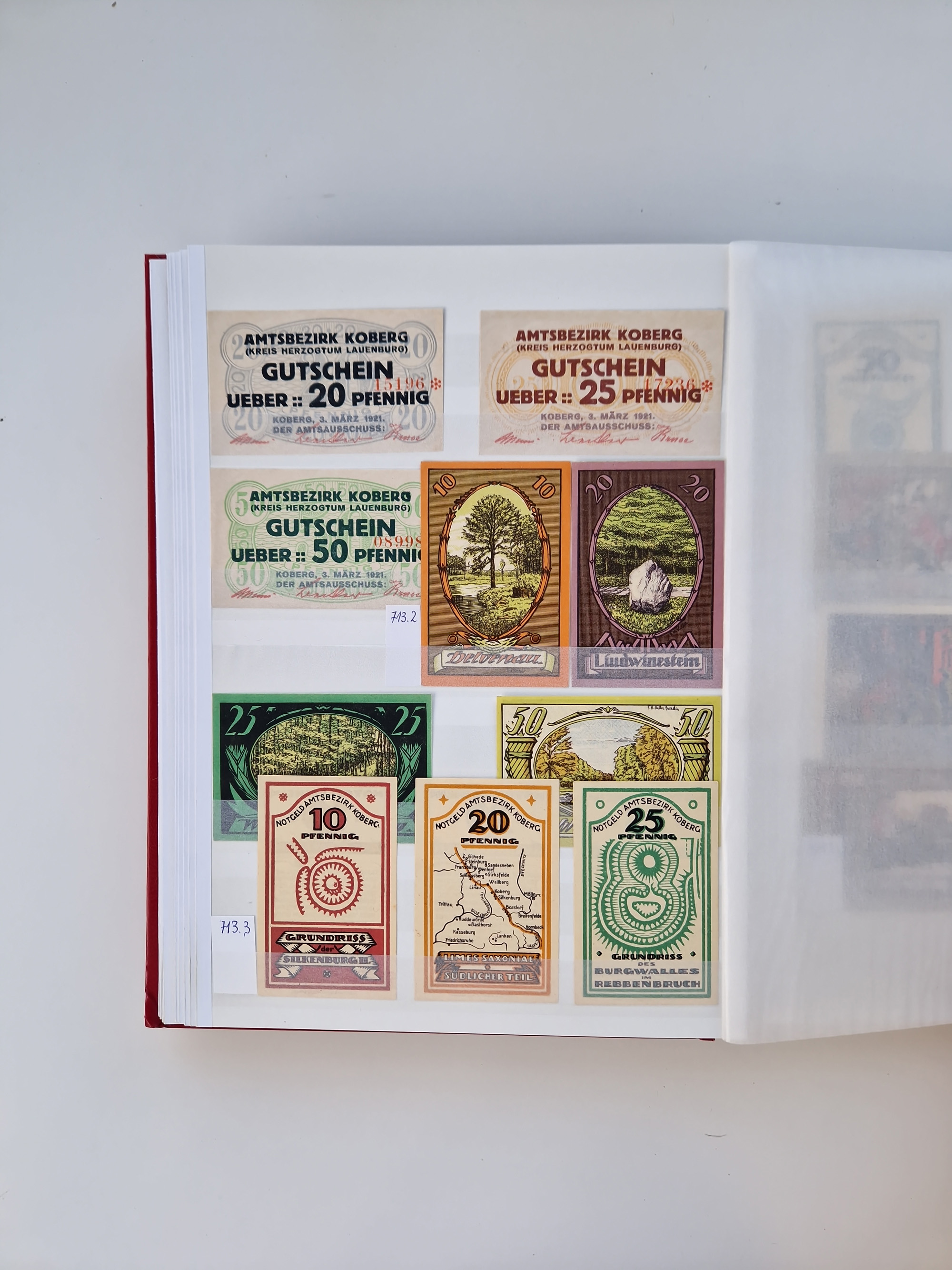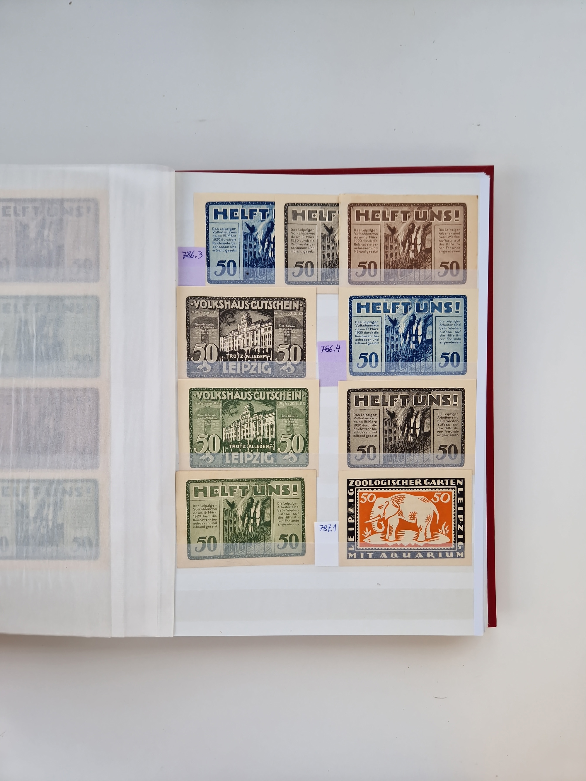 Notgeld-Serienscheine, saubere Sammlung in 16 meist dicken Steckalben, sauber nach Orten und Serien sortiert, überschlägig etwa 7/8000 Stück, dazu 4 Kataloge