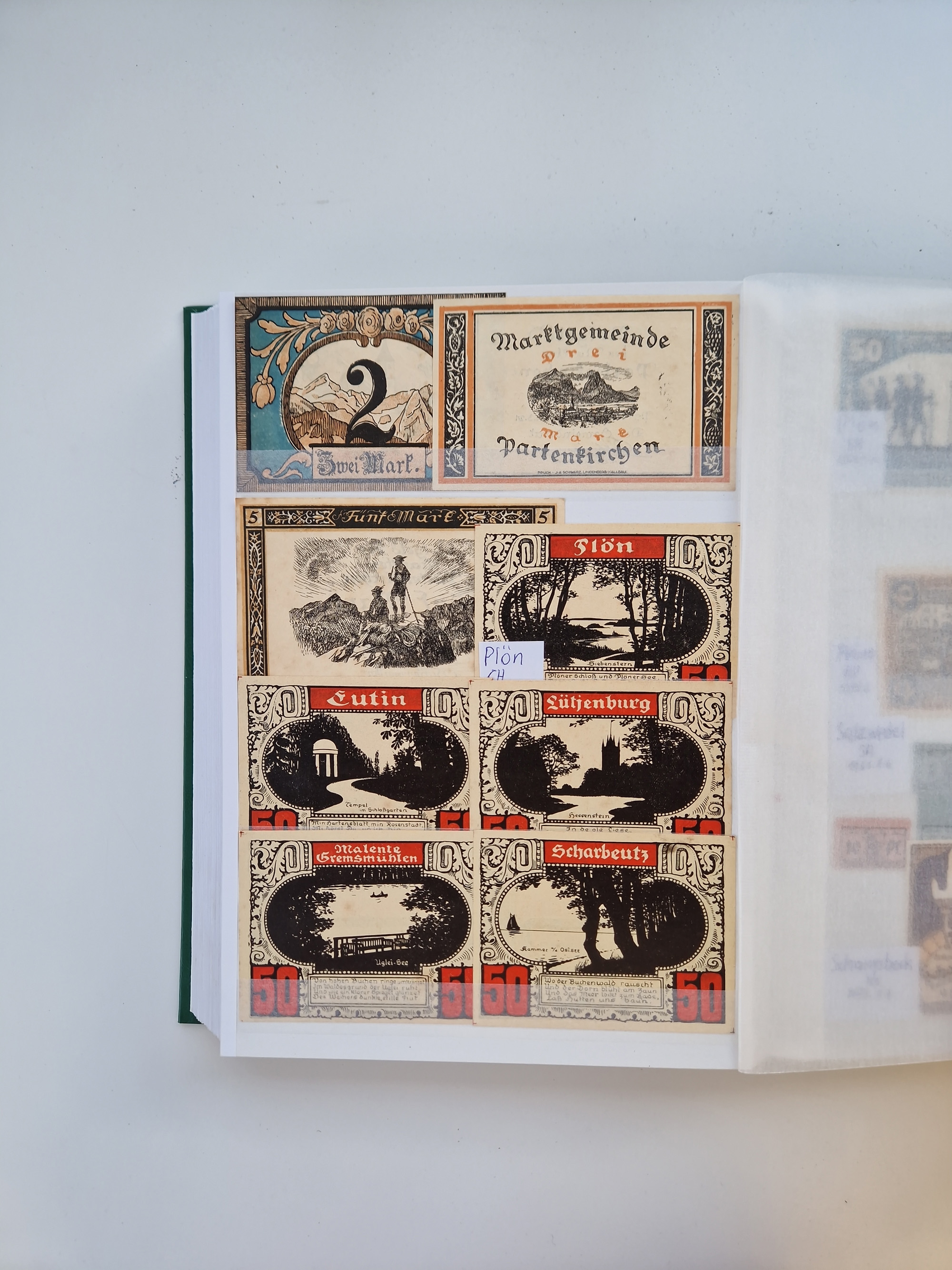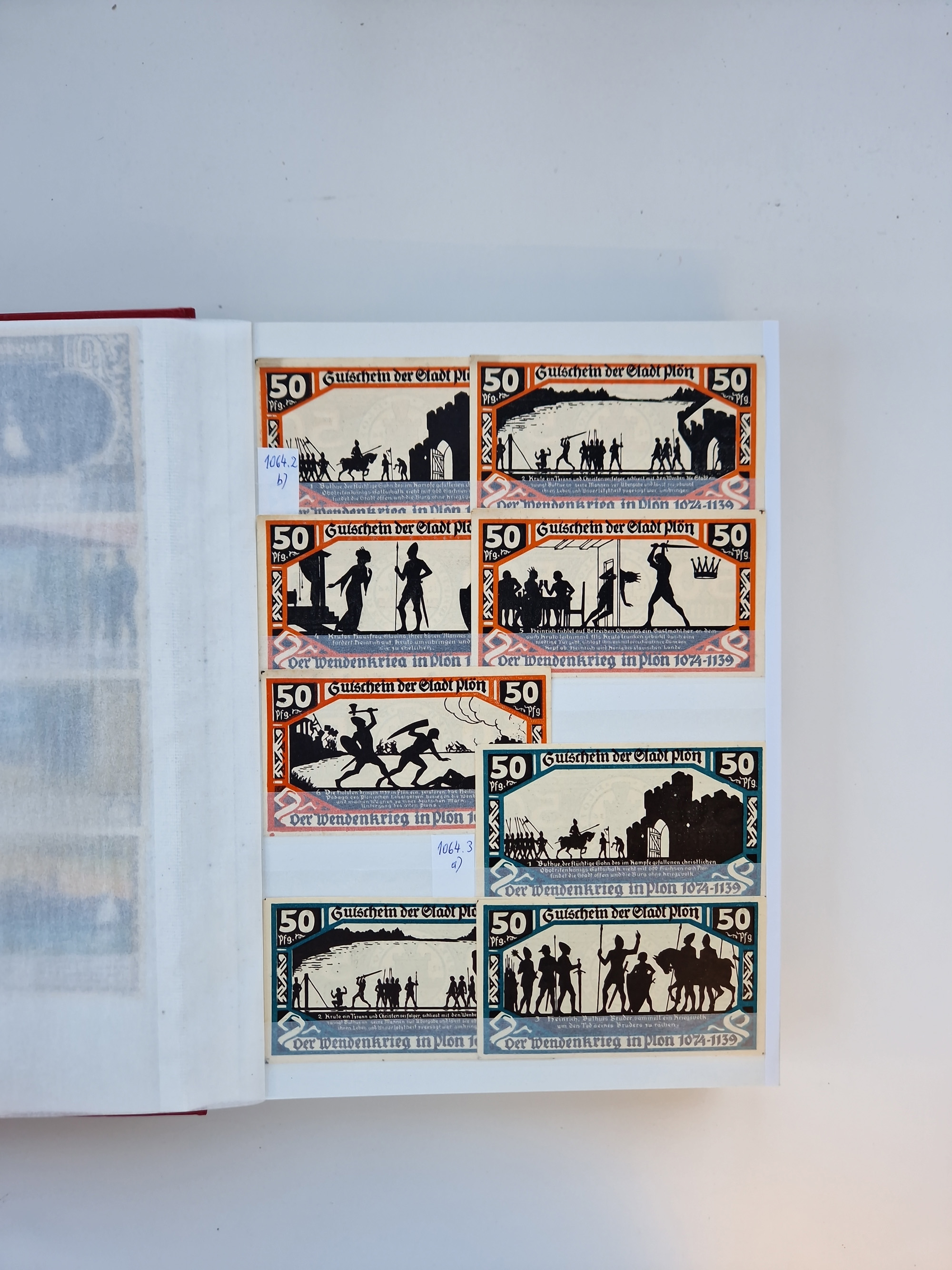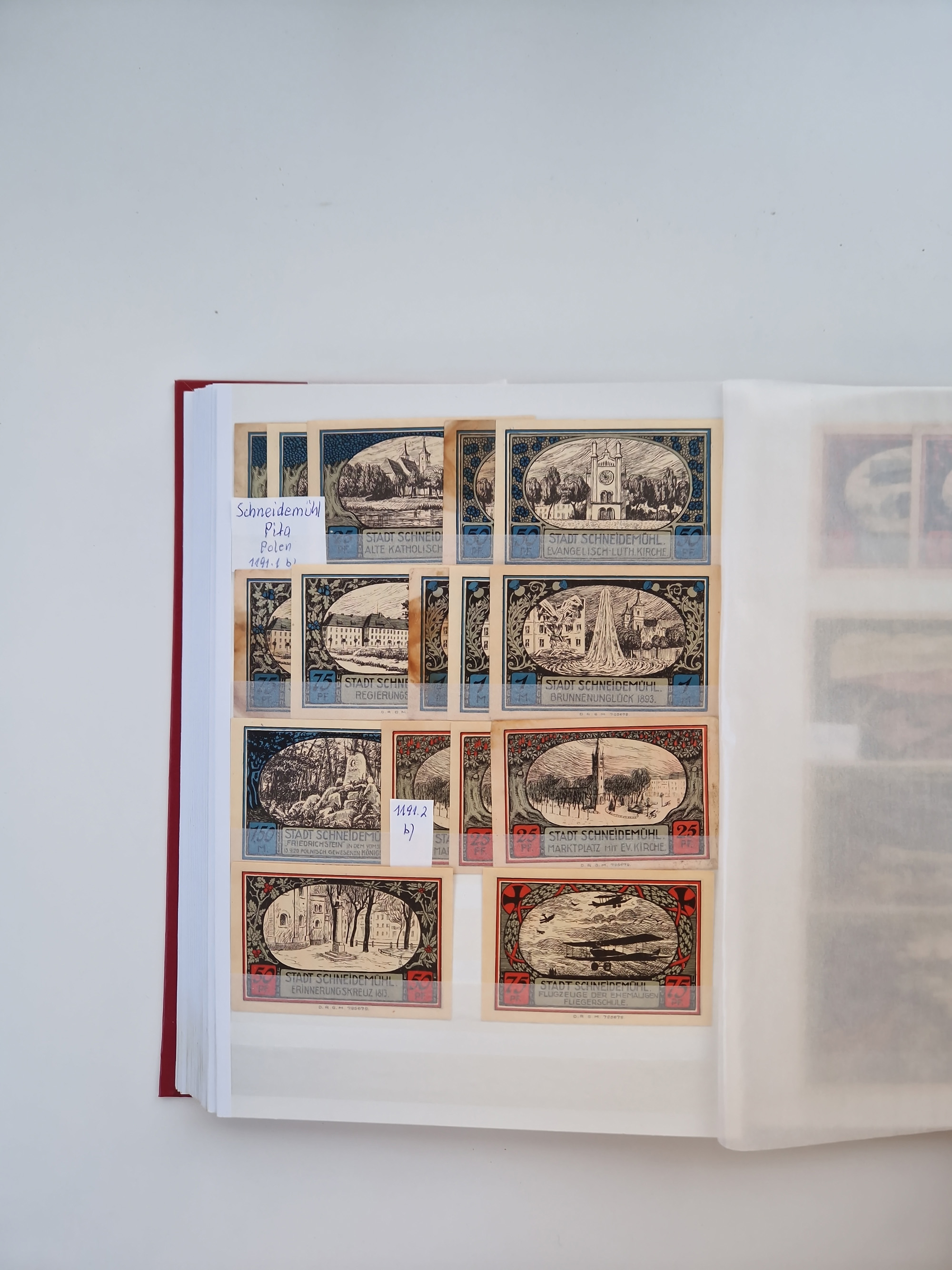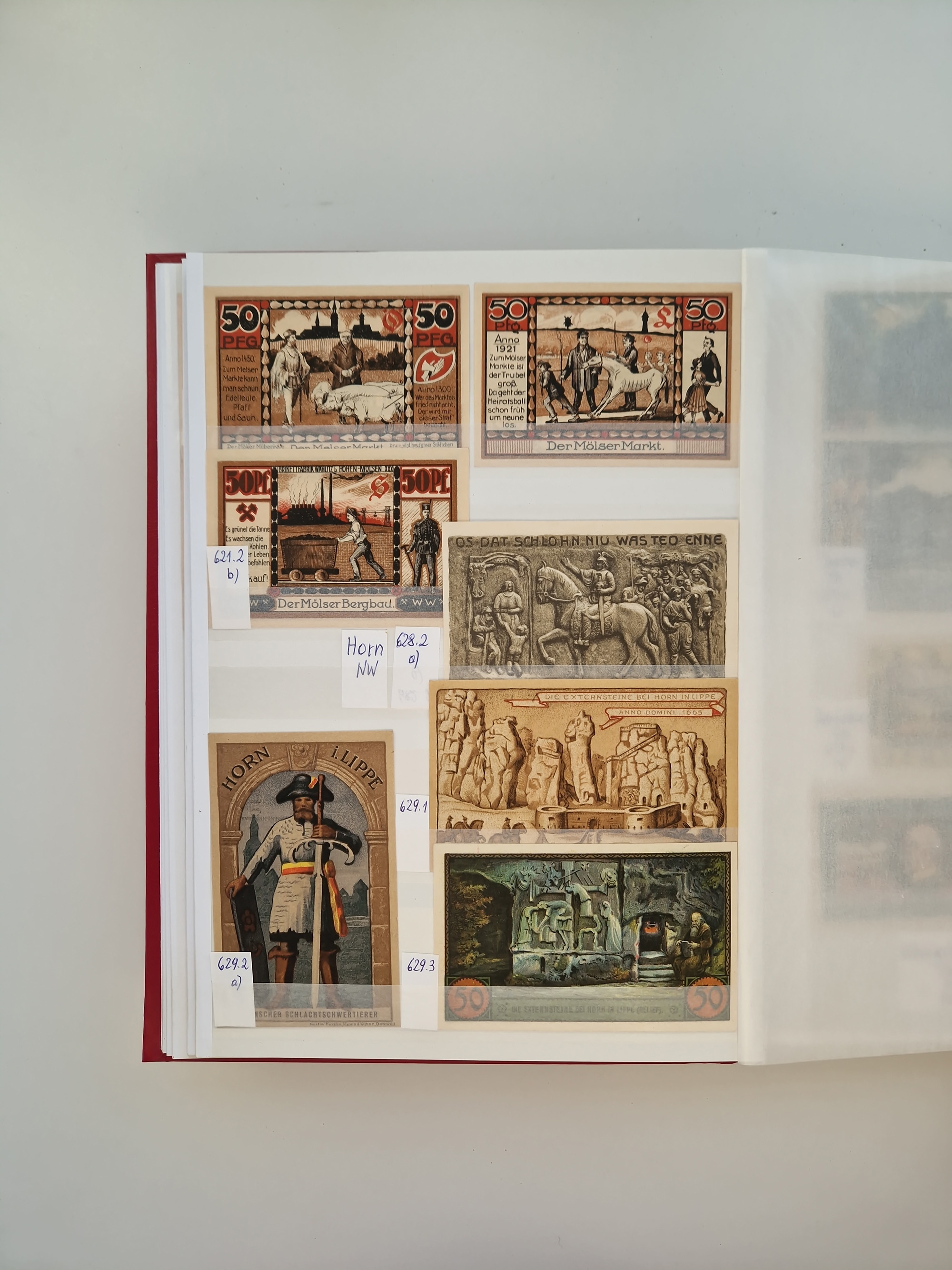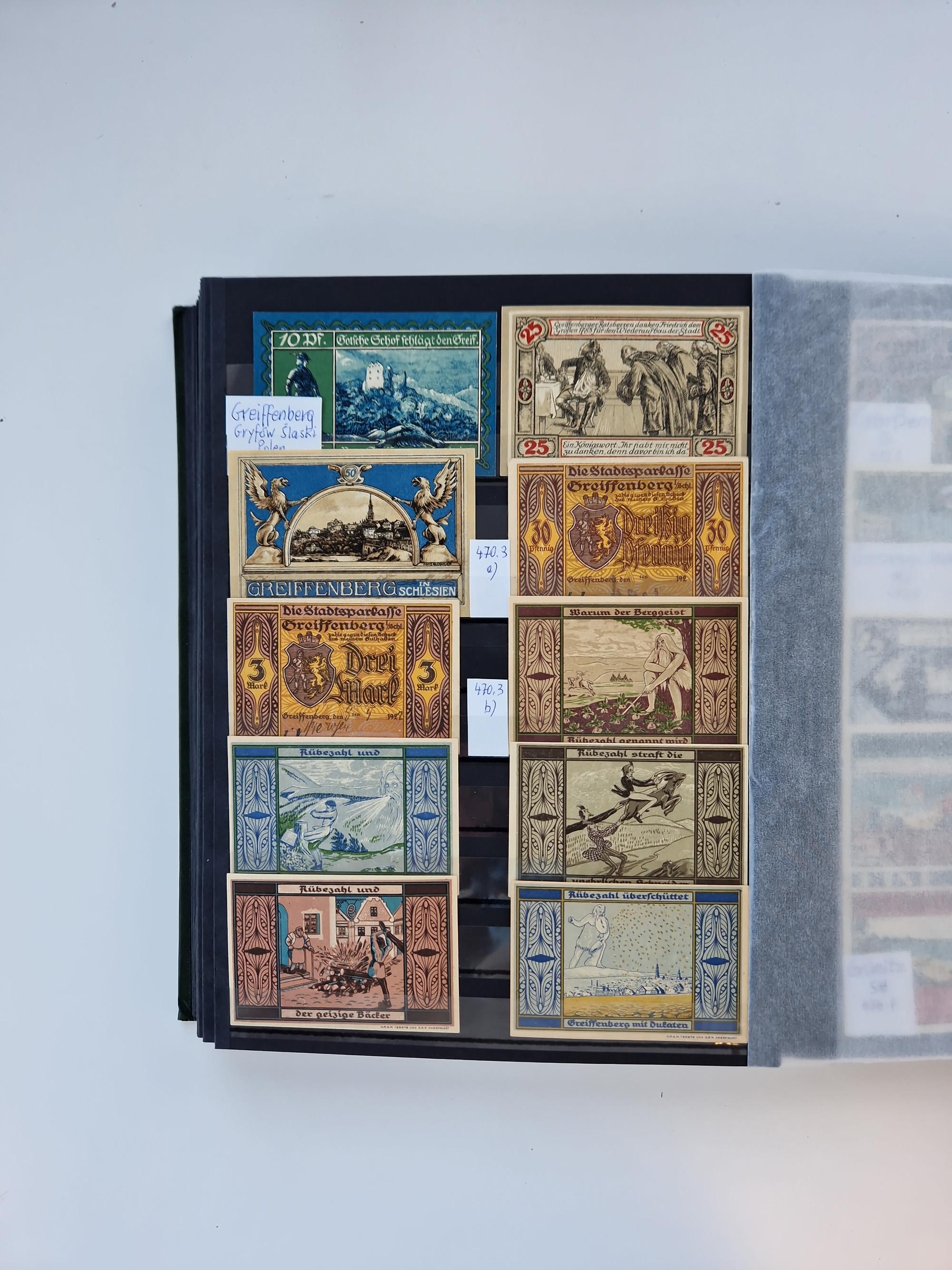 Notgeld-Serienscheine, saubere Sammlung in 16 meist dicken Steckalben, sauber nach Orten und Serien sortiert, überschlägig etwa 7/8000 Stück, dazu 4 Kataloge