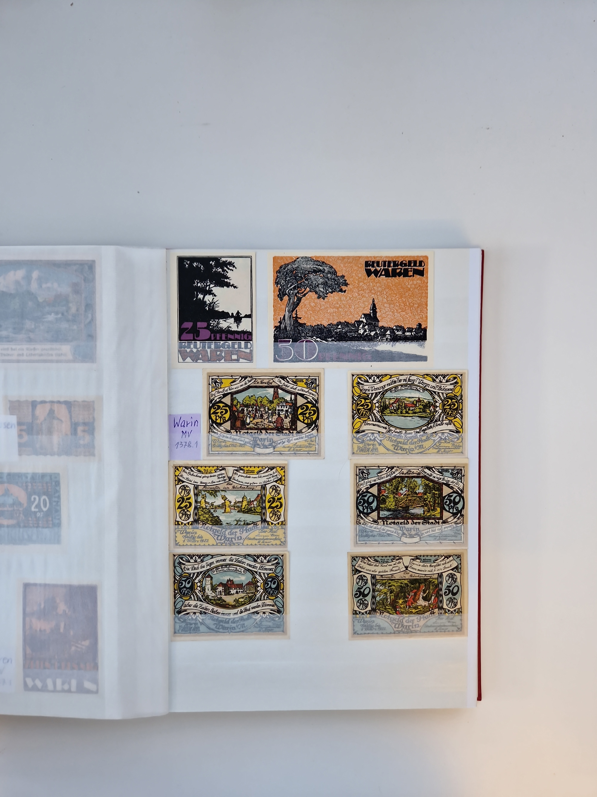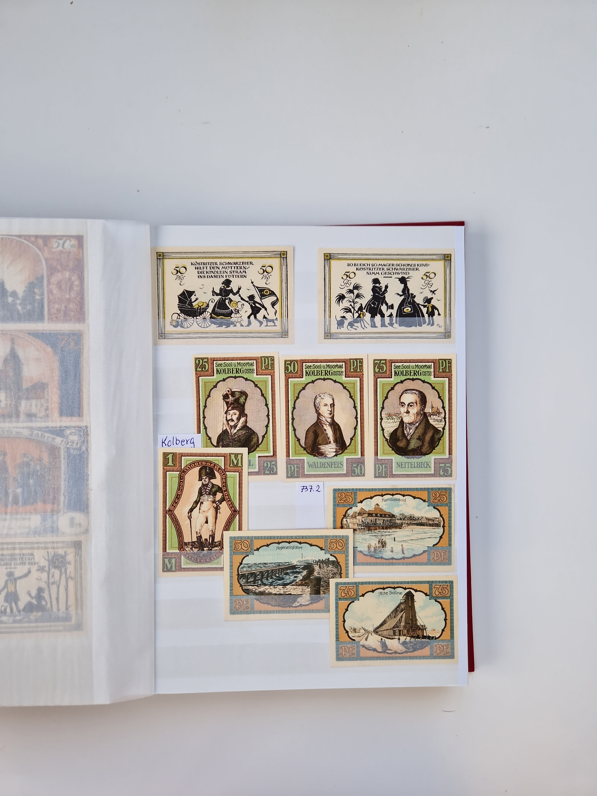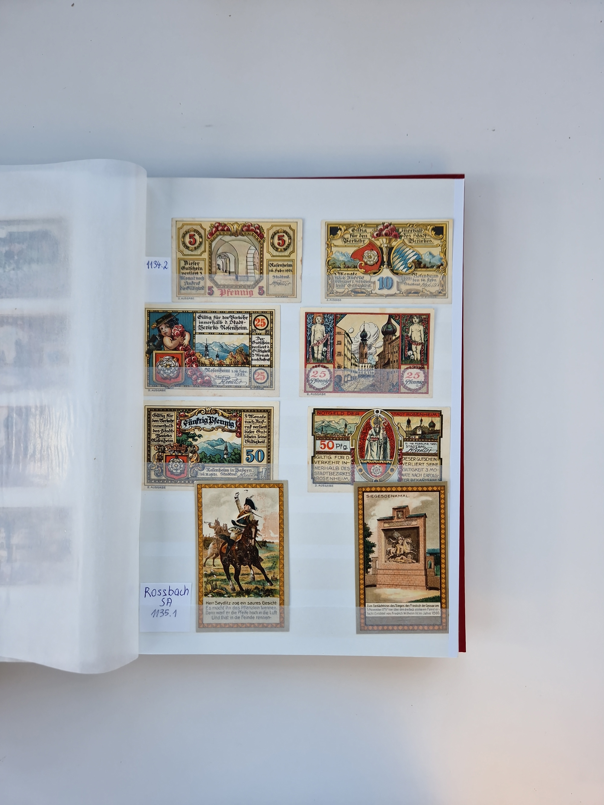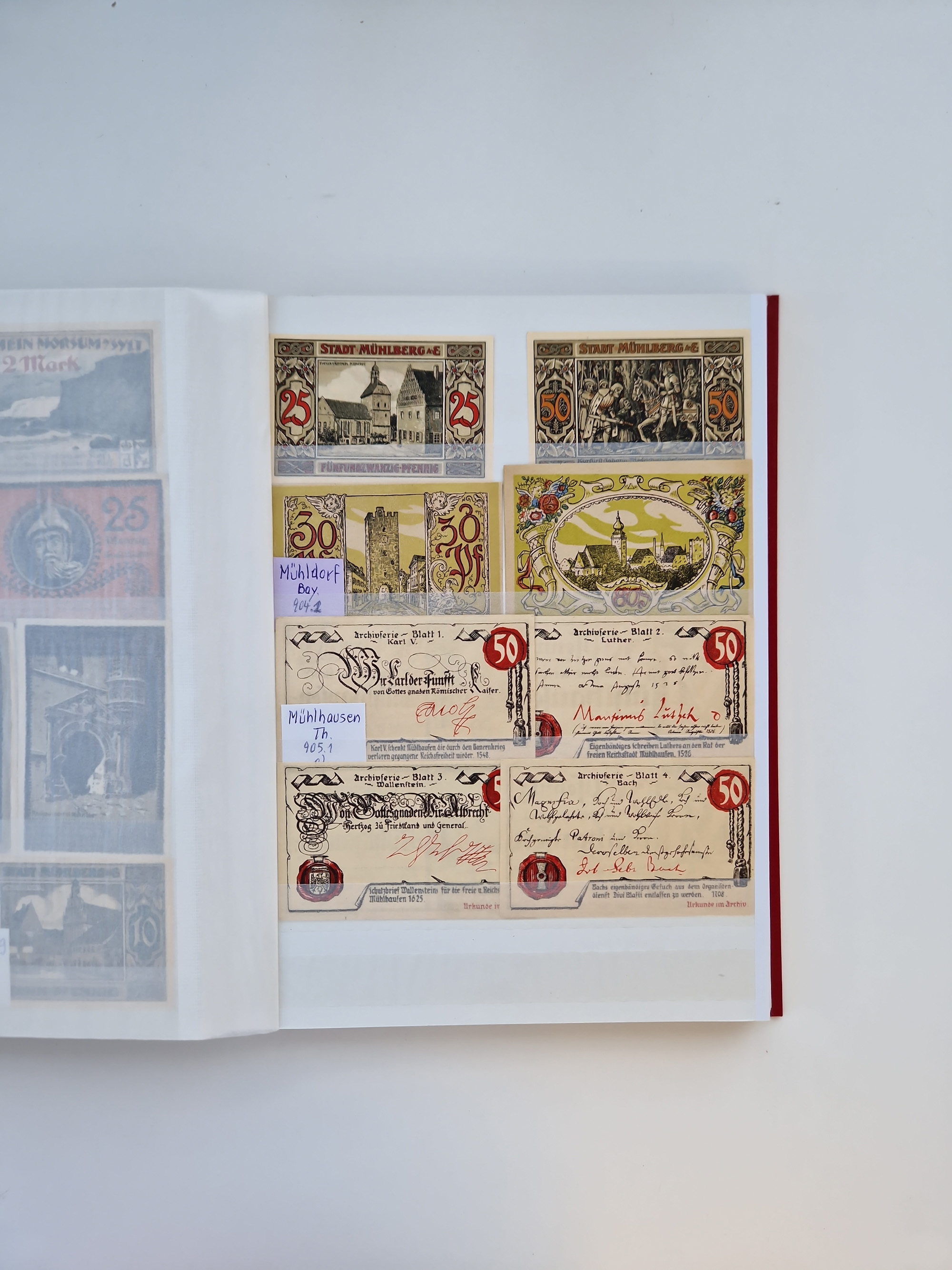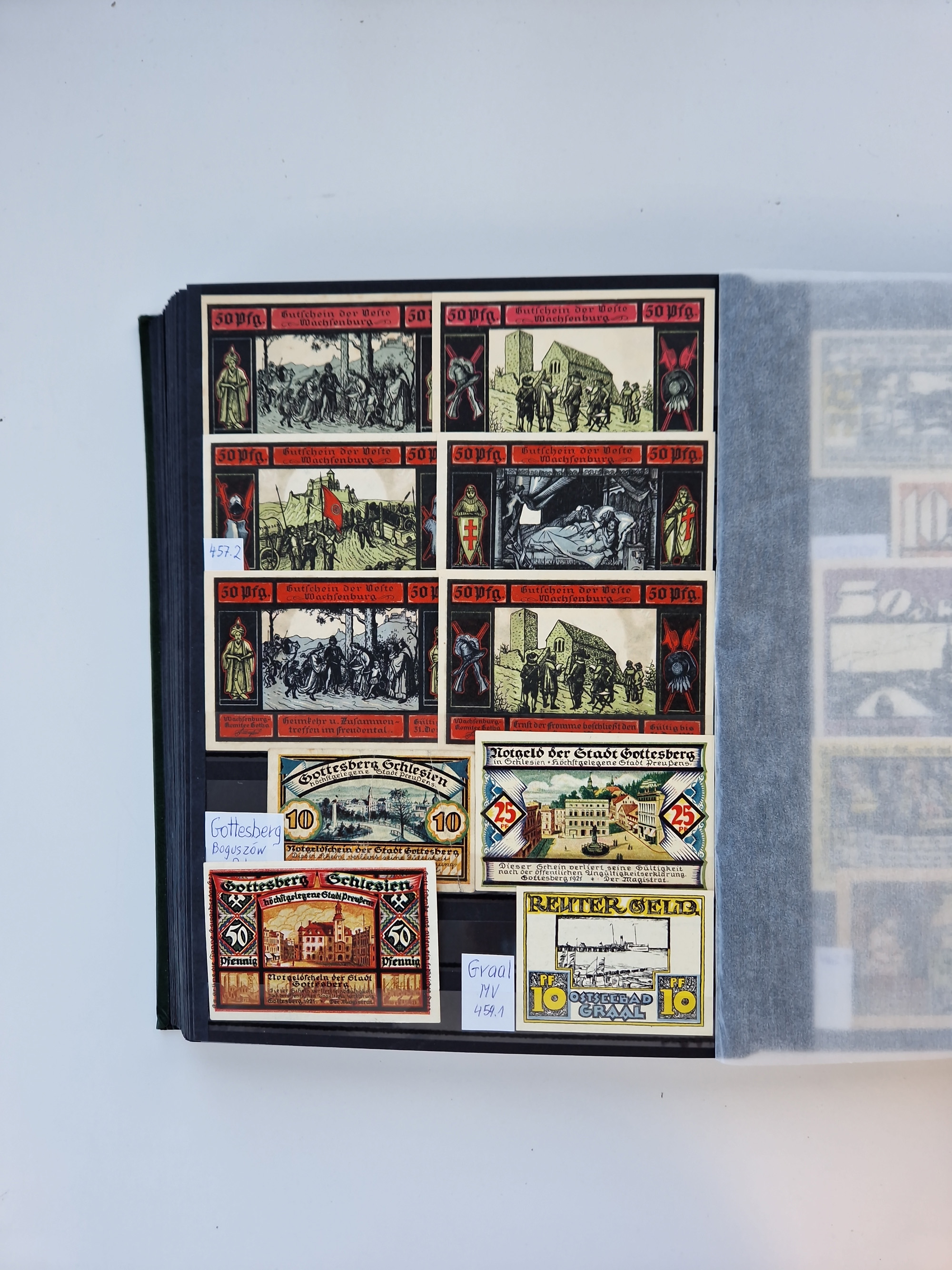 Notgeld-Serienscheine, saubere Sammlung in 16 meist dicken Steckalben, sauber nach Orten und Serien sortiert, überschlägig etwa 7/8000 Stück, dazu 4 Kataloge