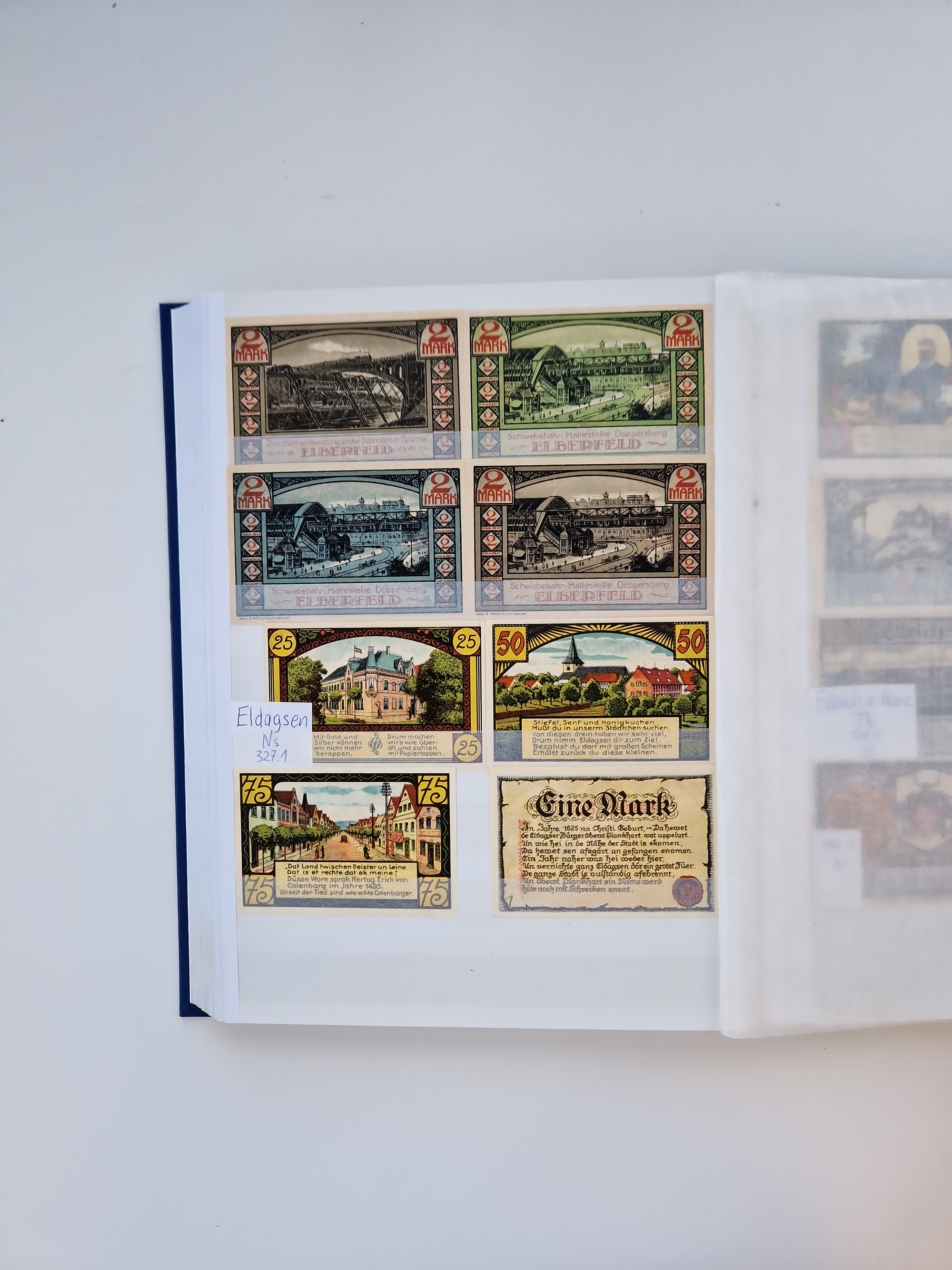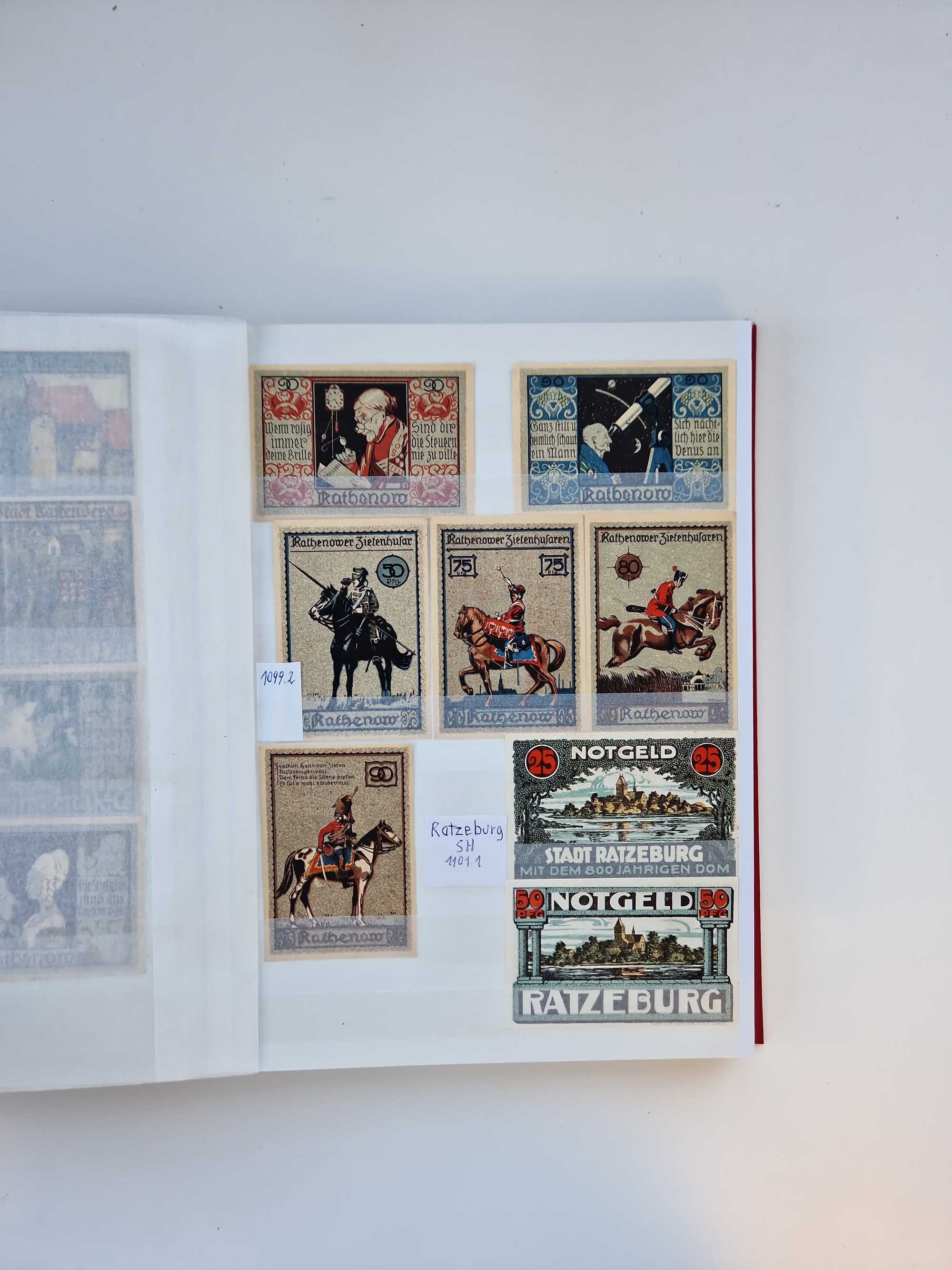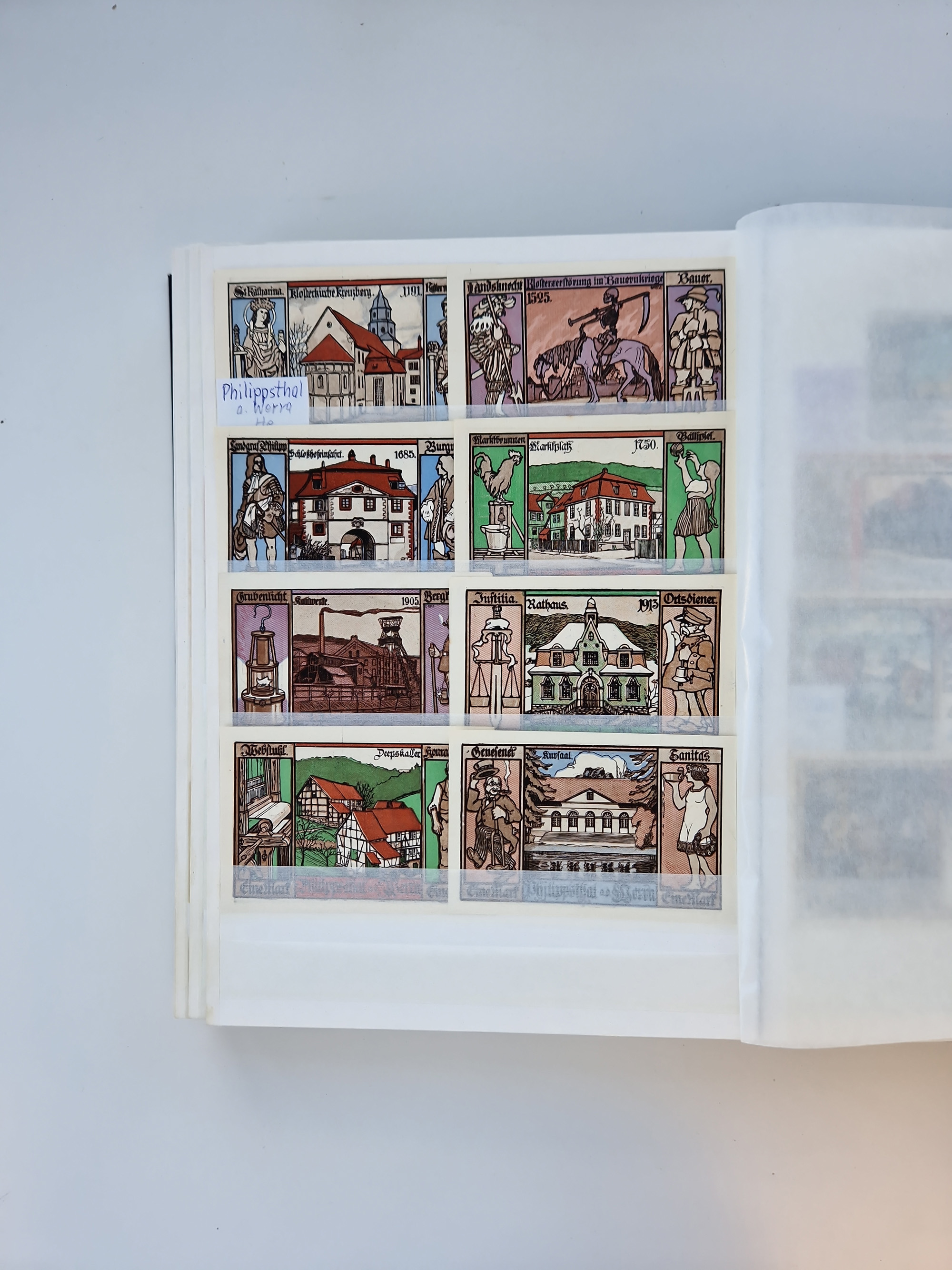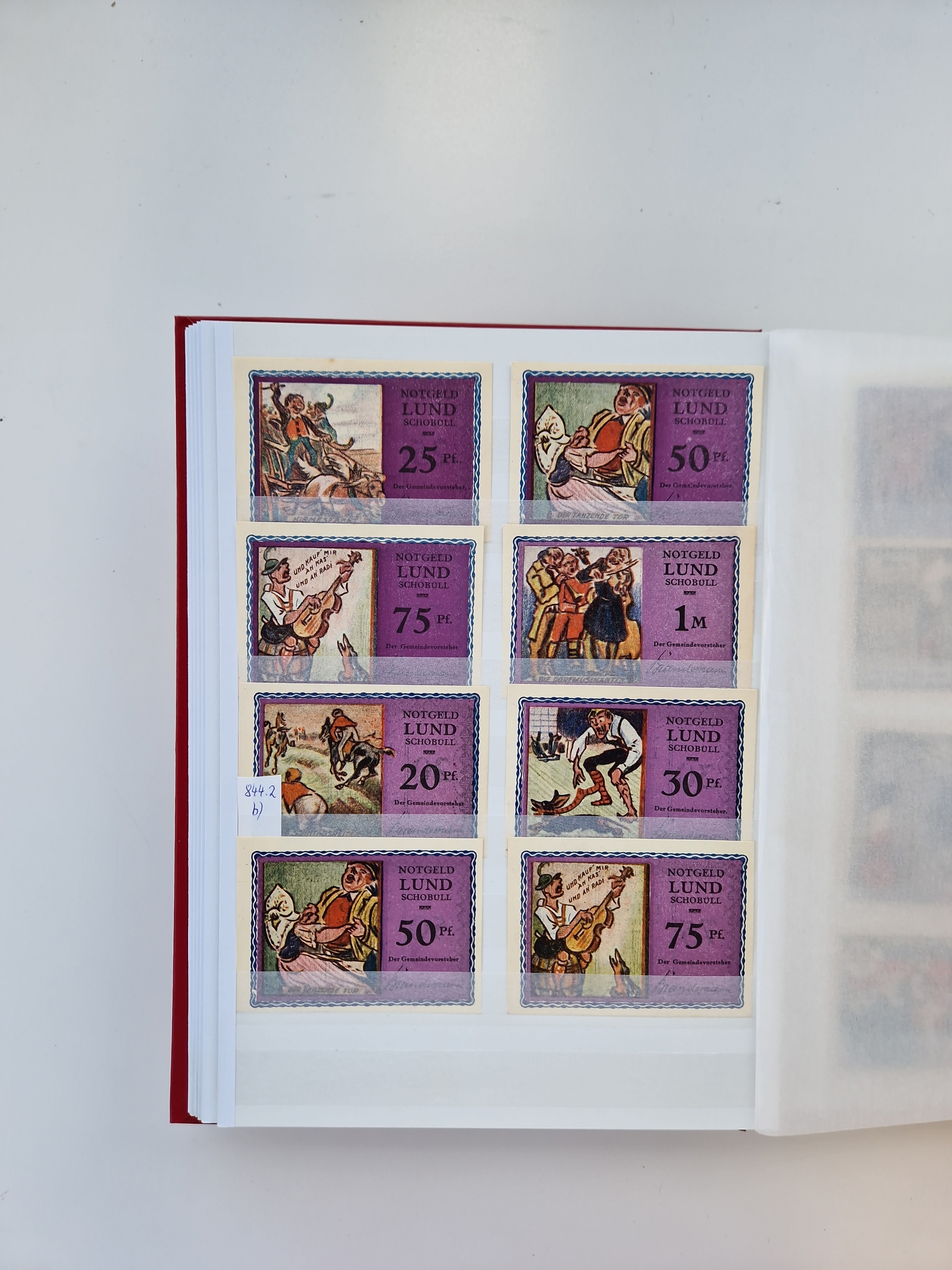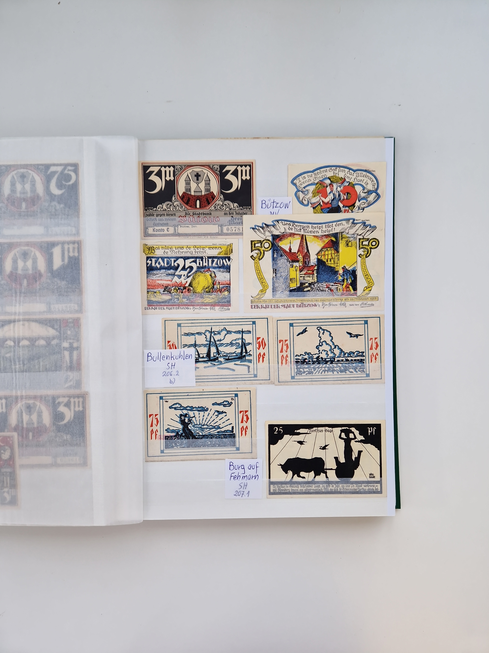 Notgeld-Serienscheine, saubere Sammlung in 16 meist dicken Steckalben, sauber nach Orten und Serien sortiert, überschlägig etwa 7/8000 Stück, dazu 4 Kataloge