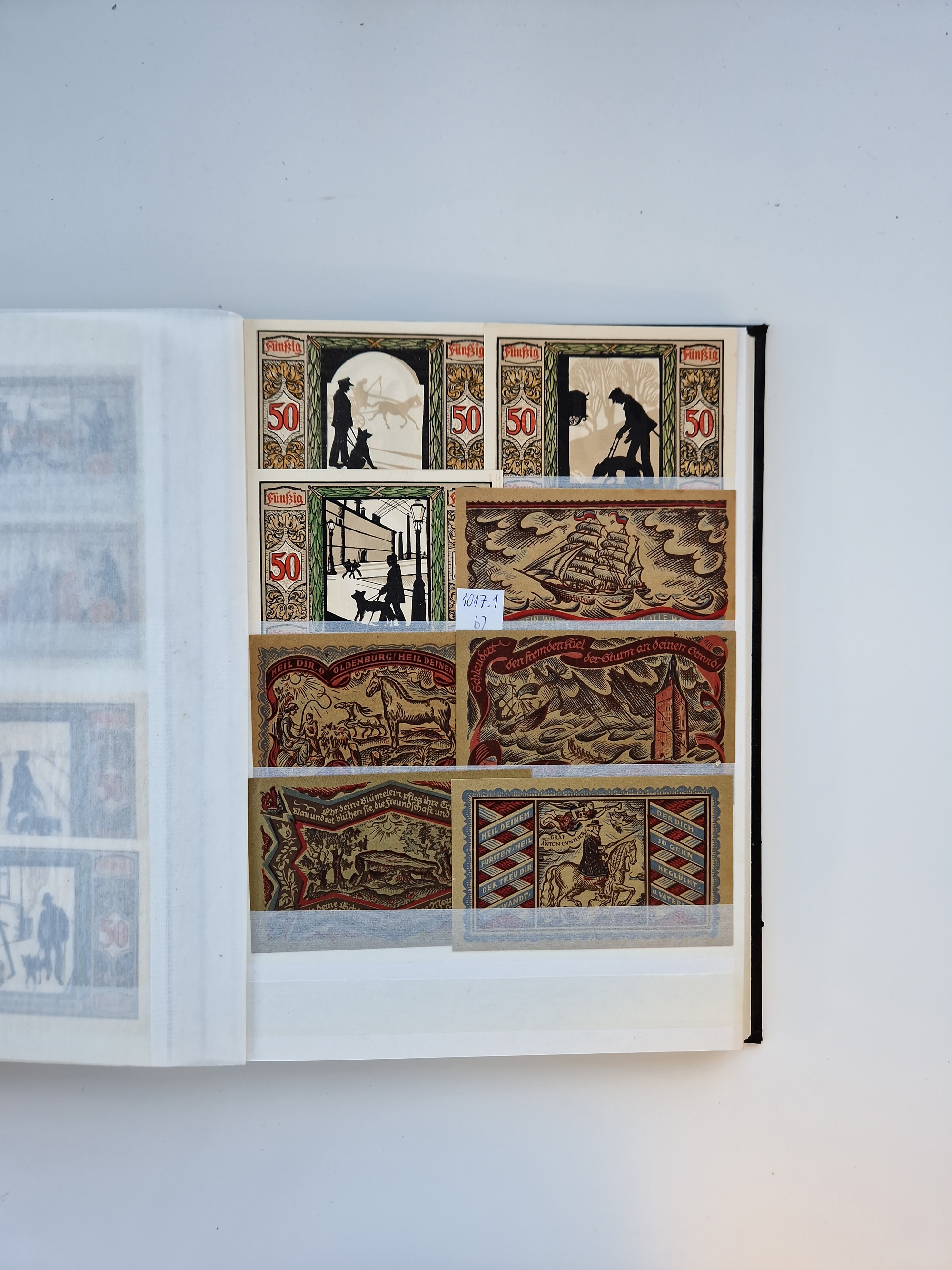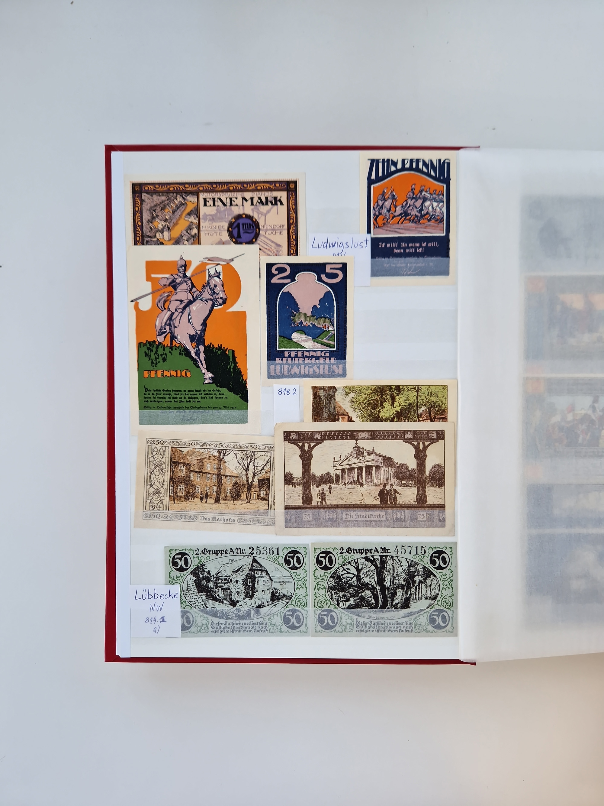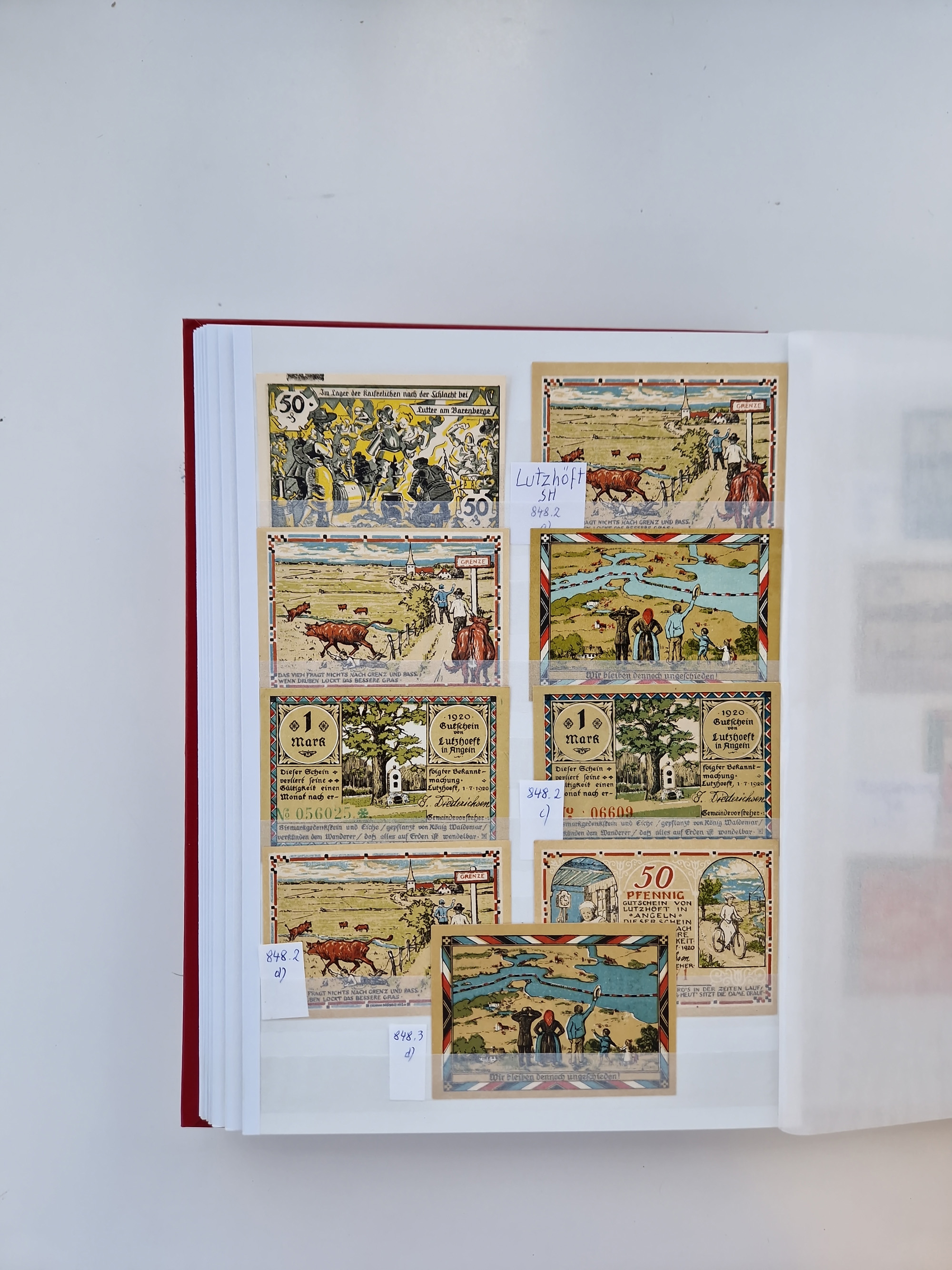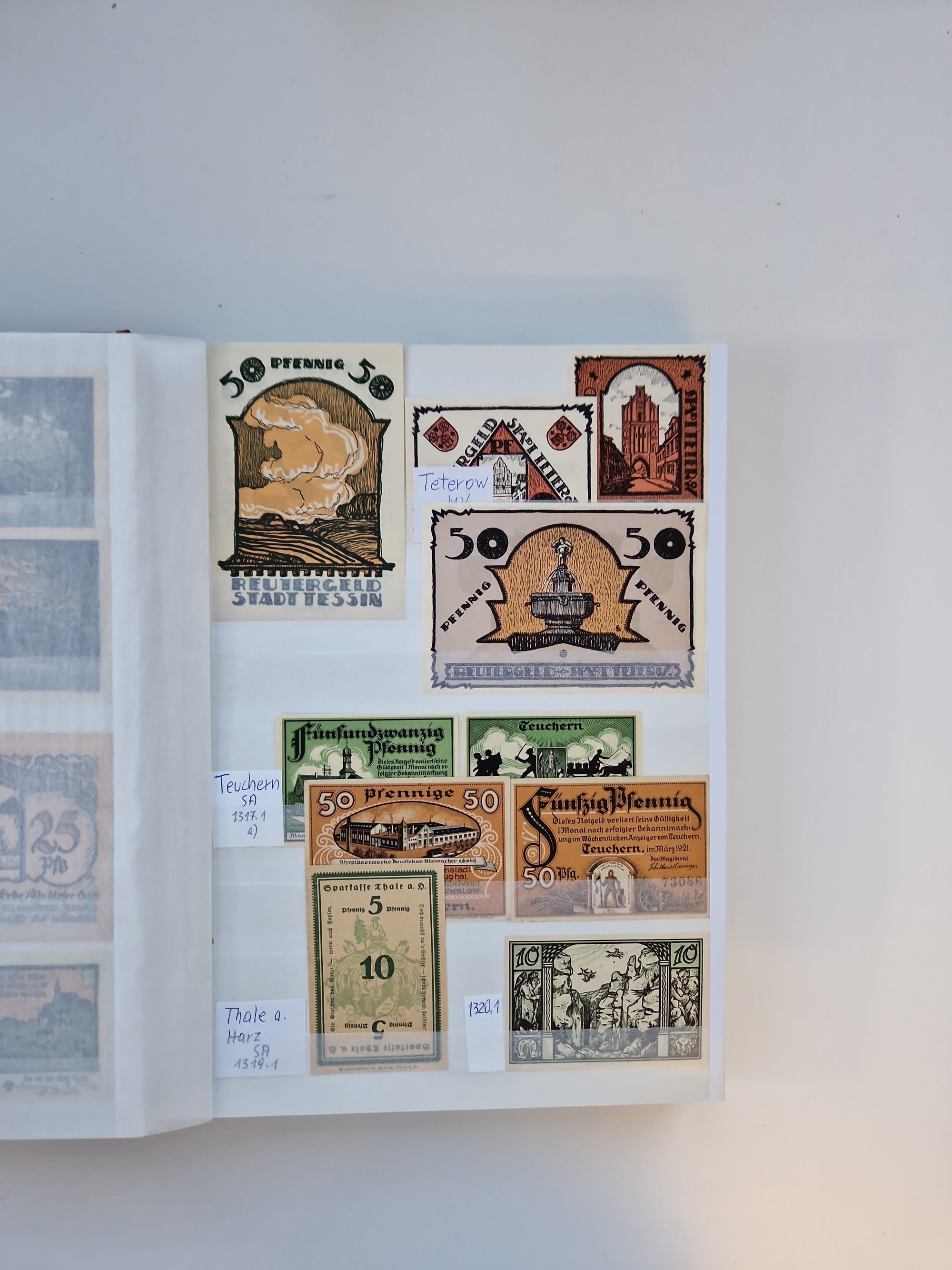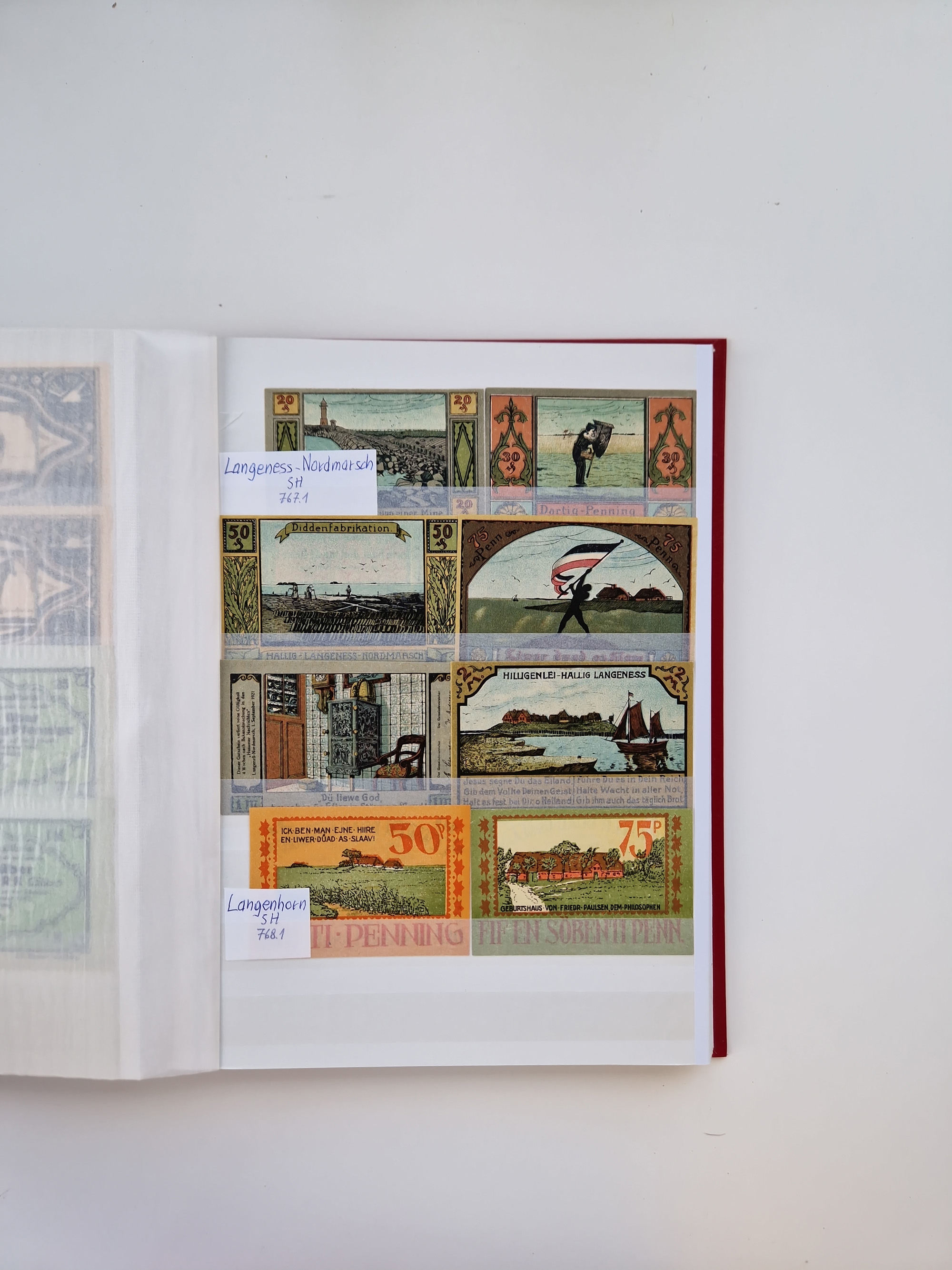 Notgeld-Serienscheine, saubere Sammlung in 16 meist dicken Steckalben, sauber nach Orten und Serien sortiert, überschlägig etwa 7/8000 Stück, dazu 4 Kataloge