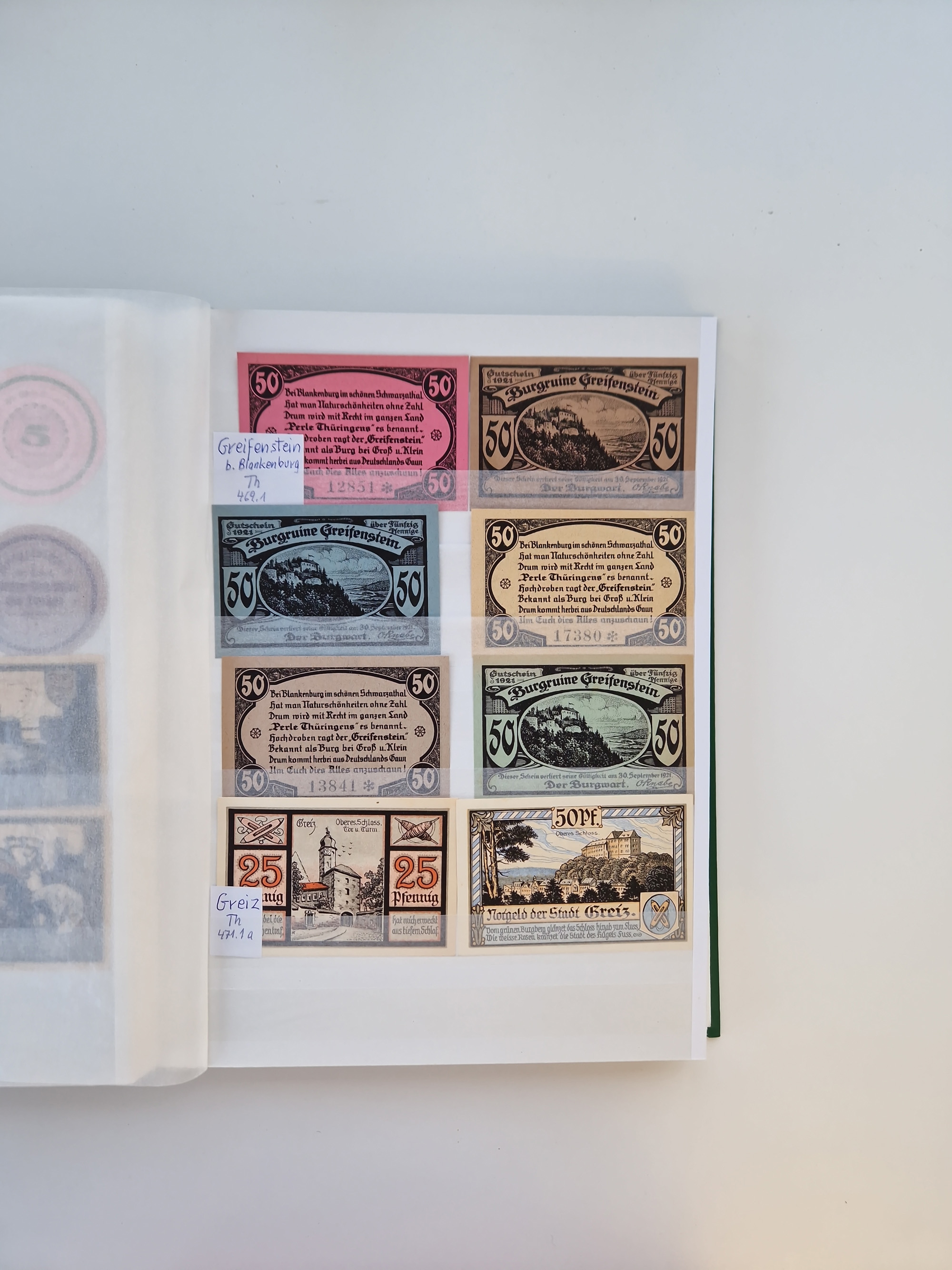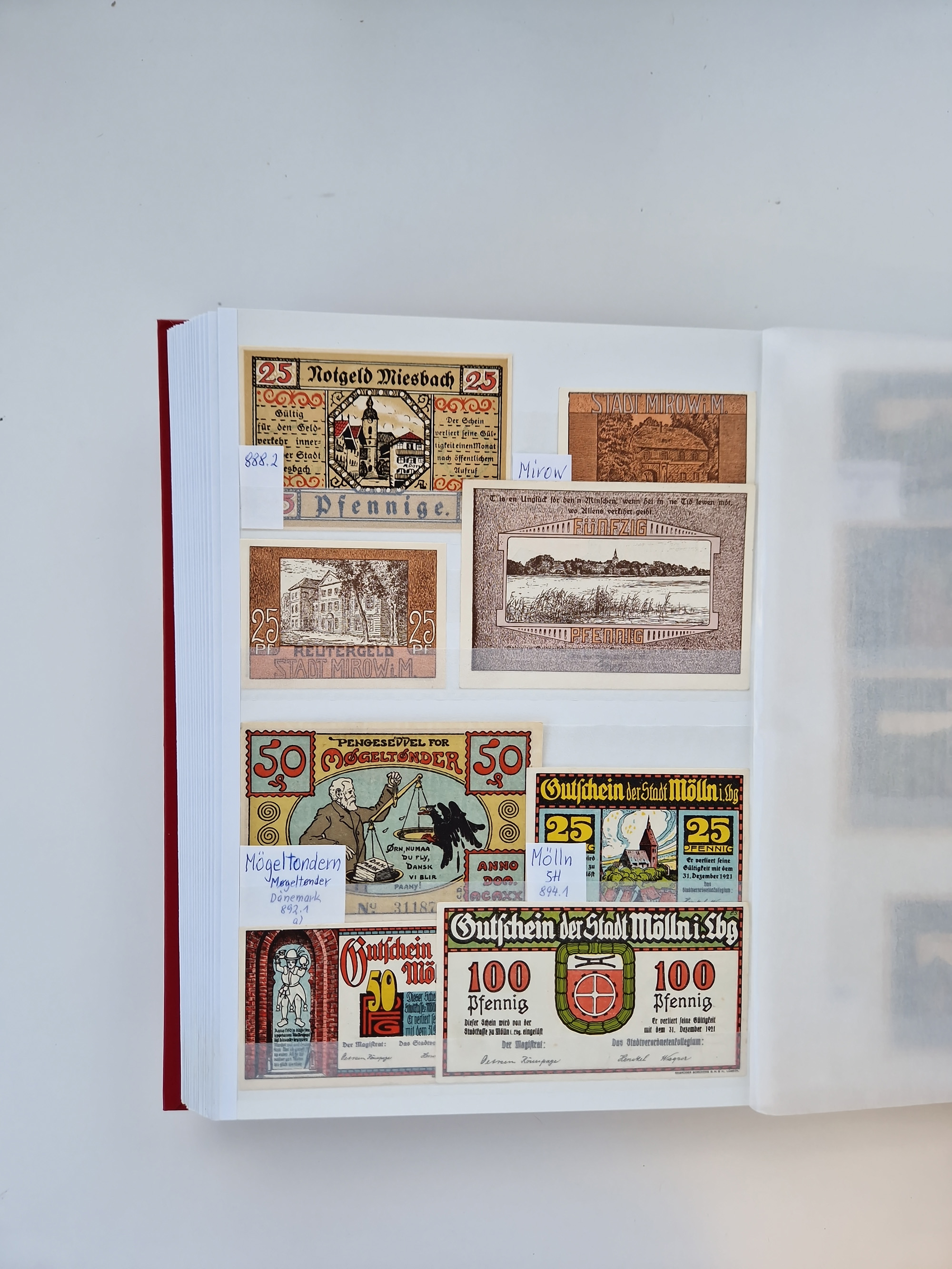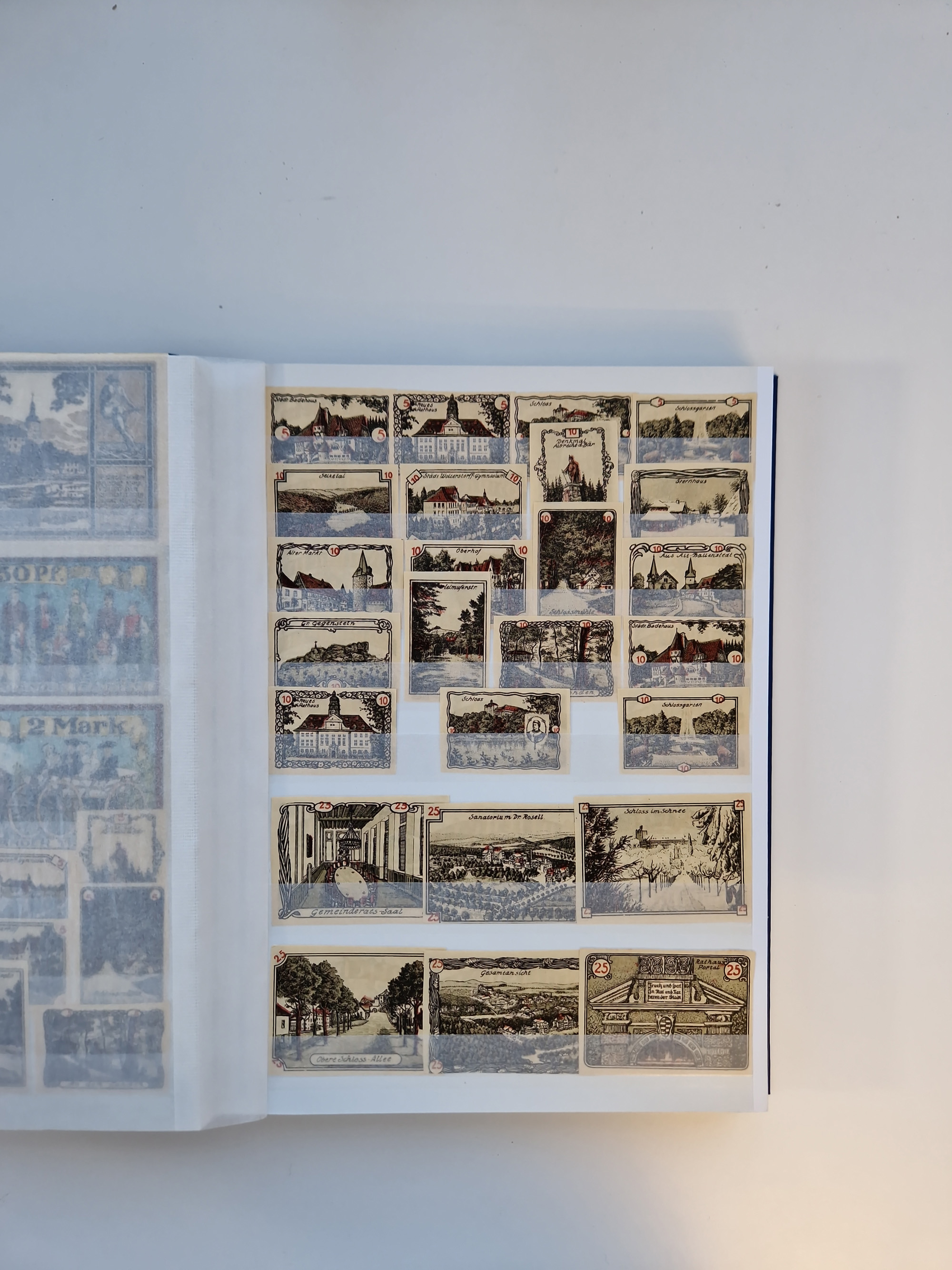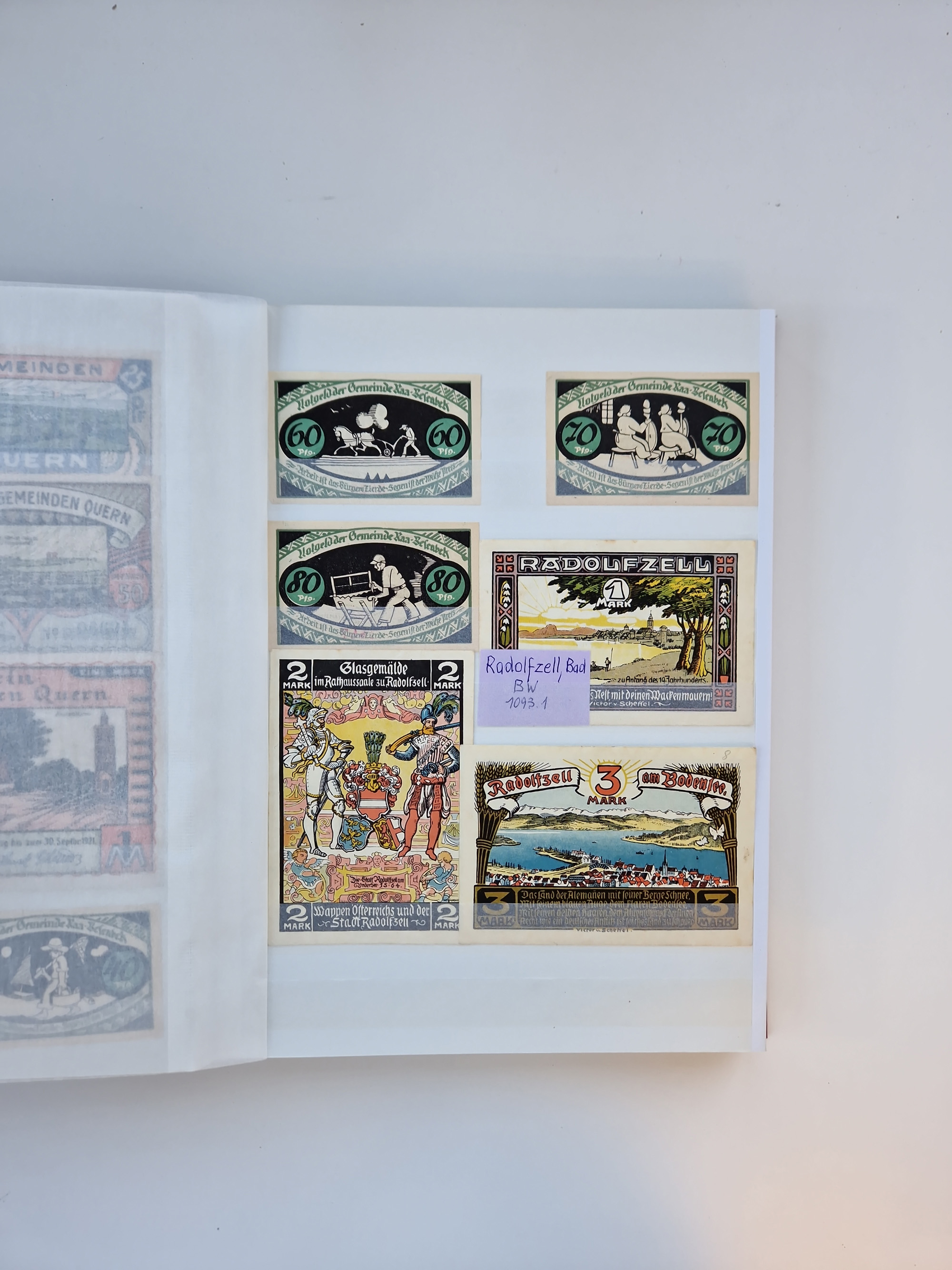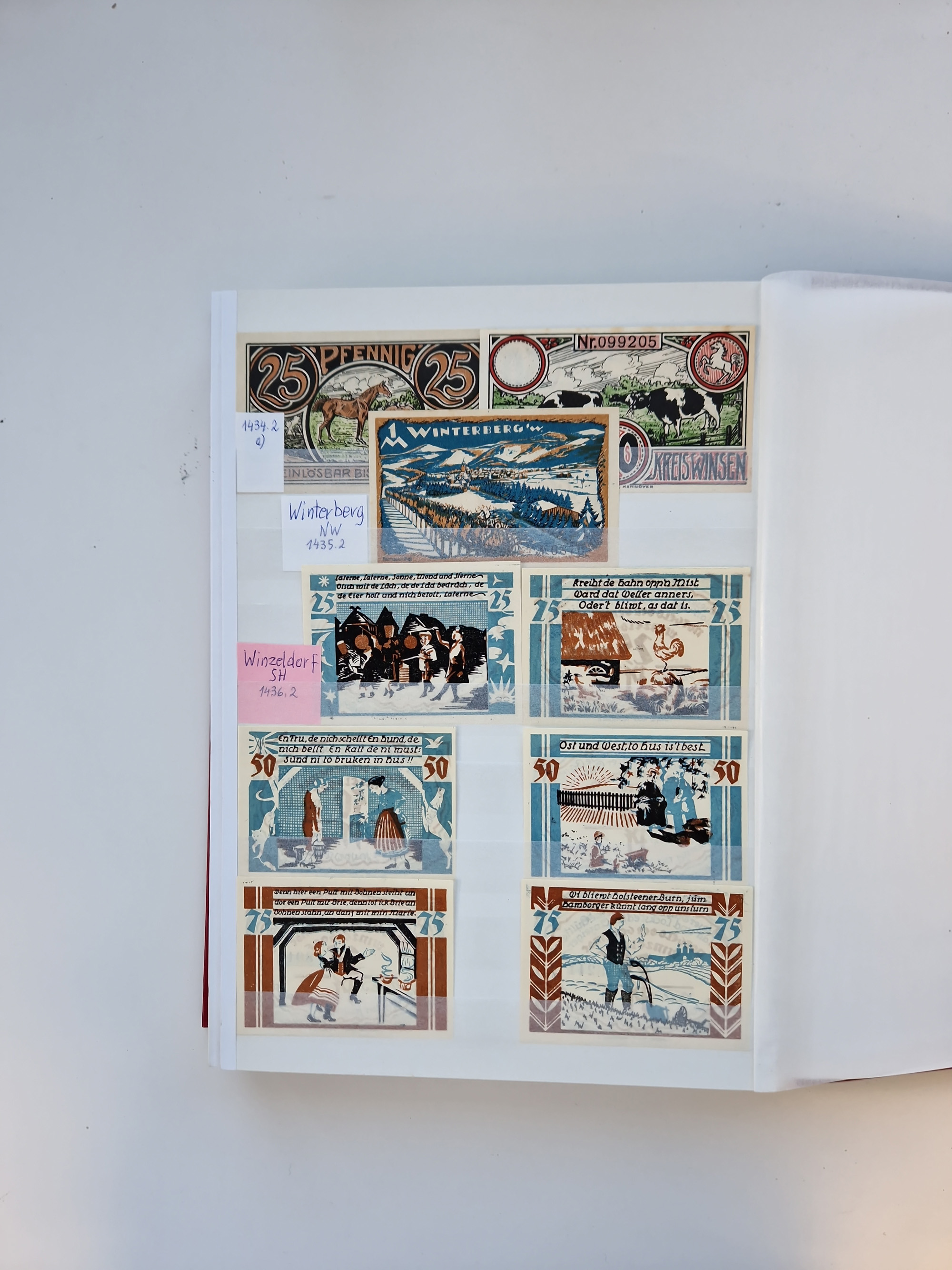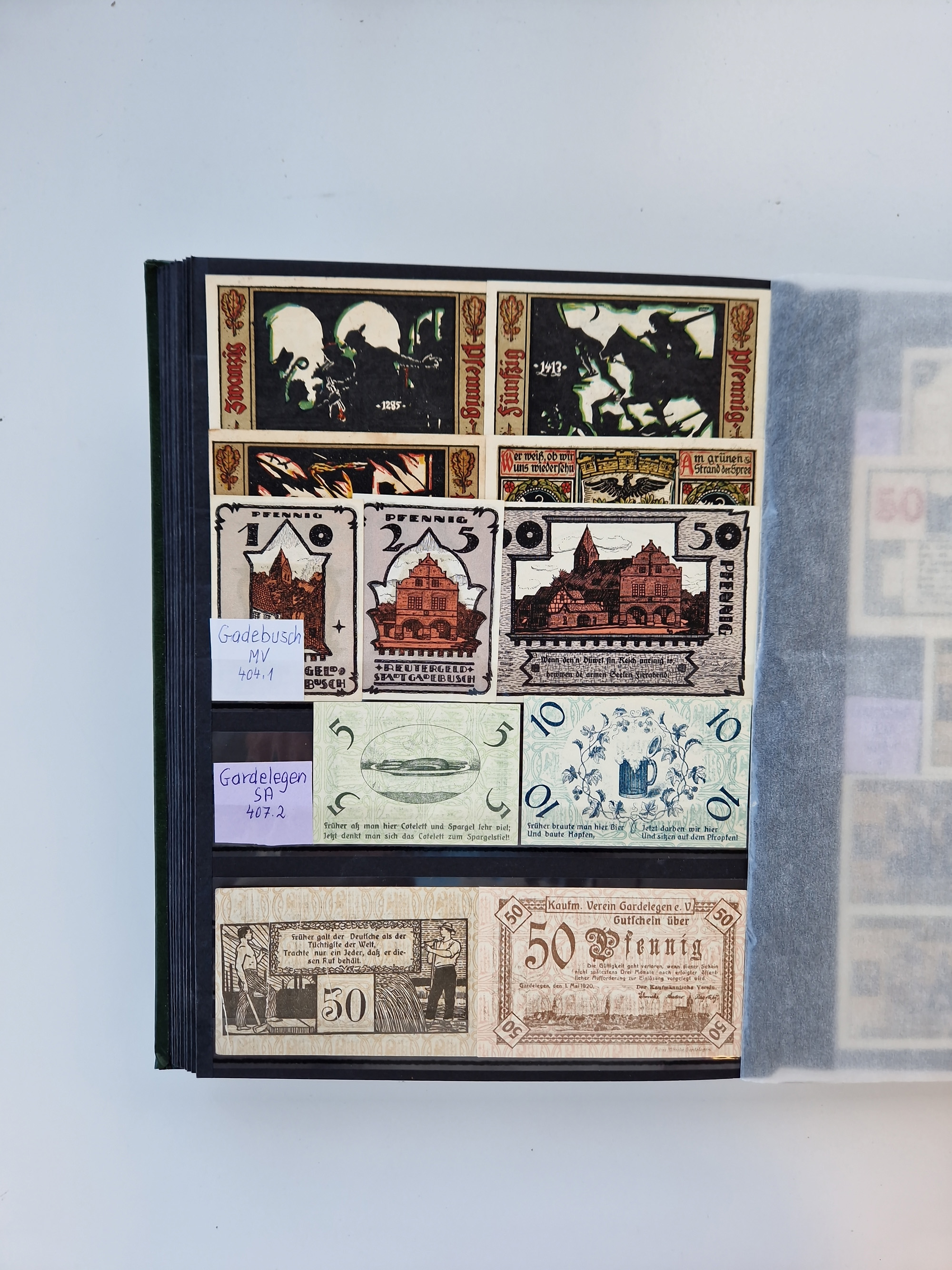 Notgeld-Serienscheine, saubere Sammlung in 16 meist dicken Steckalben, sauber nach Orten und Serien sortiert, überschlägig etwa 7/8000 Stück, dazu 4 Kataloge