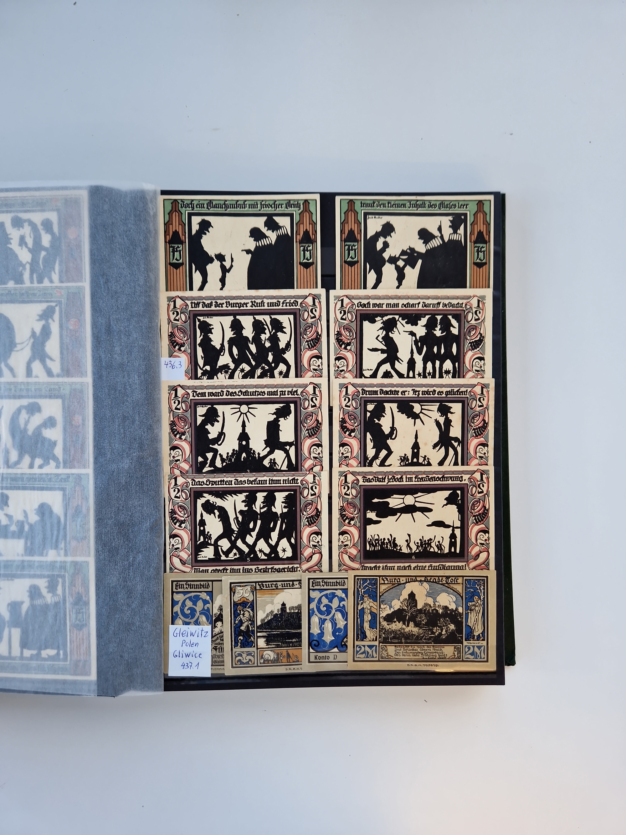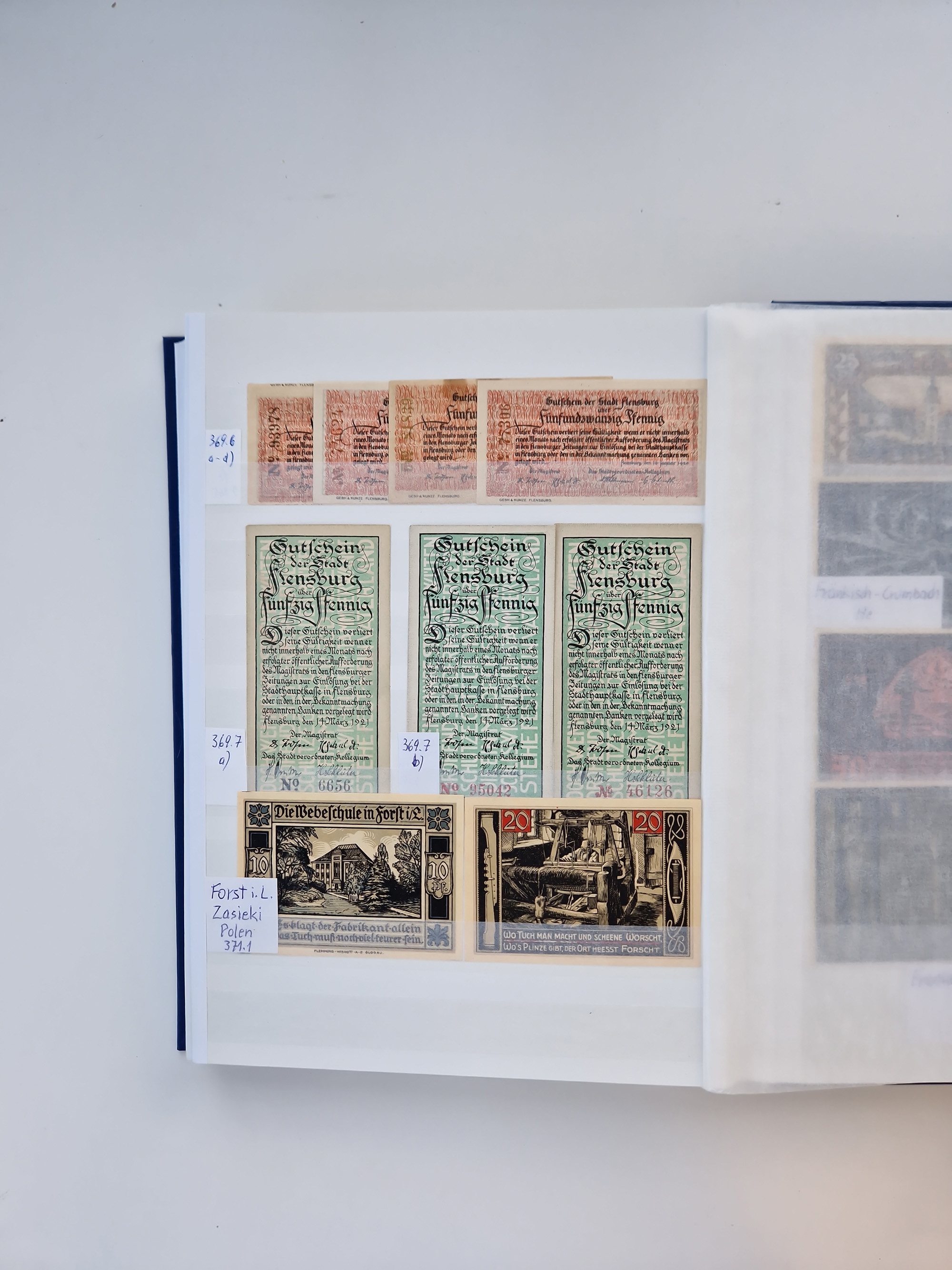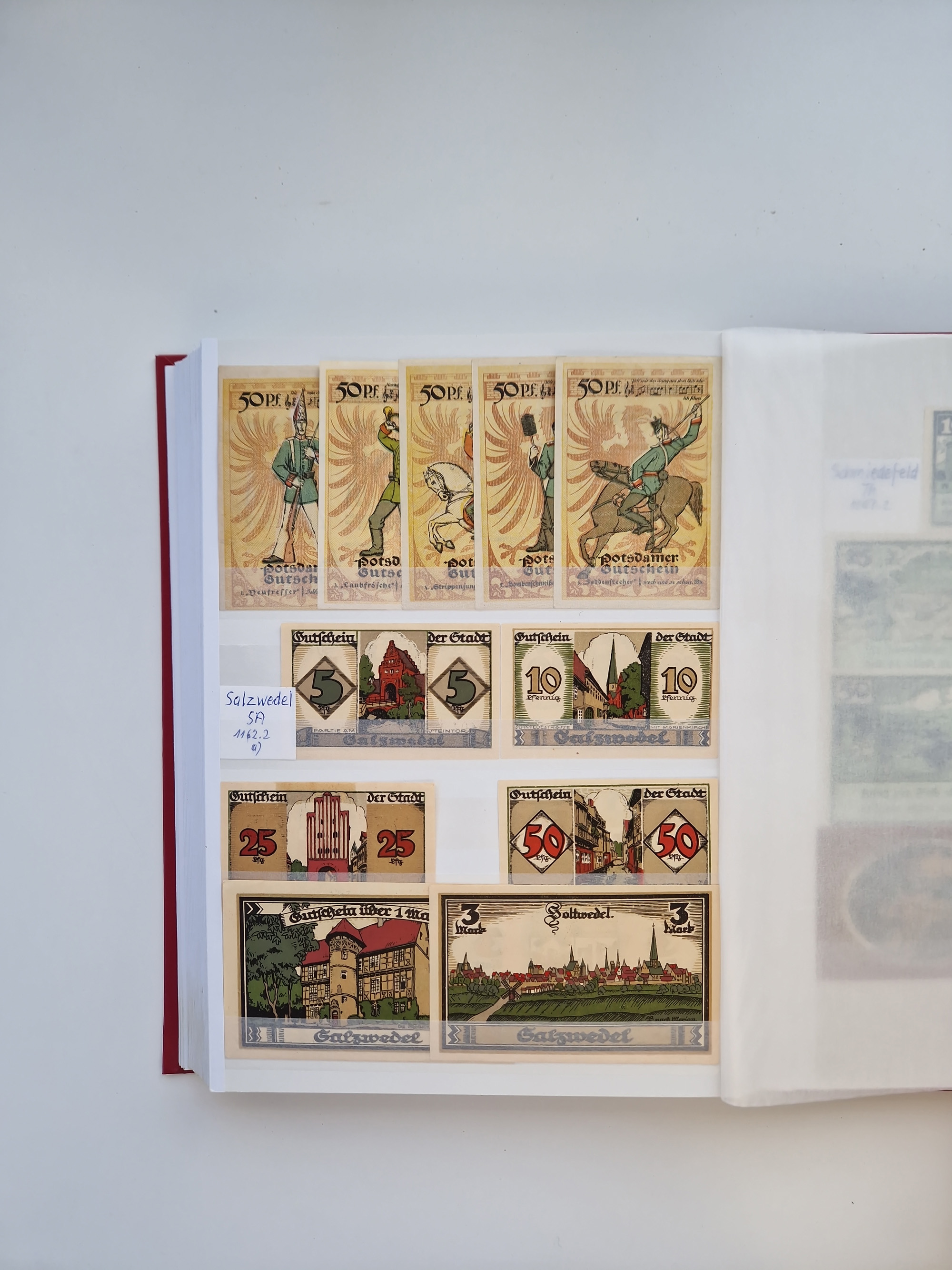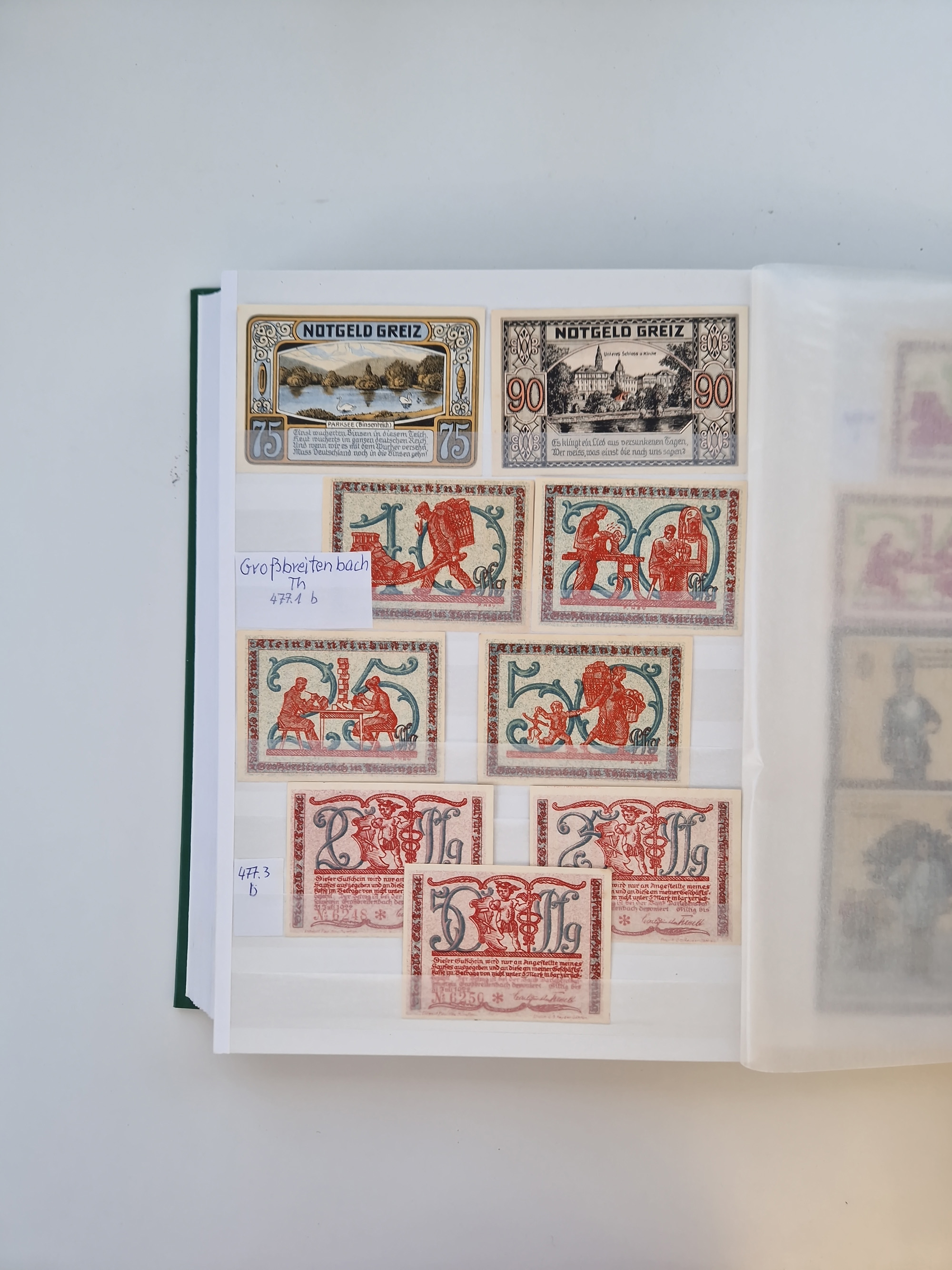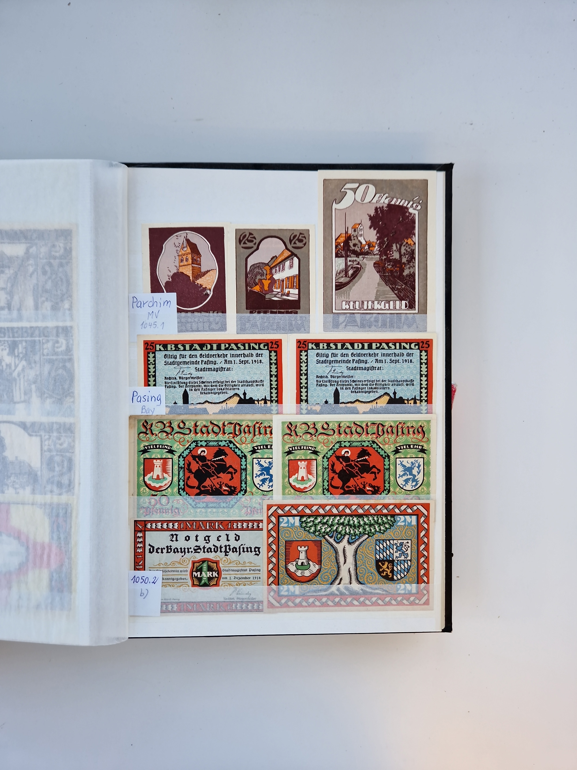 Notgeld-Serienscheine, saubere Sammlung in 16 meist dicken Steckalben, sauber nach Orten und Serien sortiert, überschlägig etwa 7/8000 Stück, dazu 4 Kataloge
