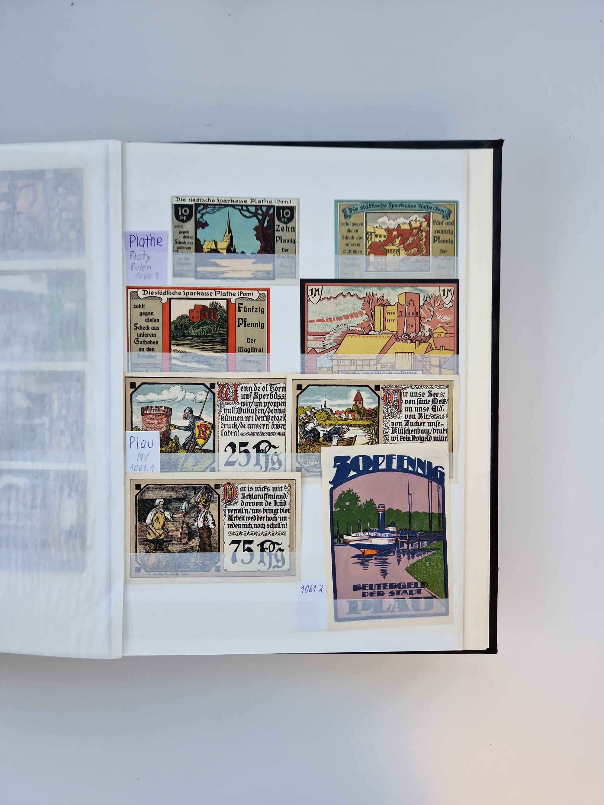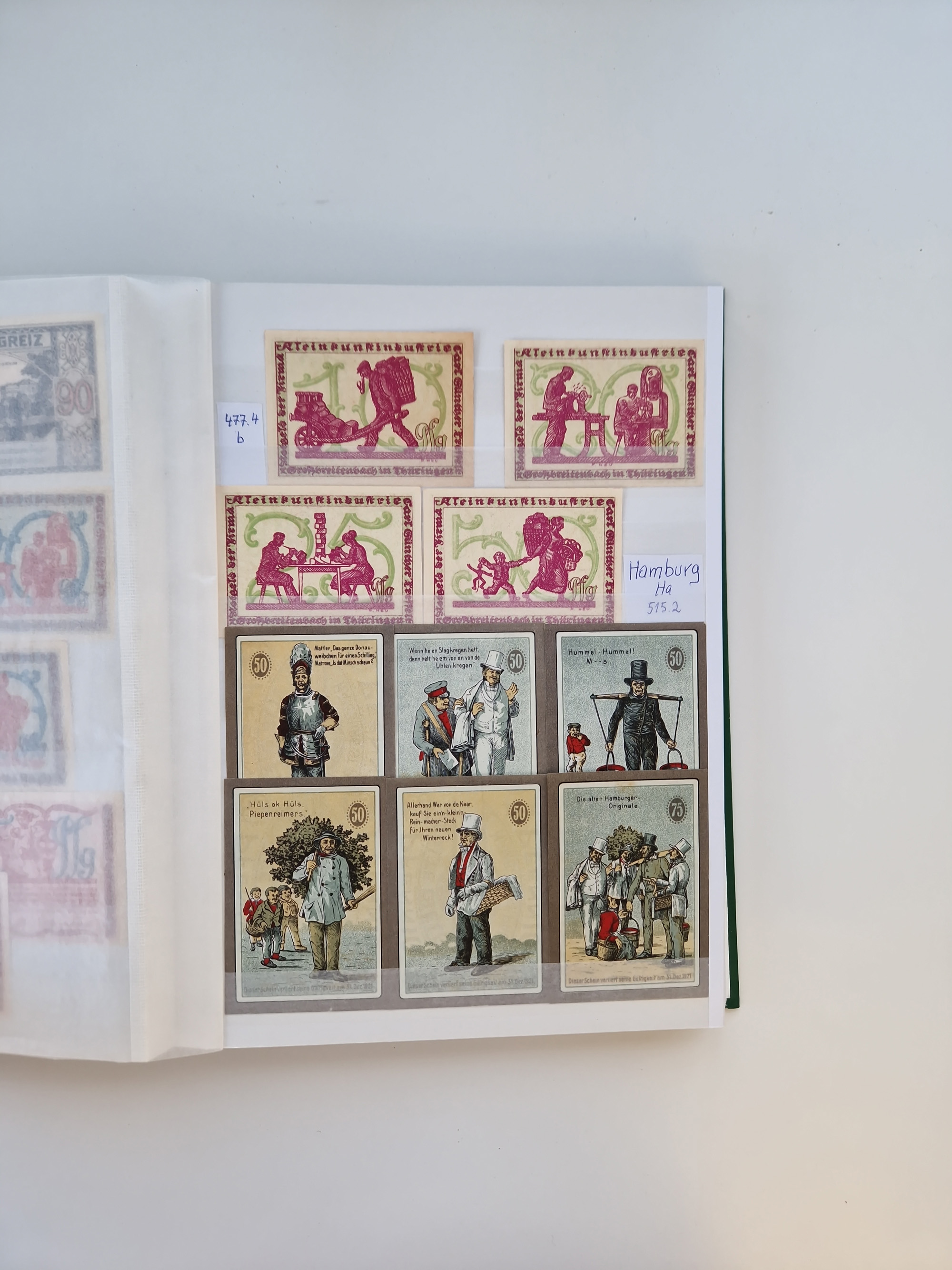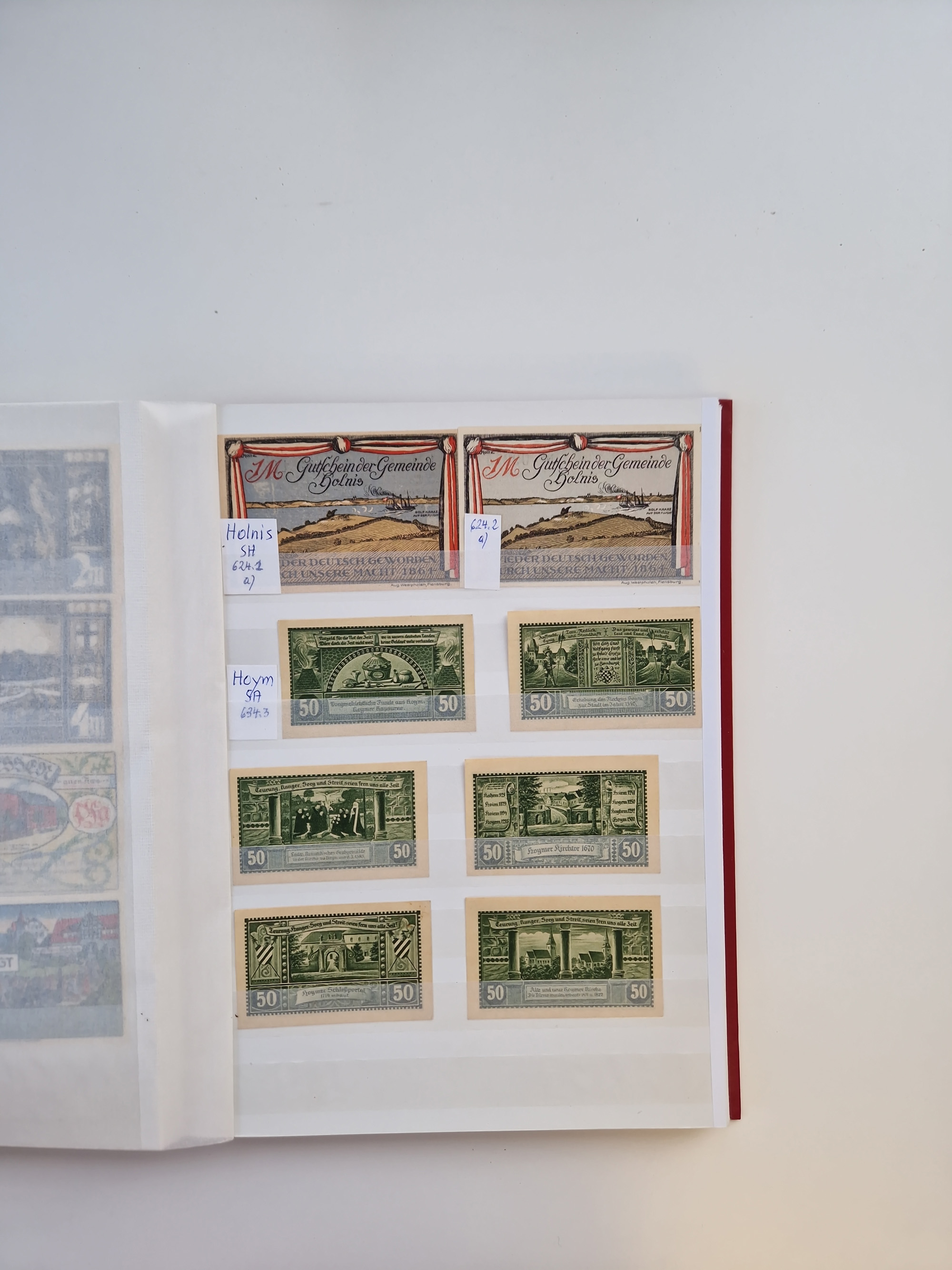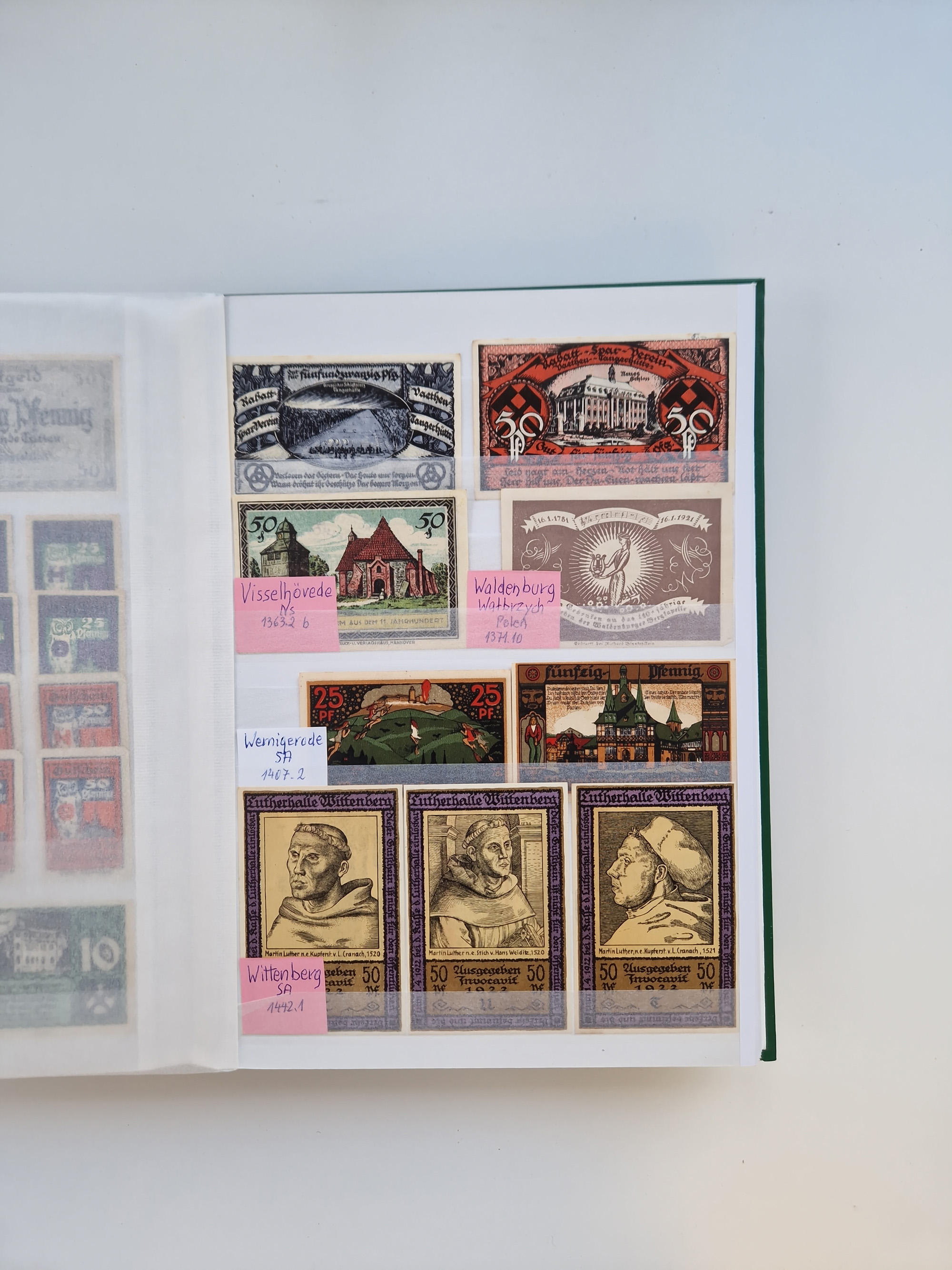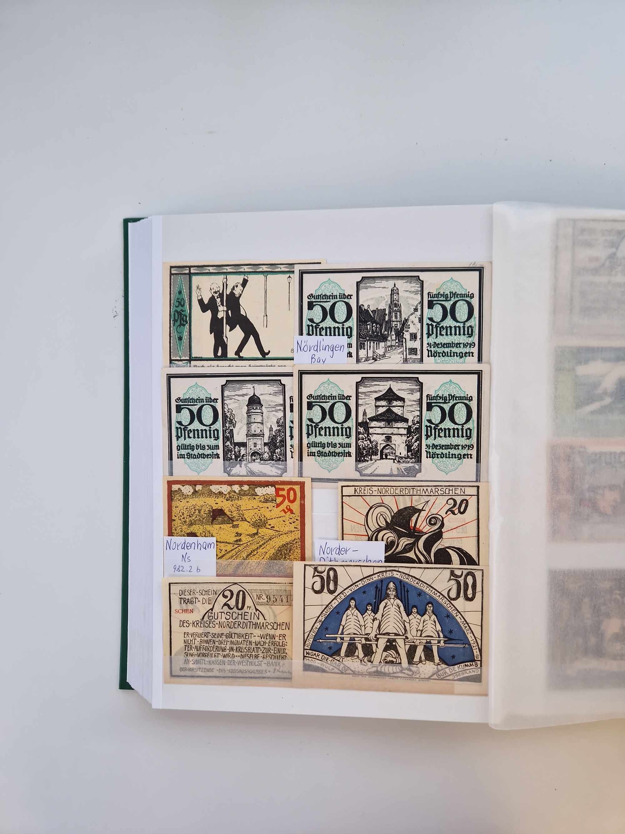 Notgeld-Serienscheine, saubere Sammlung in 16 meist dicken Steckalben, sauber nach Orten und Serien sortiert, überschlägig etwa 7/8000 Stück, dazu 4 Kataloge
