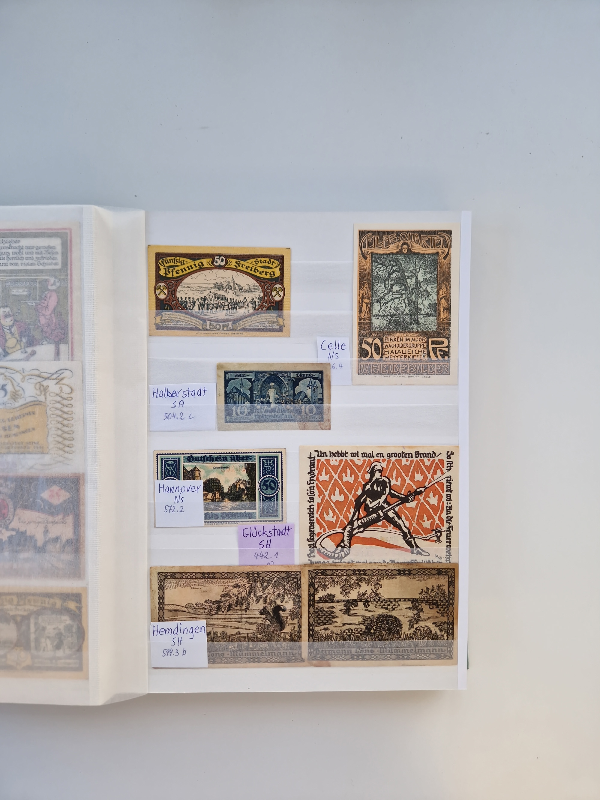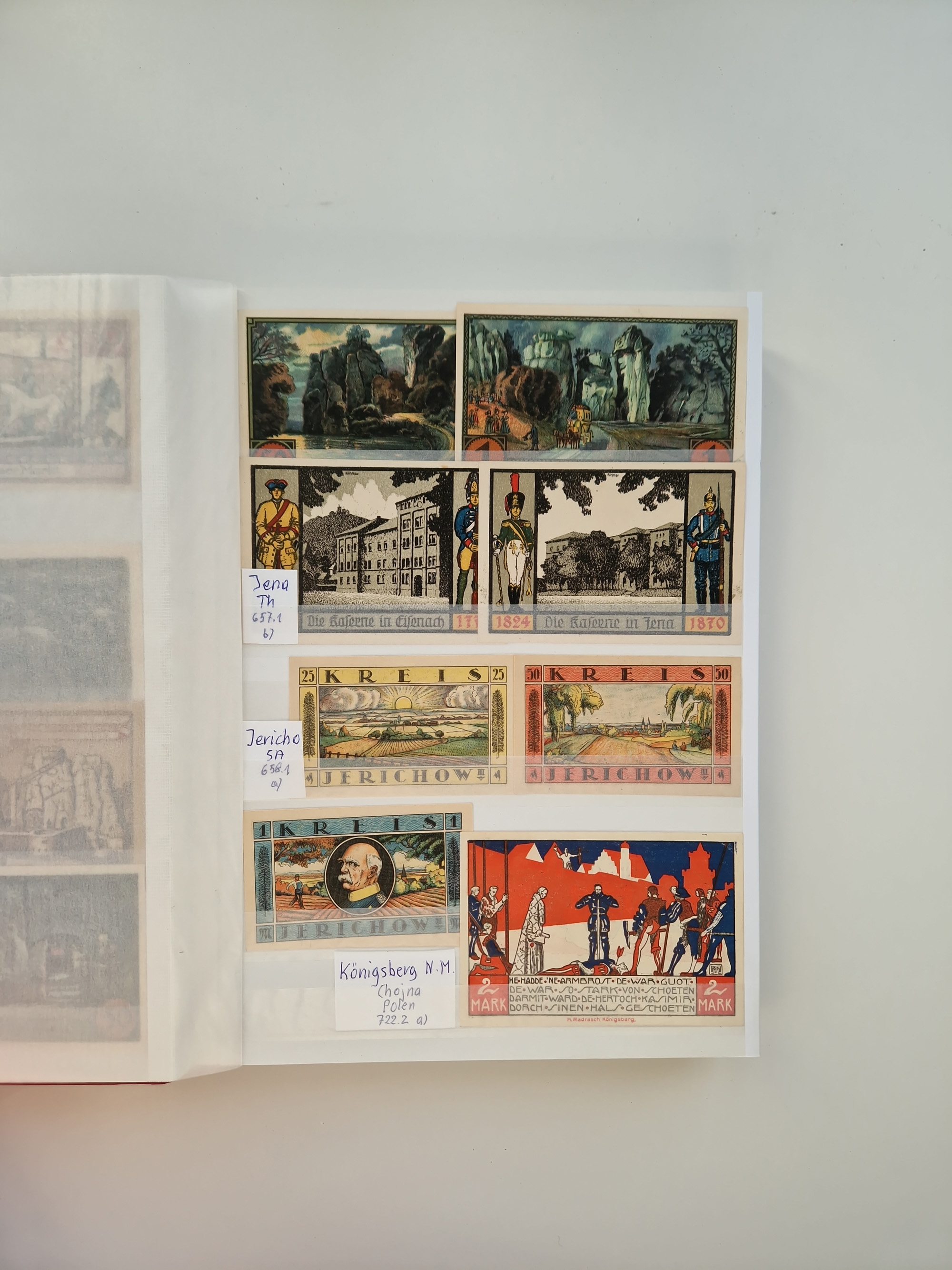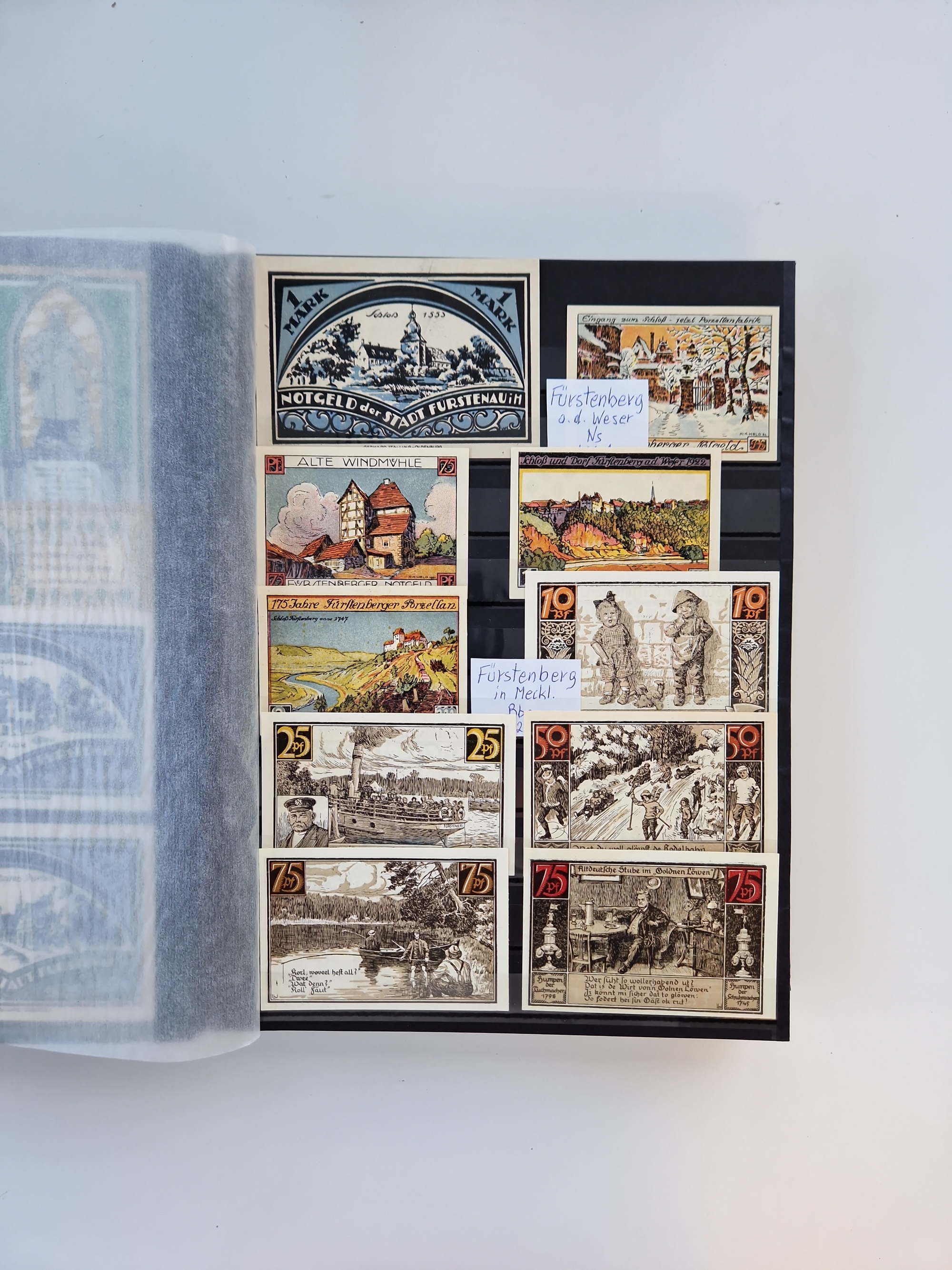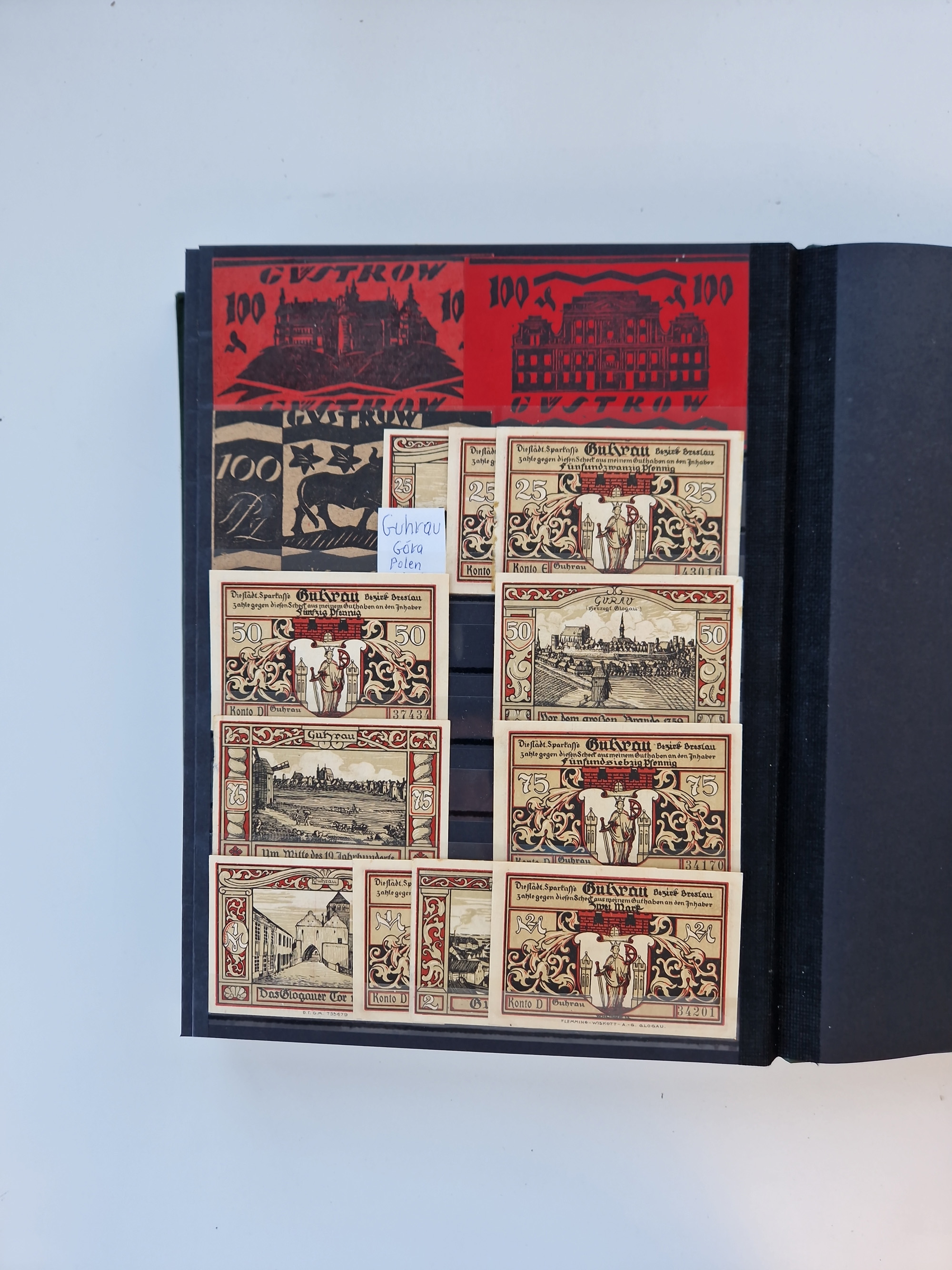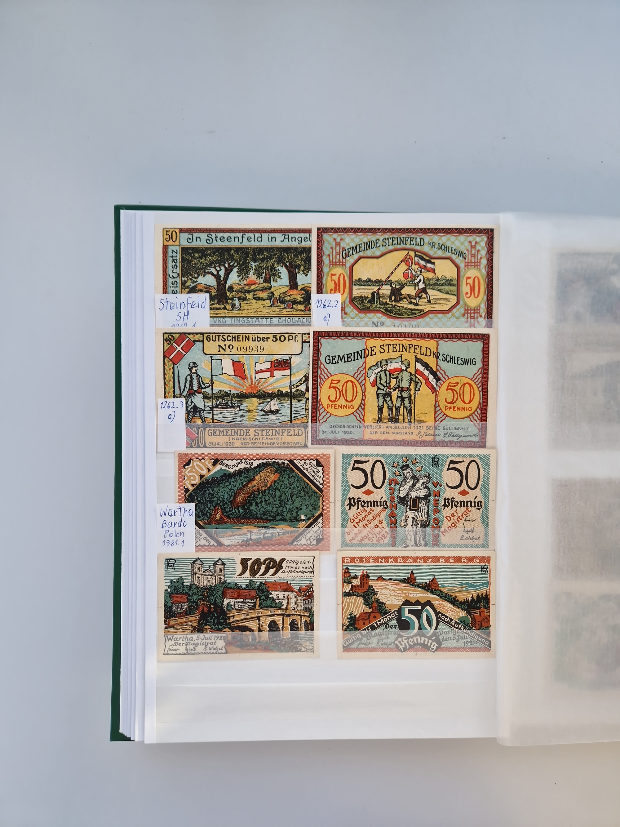 Notgeld-Serienscheine, saubere Sammlung in 16 meist dicken Steckalben, sauber nach Orten und Serien sortiert, überschlägig etwa 7/8000 Stück, dazu 4 Kataloge