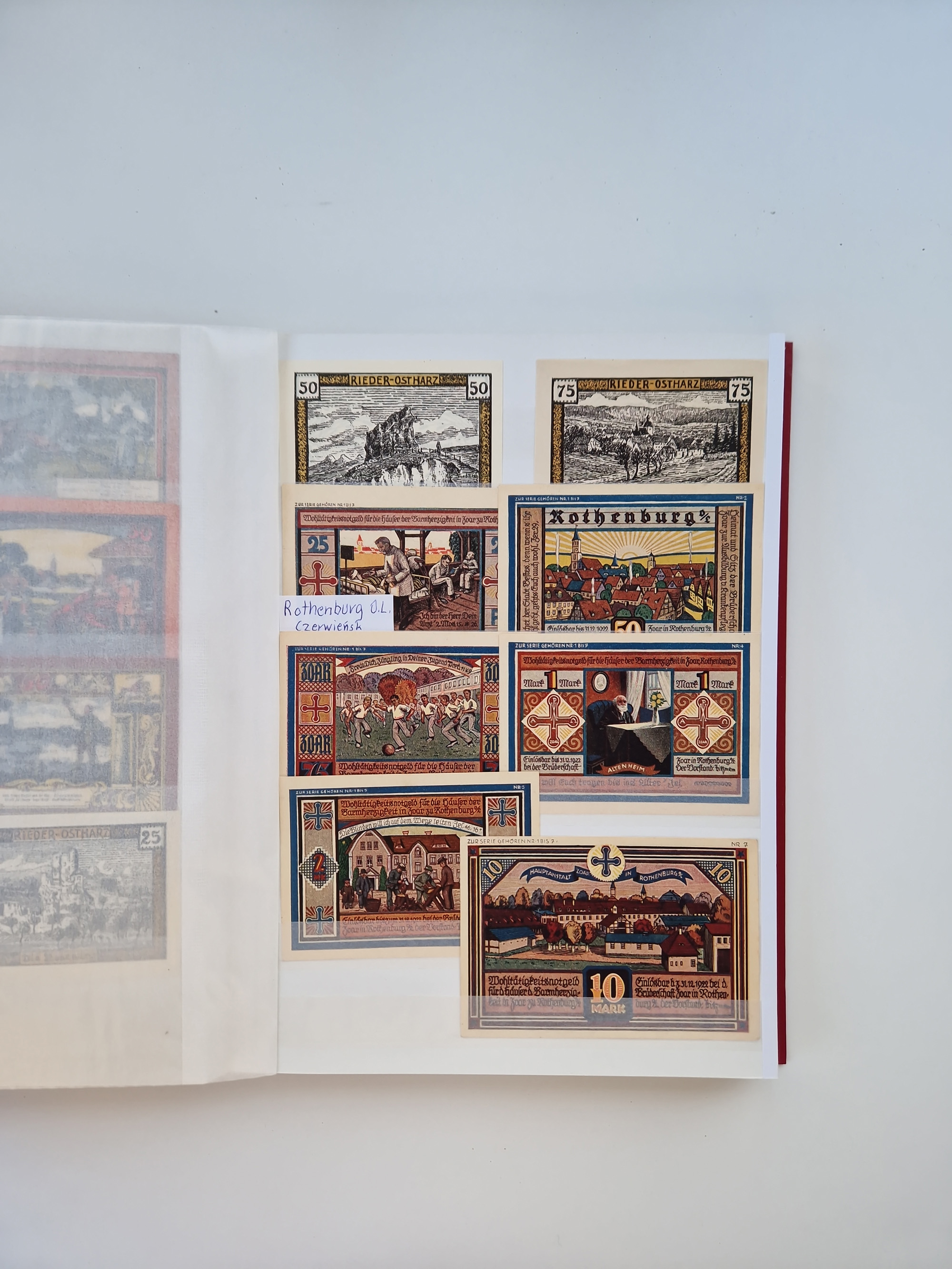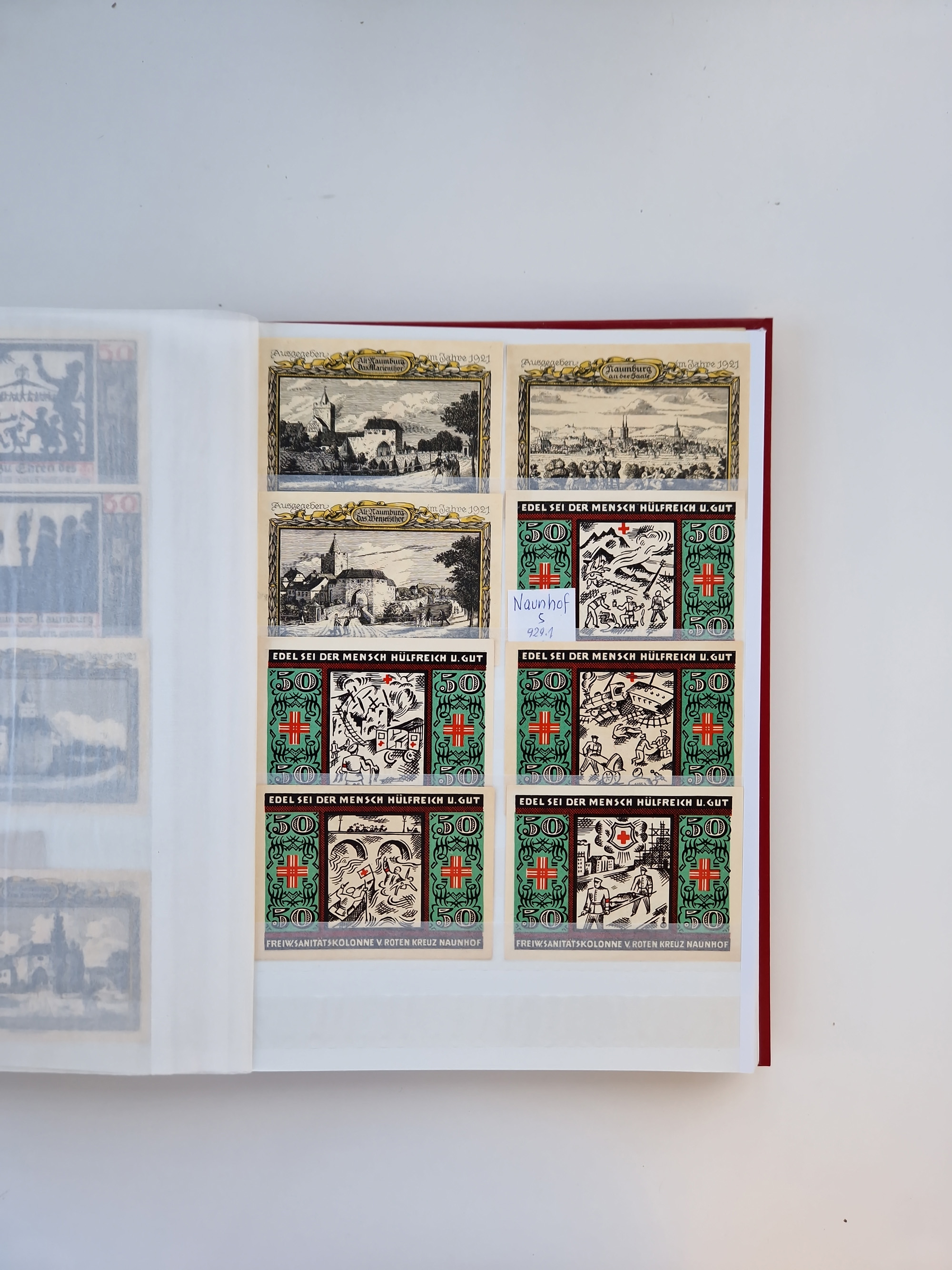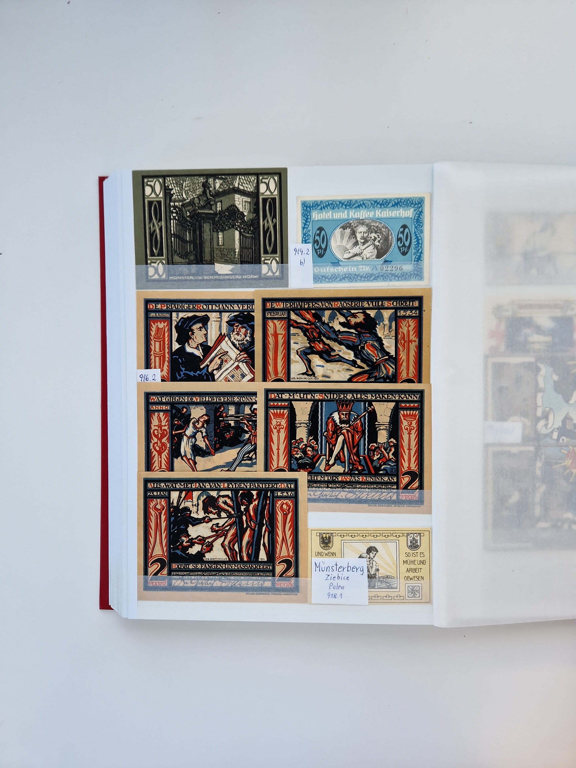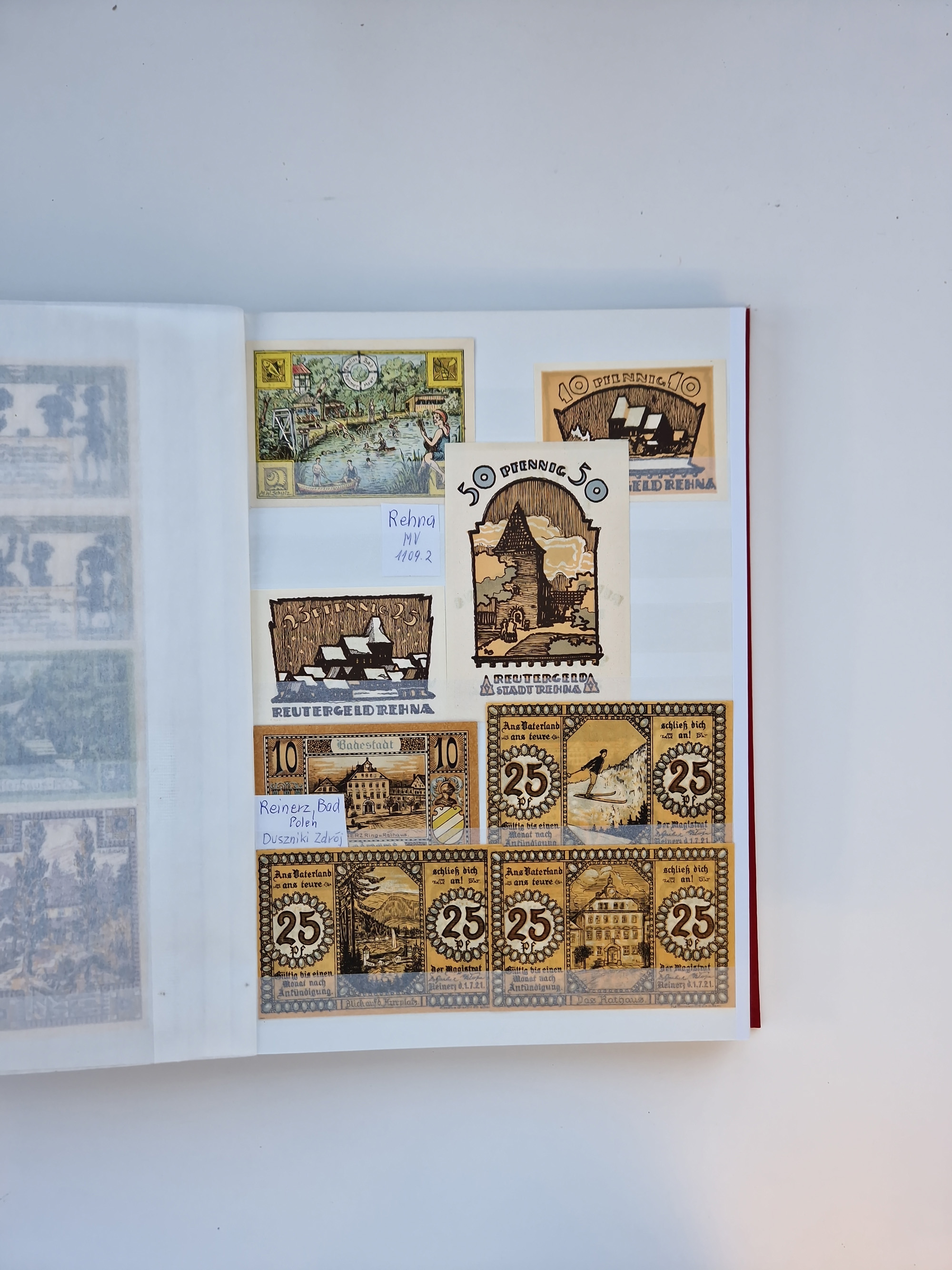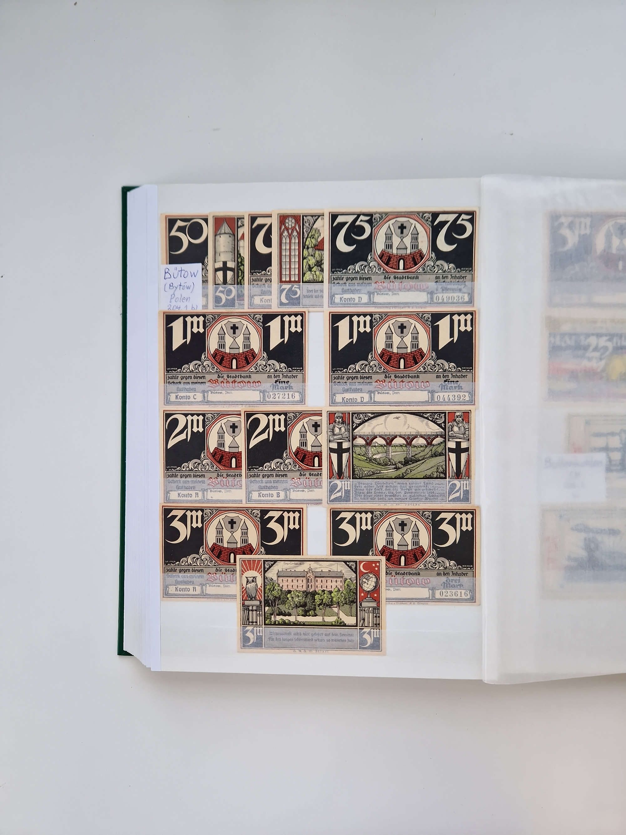 Notgeld-Serienscheine, saubere Sammlung in 16 meist dicken Steckalben, sauber nach Orten und Serien sortiert, überschlägig etwa 7/8000 Stück, dazu 4 Kataloge