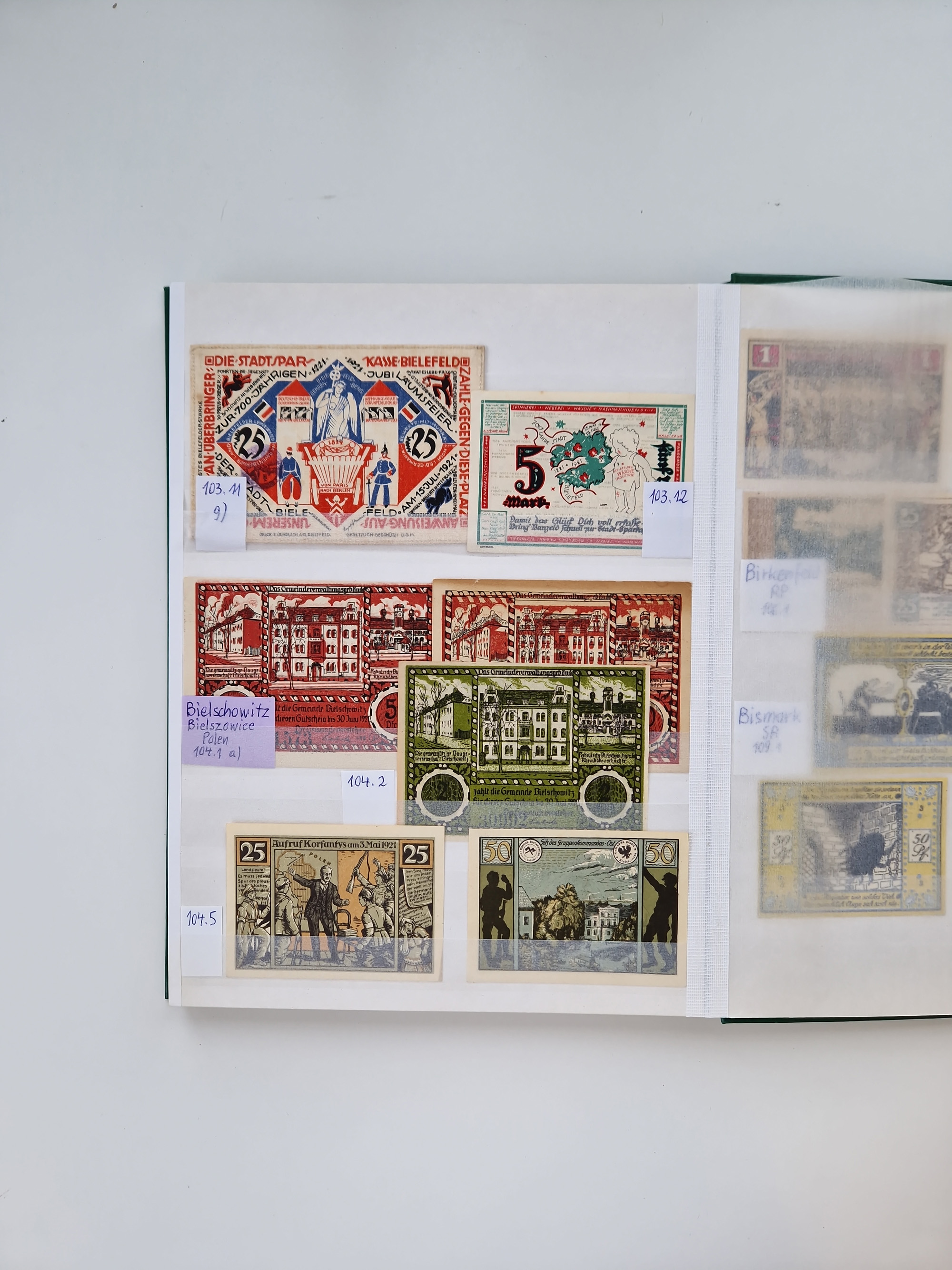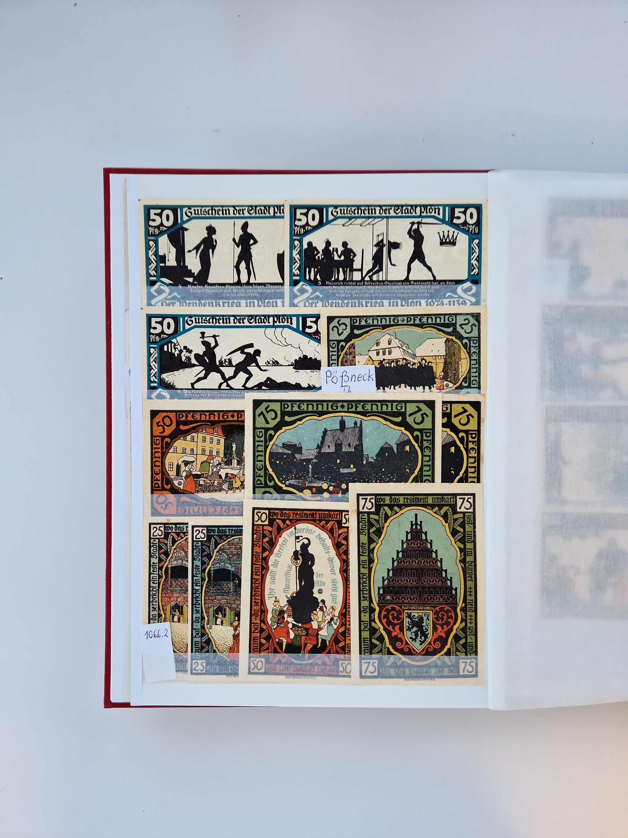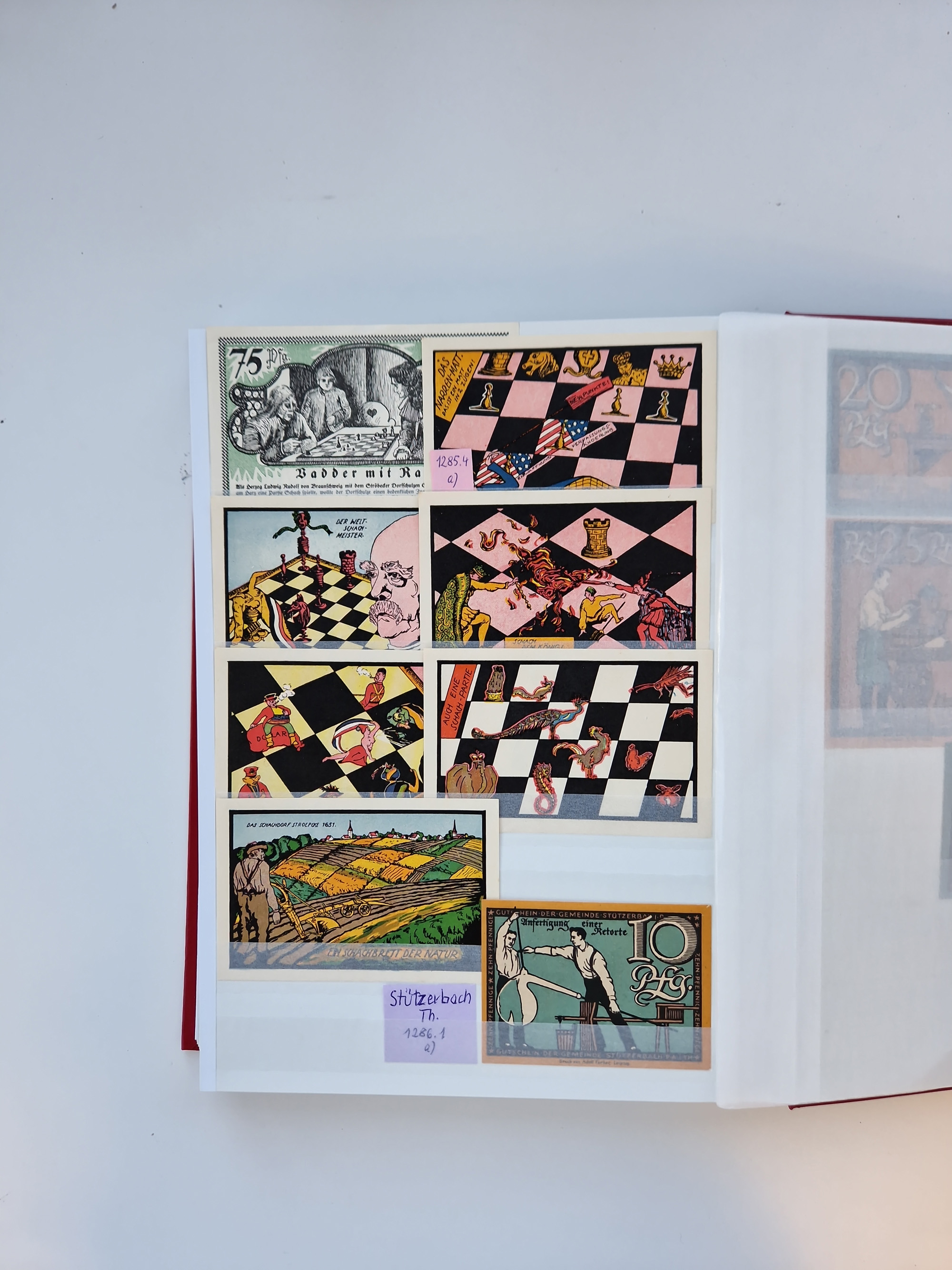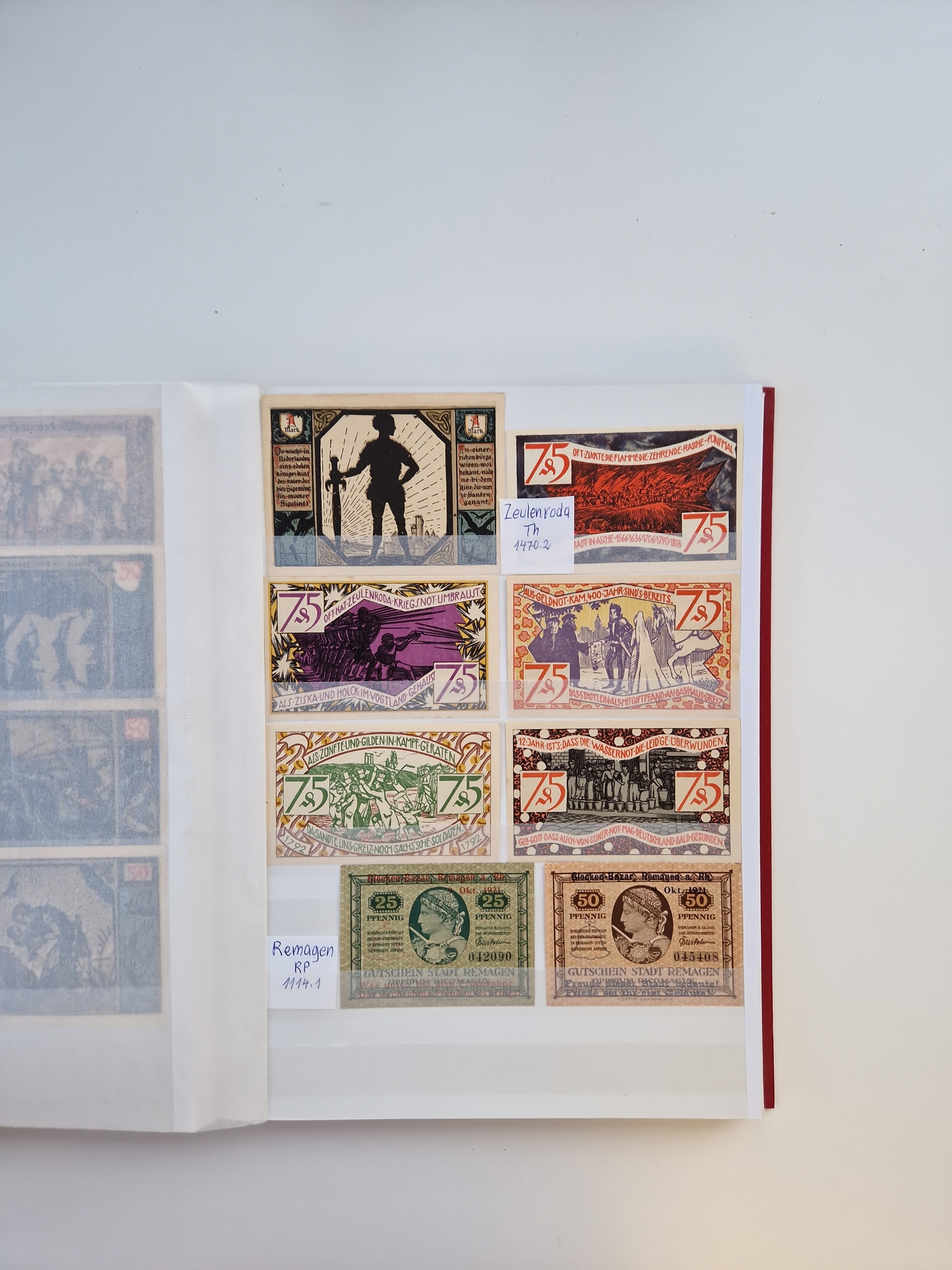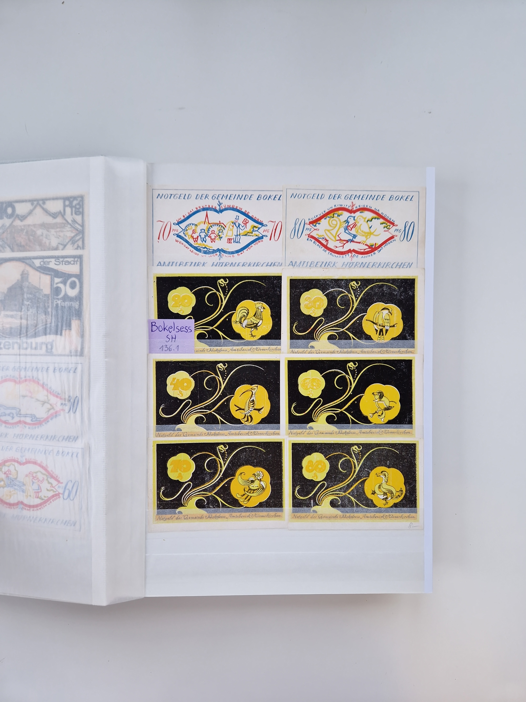 Notgeld-Serienscheine, saubere Sammlung in 16 meist dicken Steckalben, sauber nach Orten und Serien sortiert, überschlägig etwa 7/8000 Stück, dazu 4 Kataloge