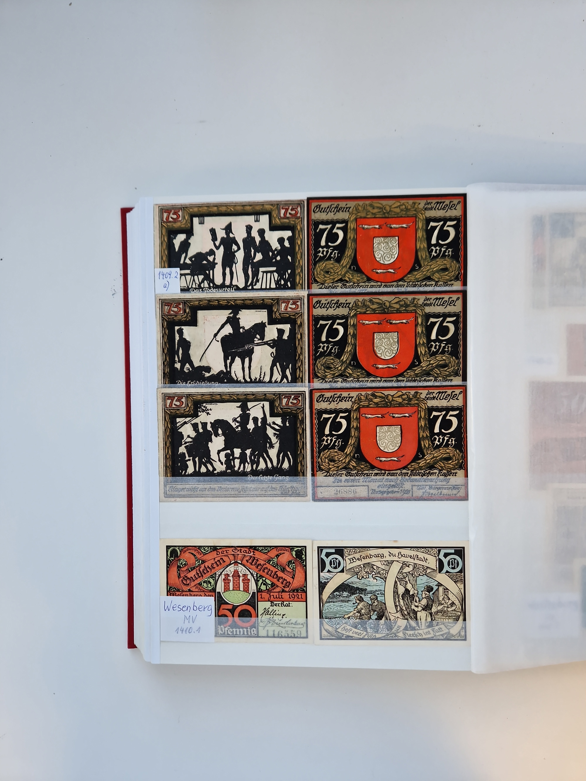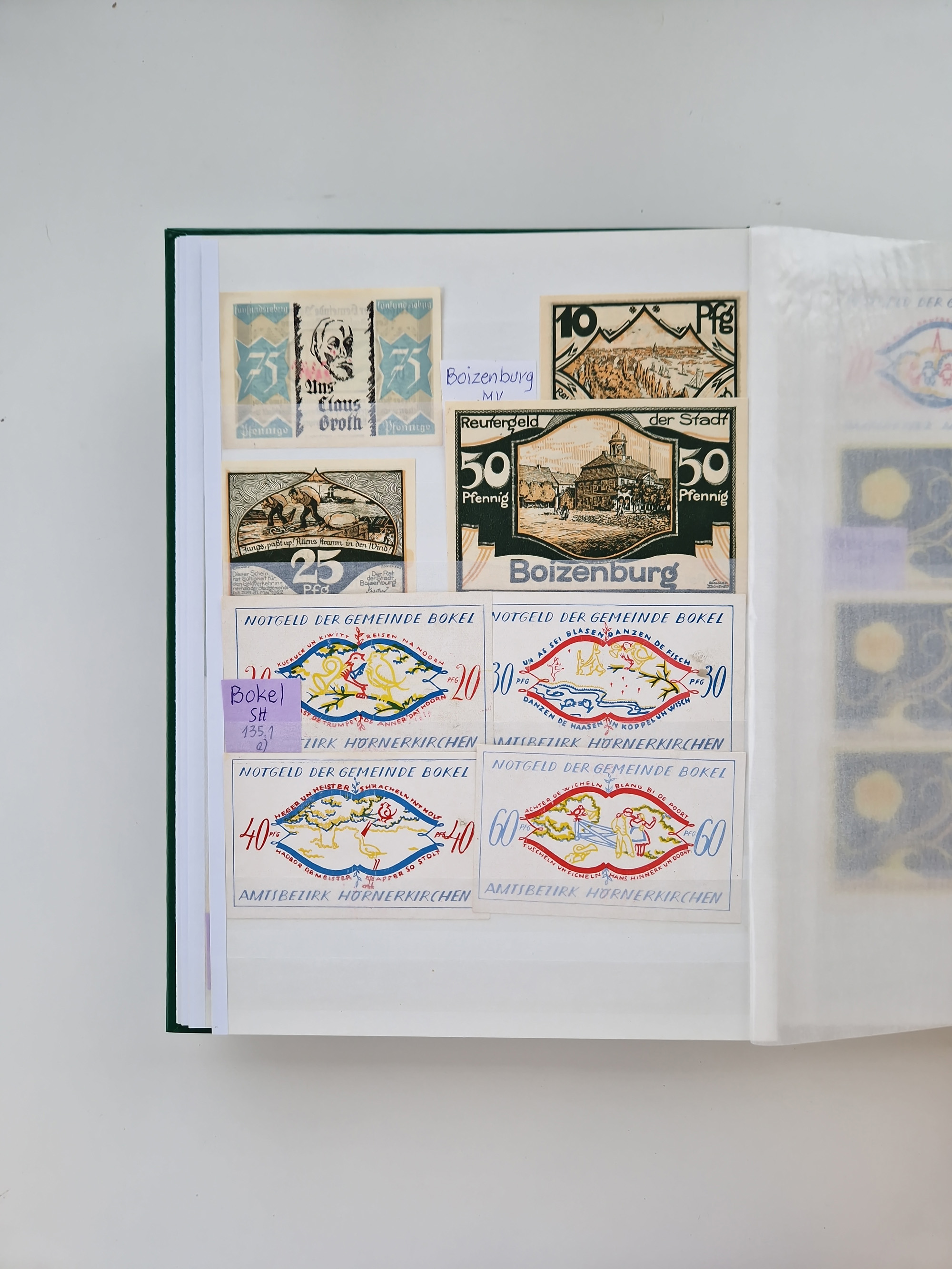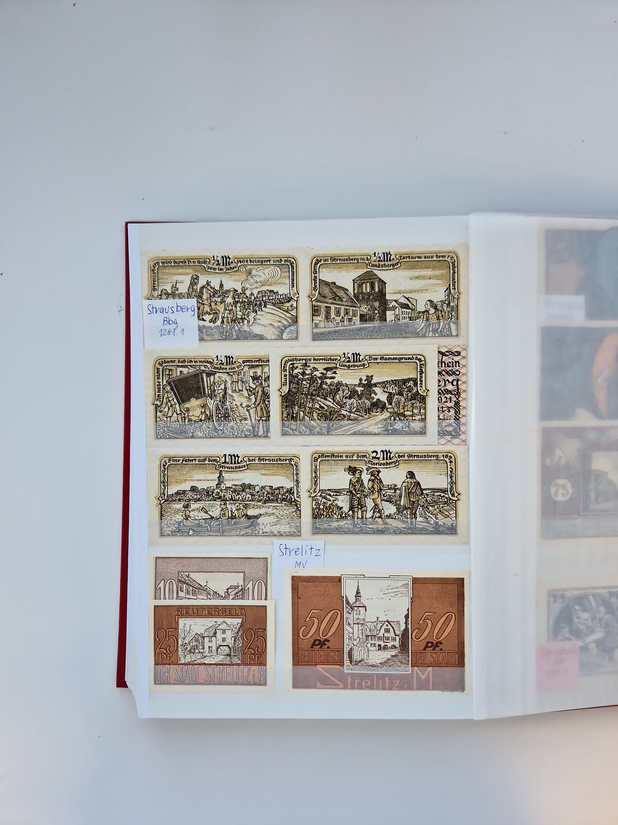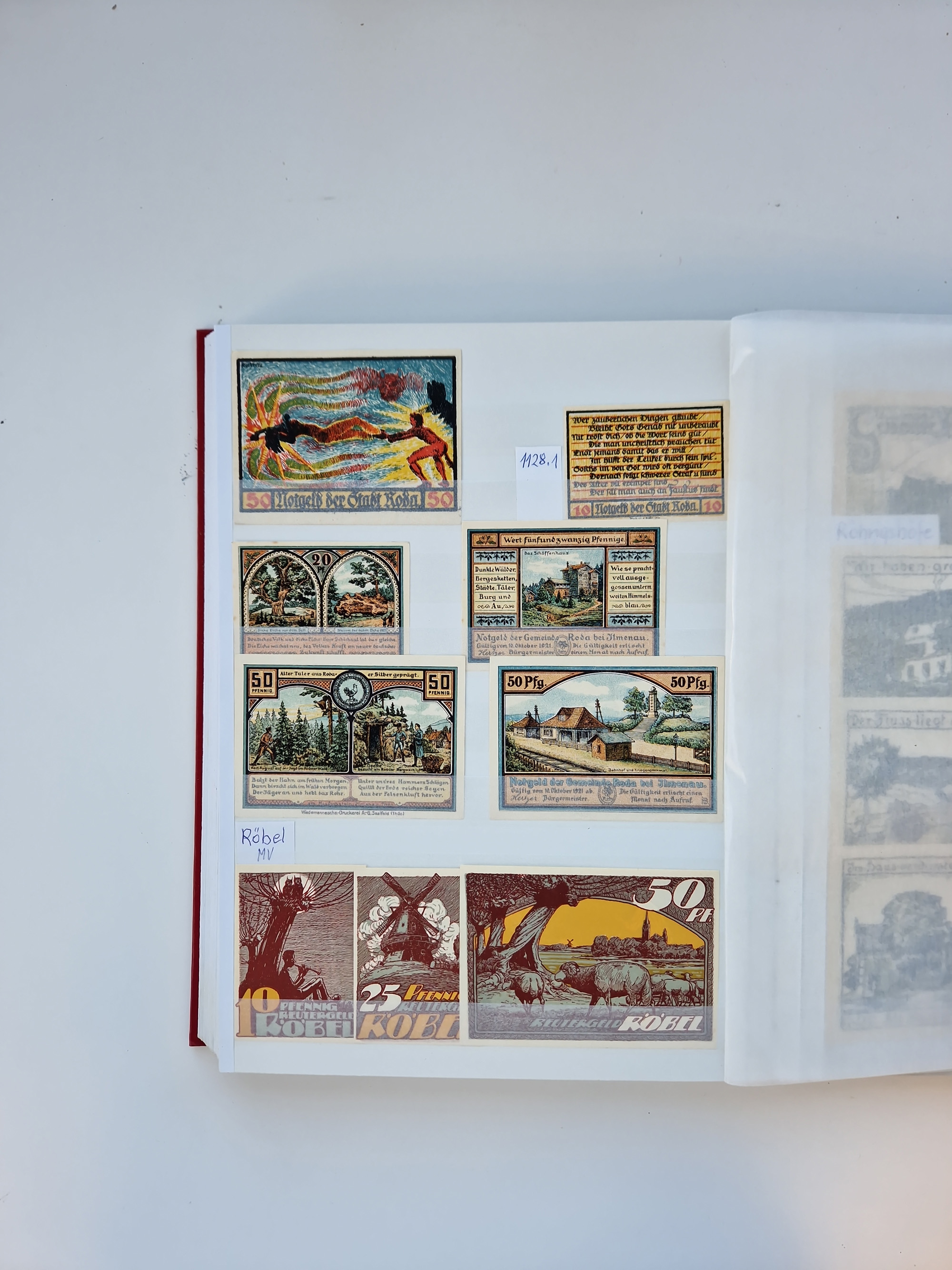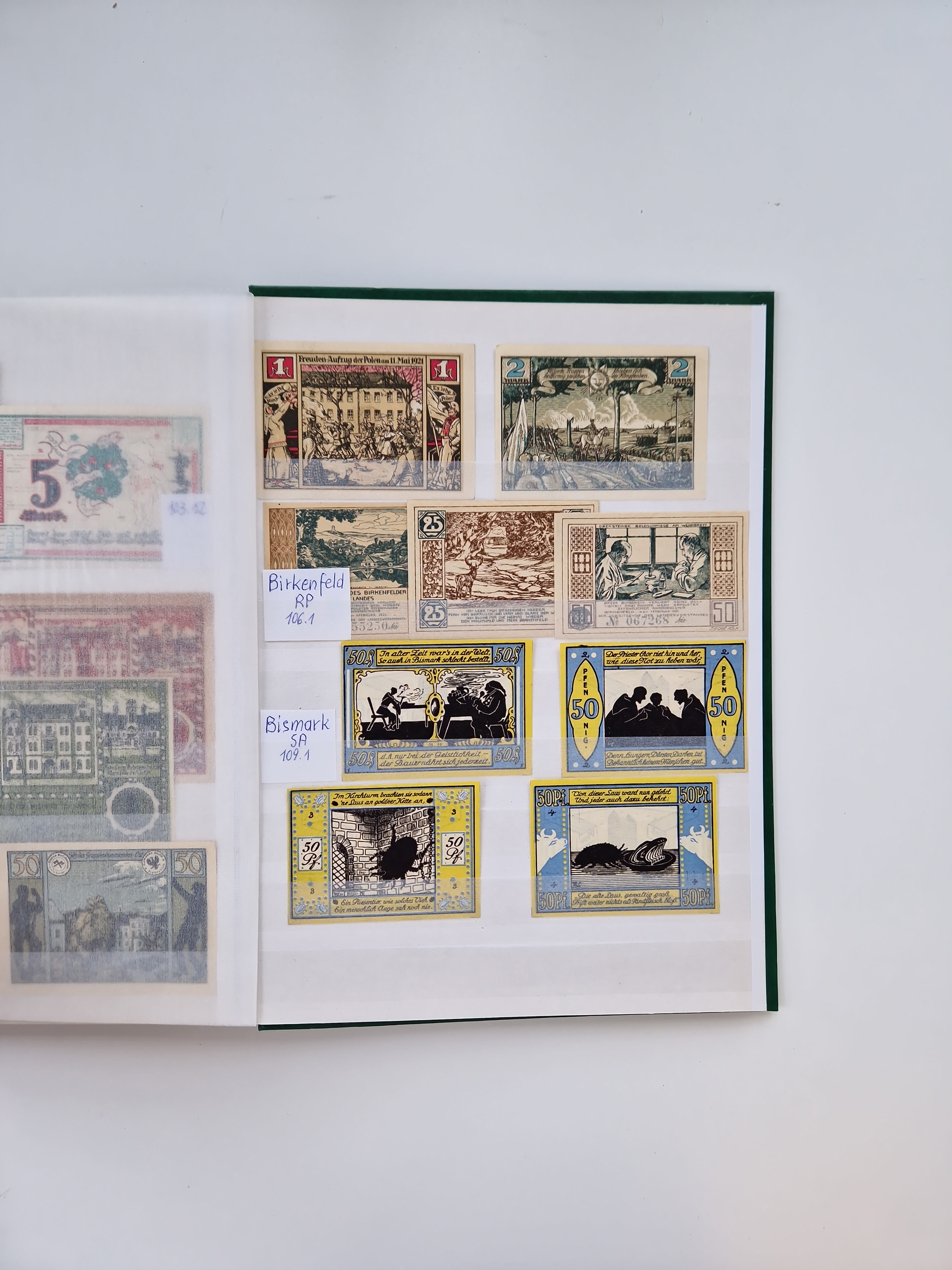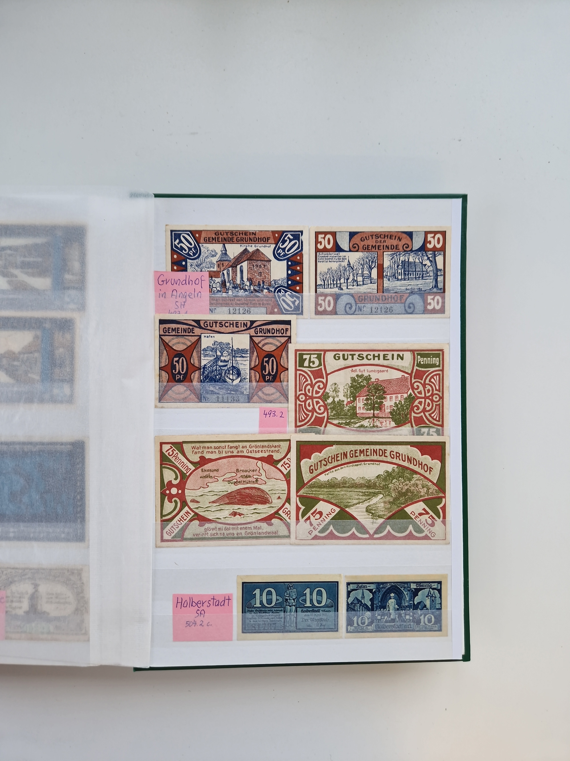 Notgeld-Serienscheine, saubere Sammlung in 16 meist dicken Steckalben, sauber nach Orten und Serien sortiert, überschlägig etwa 7/8000 Stück, dazu 4 Kataloge