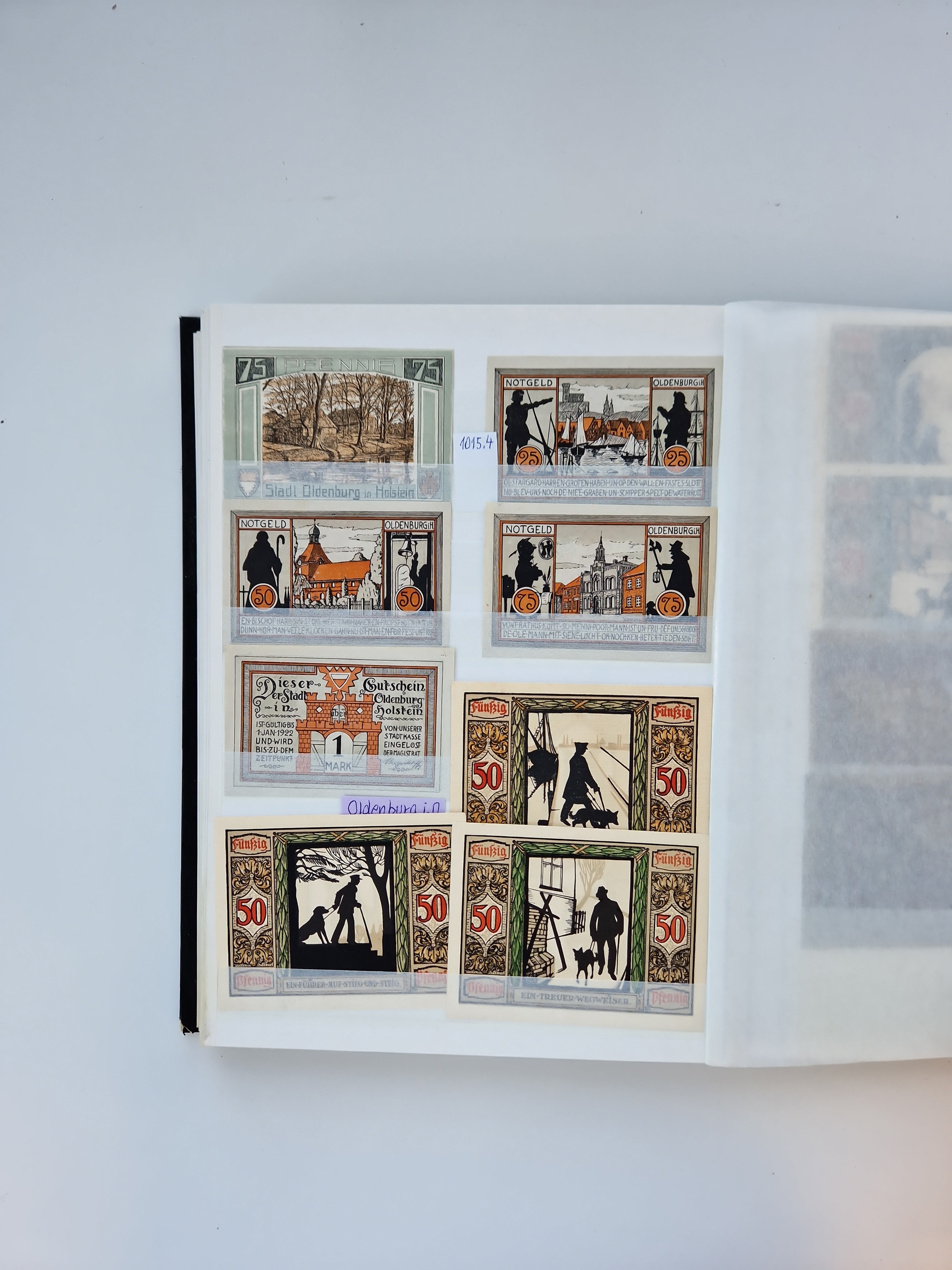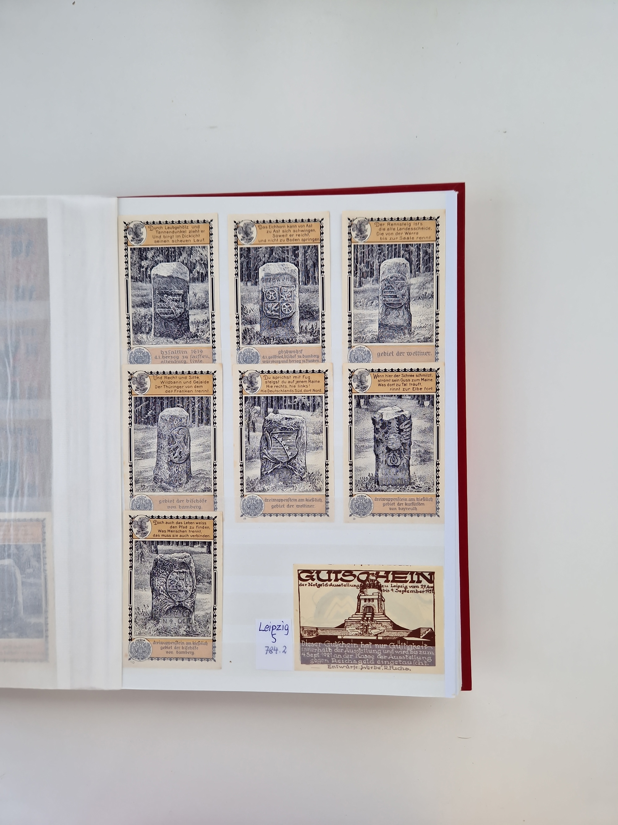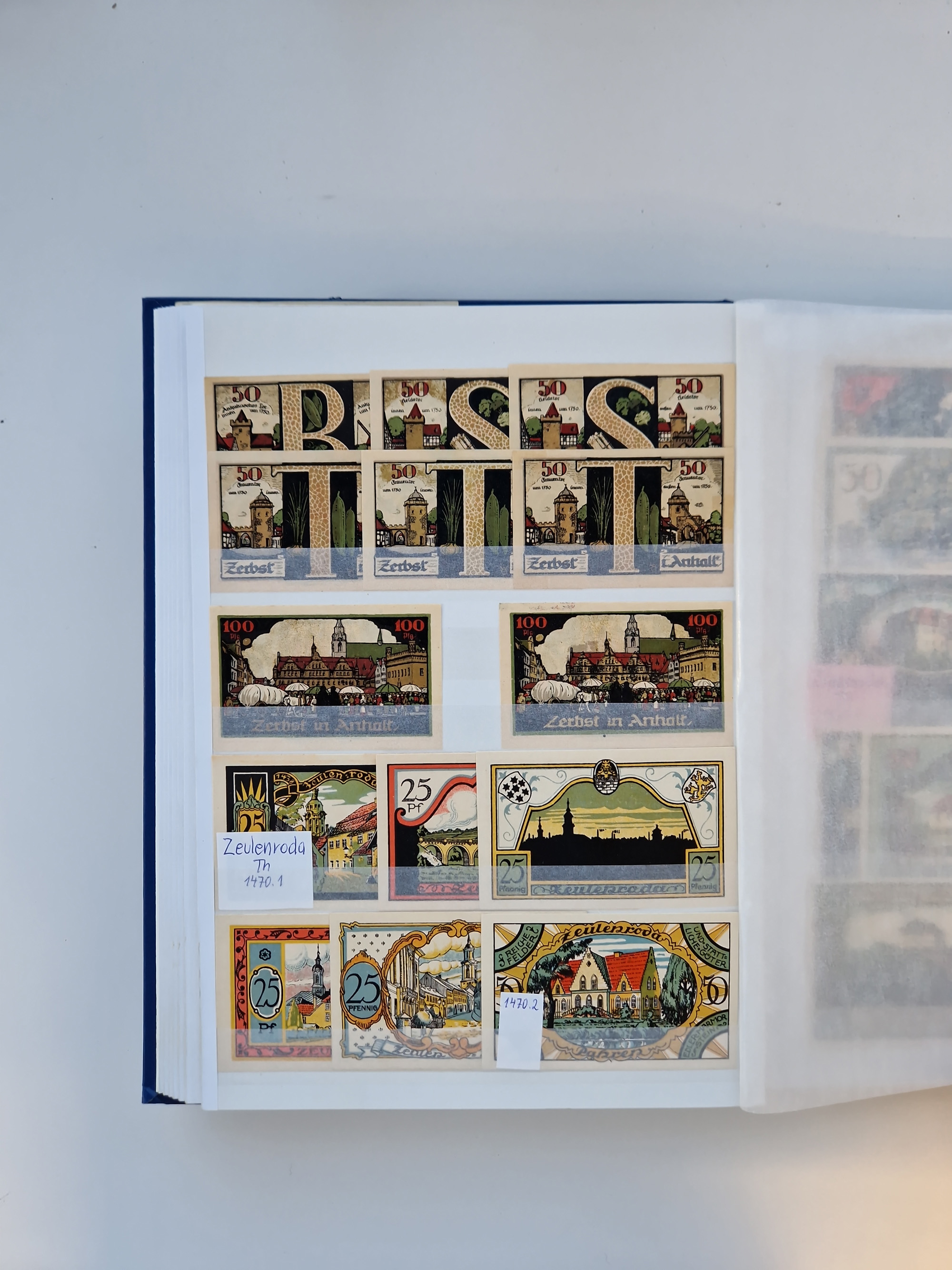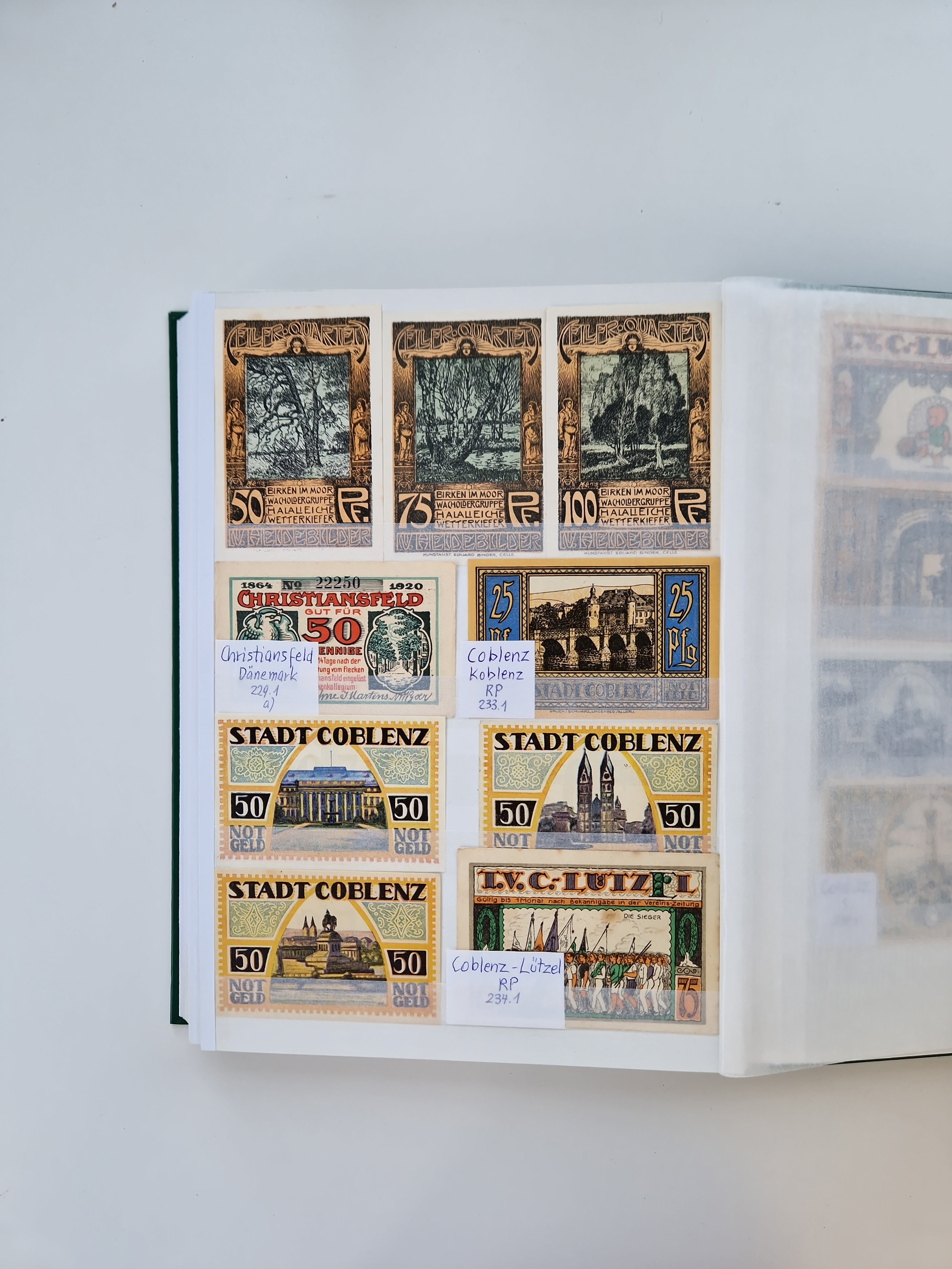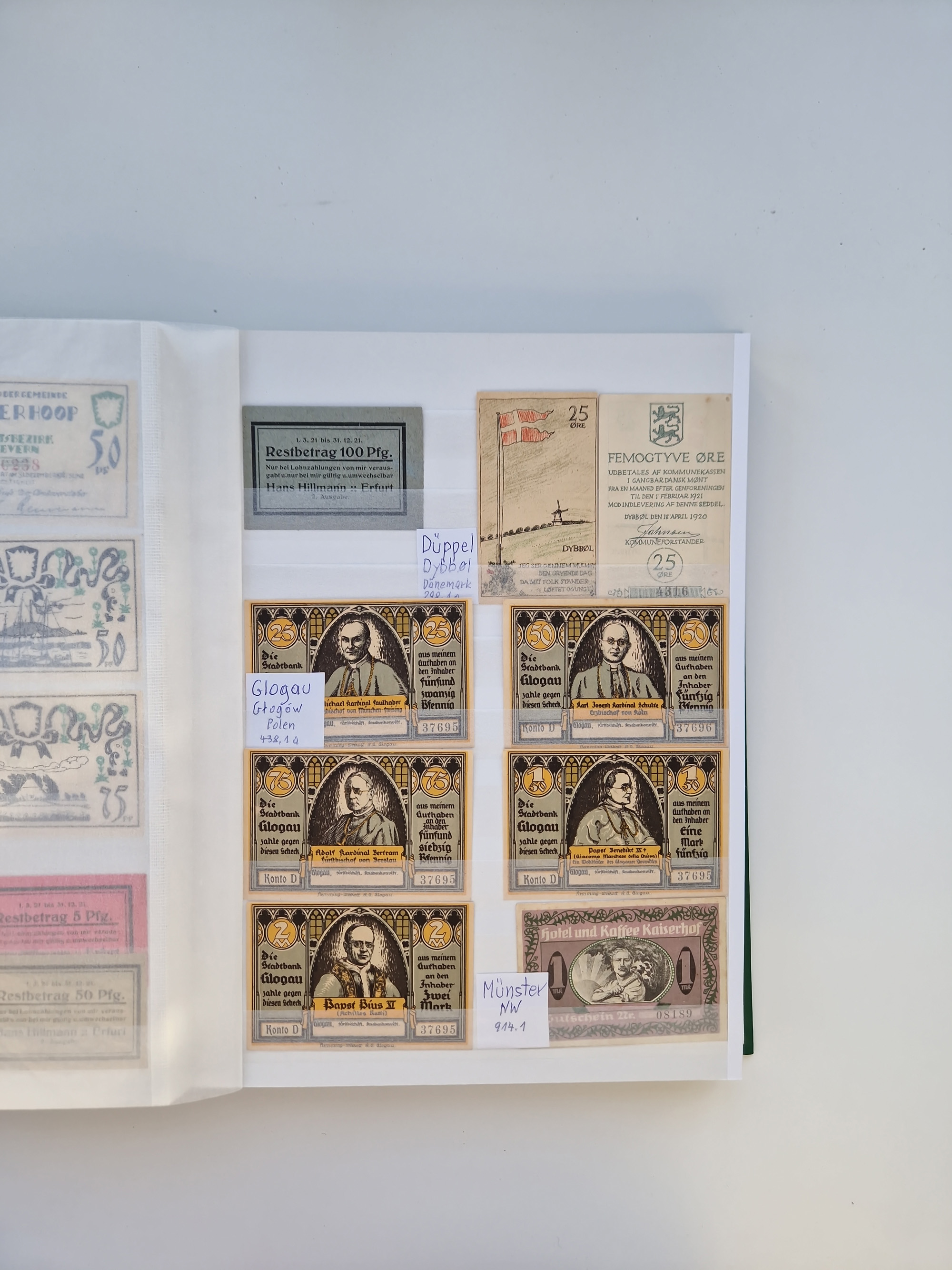 Notgeld-Serienscheine, saubere Sammlung in 16 meist dicken Steckalben, sauber nach Orten und Serien sortiert, überschlägig etwa 7/8000 Stück, dazu 4 Kataloge