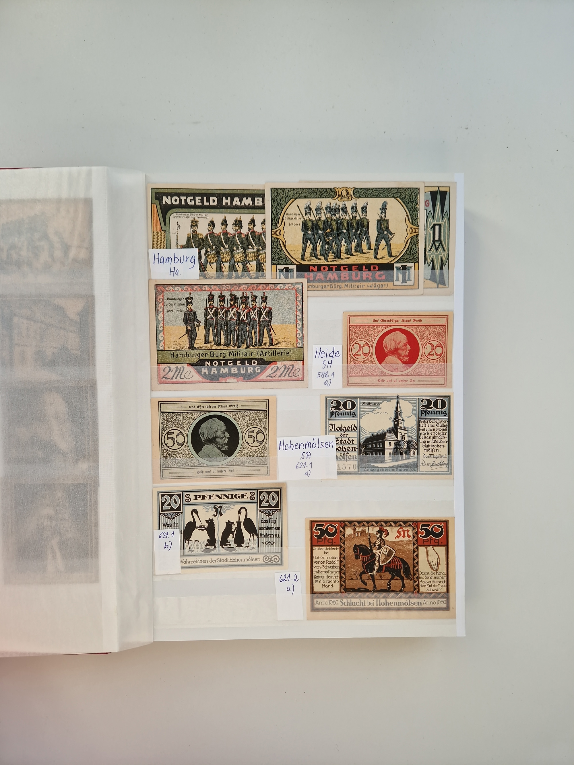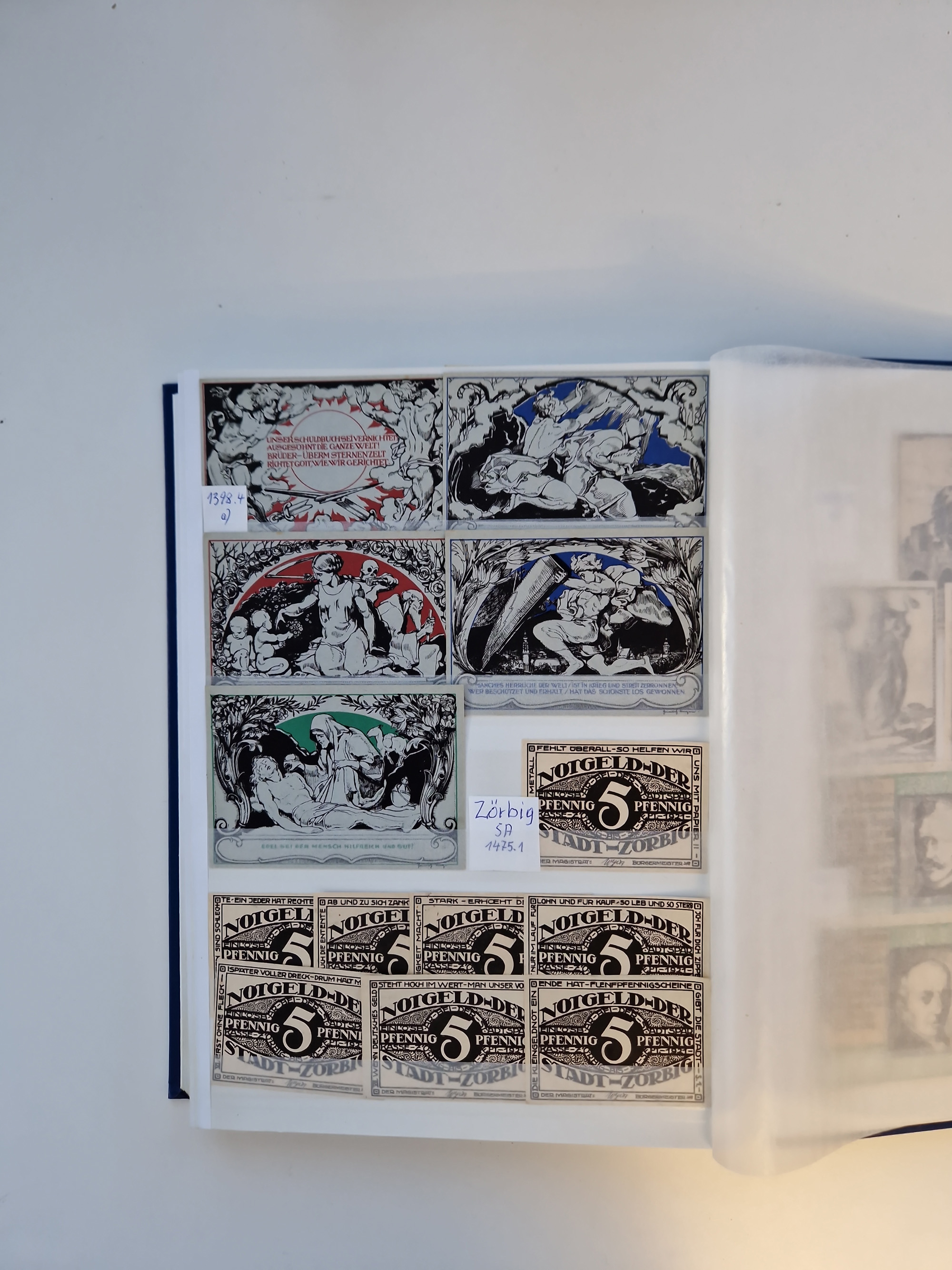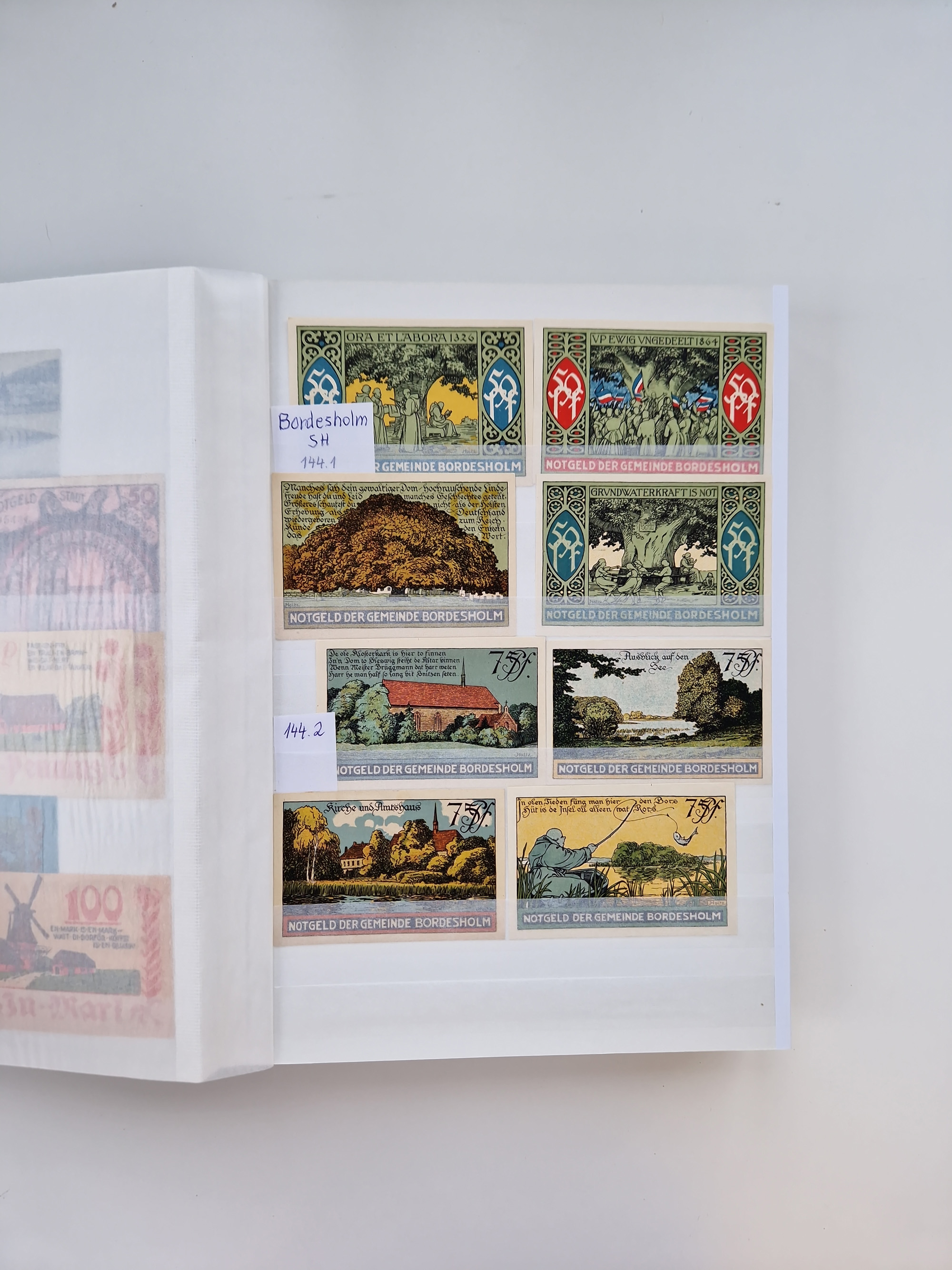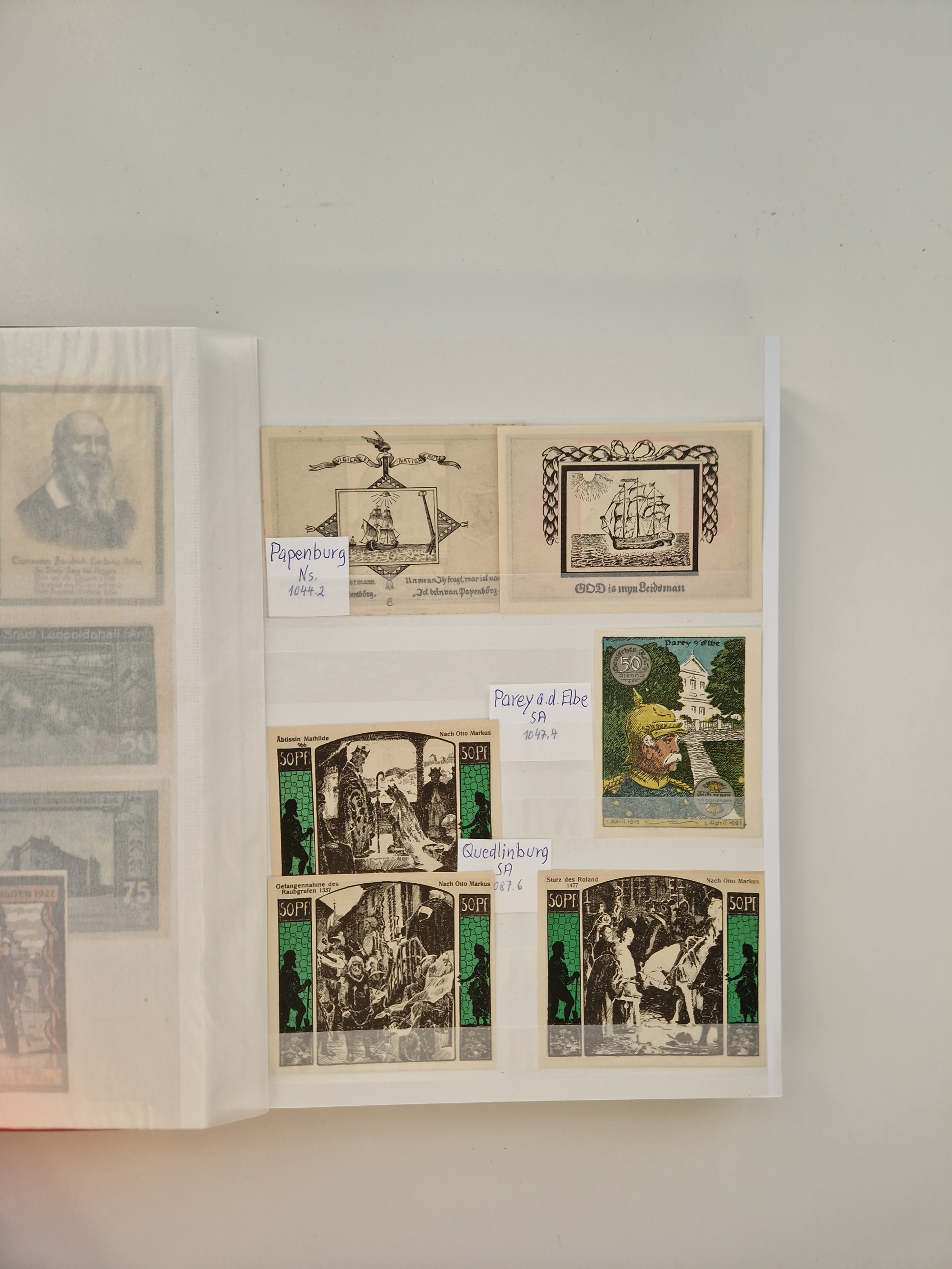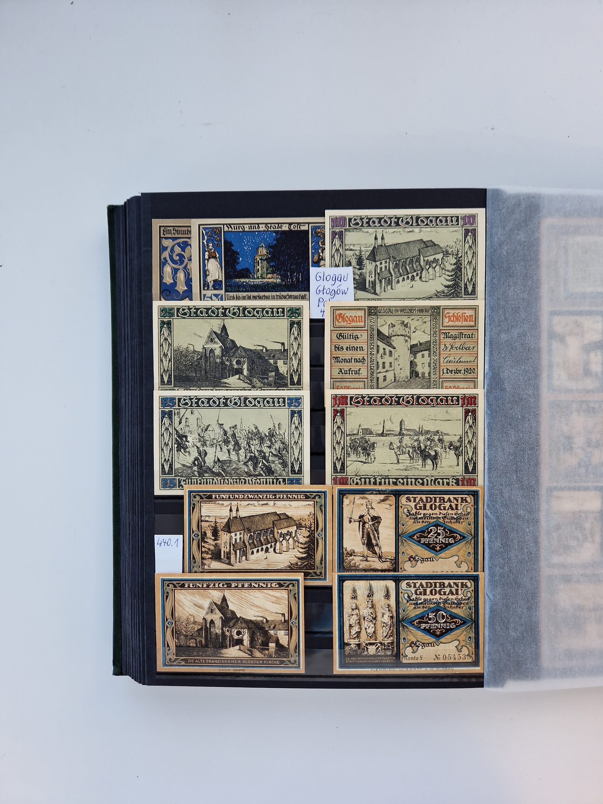 Notgeld-Serienscheine, saubere Sammlung in 16 meist dicken Steckalben, sauber nach Orten und Serien sortiert, überschlägig etwa 7/8000 Stück, dazu 4 Kataloge
