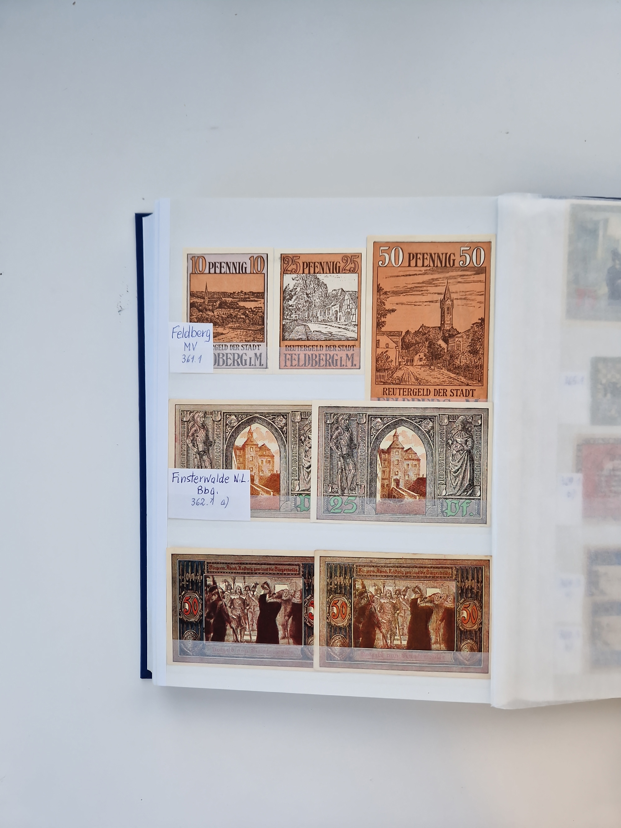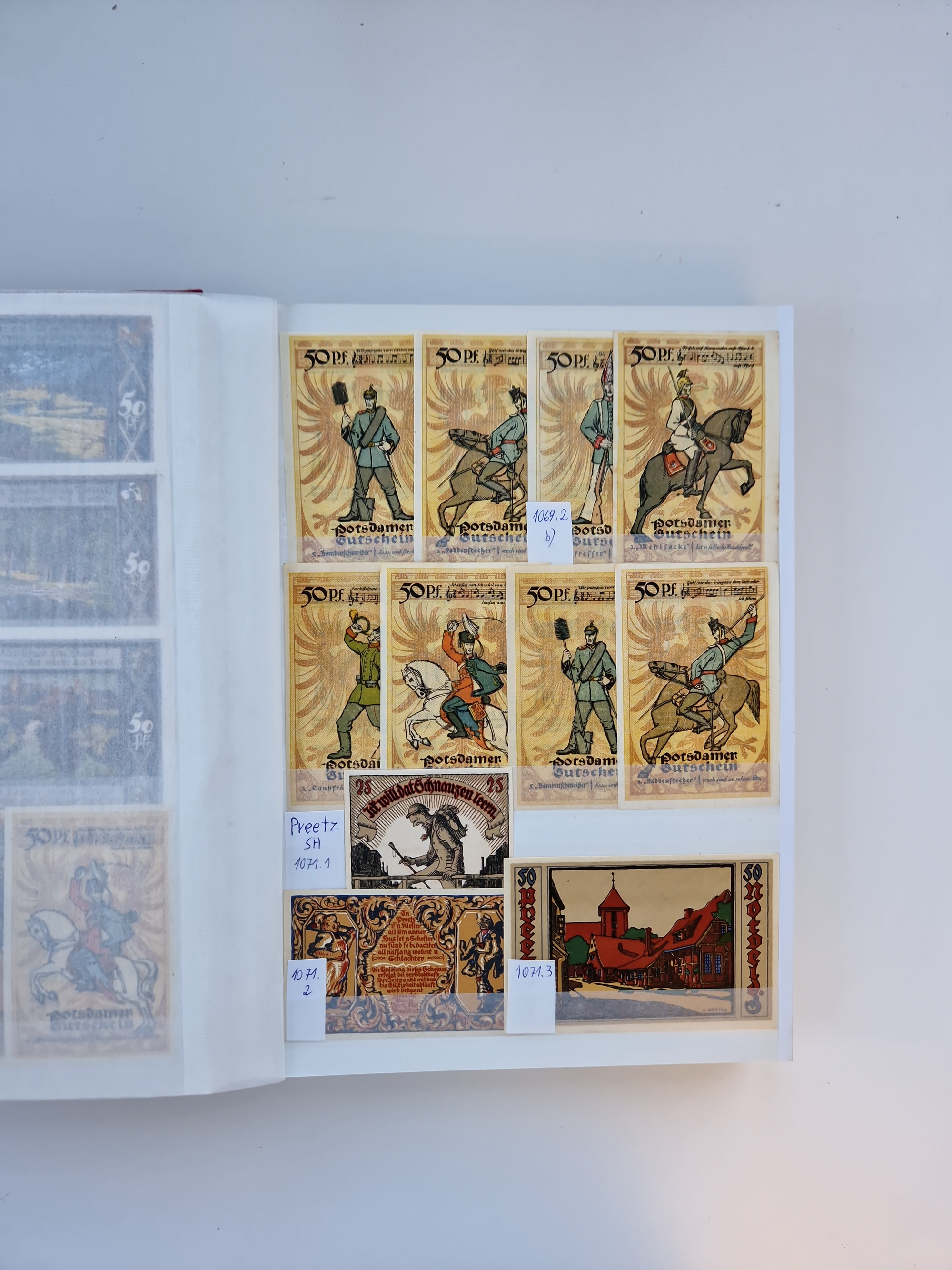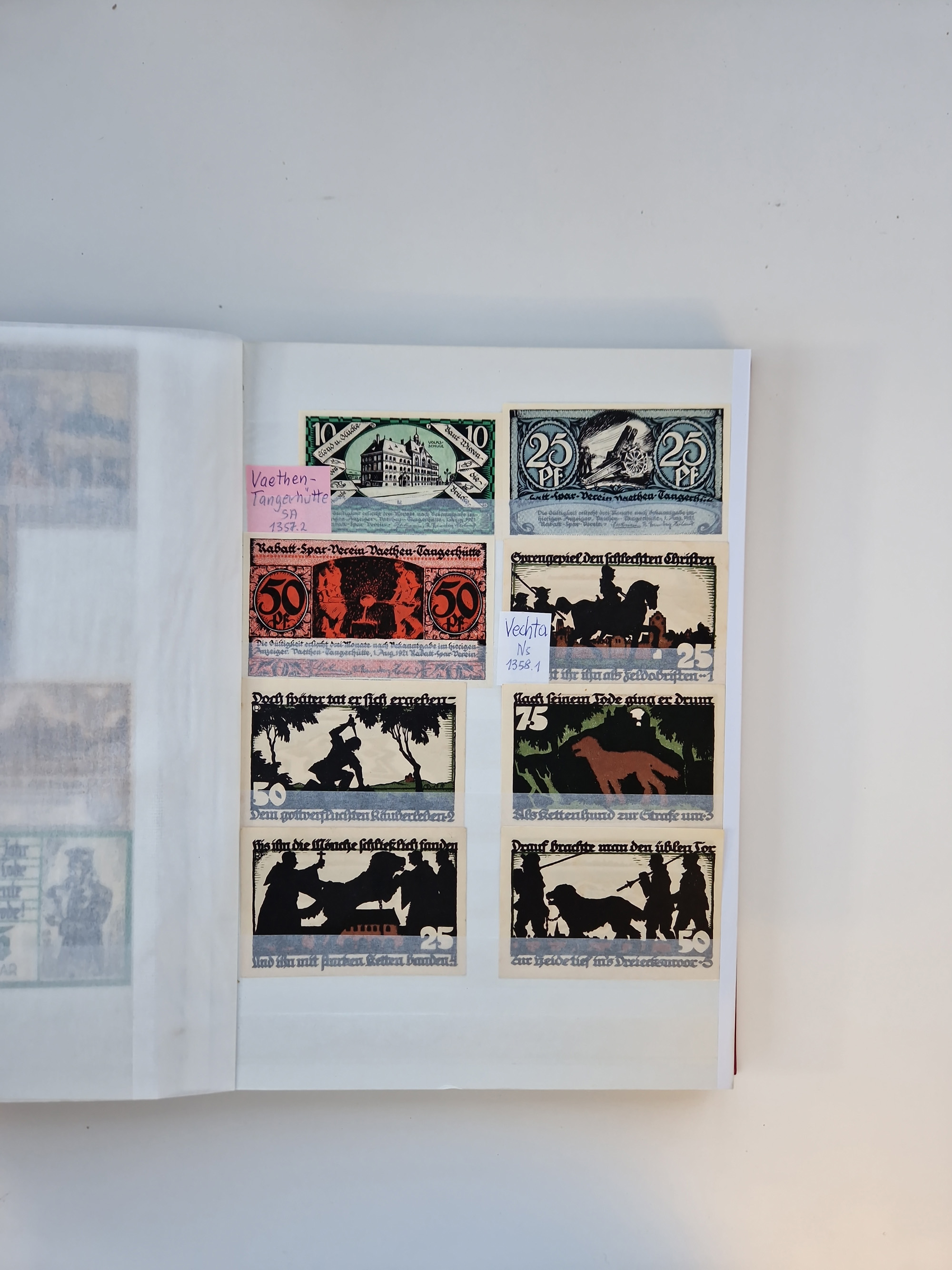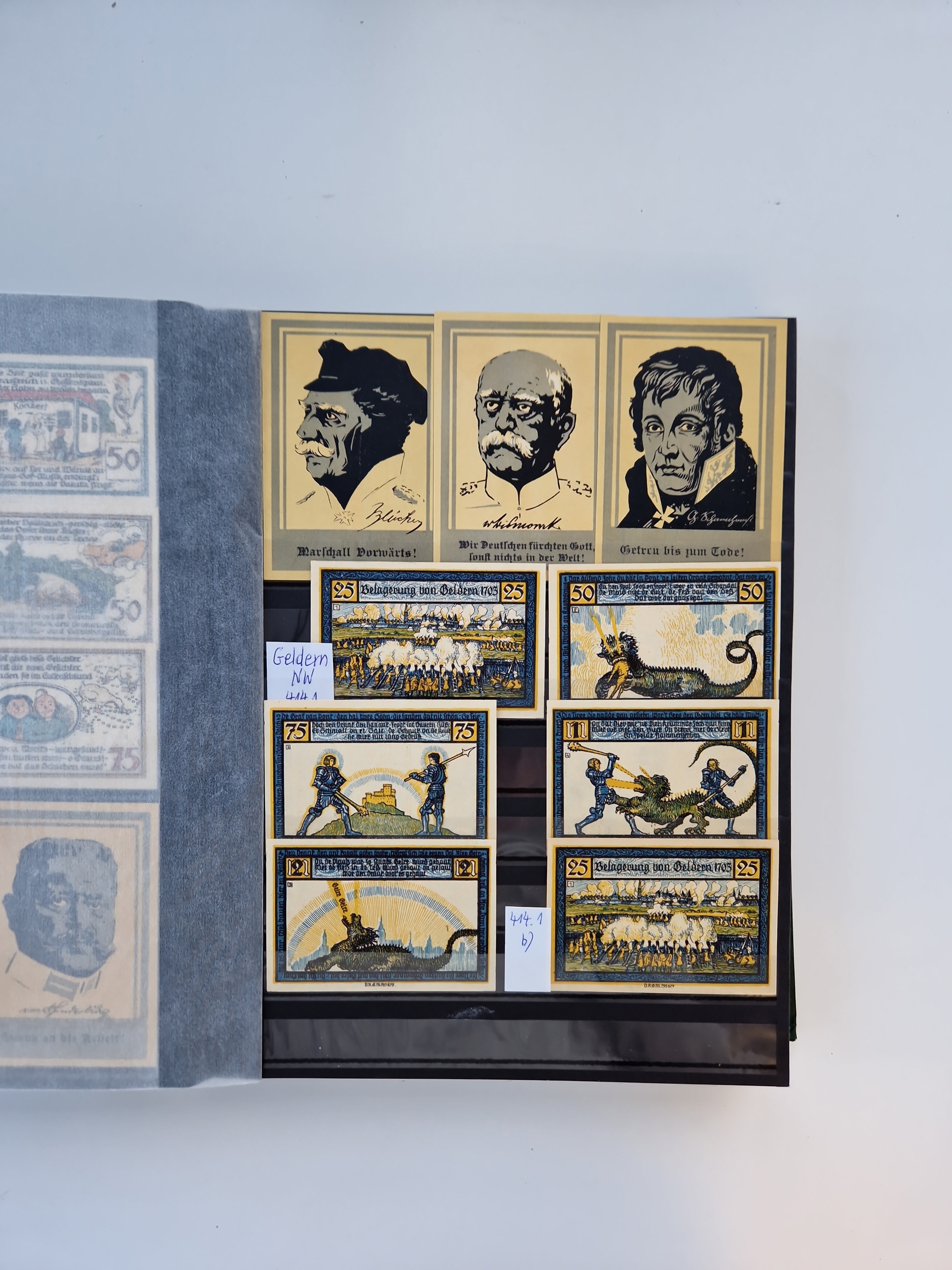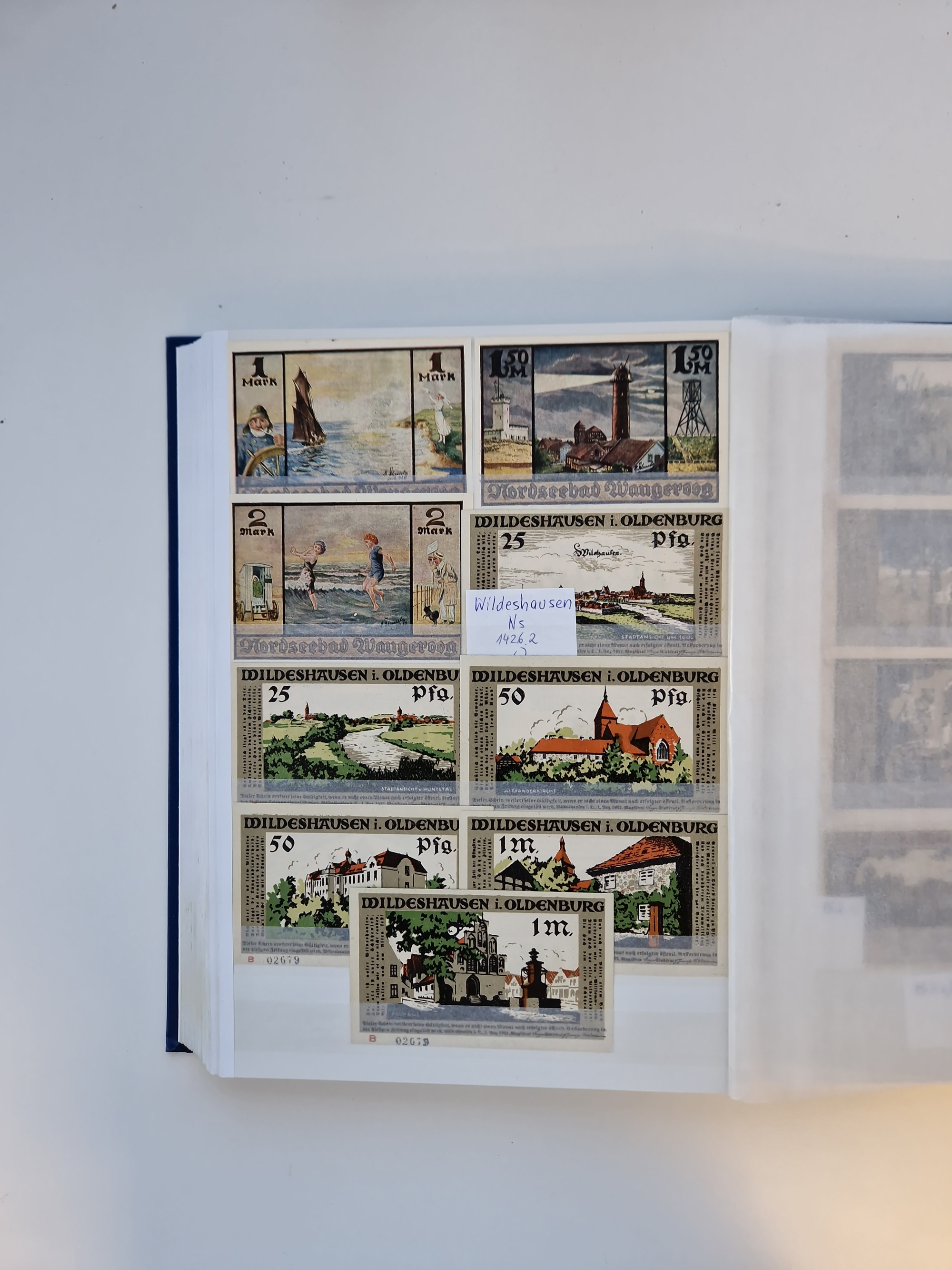Notgeld-Serienscheine, saubere Sammlung in 16 meist dicken Steckalben, sauber nach Orten und Serien sortiert, überschlägig etwa 7/8000 Stück, dazu 4 Kataloge