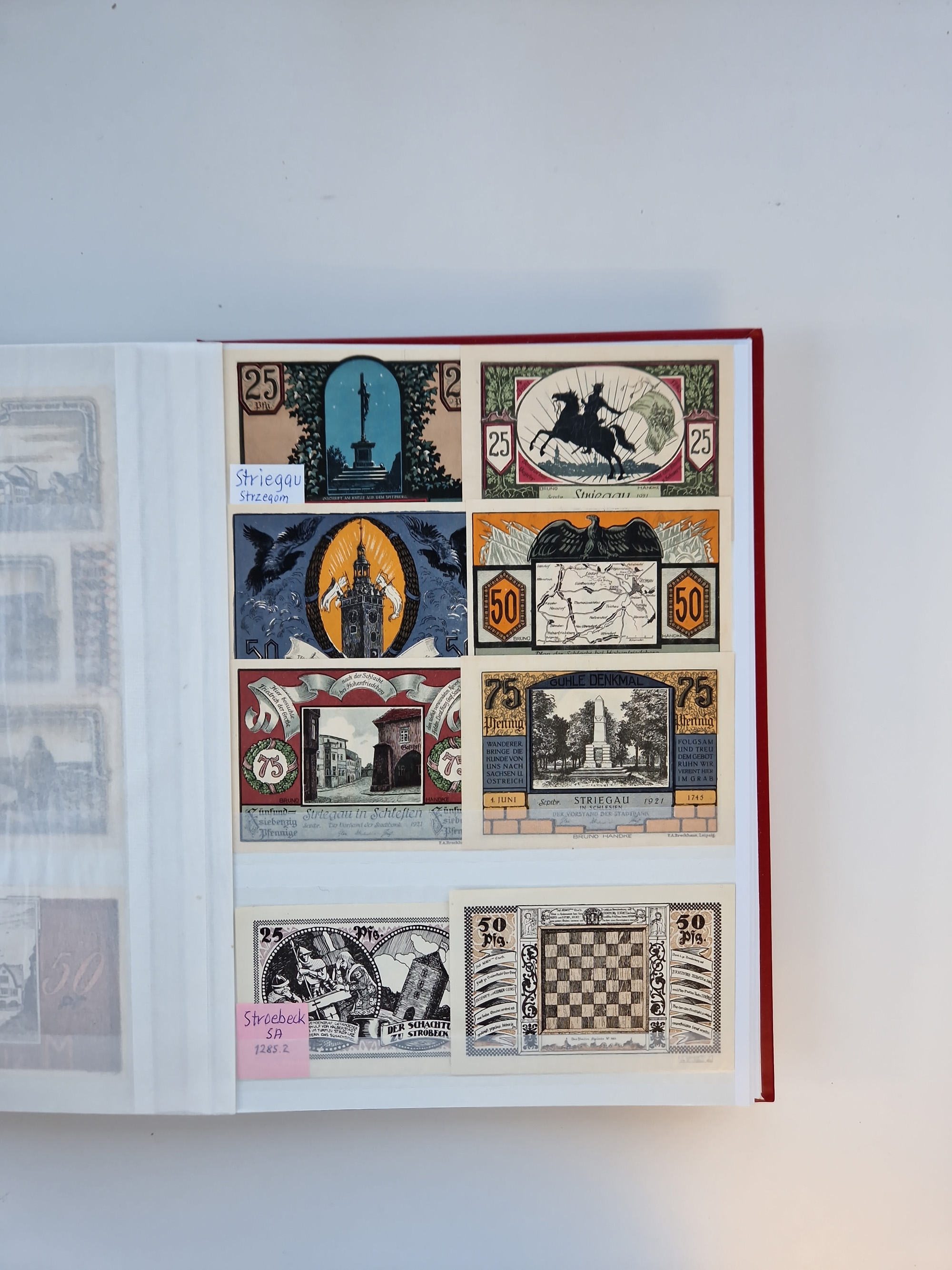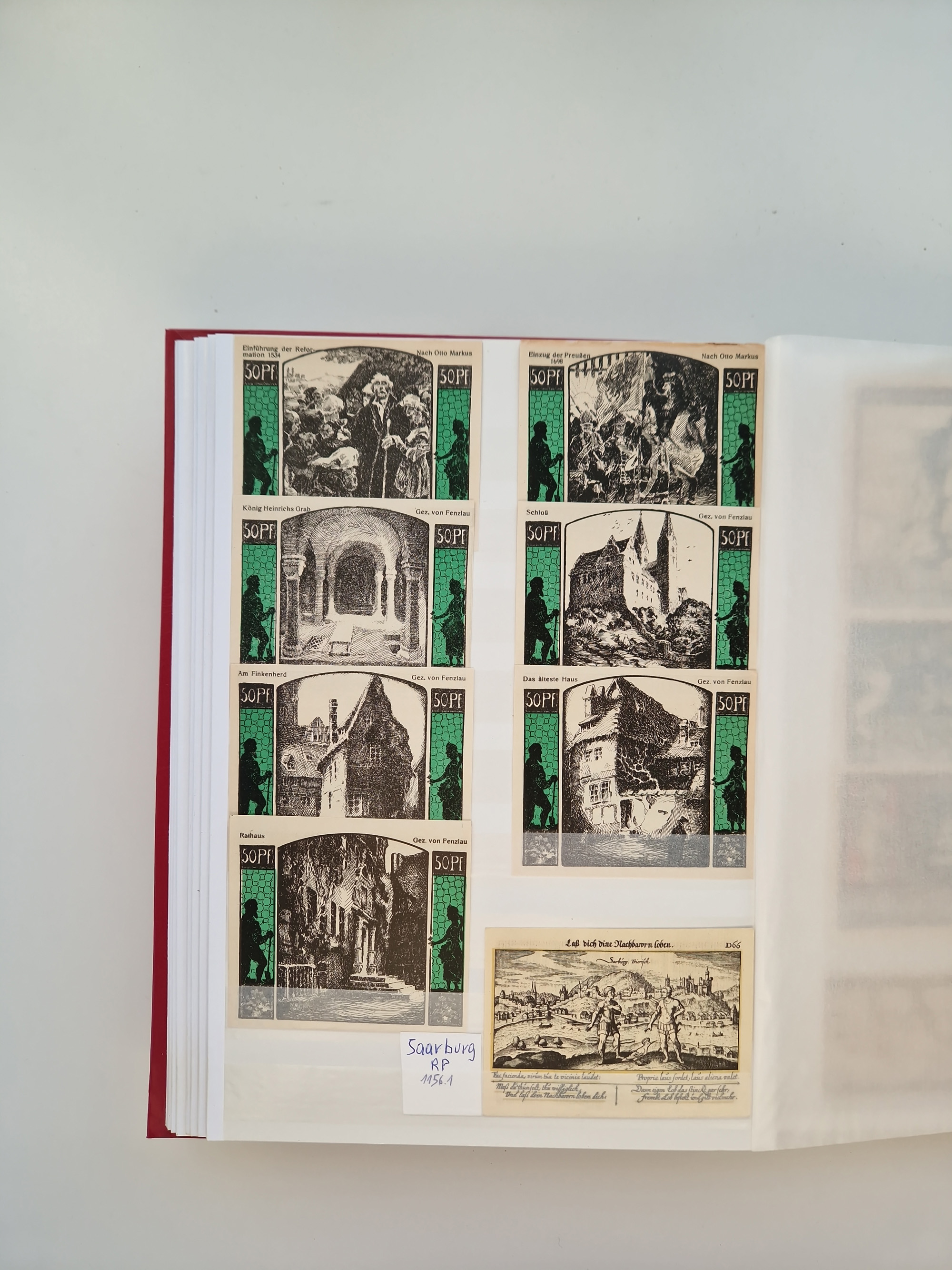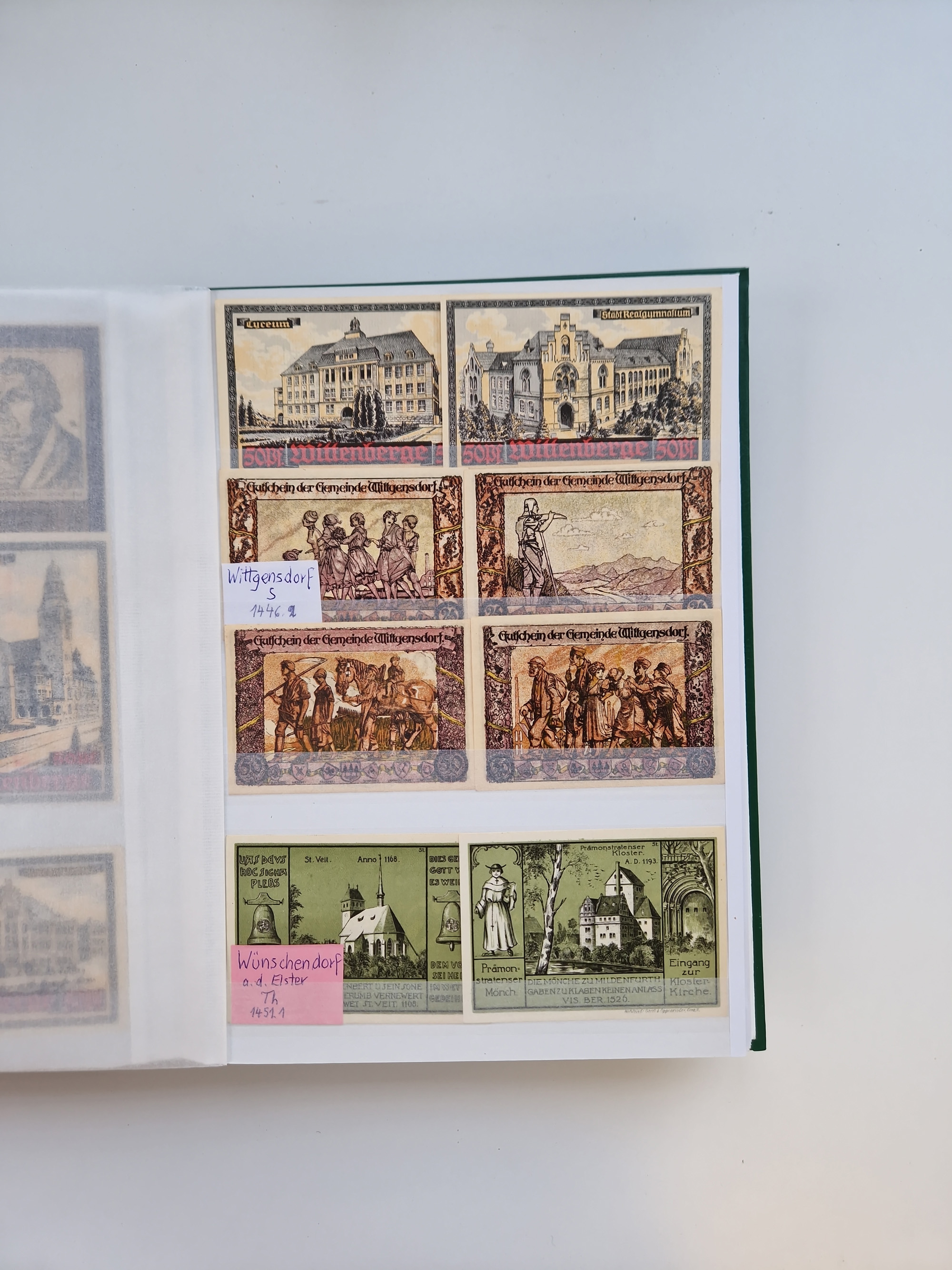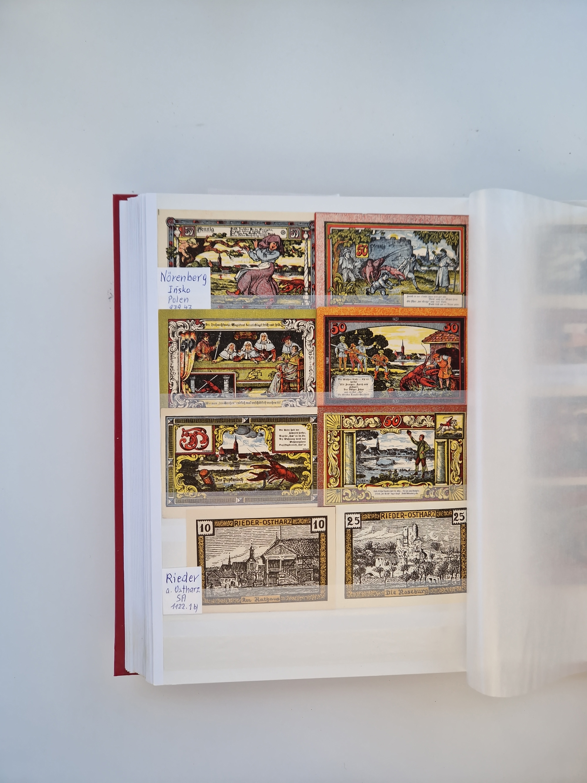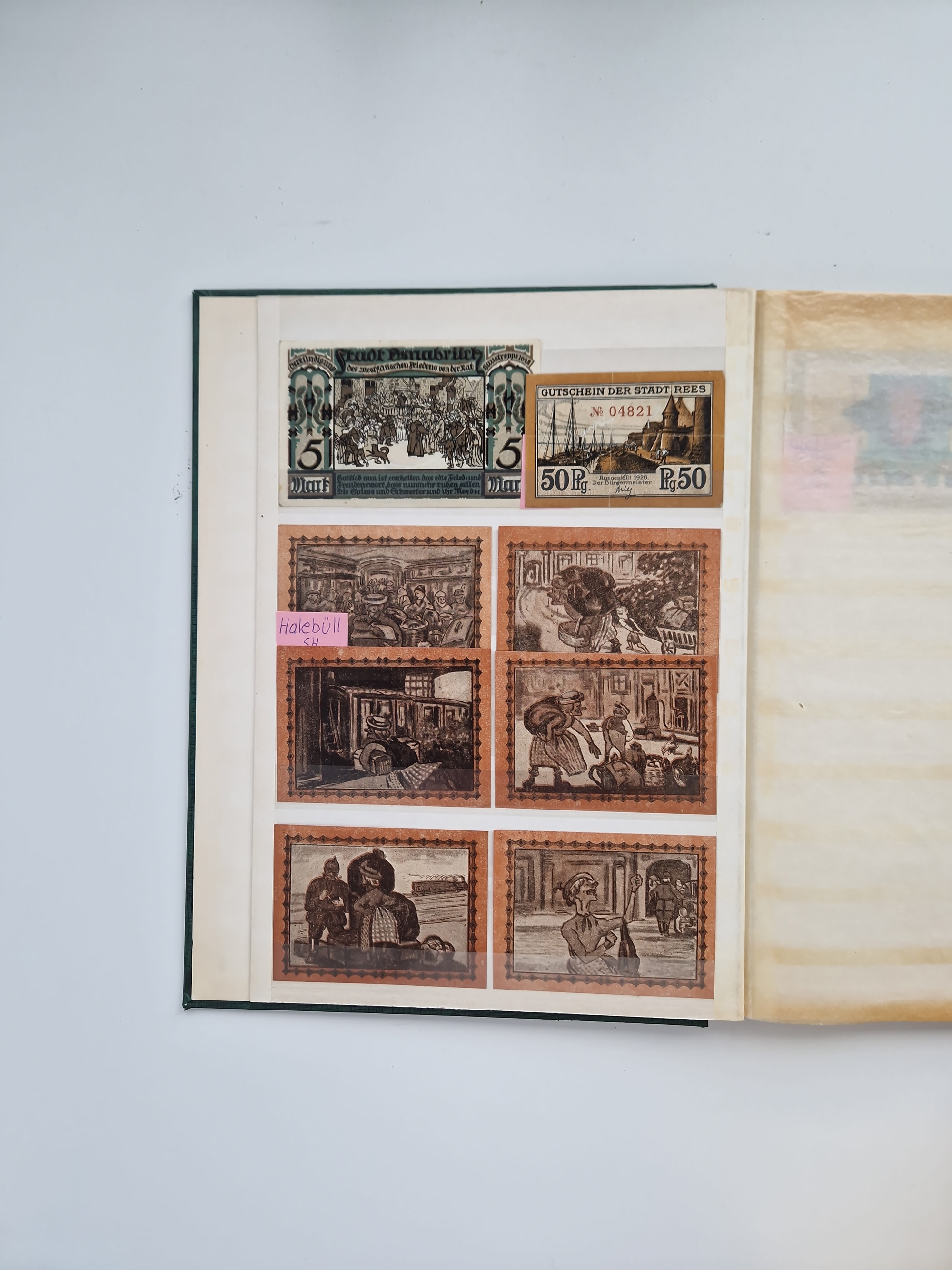 Notgeld-Serienscheine, saubere Sammlung in 16 meist dicken Steckalben, sauber nach Orten und Serien sortiert, überschlägig etwa 7/8000 Stück, dazu 4 Kataloge
