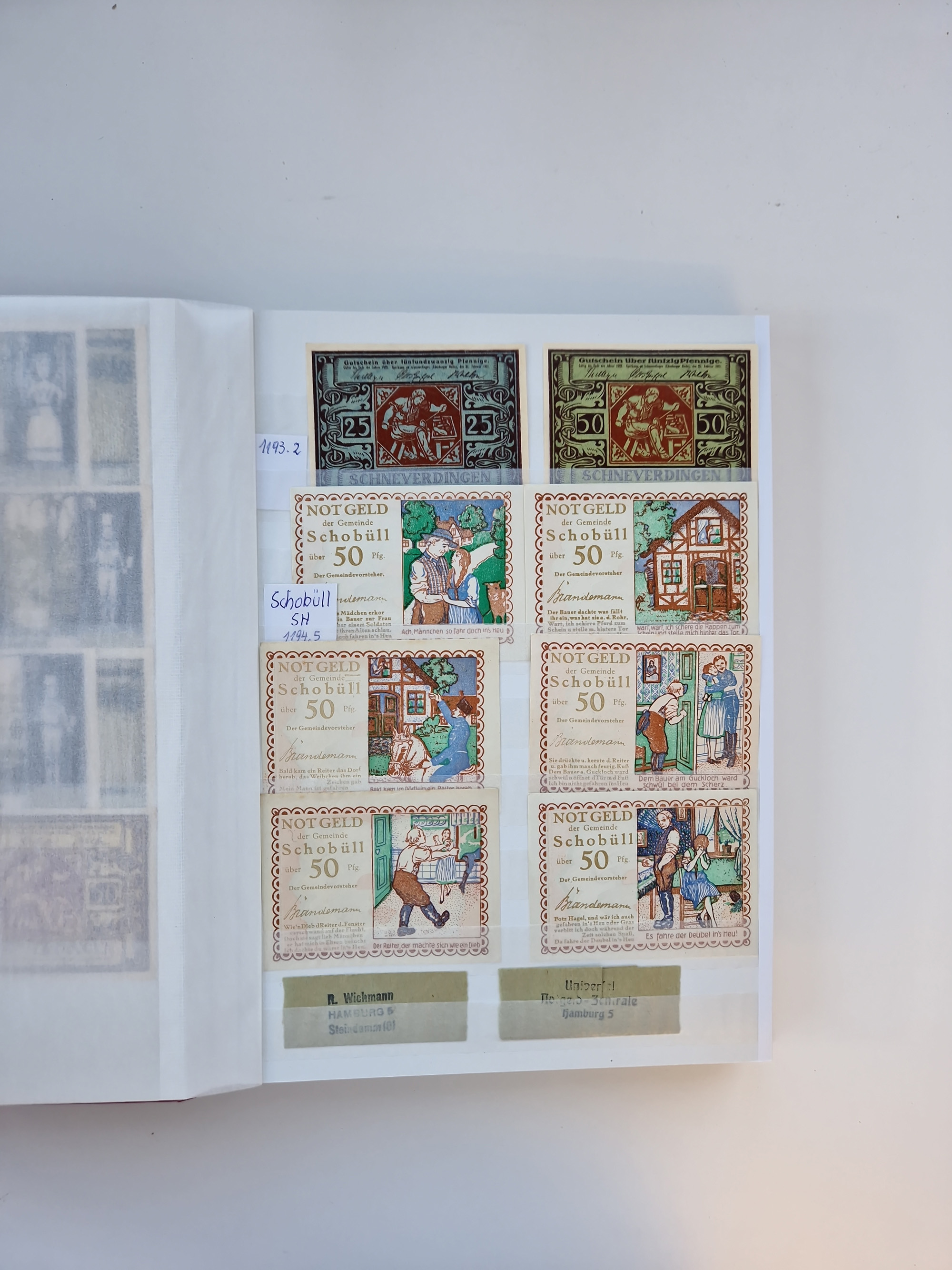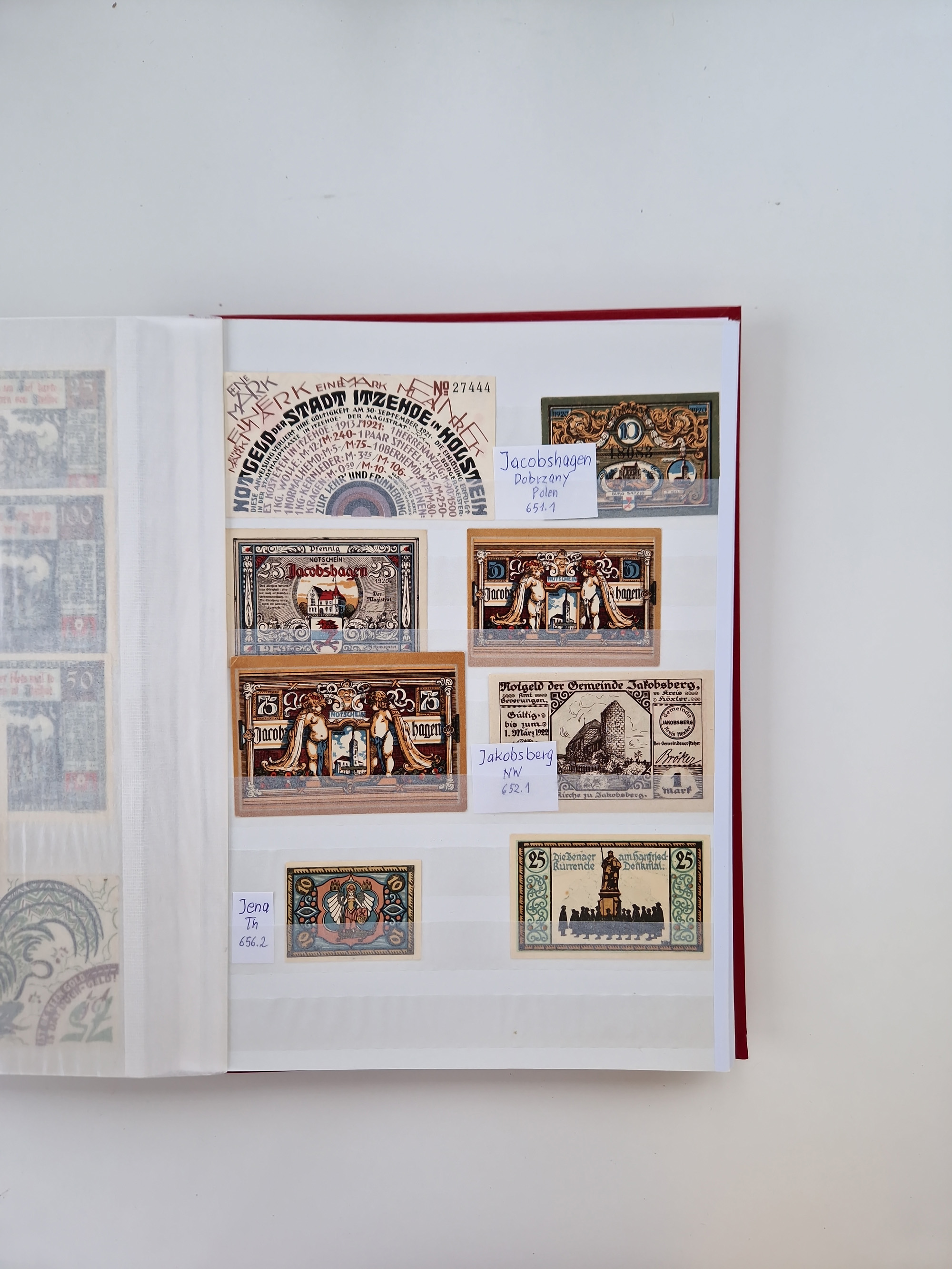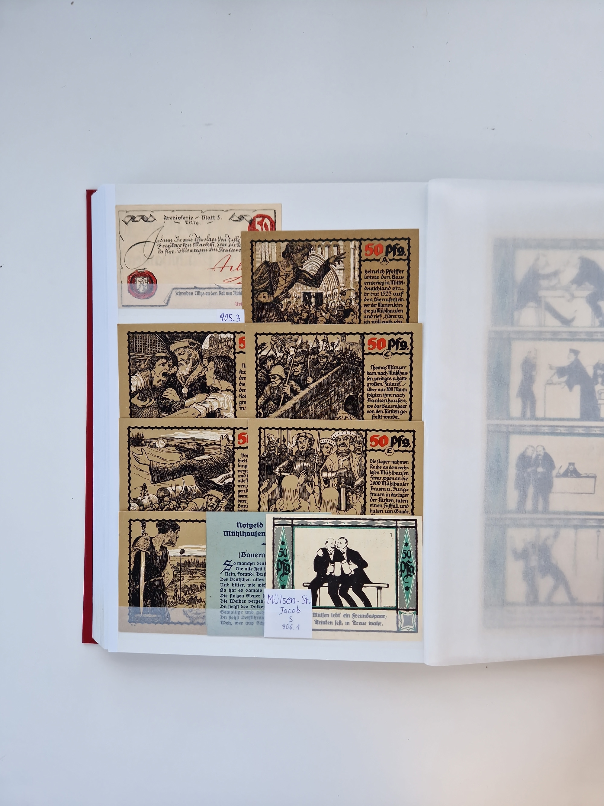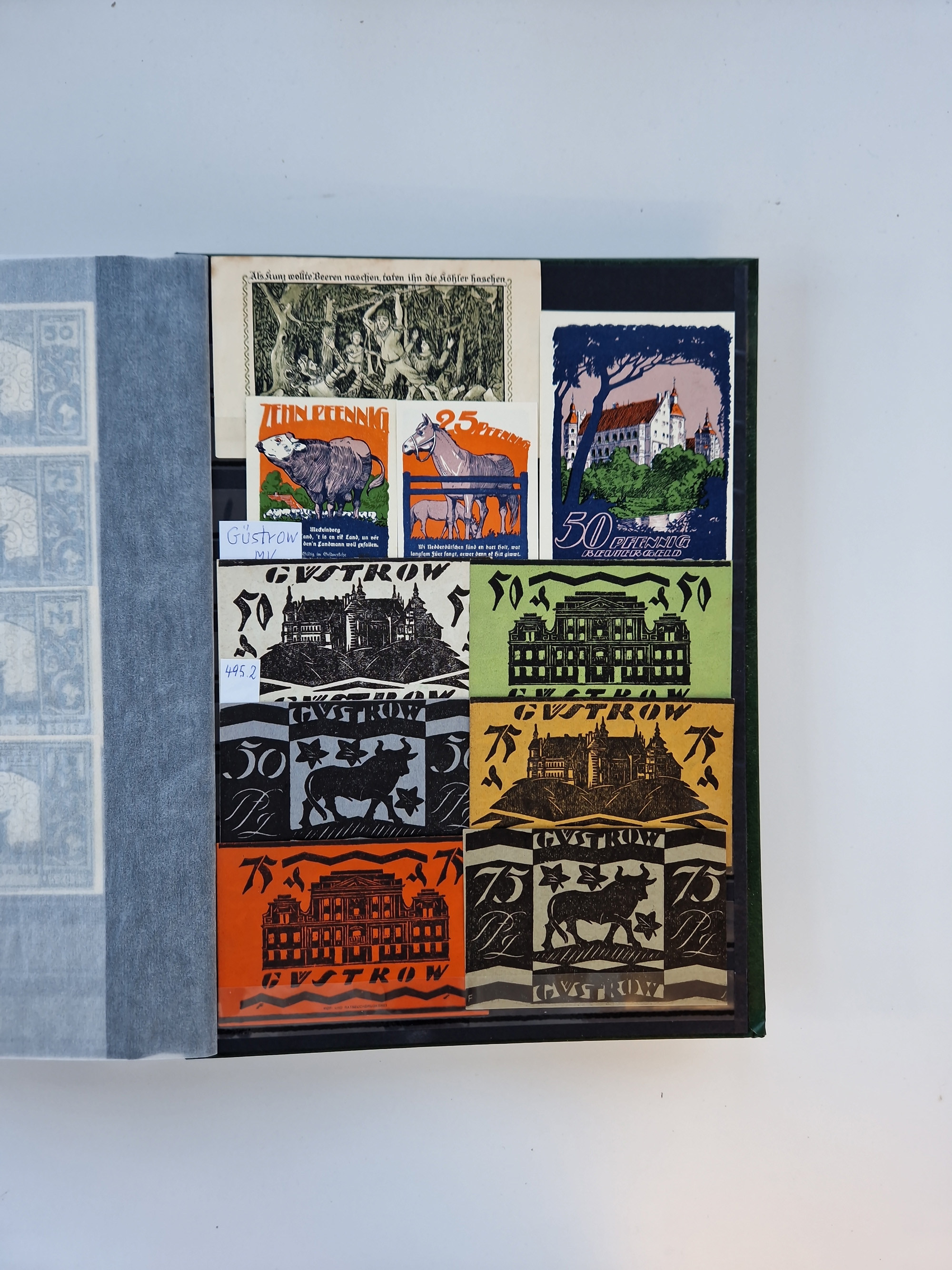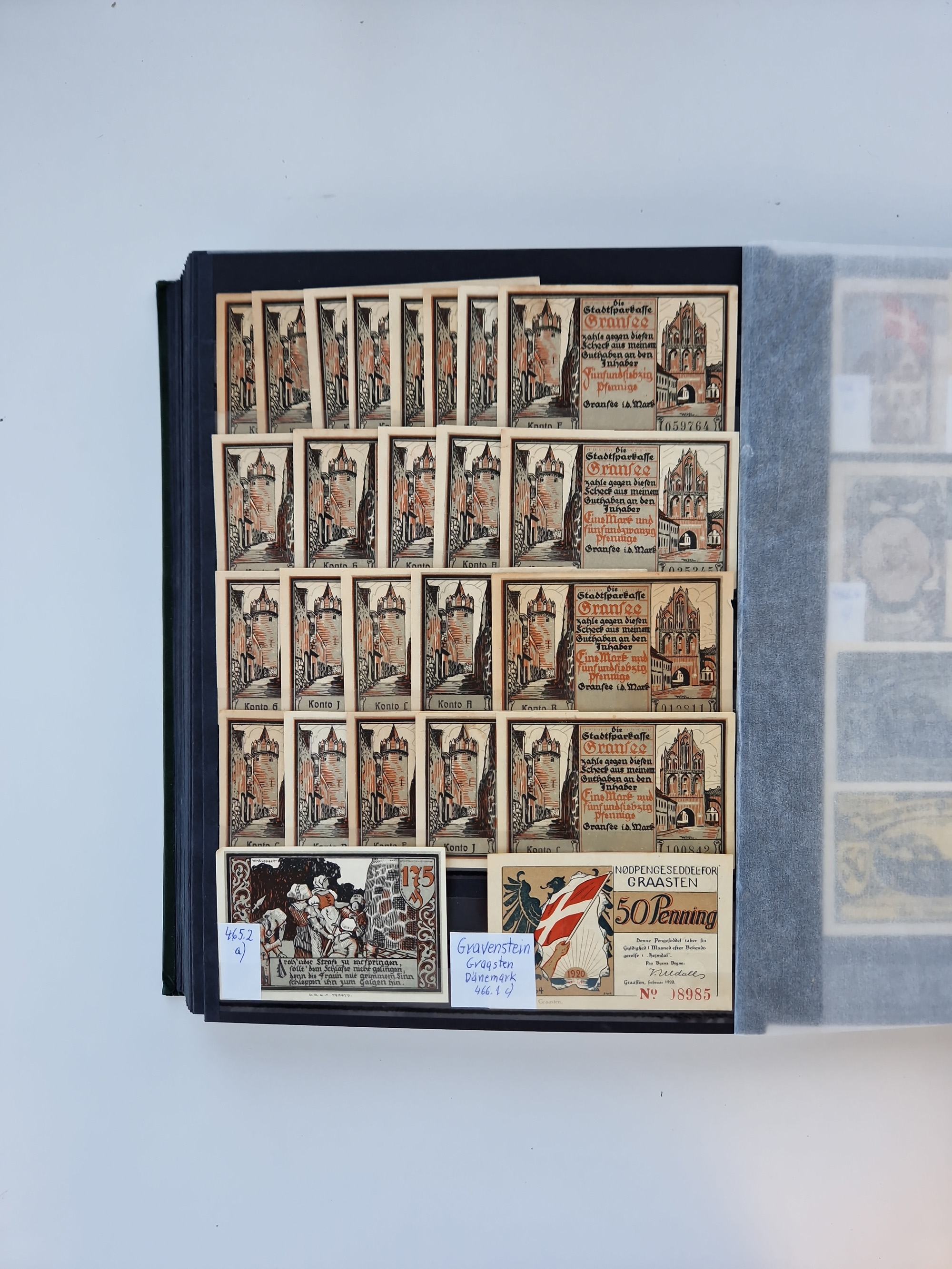 Notgeld-Serienscheine, saubere Sammlung in 16 meist dicken Steckalben, sauber nach Orten und Serien sortiert, überschlägig etwa 7/8000 Stück, dazu 4 Kataloge