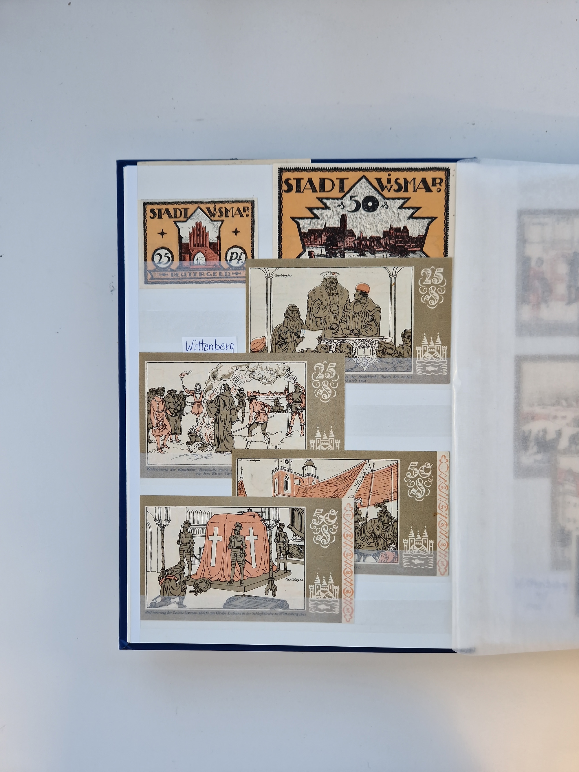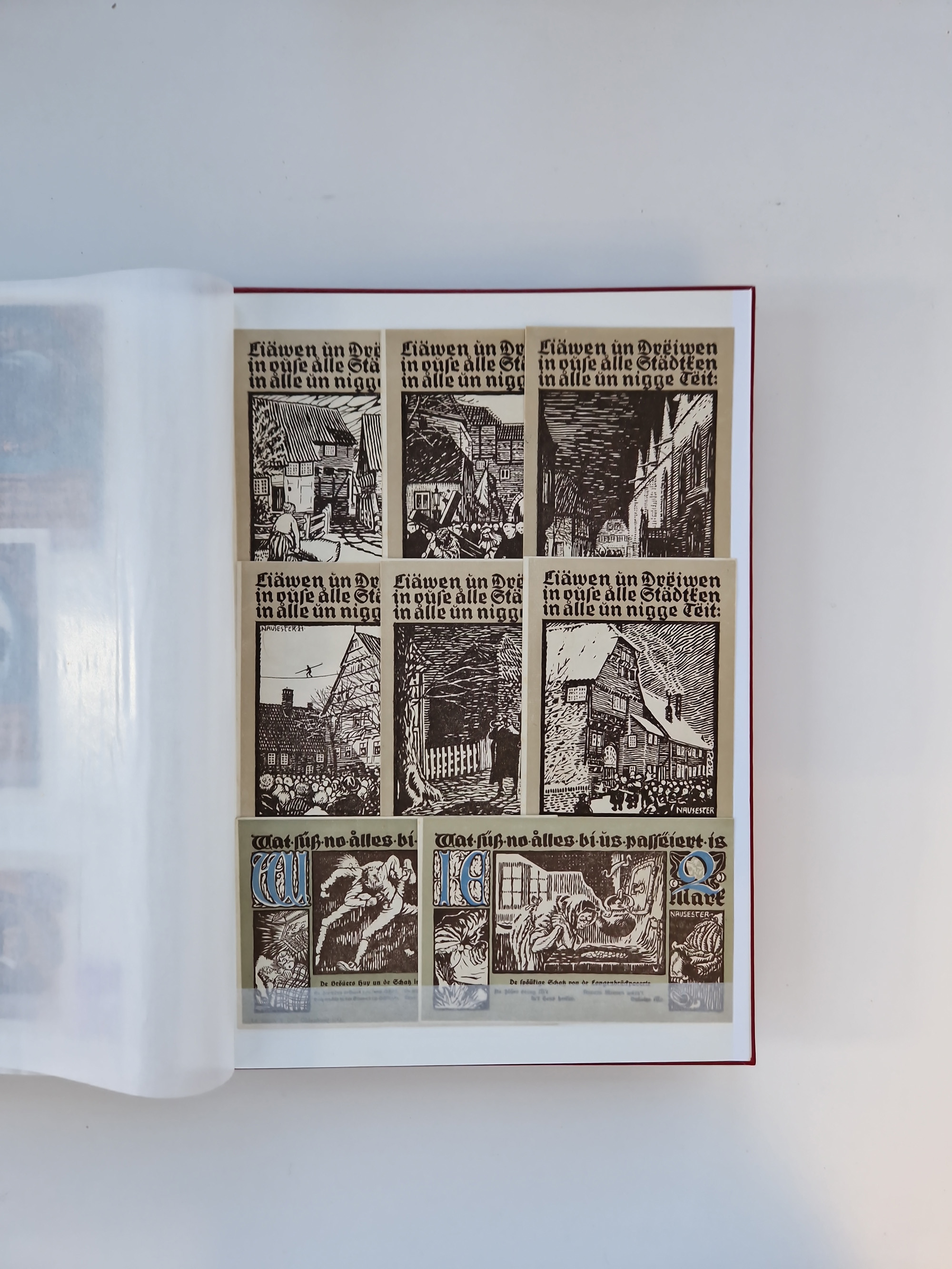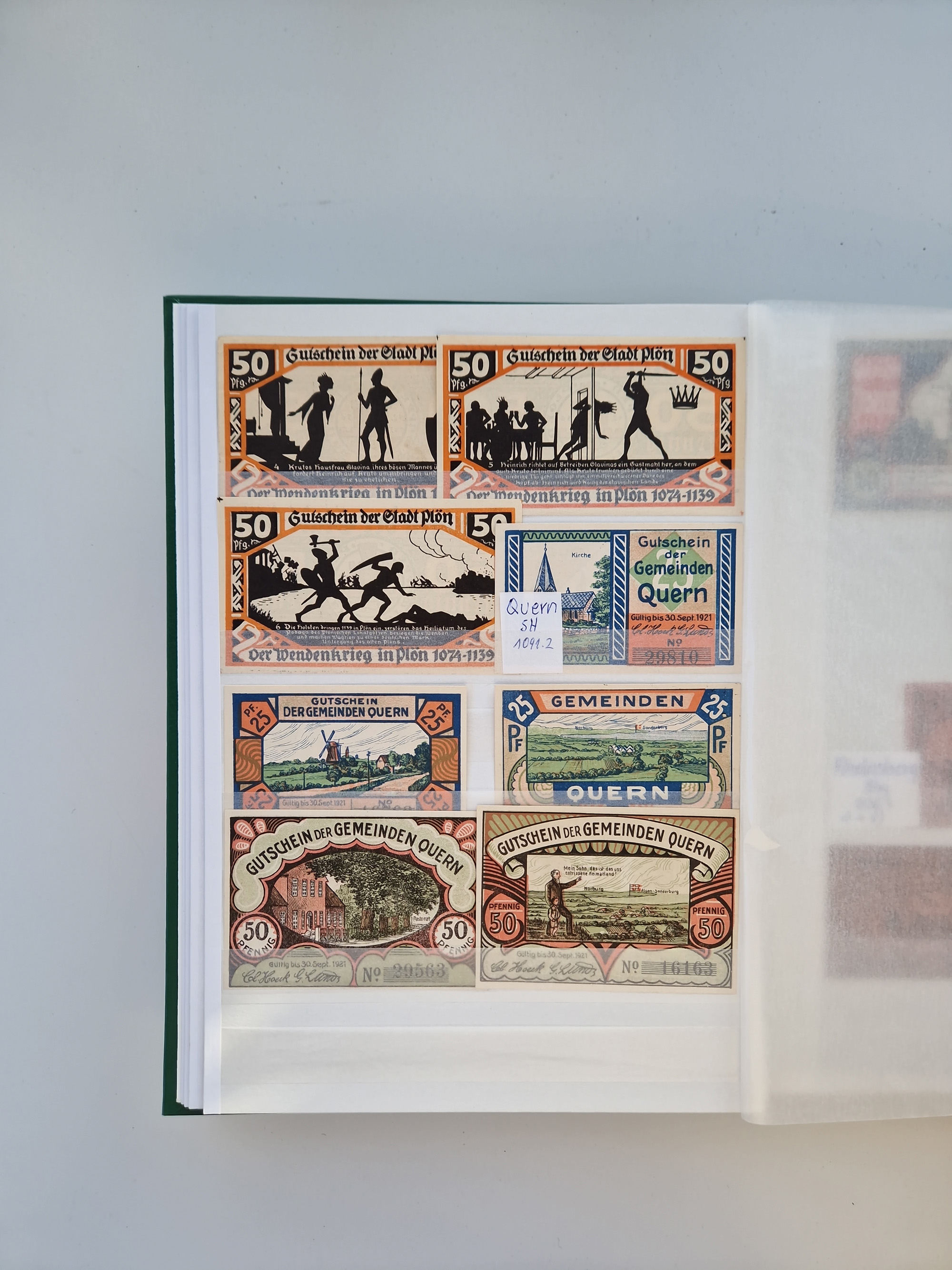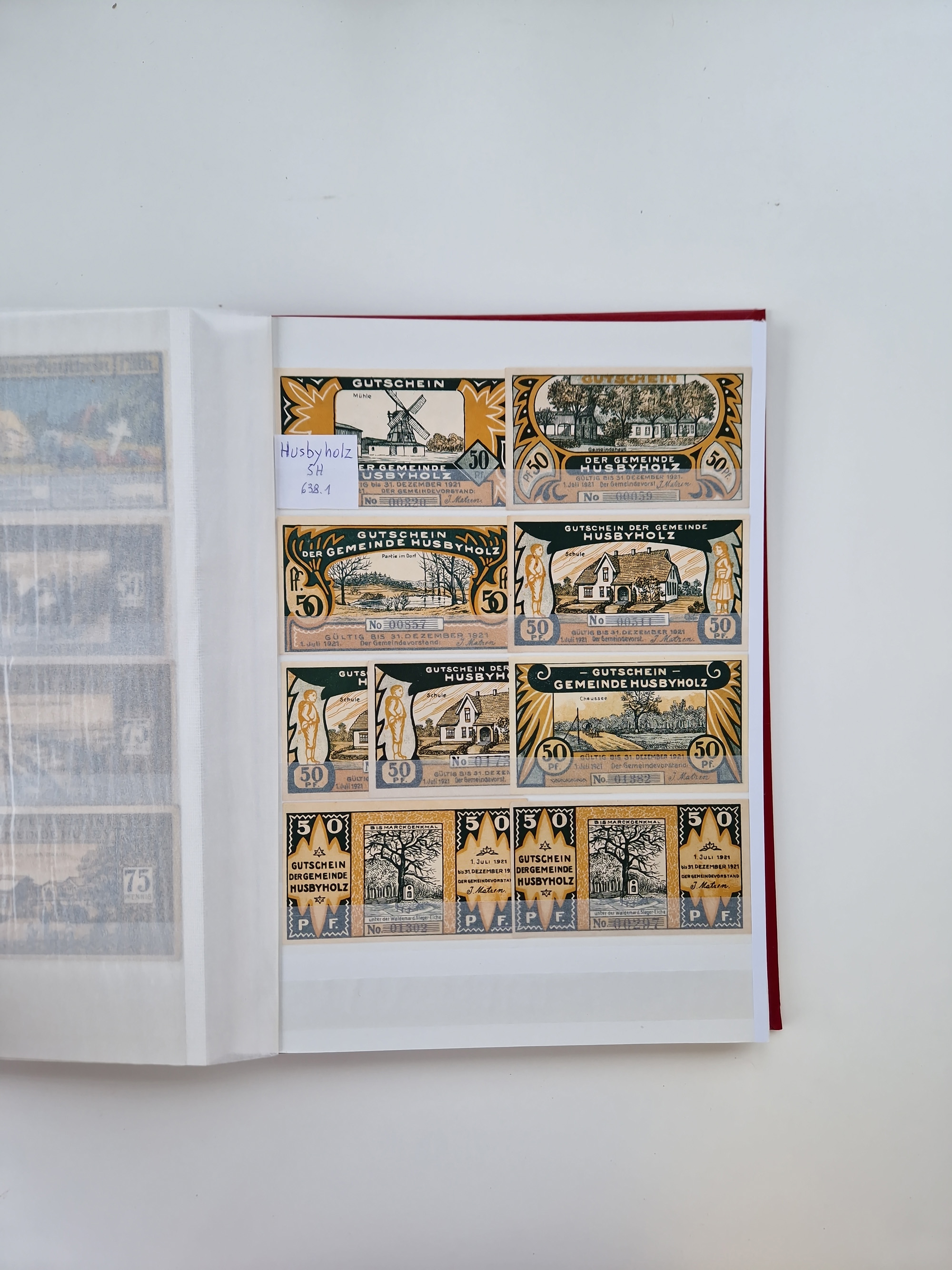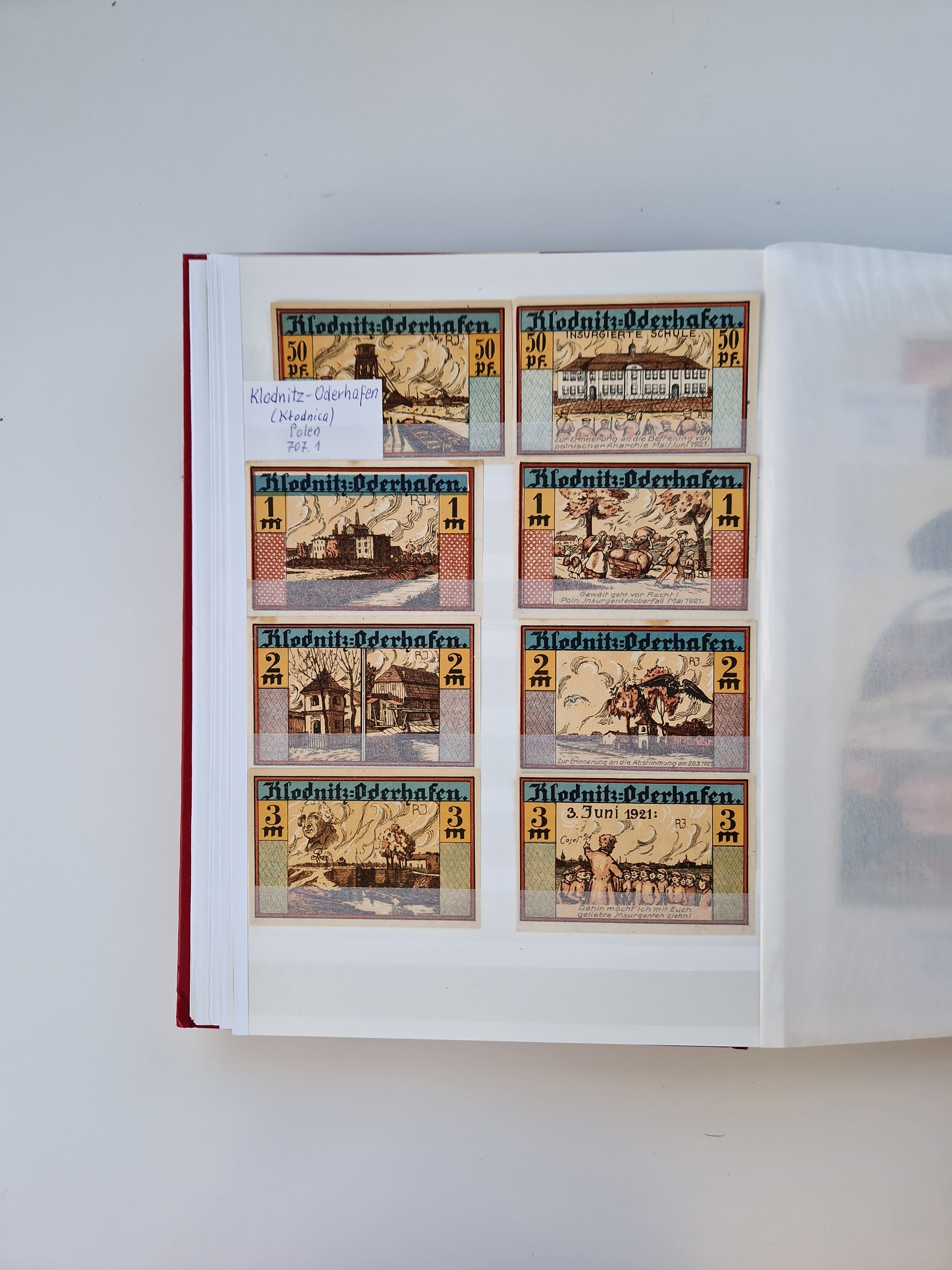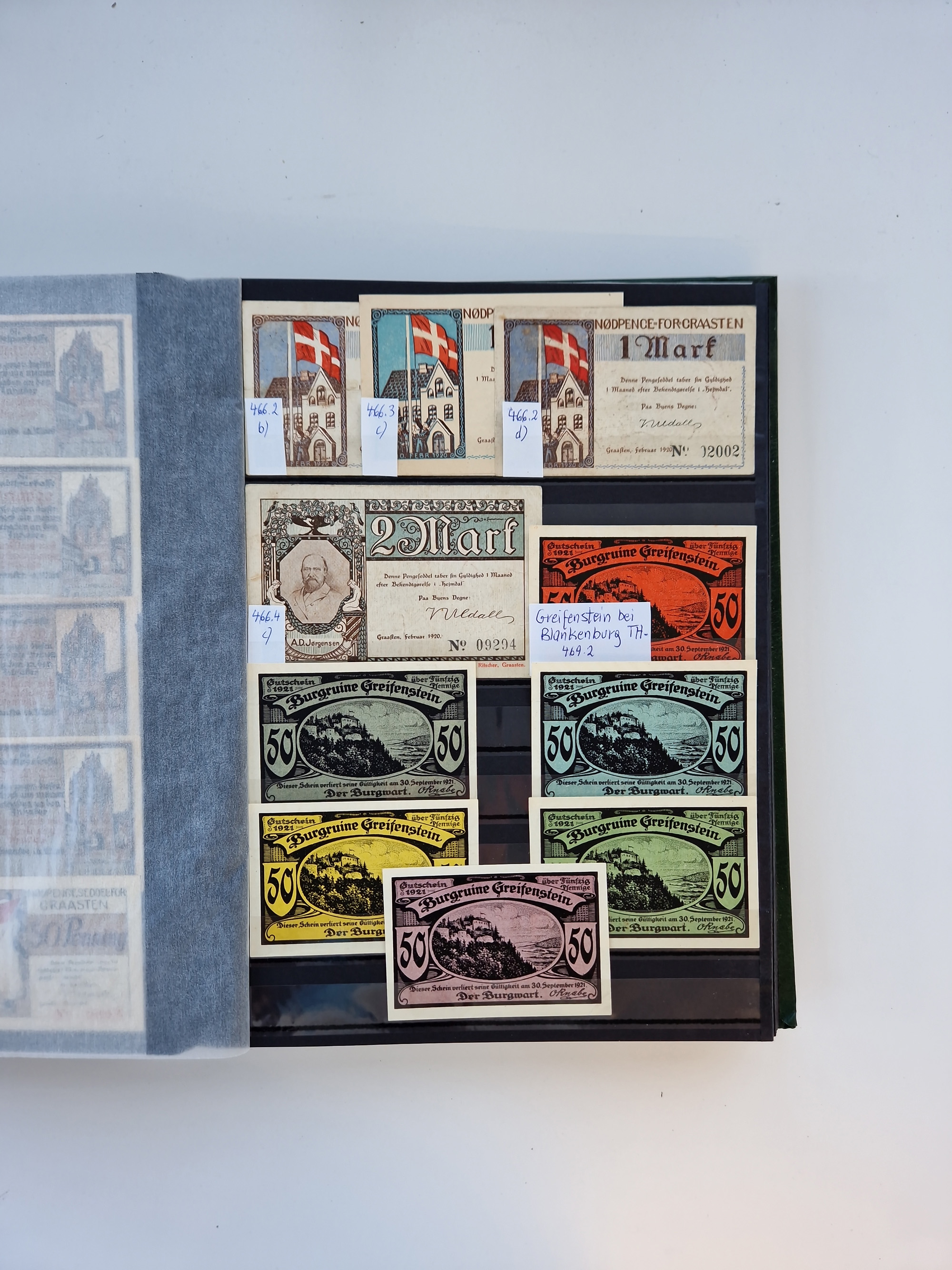 Notgeld-Serienscheine, saubere Sammlung in 16 meist dicken Steckalben, sauber nach Orten und Serien sortiert, überschlägig etwa 7/8000 Stück, dazu 4 Kataloge