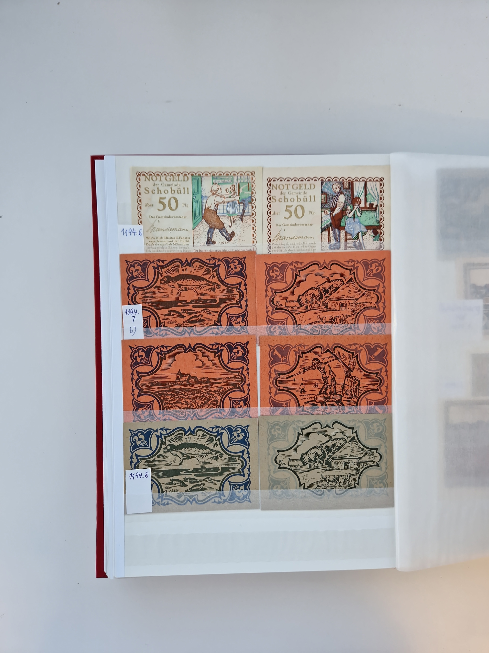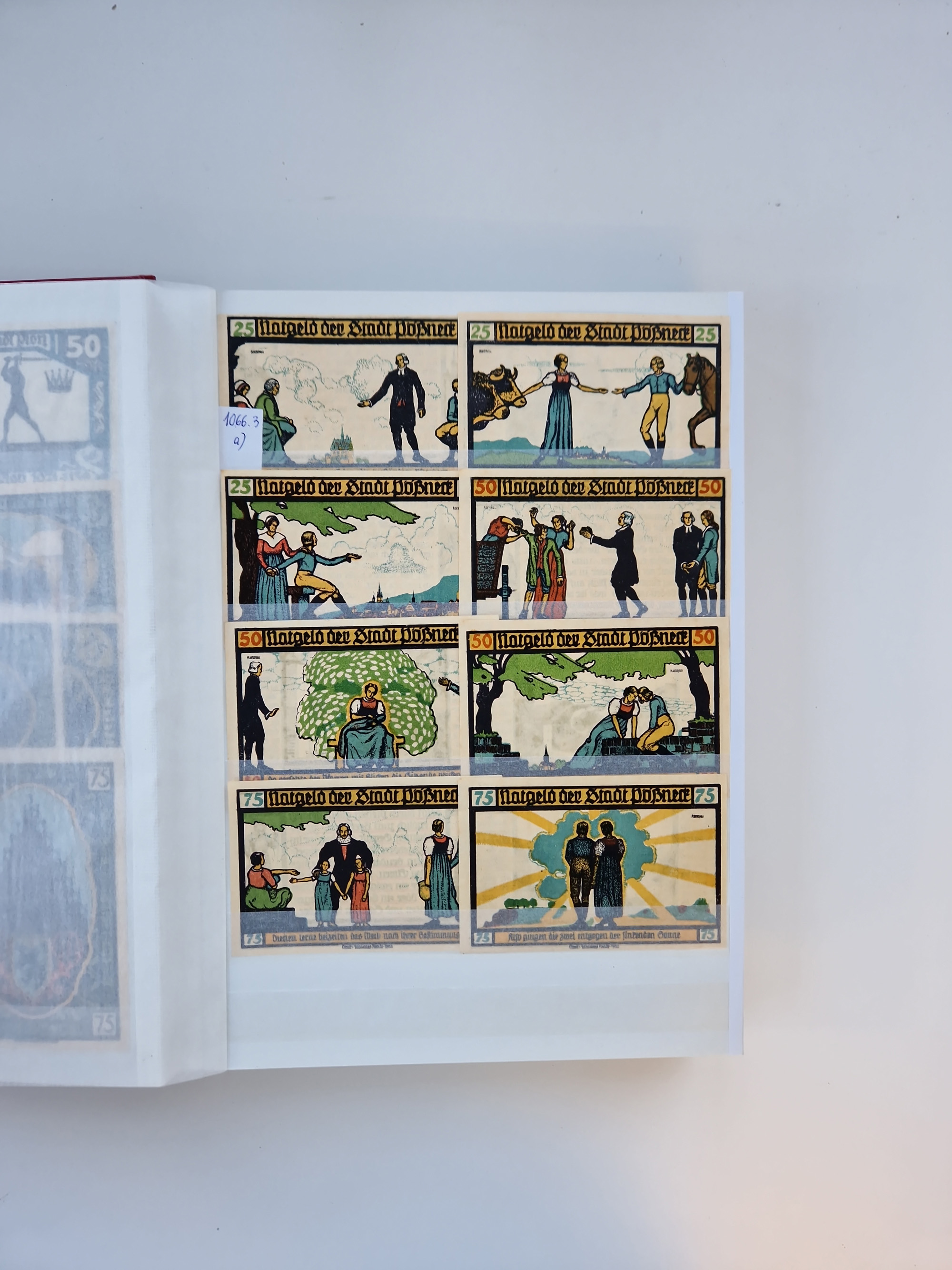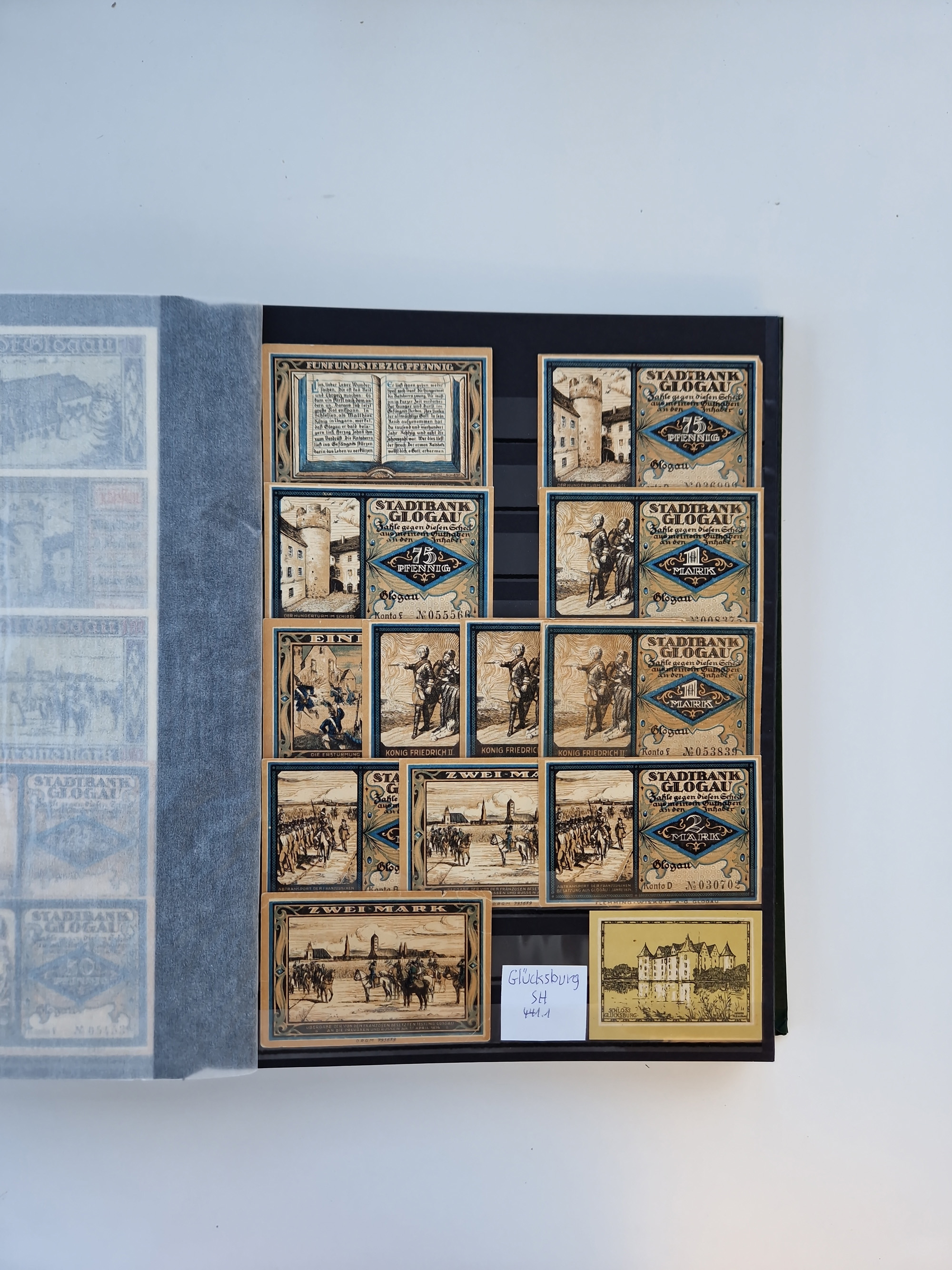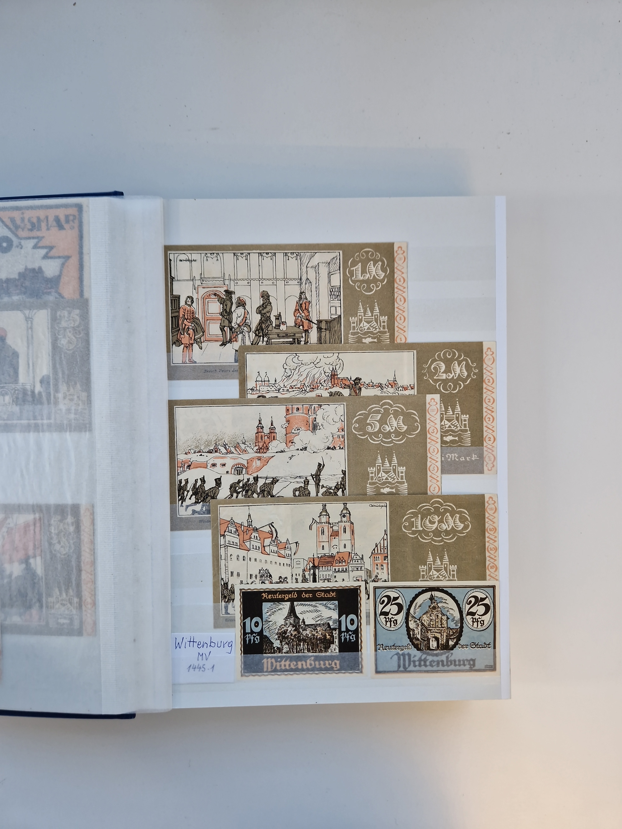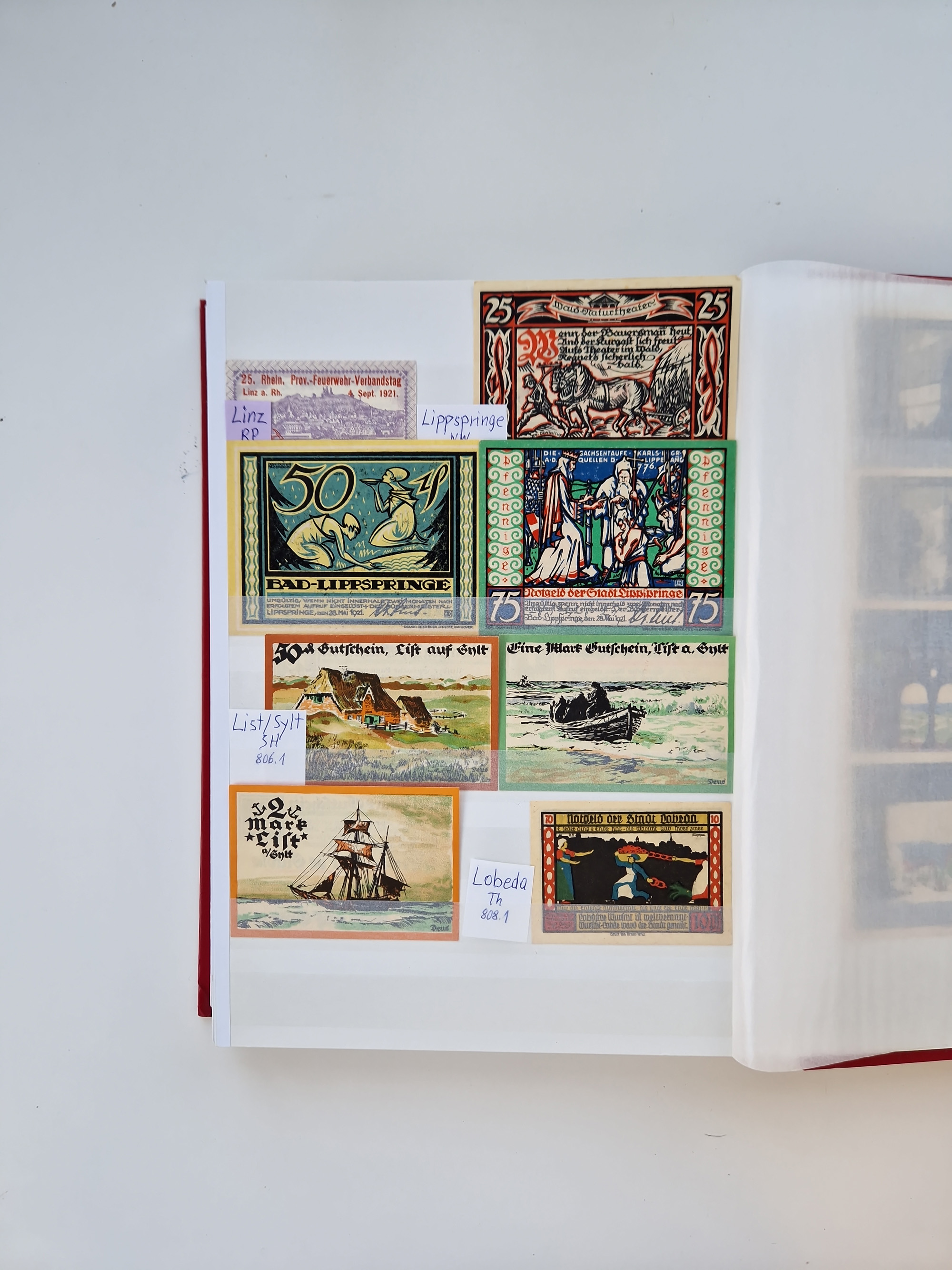 Notgeld-Serienscheine, saubere Sammlung in 16 meist dicken Steckalben, sauber nach Orten und Serien sortiert, überschlägig etwa 7/8000 Stück, dazu 4 Kataloge