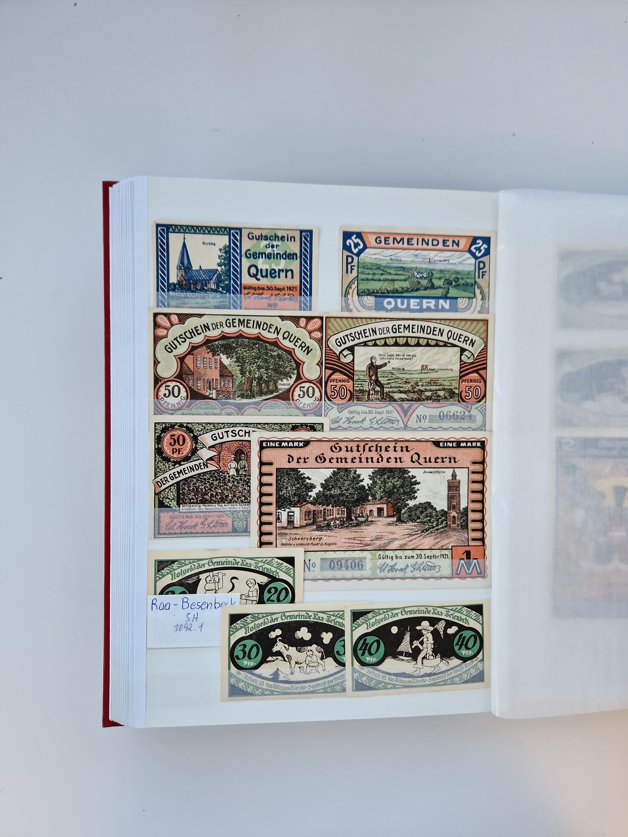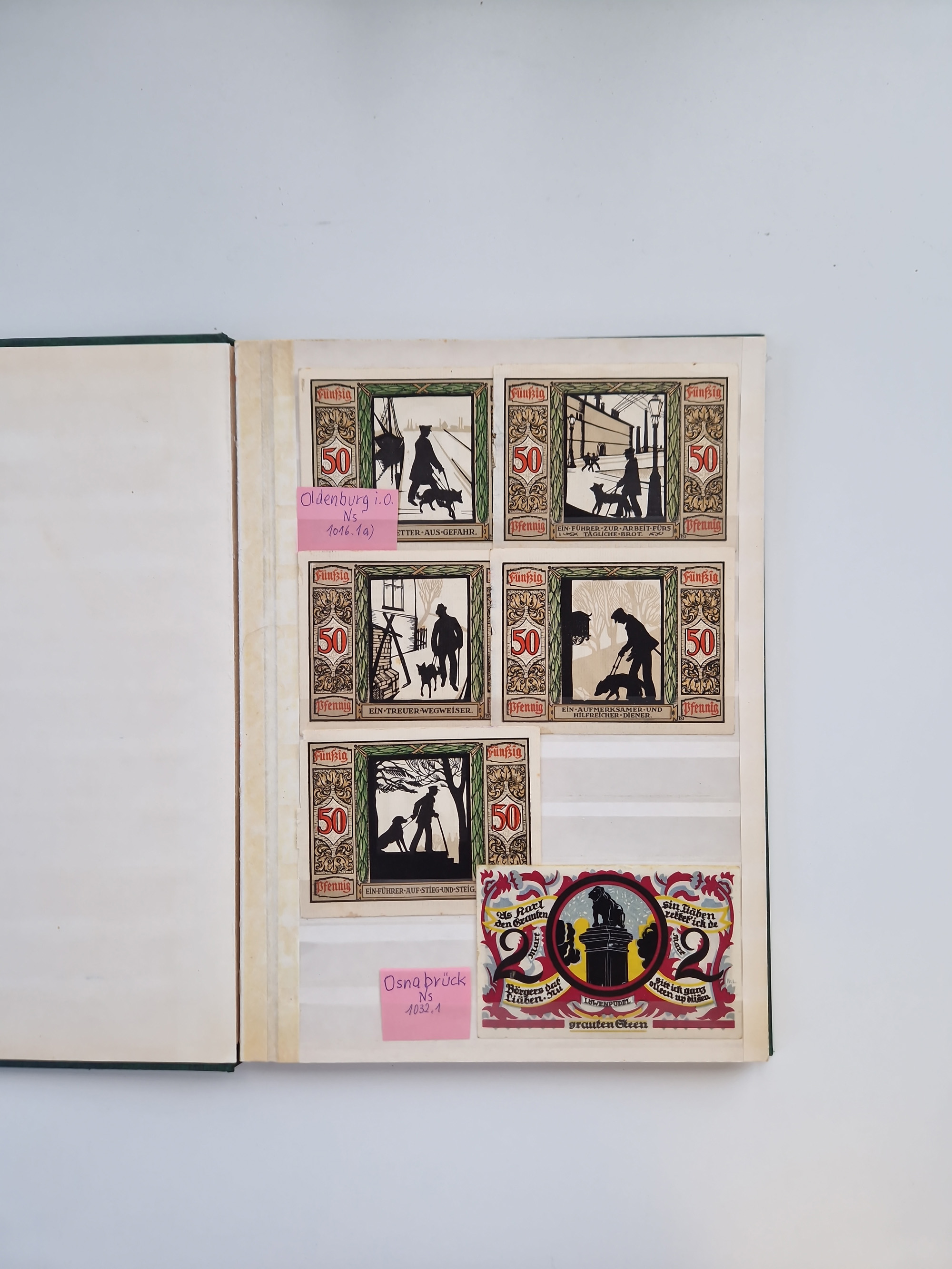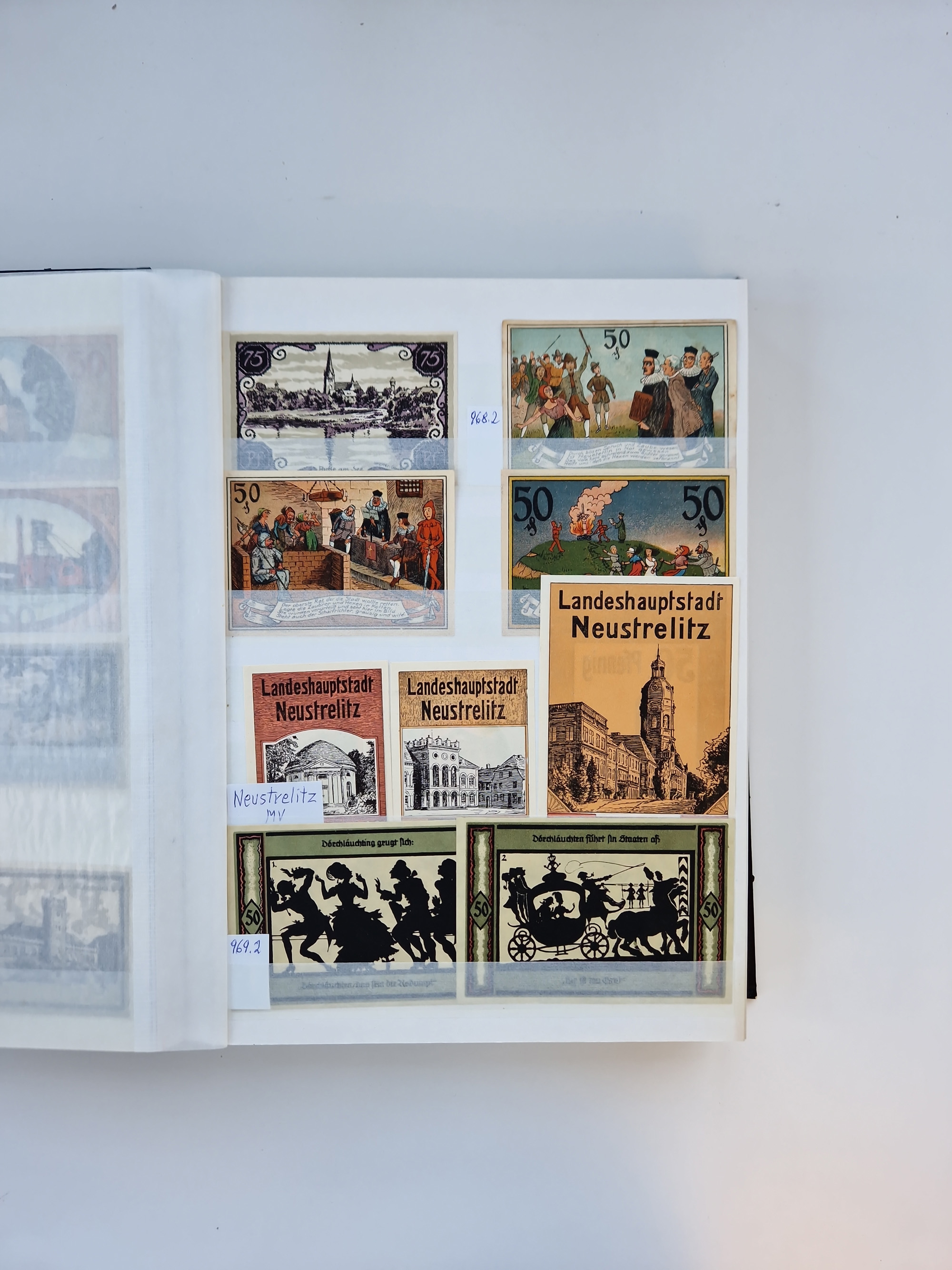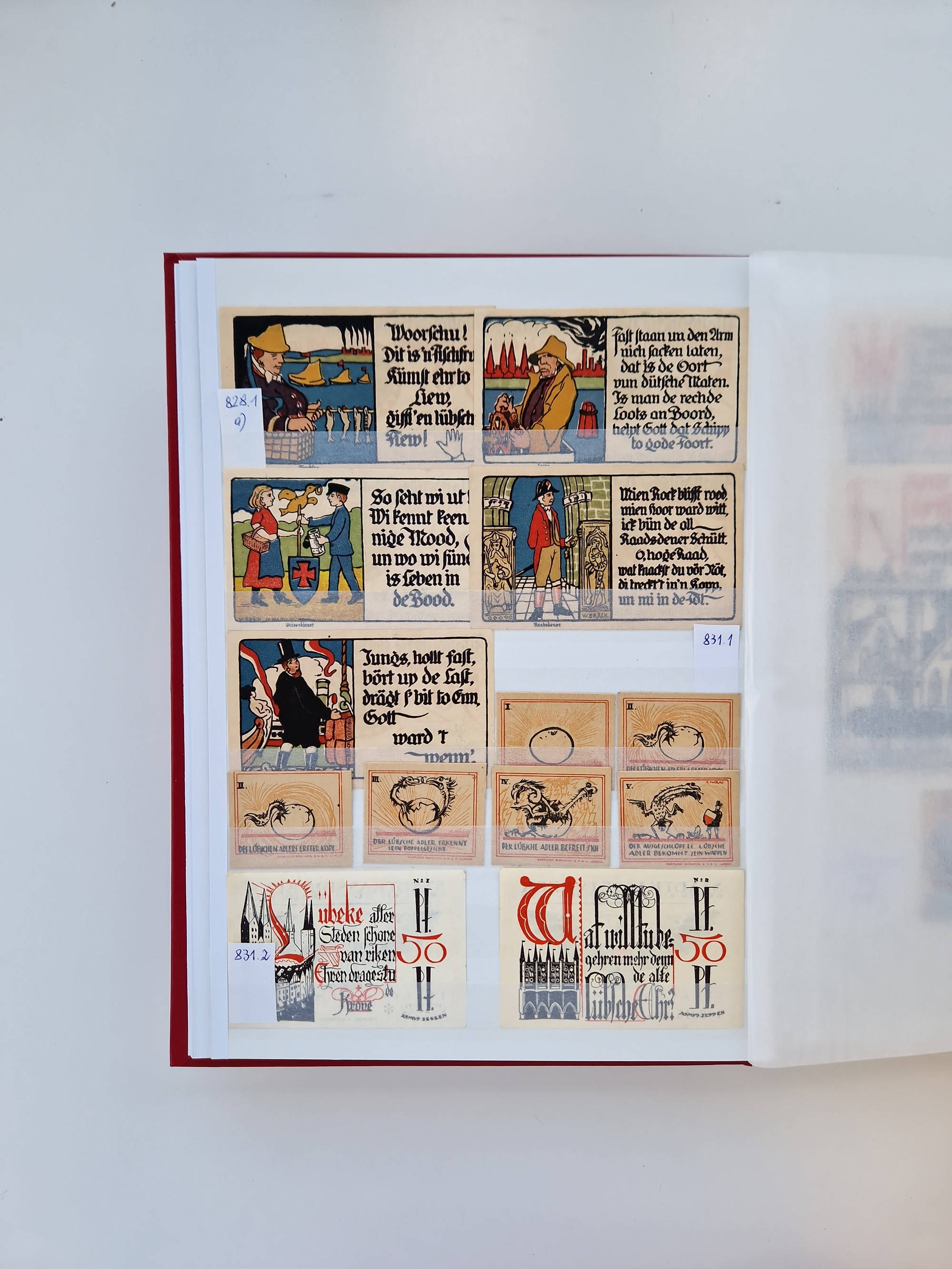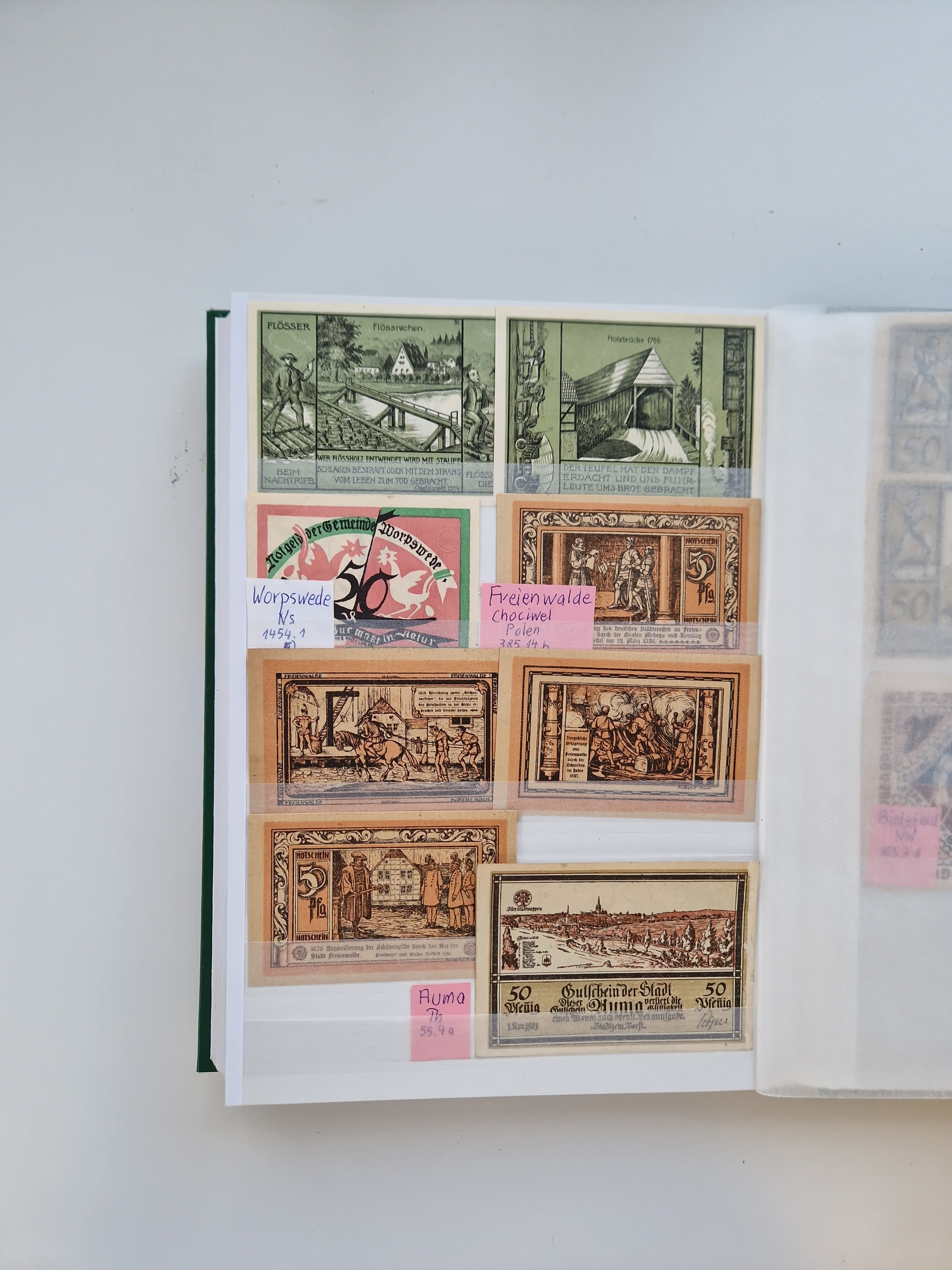 Notgeld-Serienscheine, saubere Sammlung in 16 meist dicken Steckalben, sauber nach Orten und Serien sortiert, überschlägig etwa 7/8000 Stück, dazu 4 Kataloge