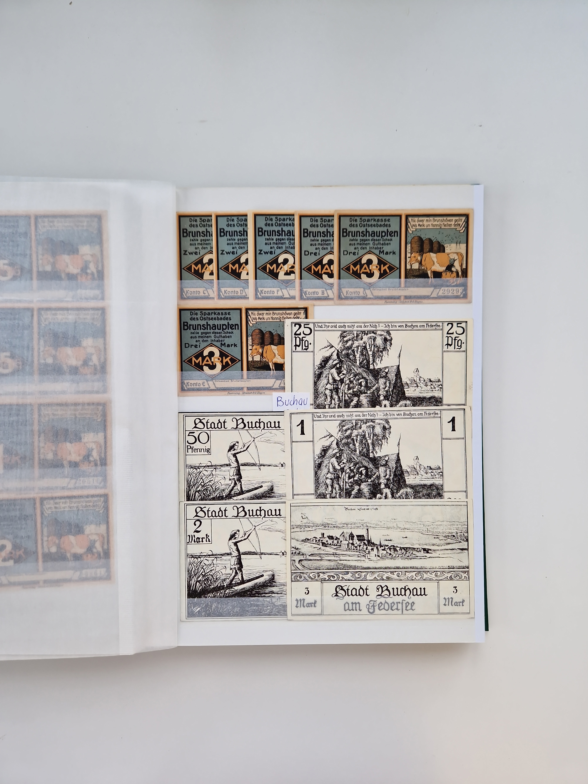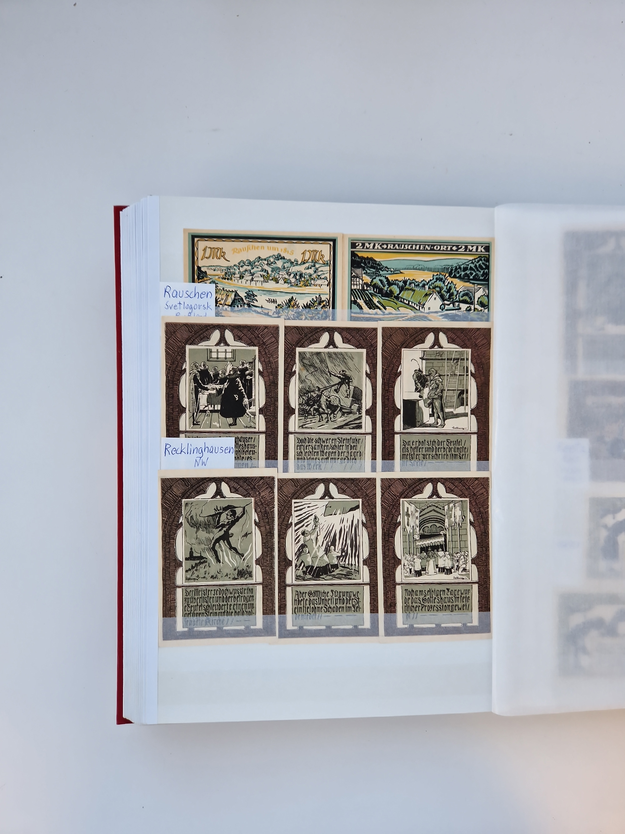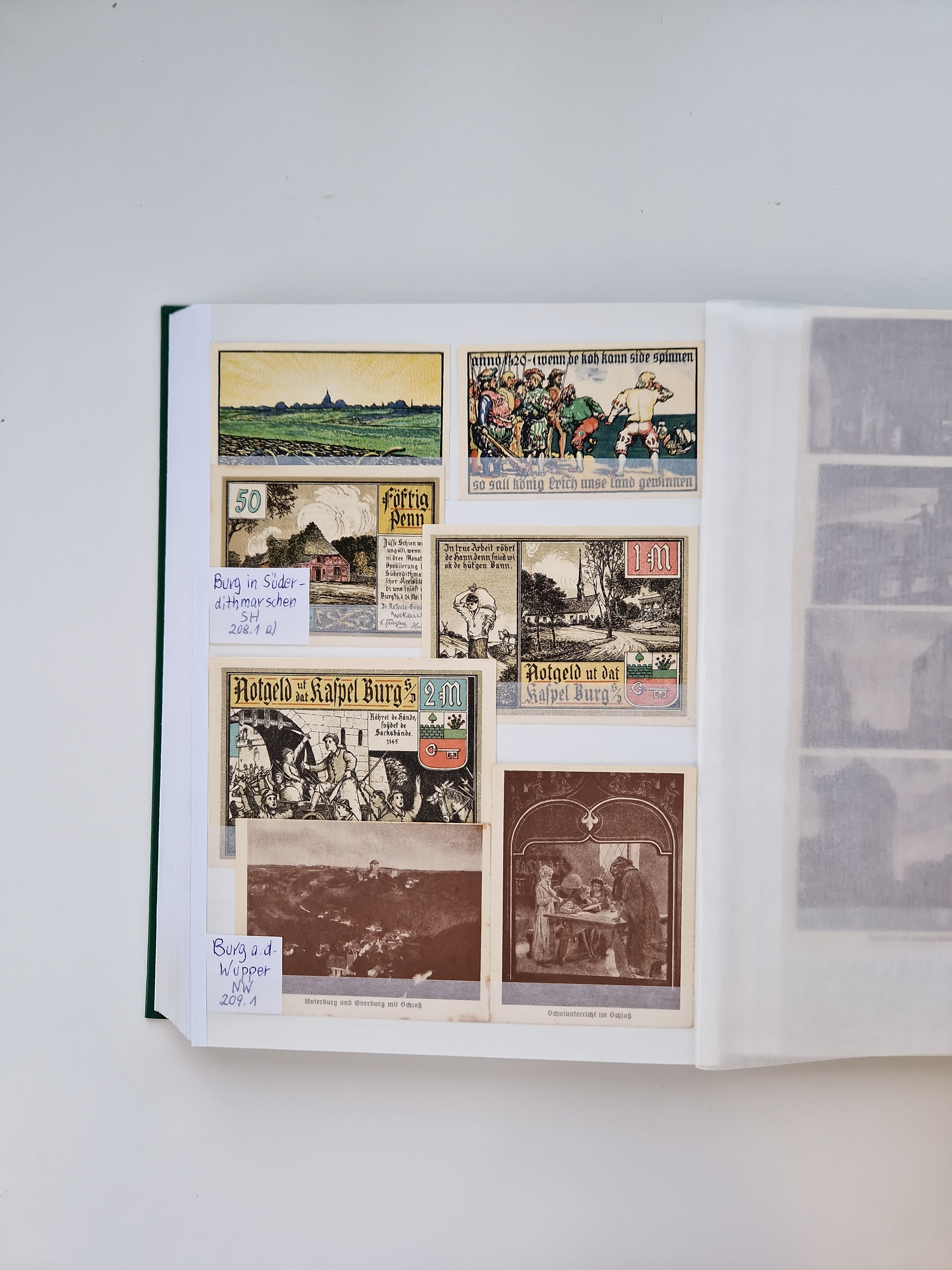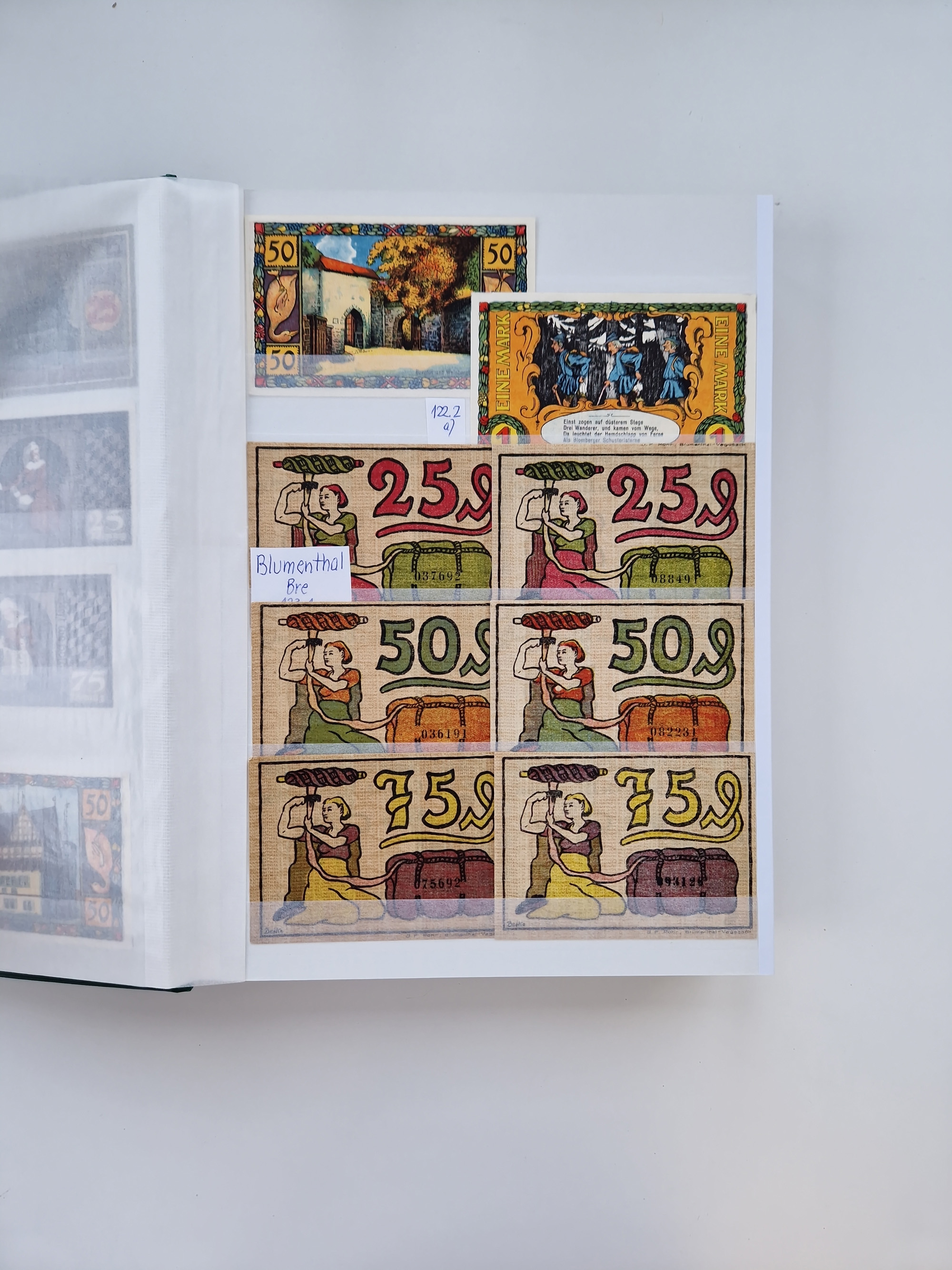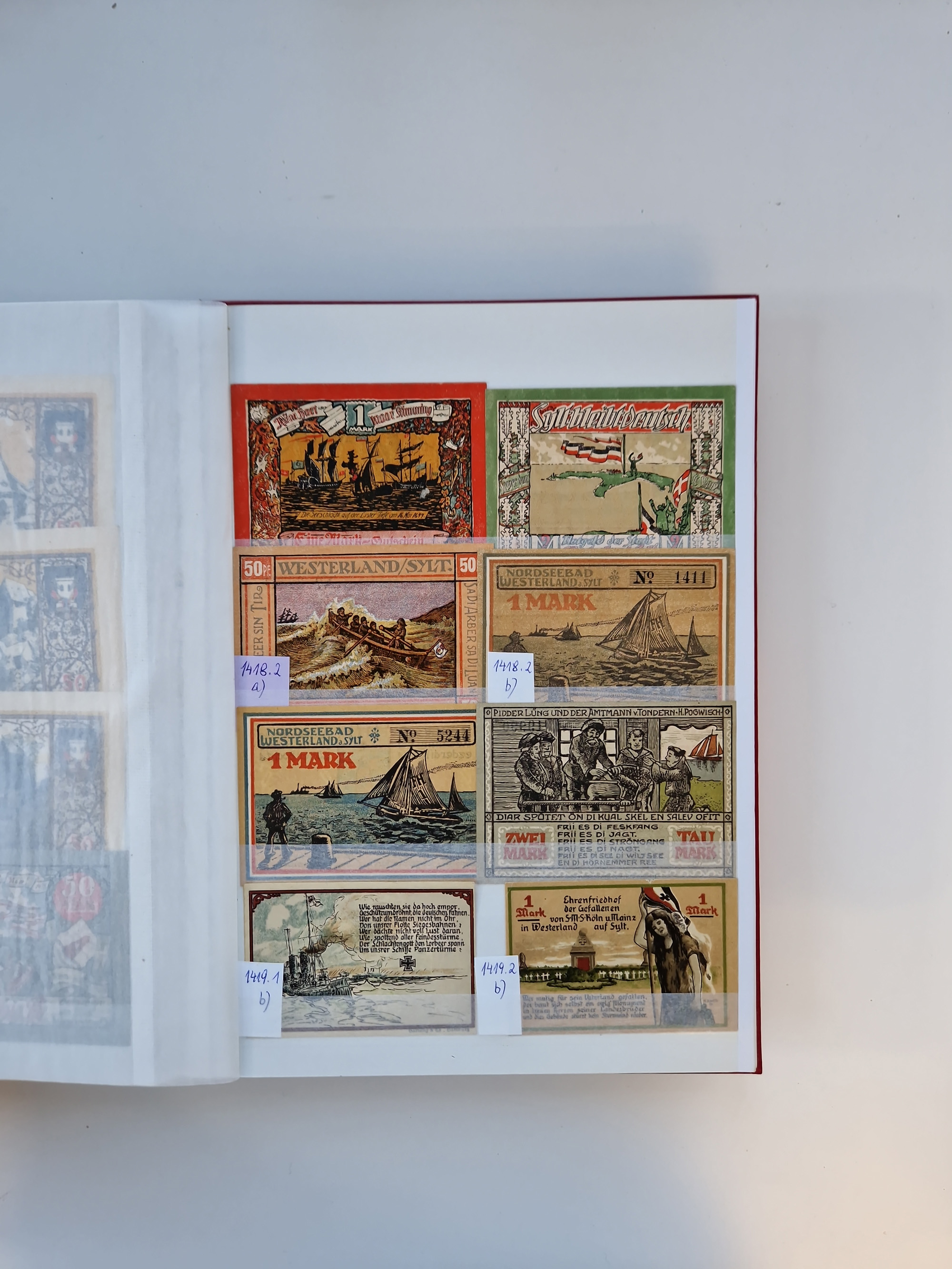 Notgeld-Serienscheine, saubere Sammlung in 16 meist dicken Steckalben, sauber nach Orten und Serien sortiert, überschlägig etwa 7/8000 Stück, dazu 4 Kataloge