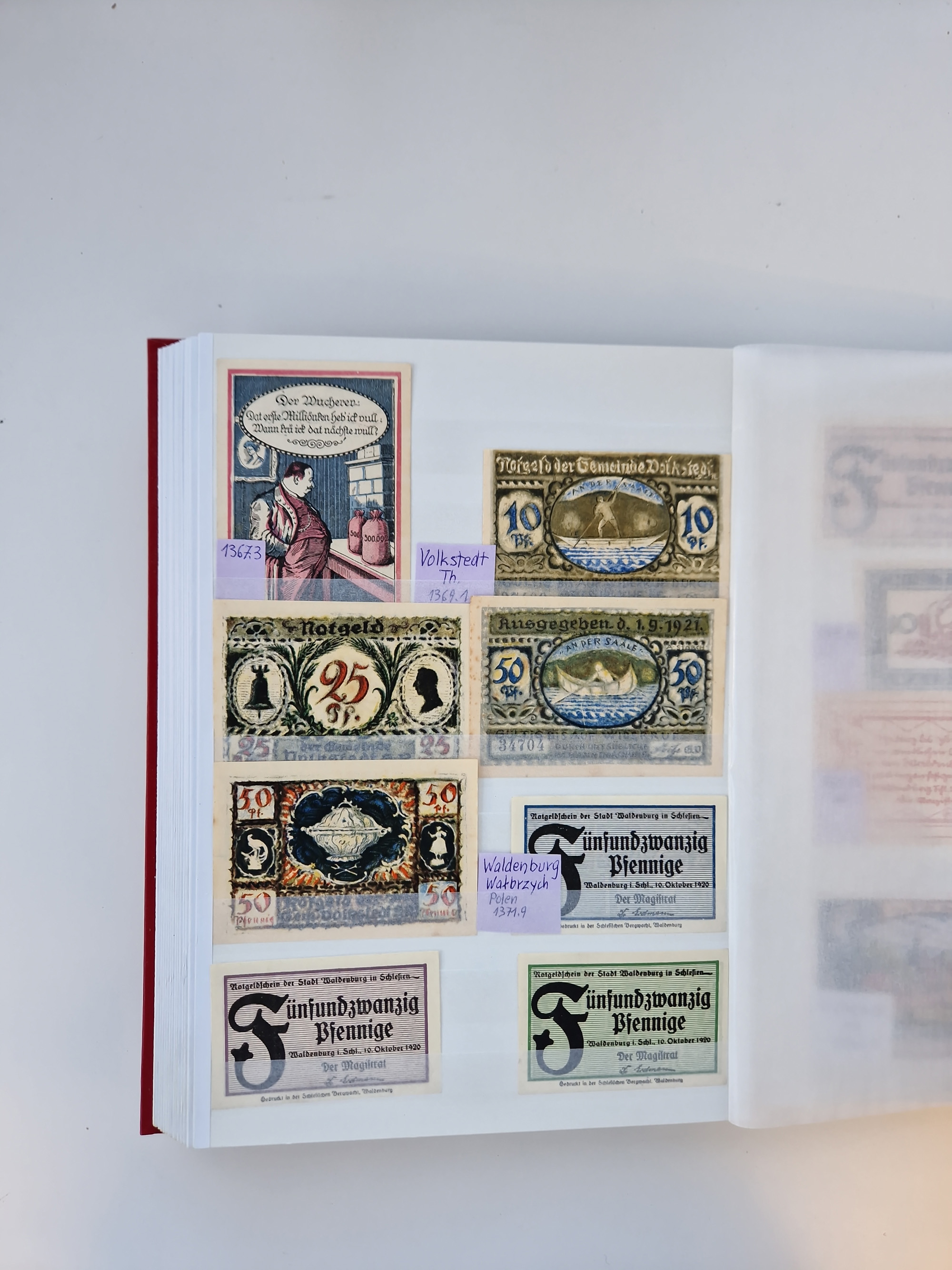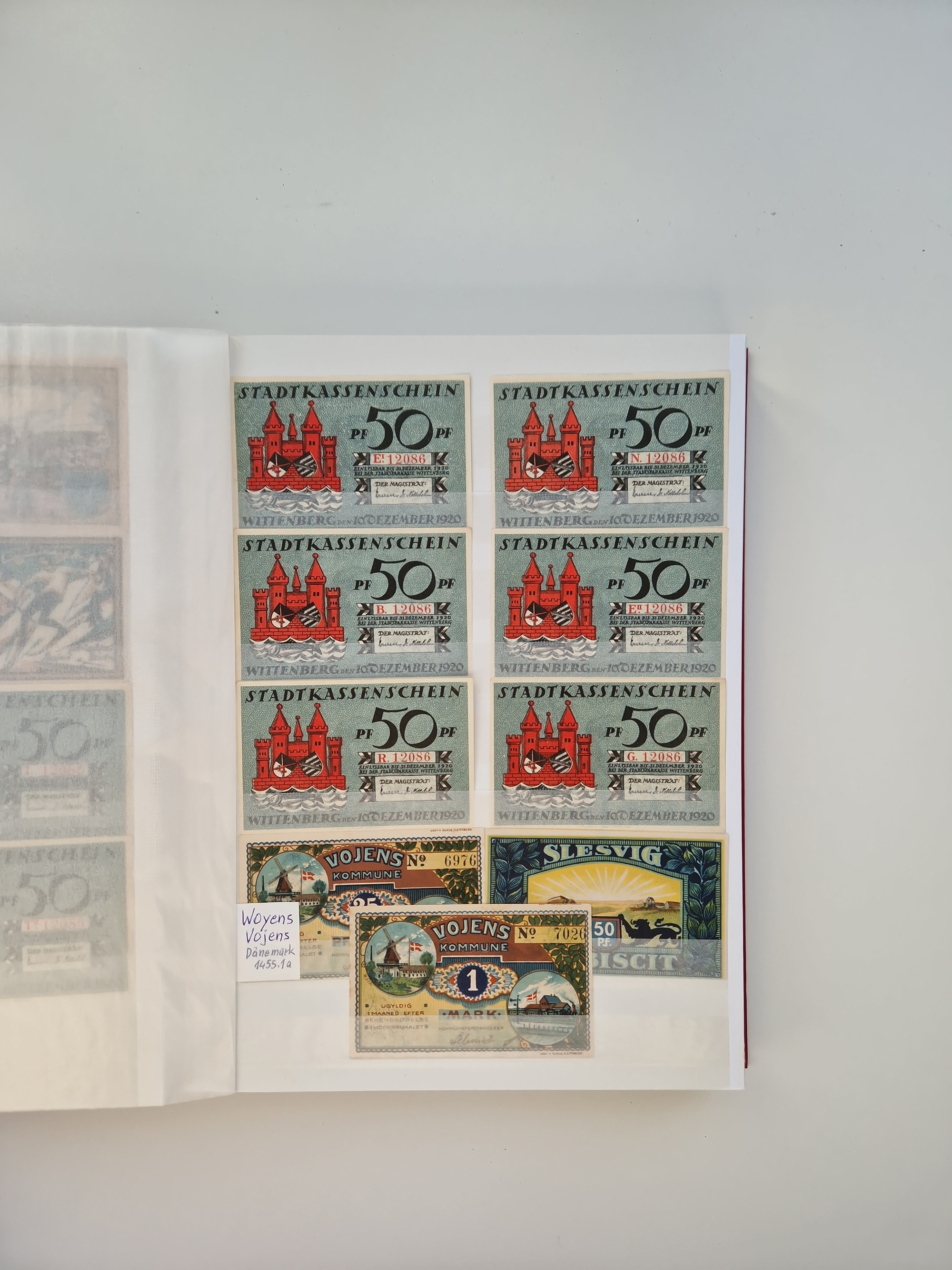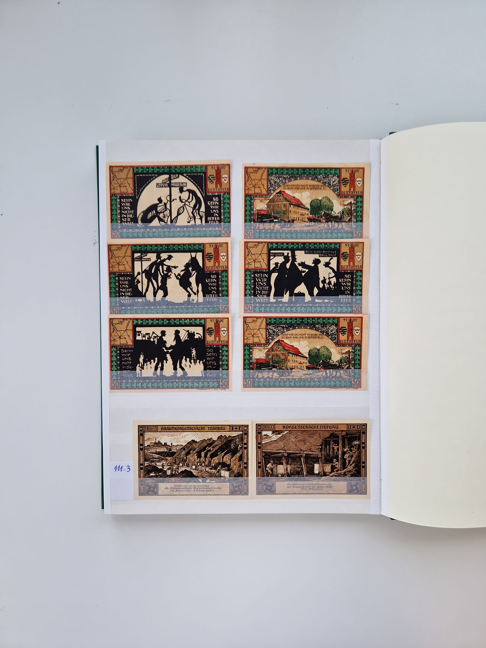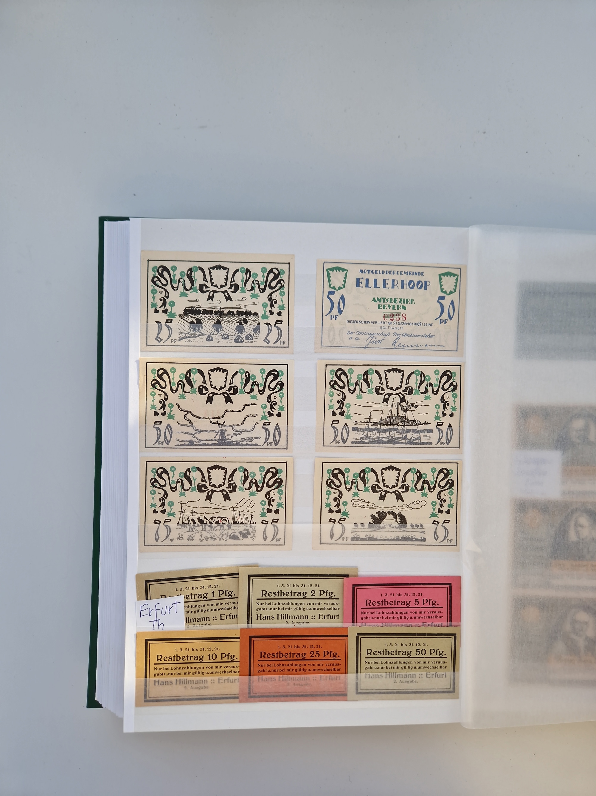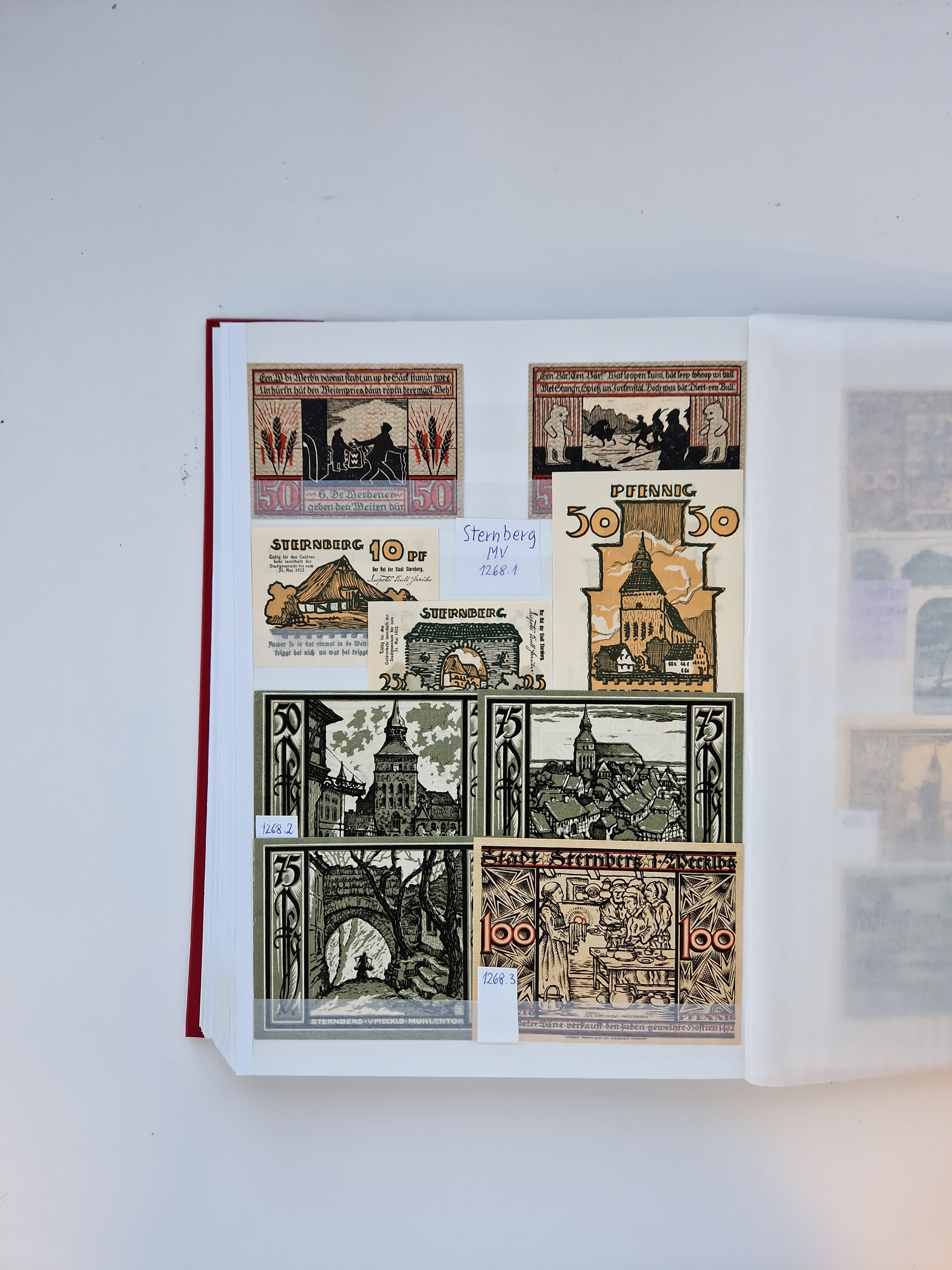 Notgeld-Serienscheine, saubere Sammlung in 16 meist dicken Steckalben, sauber nach Orten und Serien sortiert, überschlägig etwa 7/8000 Stück, dazu 4 Kataloge
