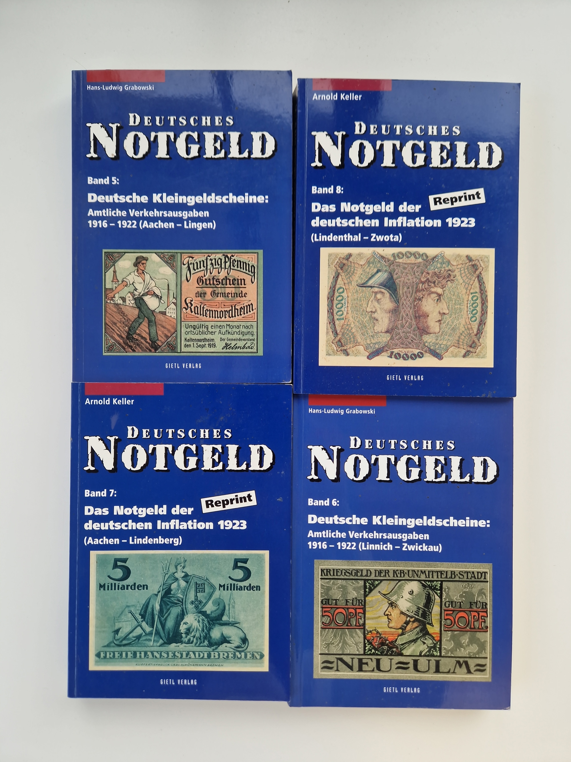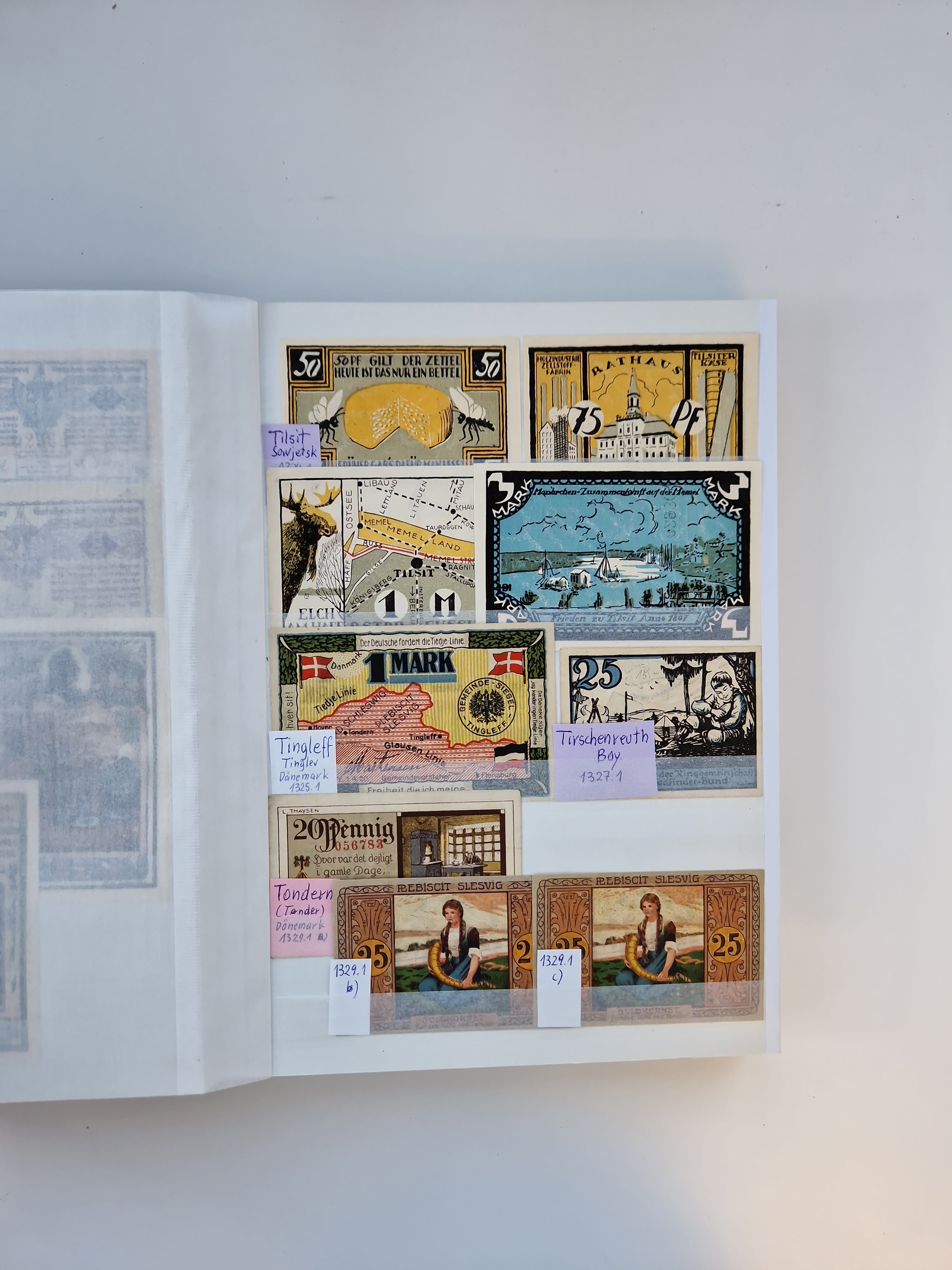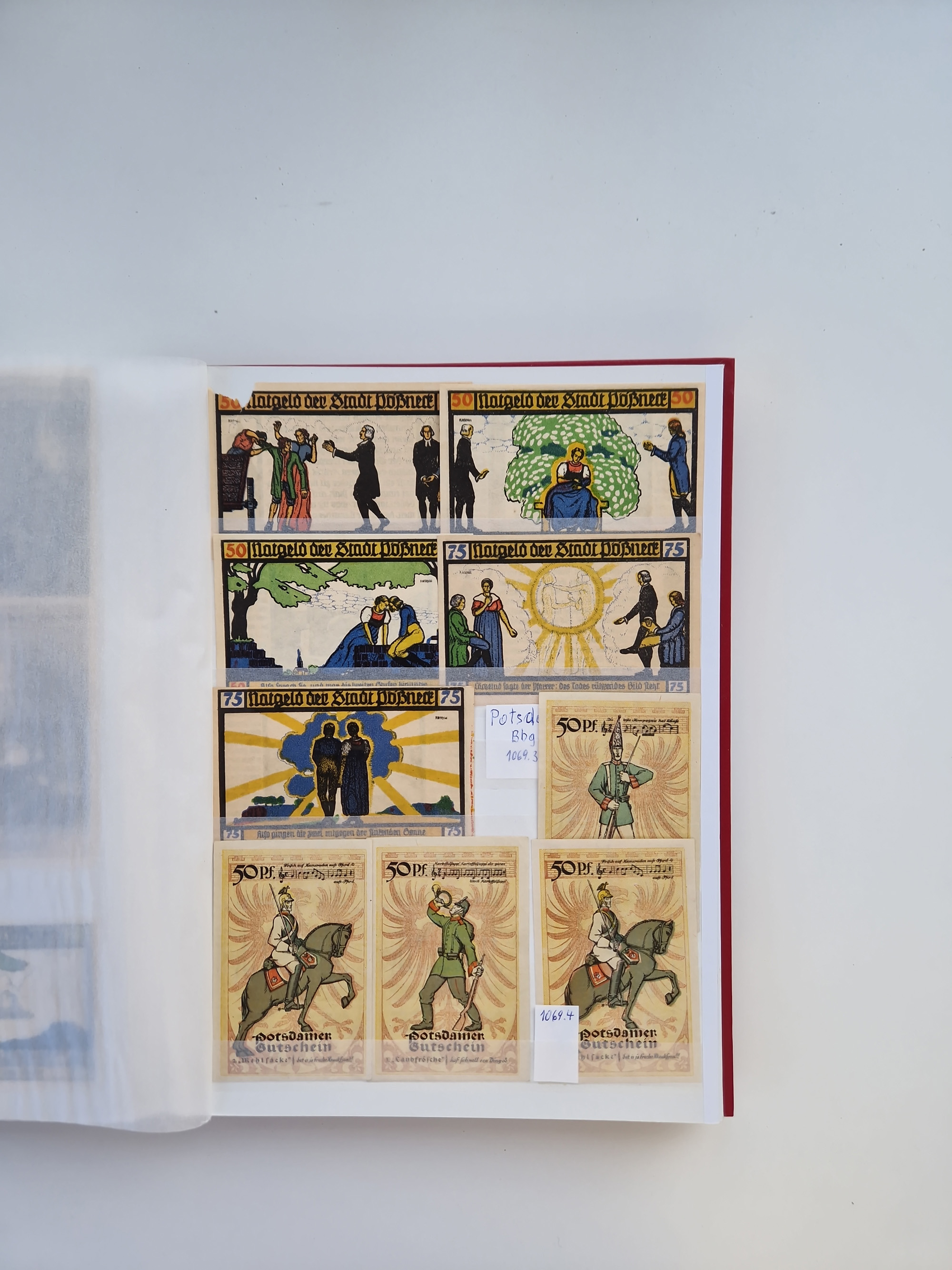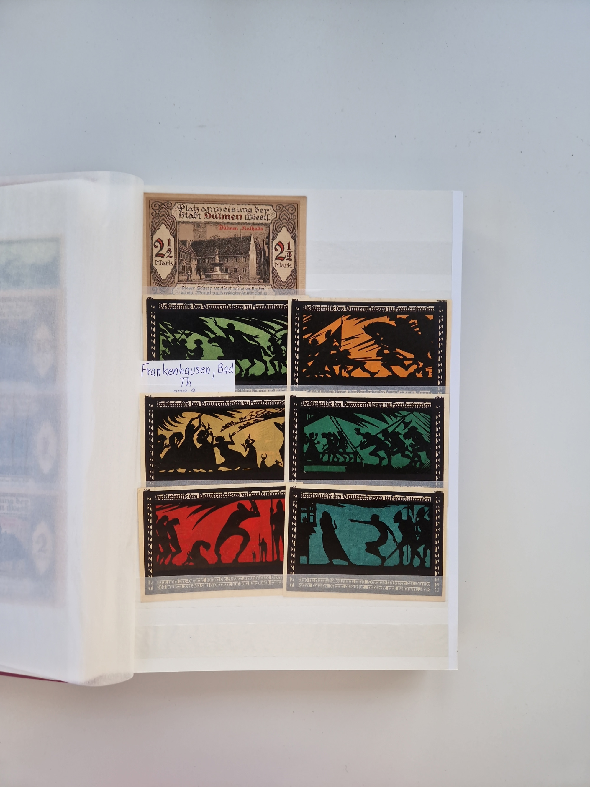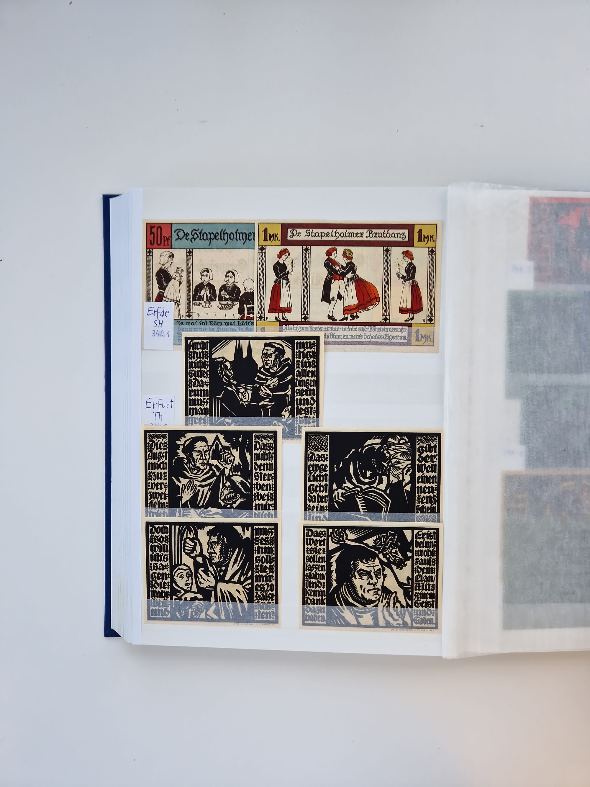 Notgeld-Serienscheine, saubere Sammlung in 16 meist dicken Steckalben, sauber nach Orten und Serien sortiert, überschlägig etwa 7/8000 Stück, dazu 4 Kataloge