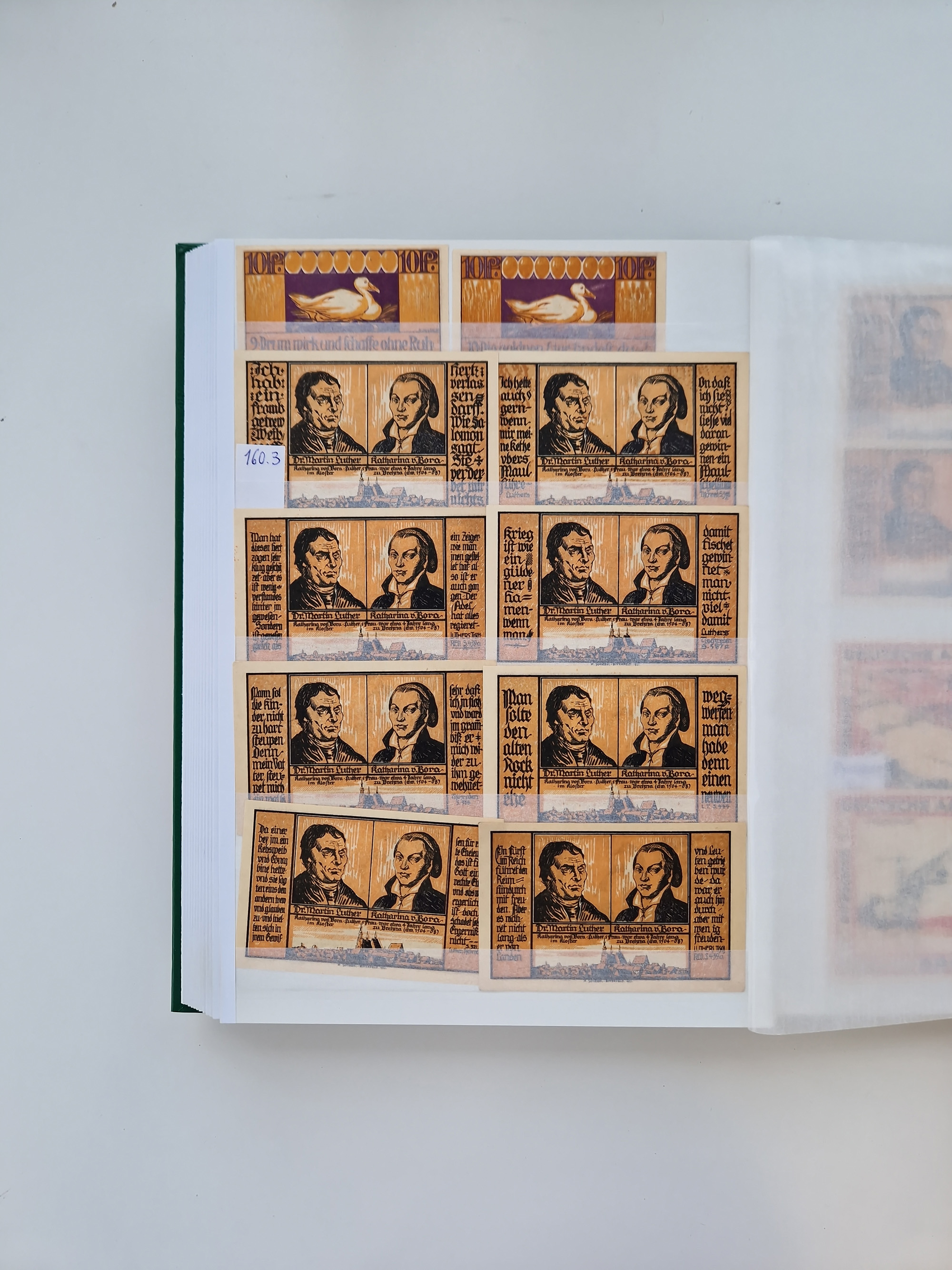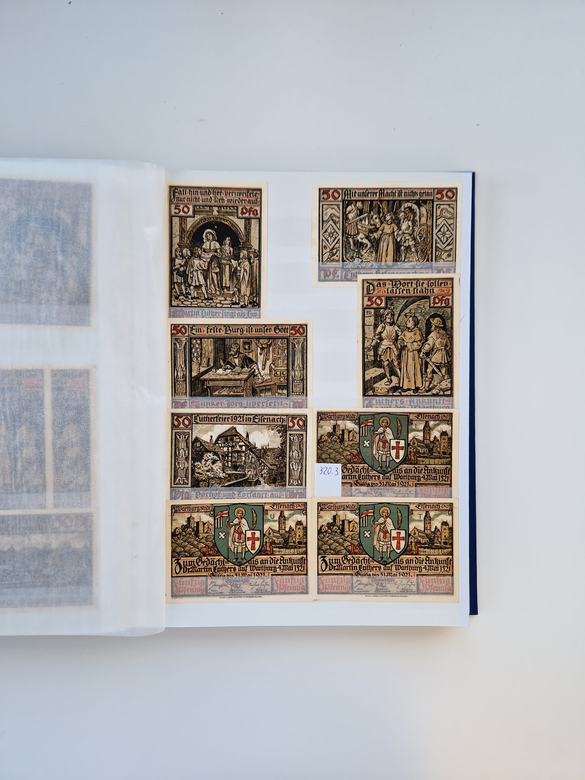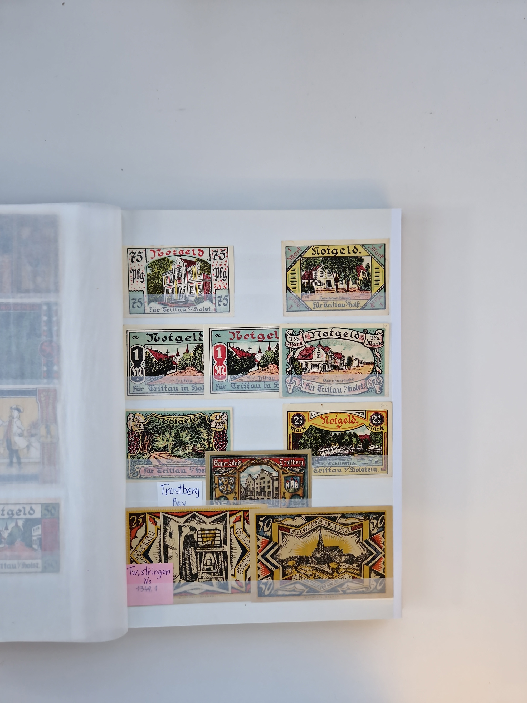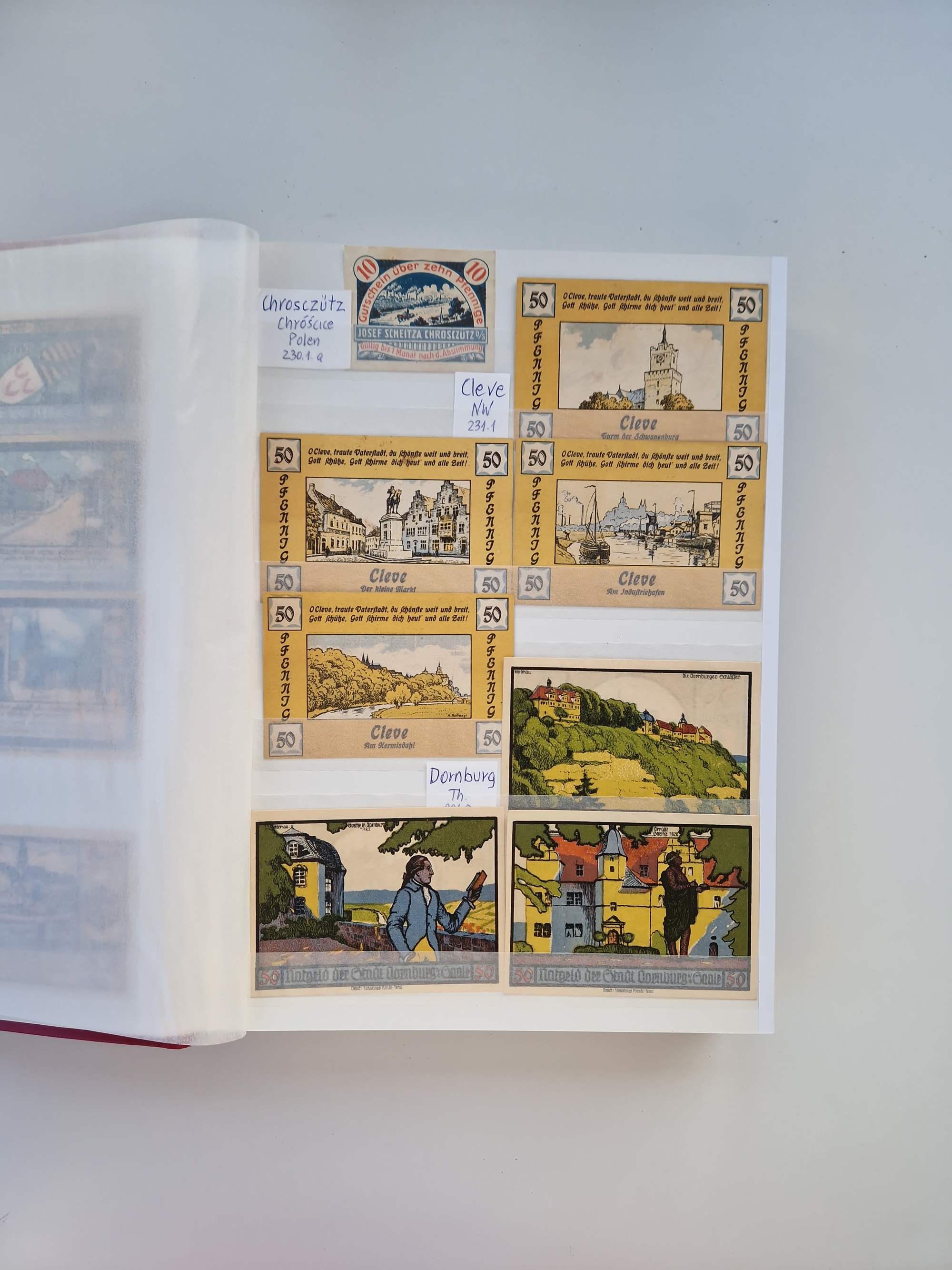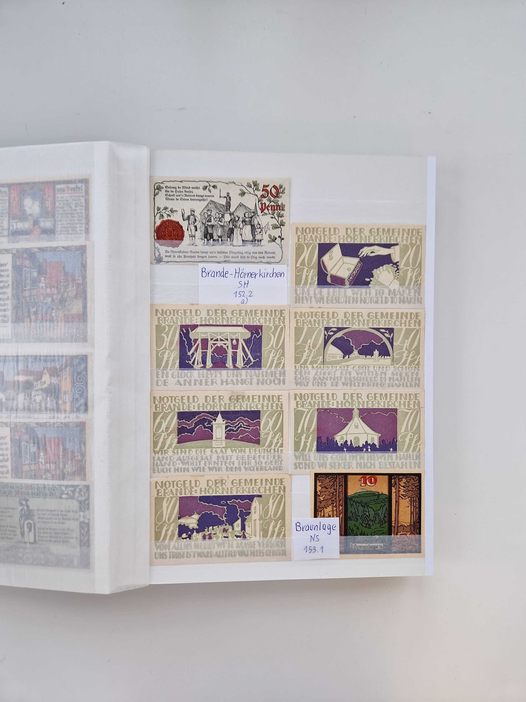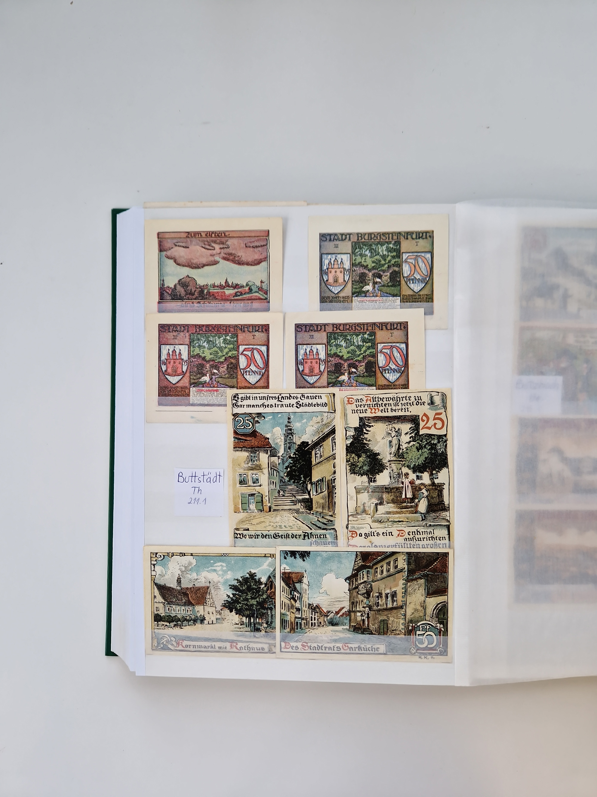 Notgeld-Serienscheine, saubere Sammlung in 16 meist dicken Steckalben, sauber nach Orten und Serien sortiert, überschlägig etwa 7/8000 Stück, dazu 4 Kataloge