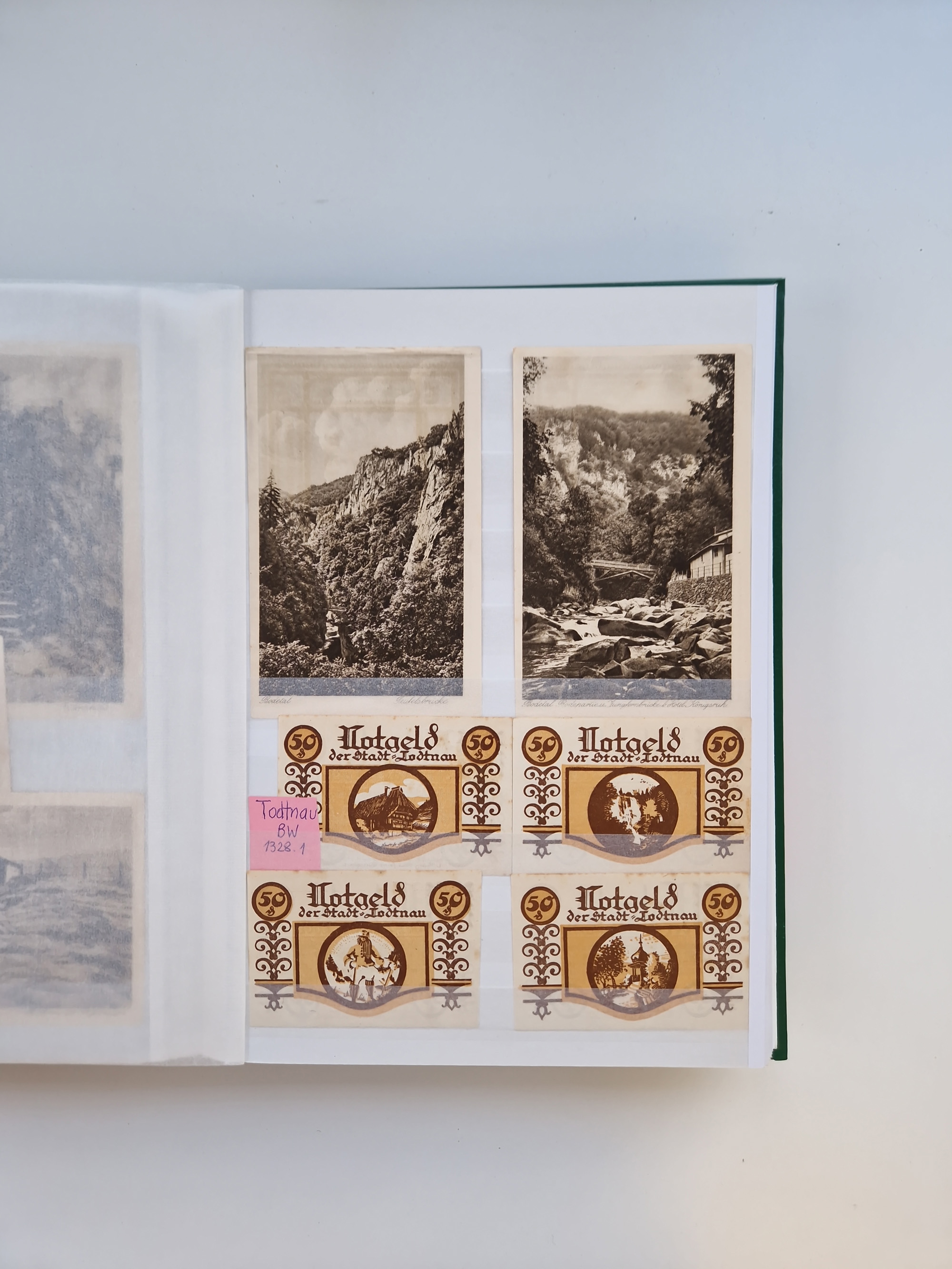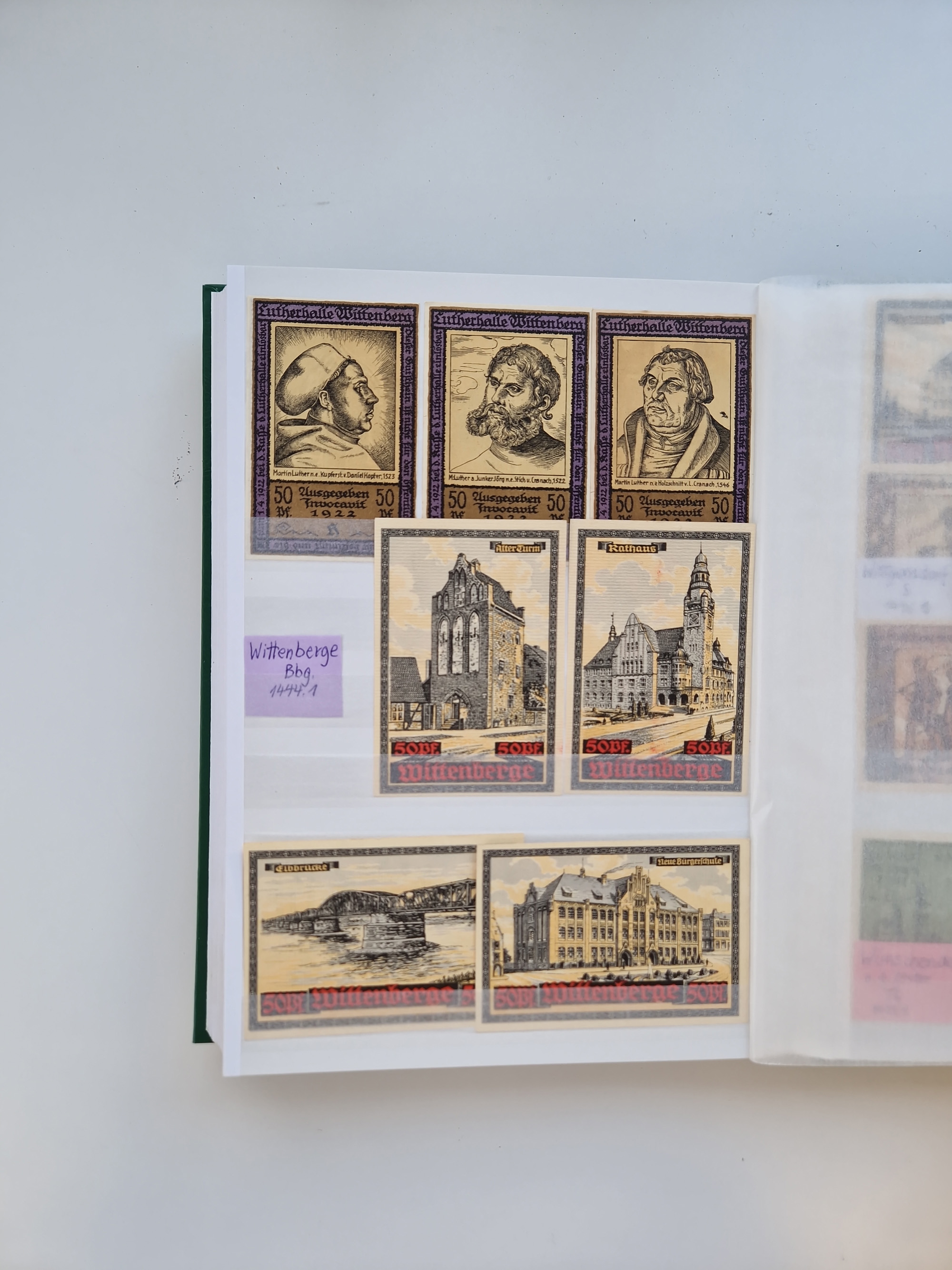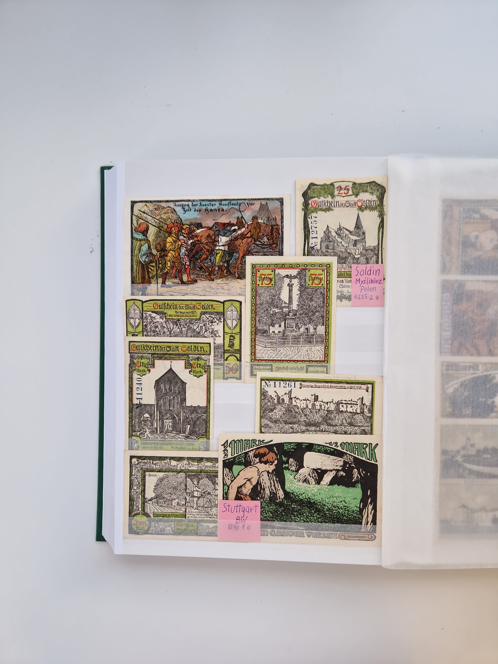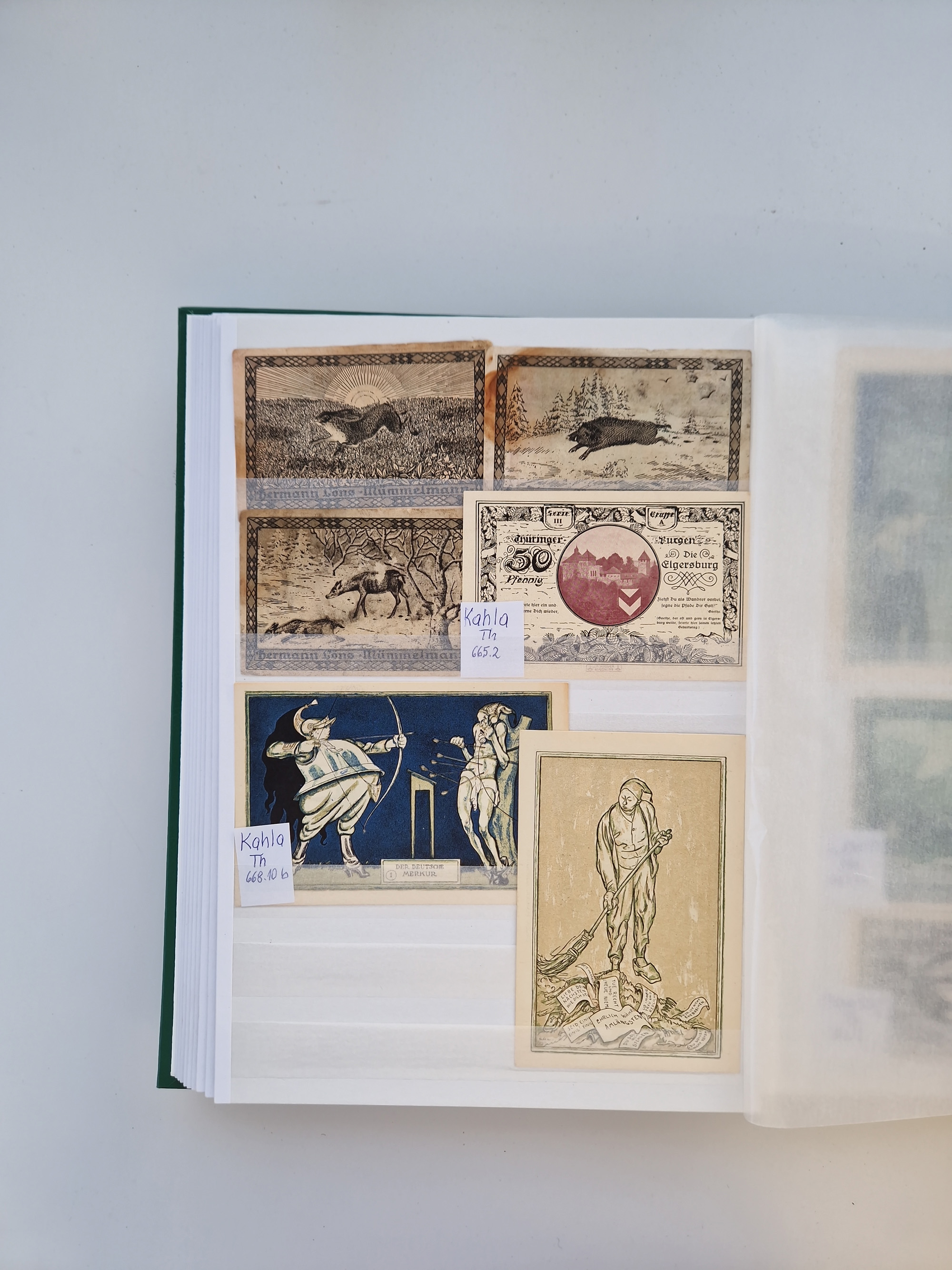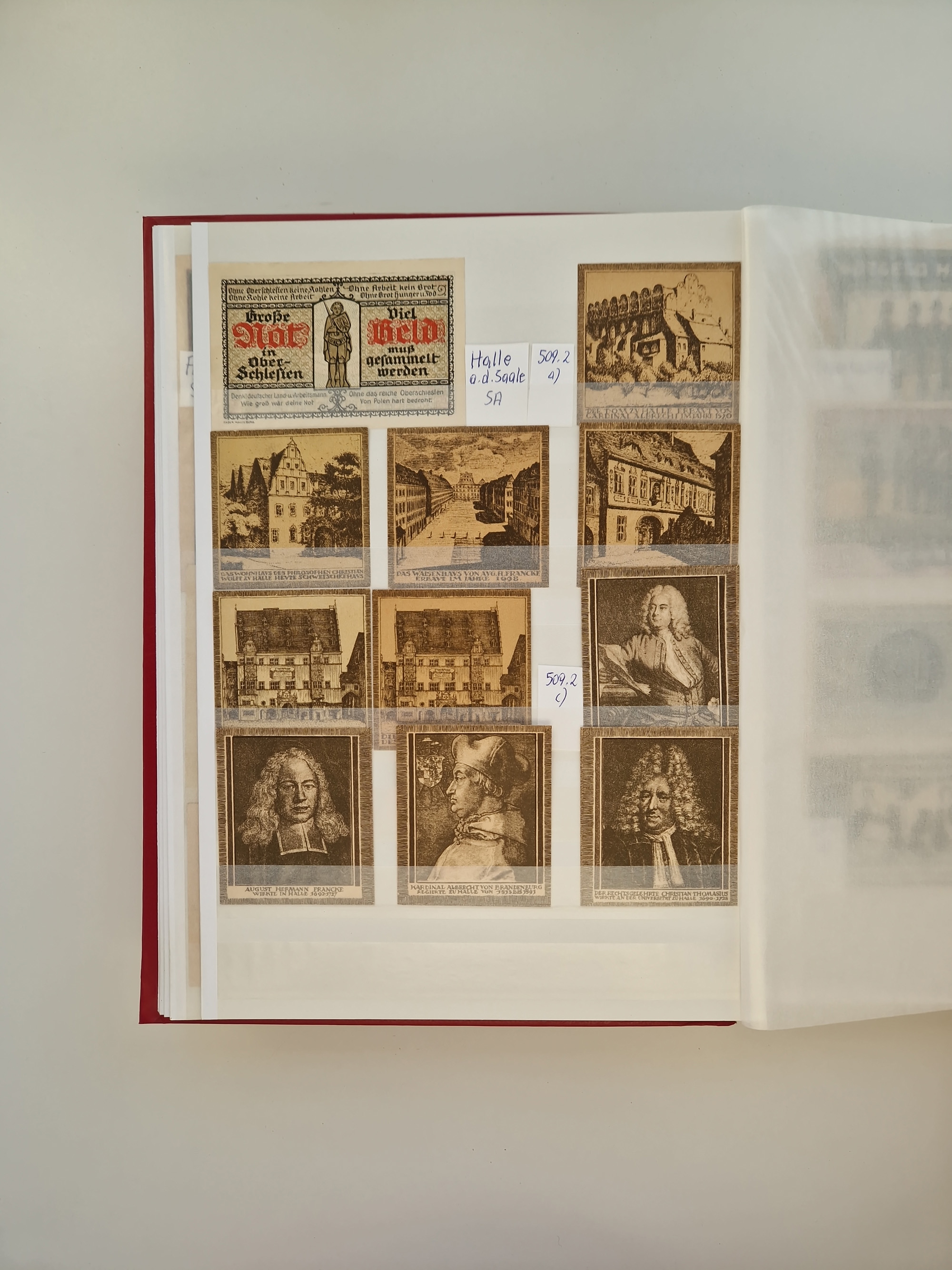 Notgeld-Serienscheine, saubere Sammlung in 16 meist dicken Steckalben, sauber nach Orten und Serien sortiert, überschlägig etwa 7/8000 Stück, dazu 4 Kataloge