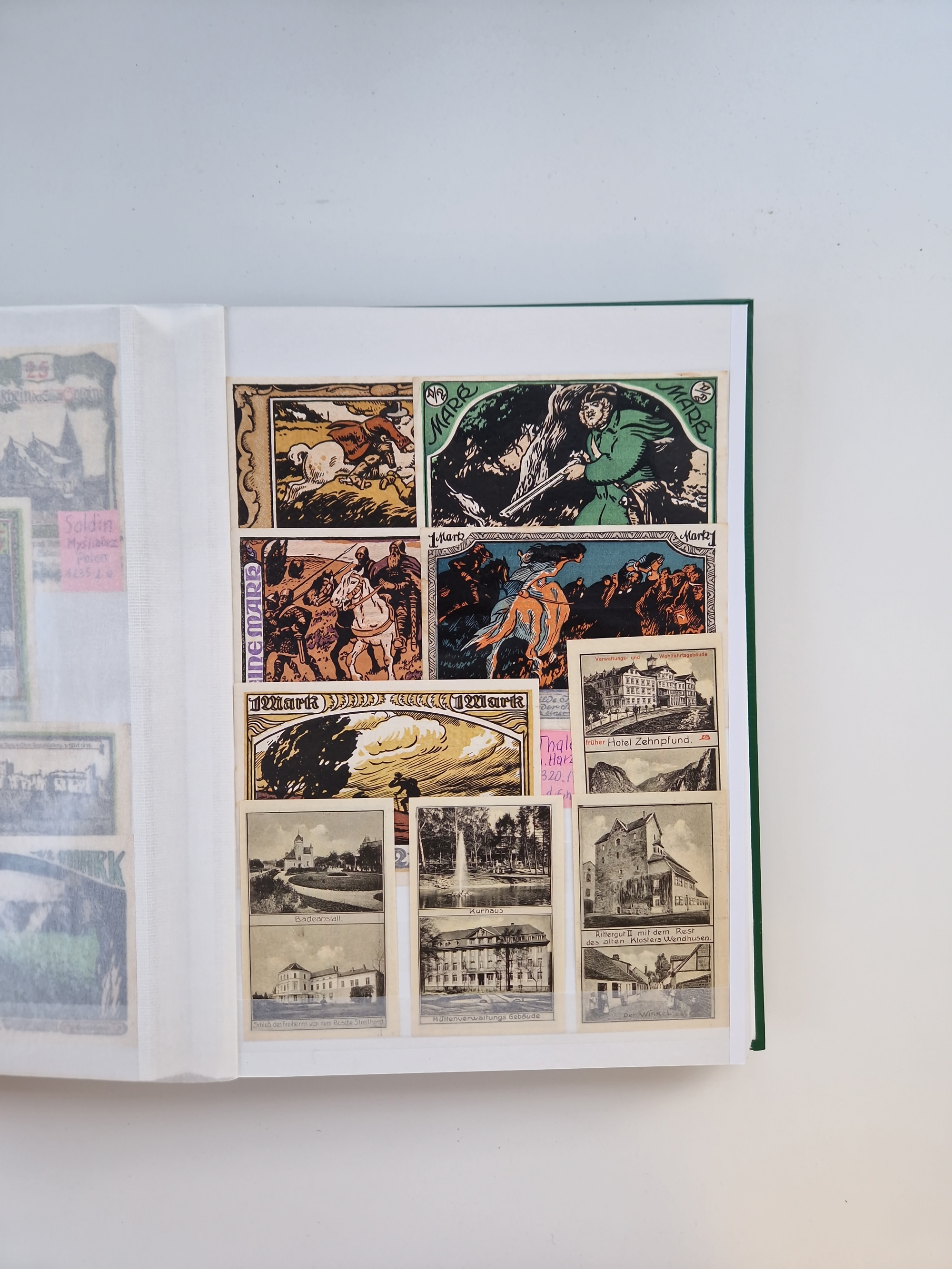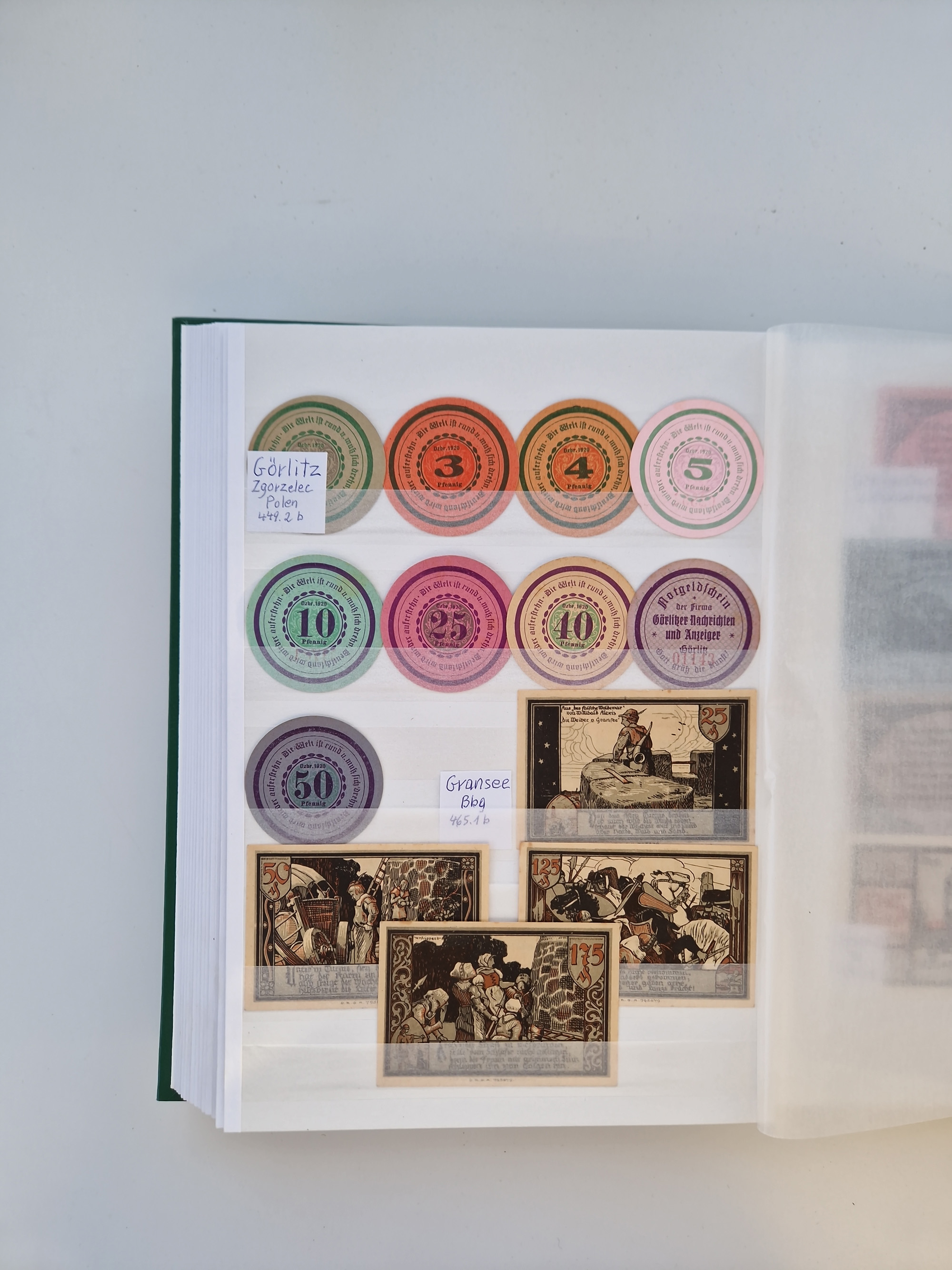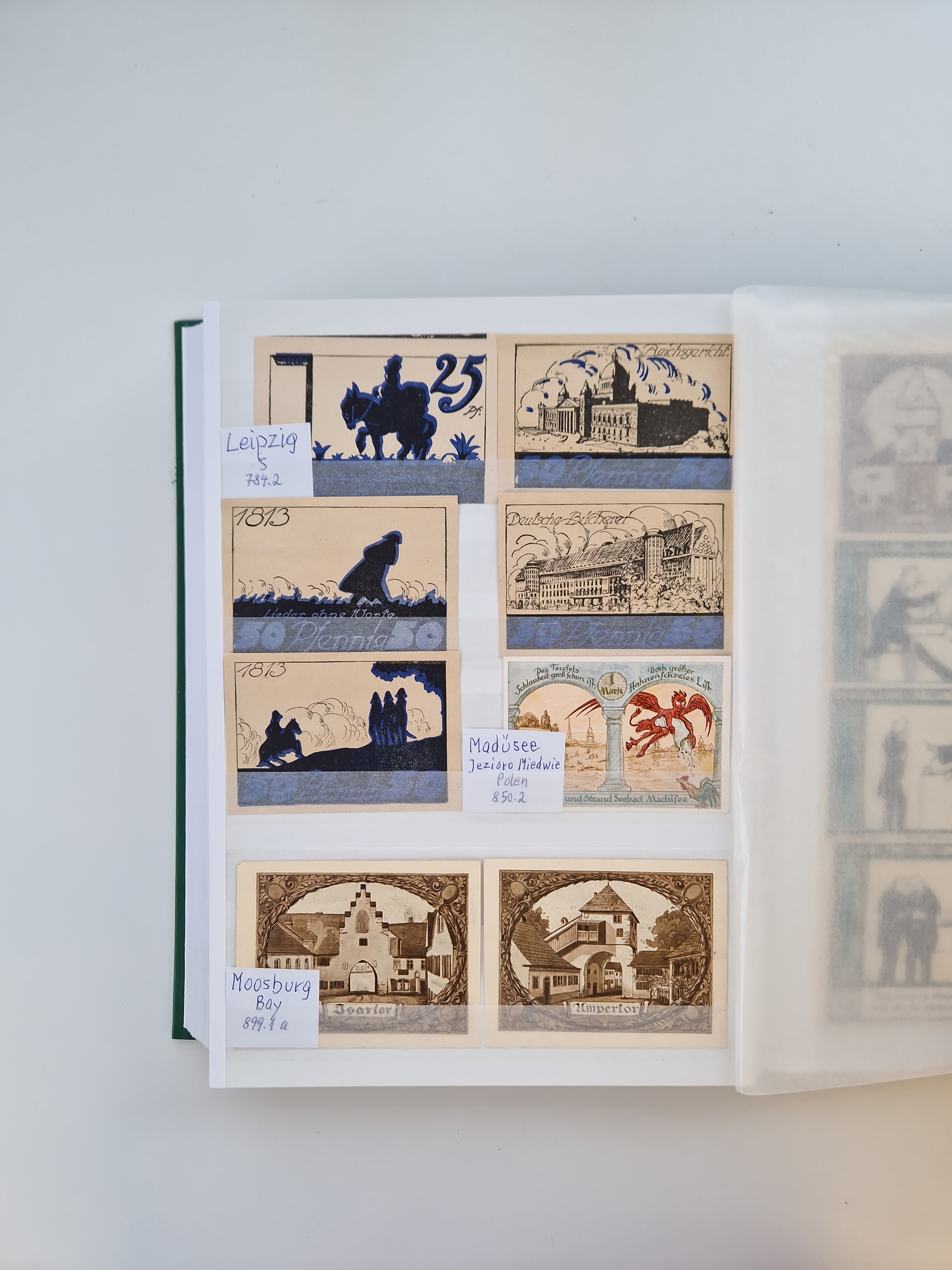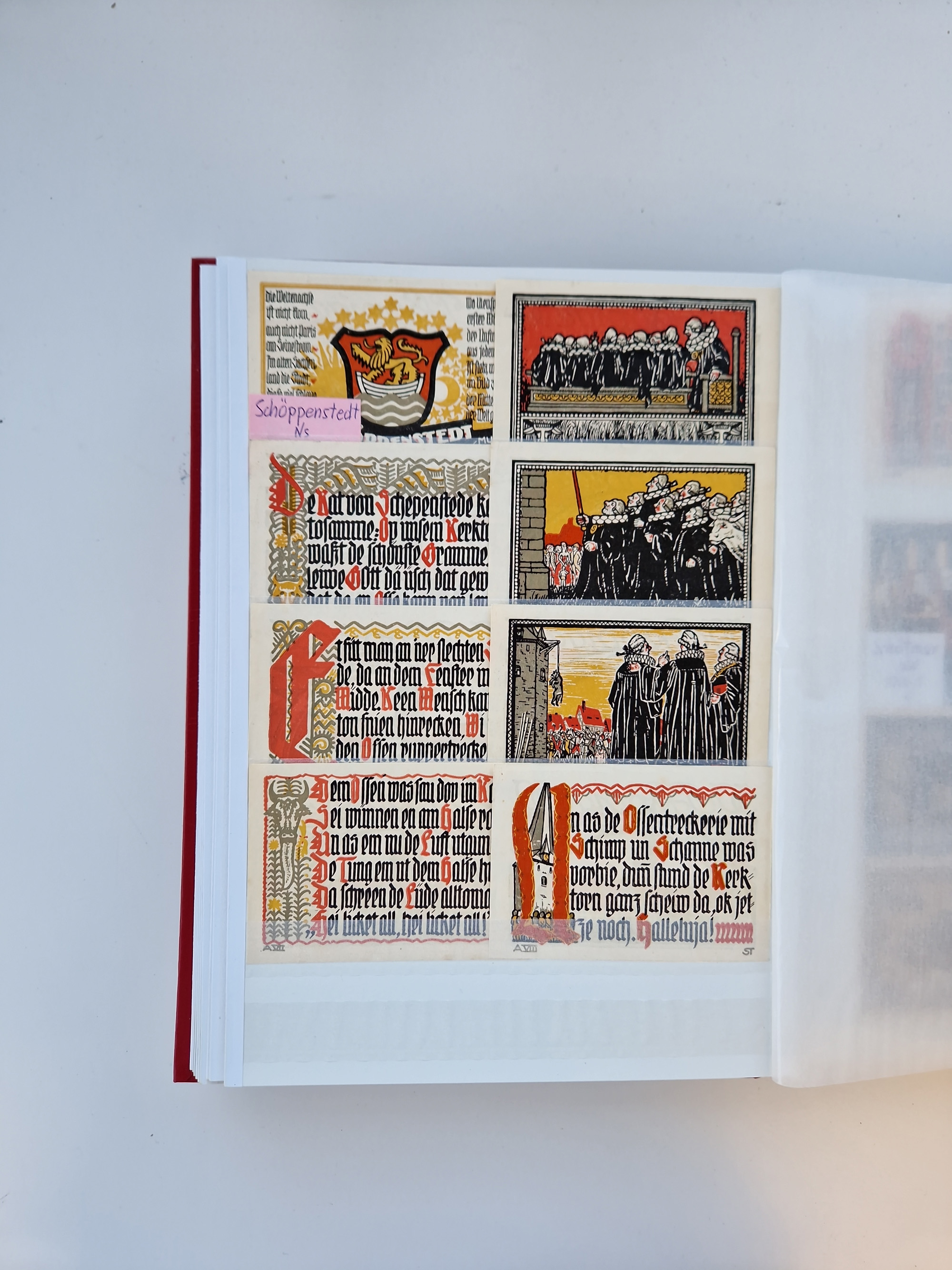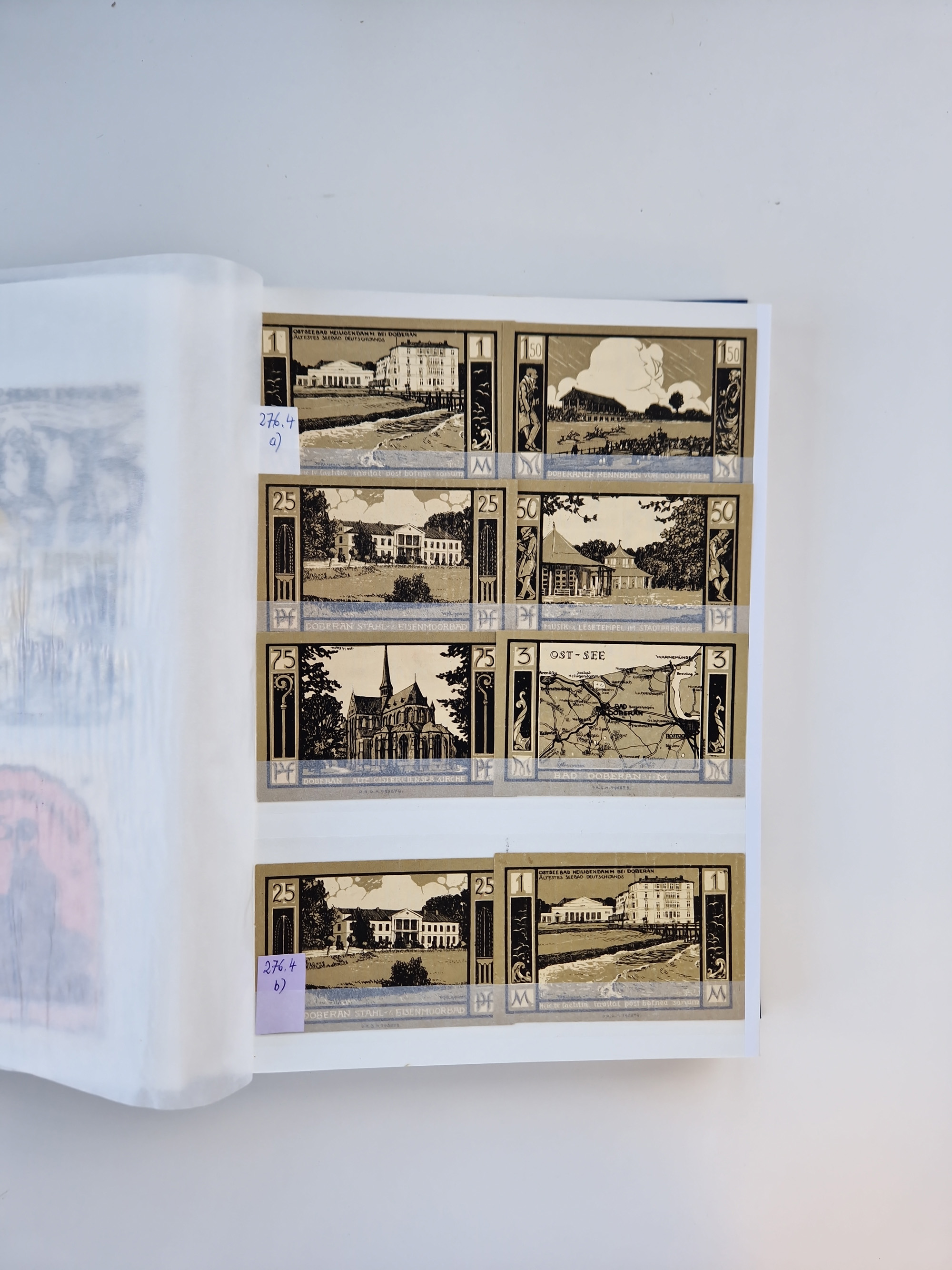 Notgeld-Serienscheine, saubere Sammlung in 16 meist dicken Steckalben, sauber nach Orten und Serien sortiert, überschlägig etwa 7/8000 Stück, dazu 4 Kataloge