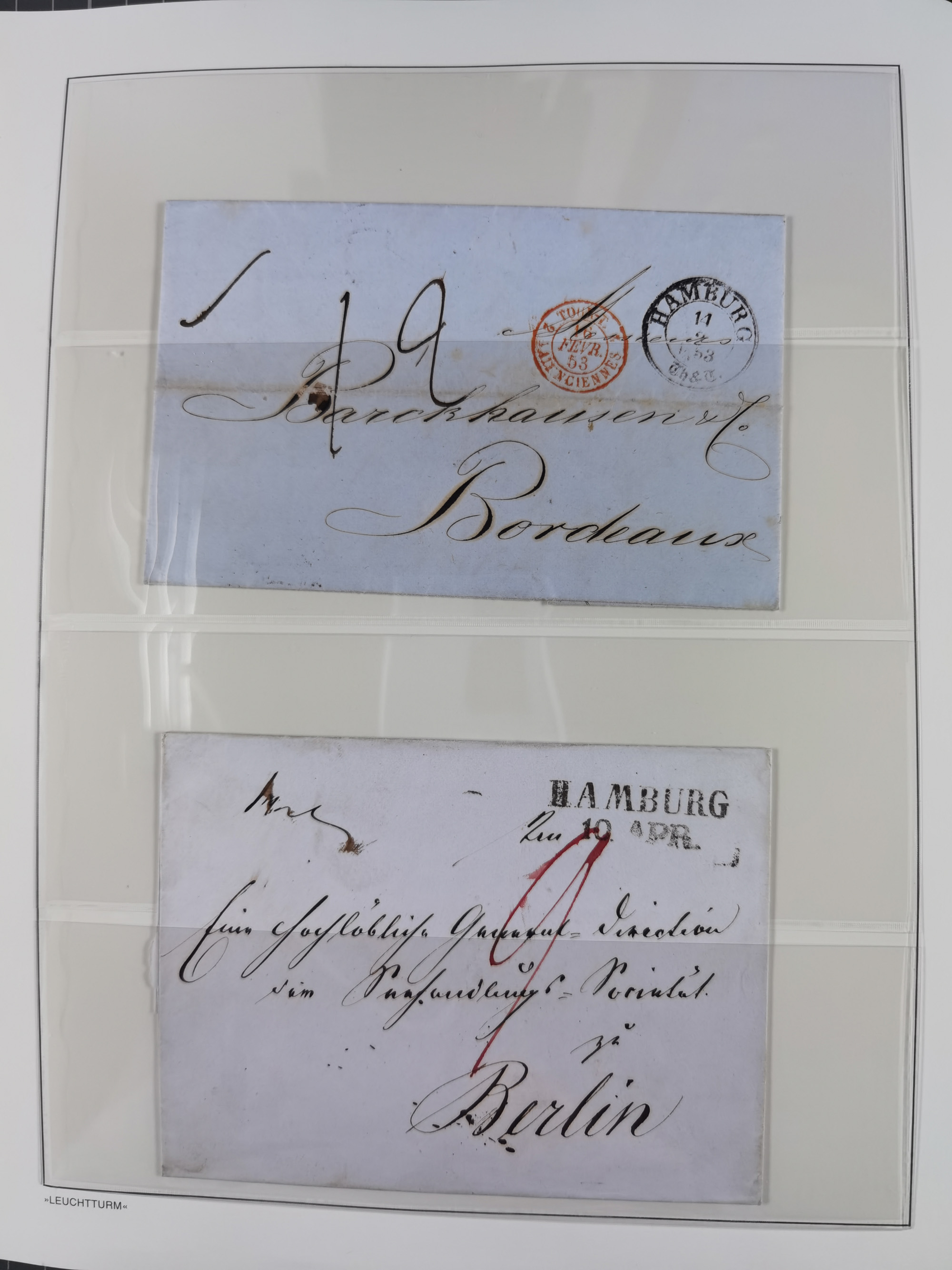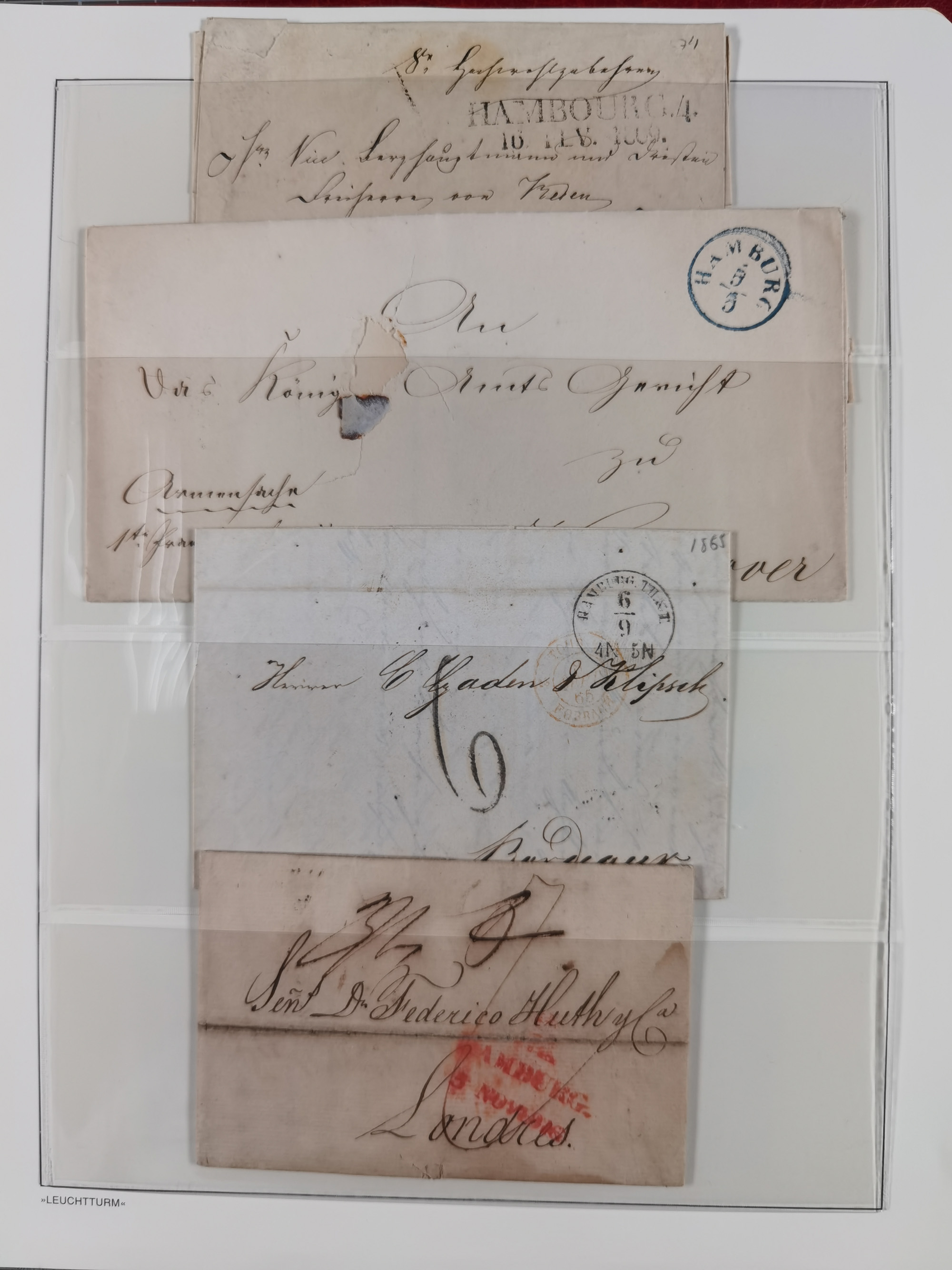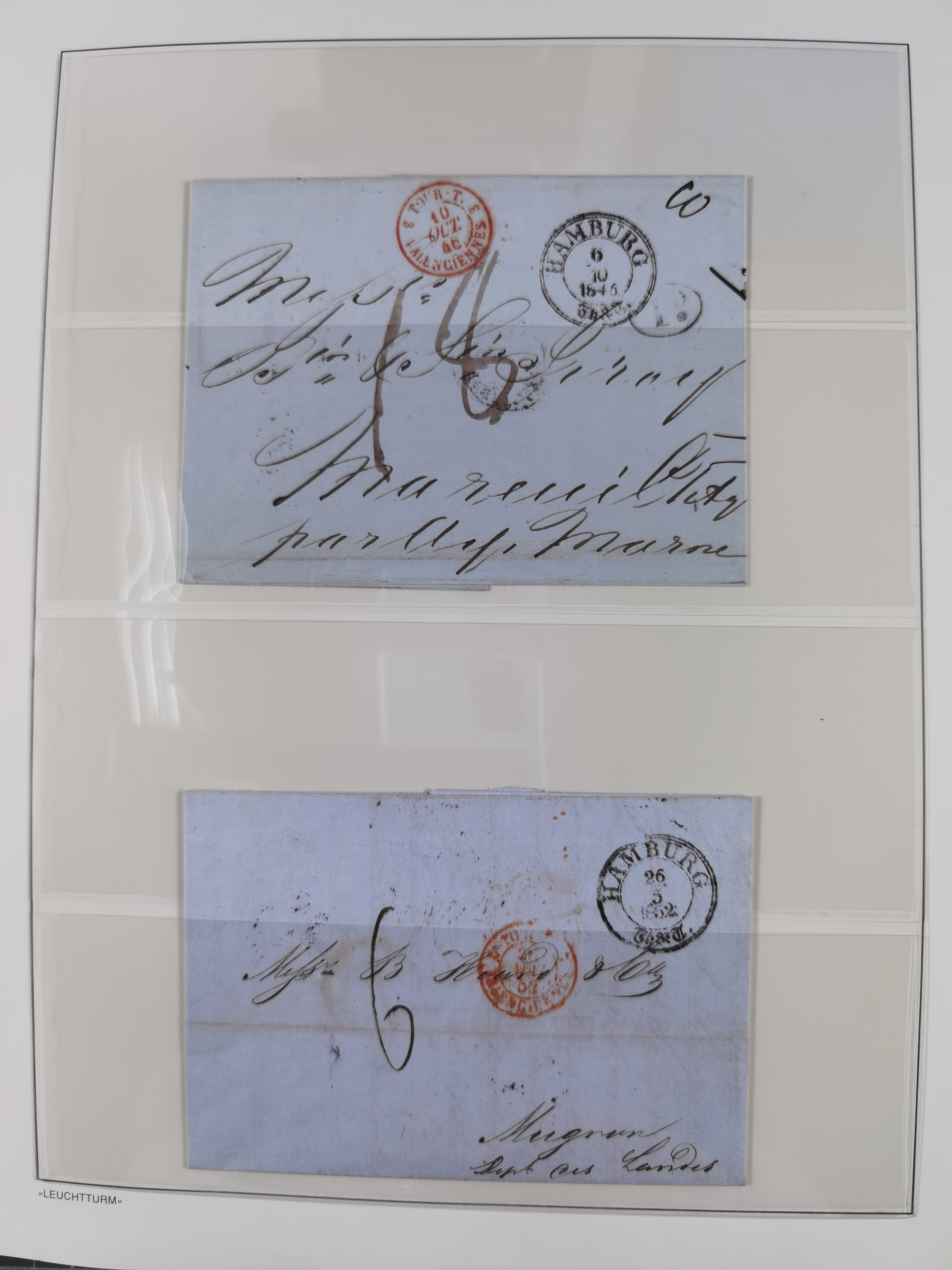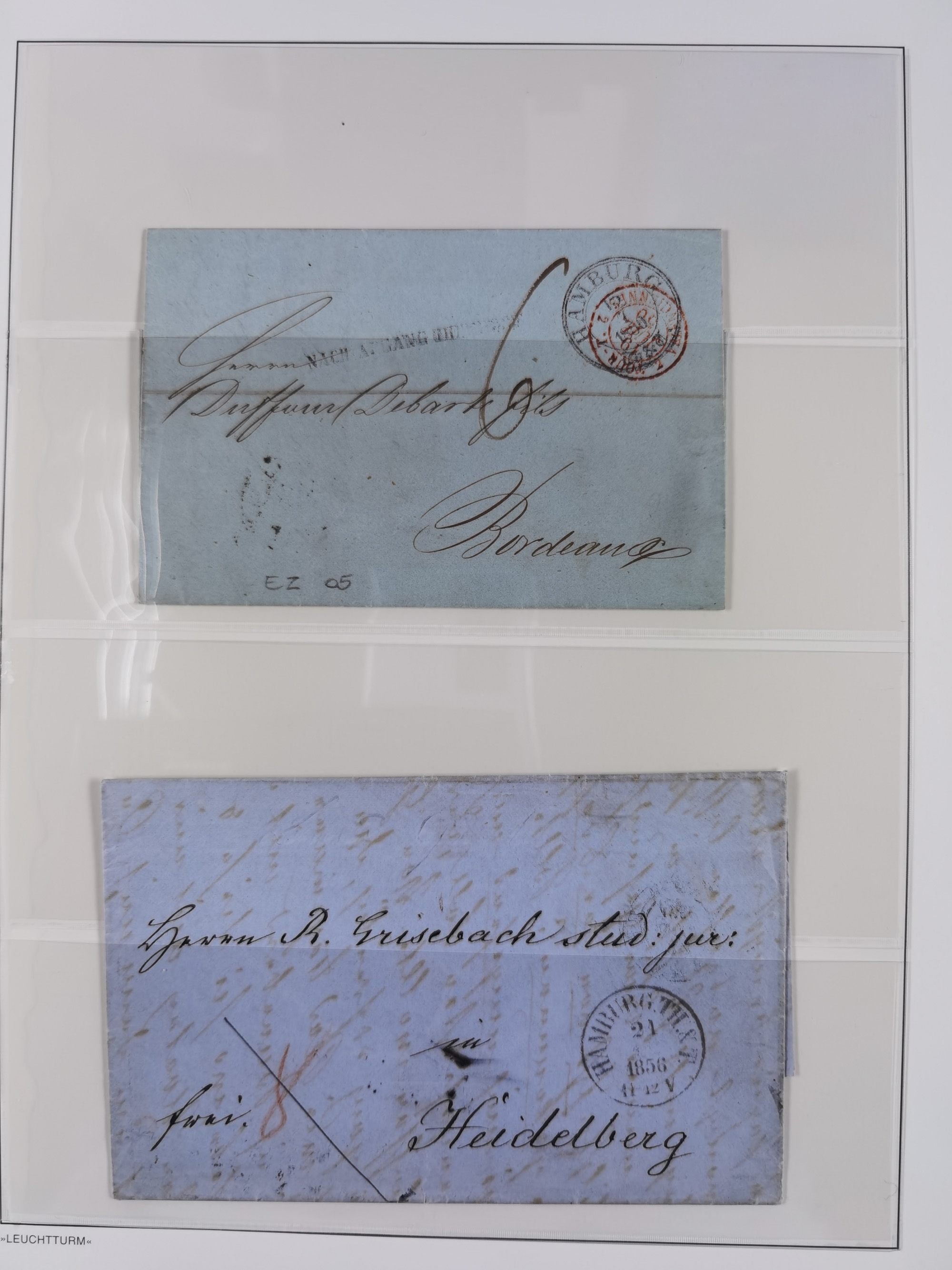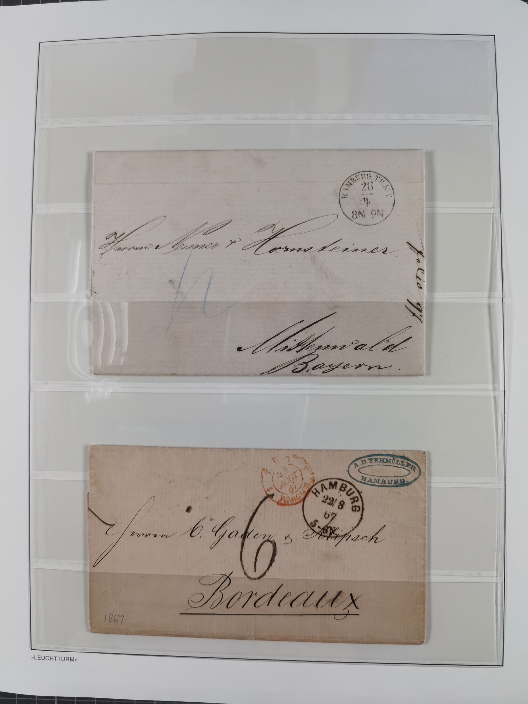 1859/1879, kleine Sammlung mit 26 Briefen von Hamburg bzw. im Transit sowie in den USA, dabei bessere Tax- Stempel, frankierte Post aus USA, diverse Leitvermerke usw., meist in guter Erhaltung