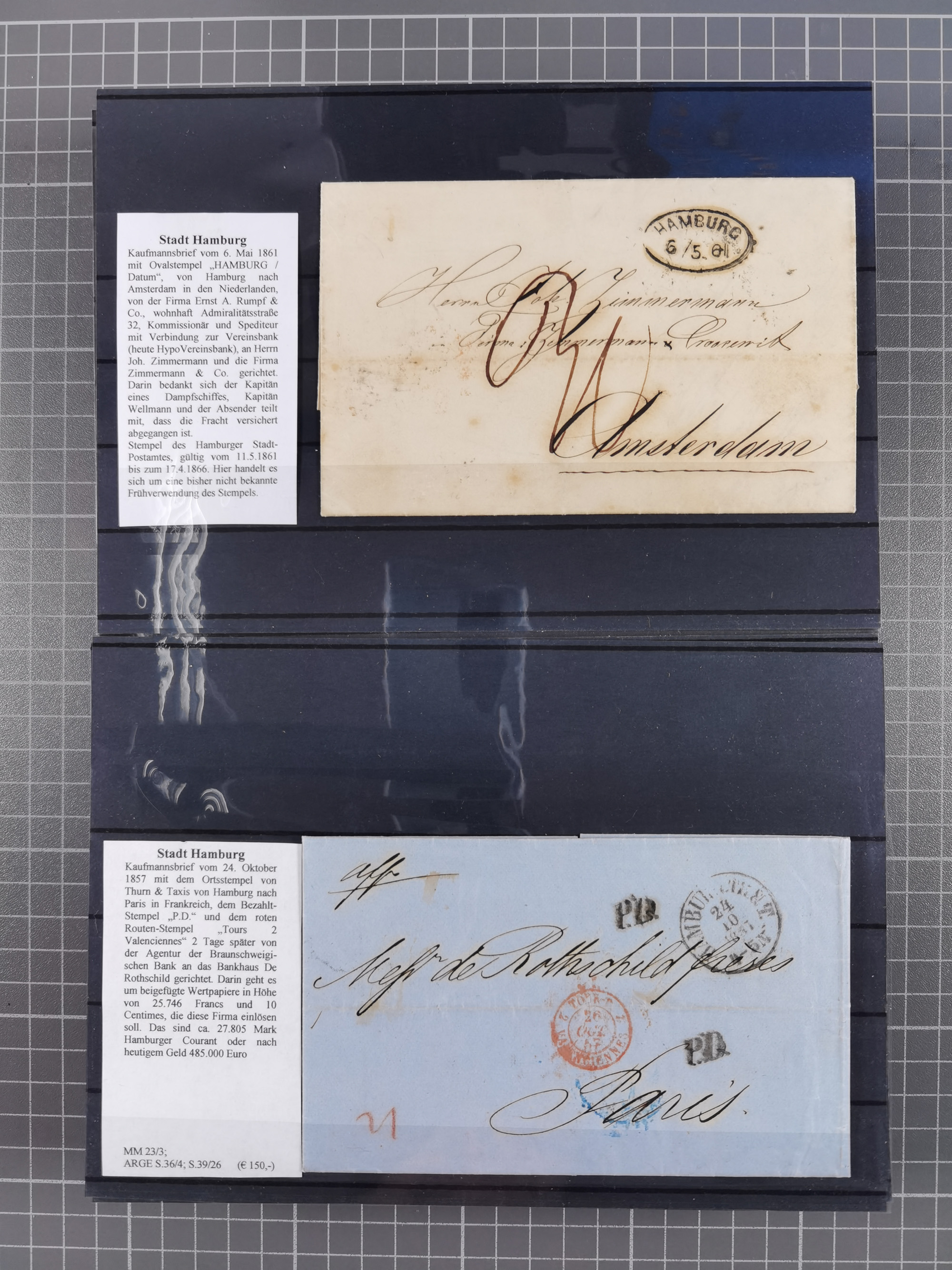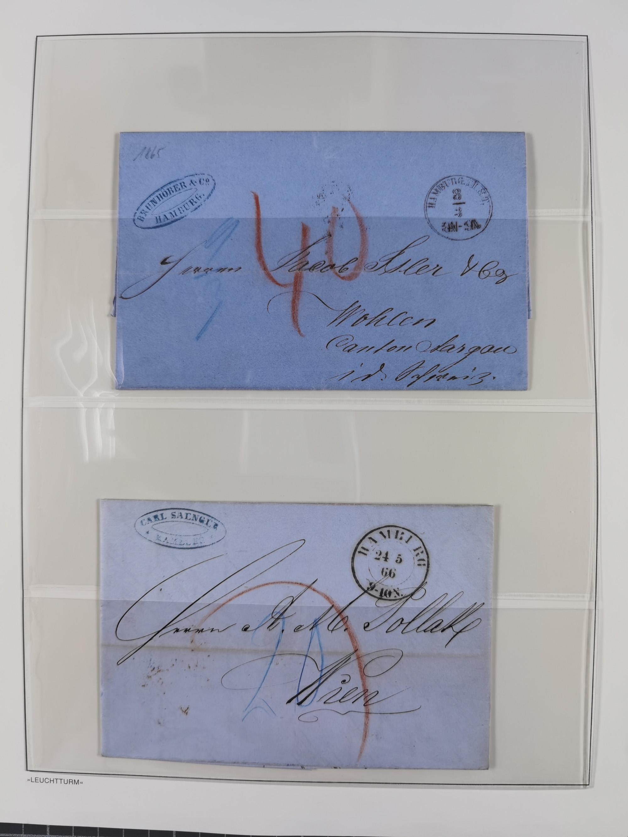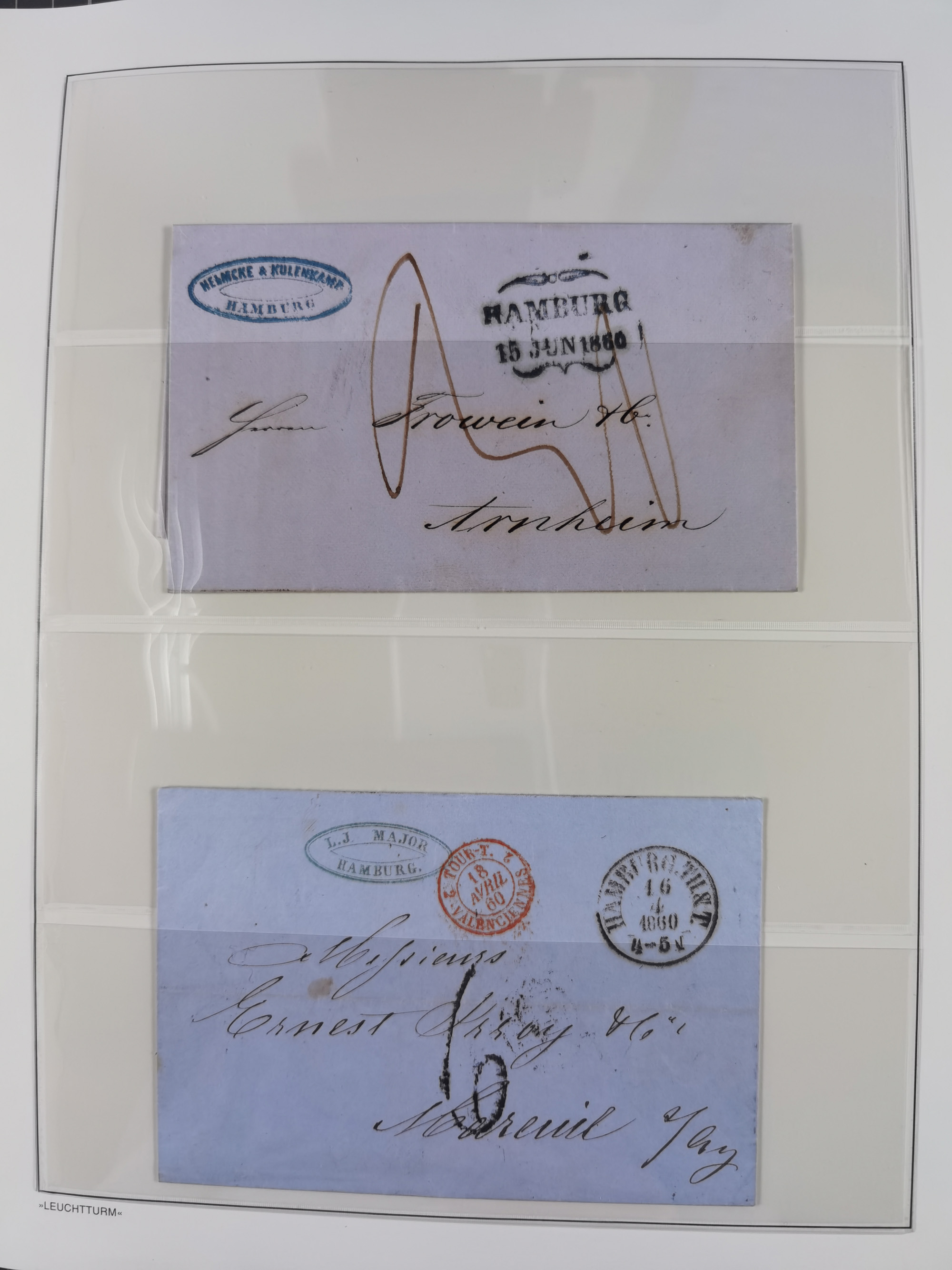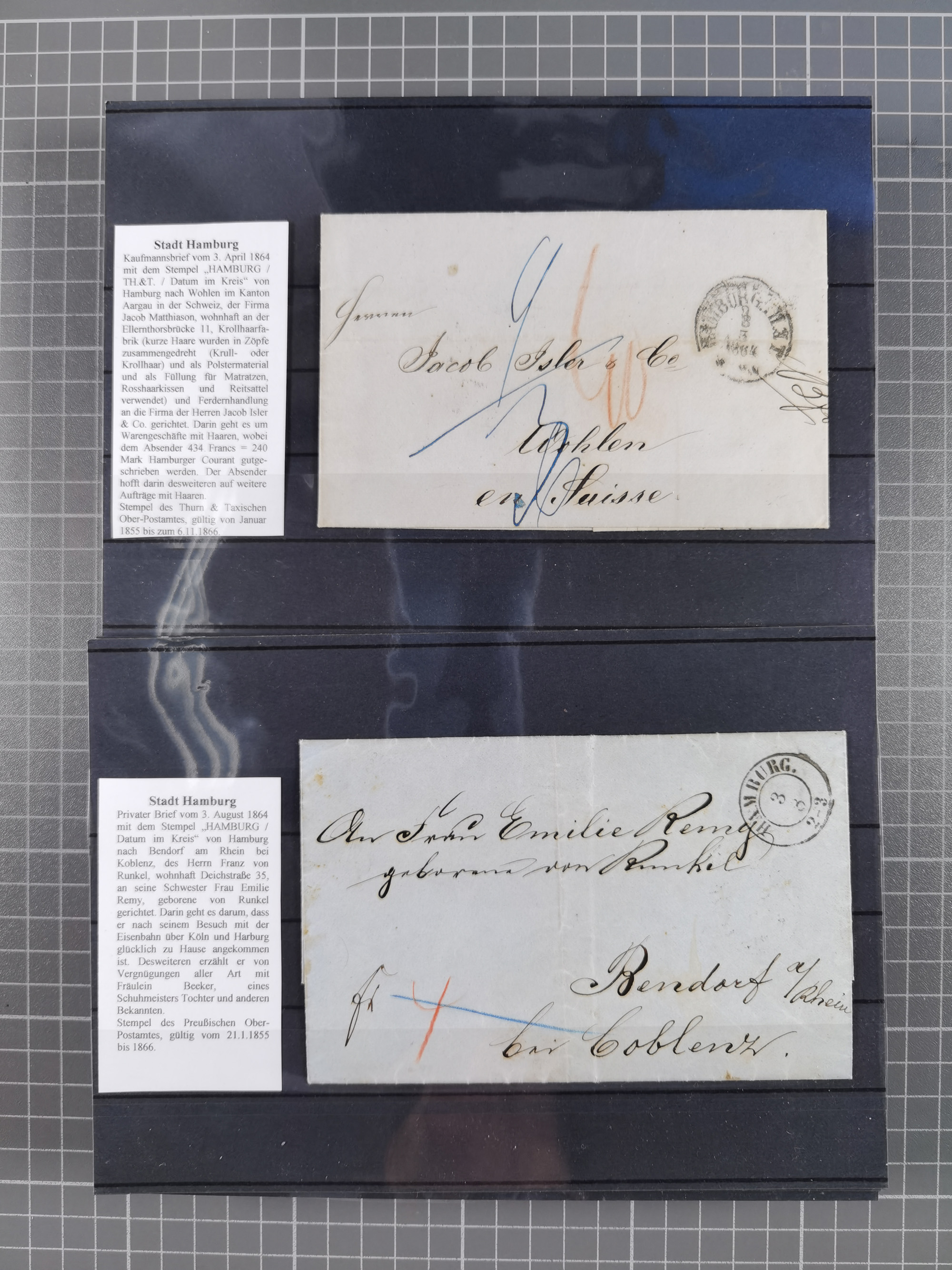 1859/1879, kleine Sammlung mit 26 Briefen von Hamburg bzw. im Transit sowie in den USA, dabei bessere Tax- Stempel, frankierte Post aus USA, diverse Leitvermerke usw., meist in guter Erhaltung