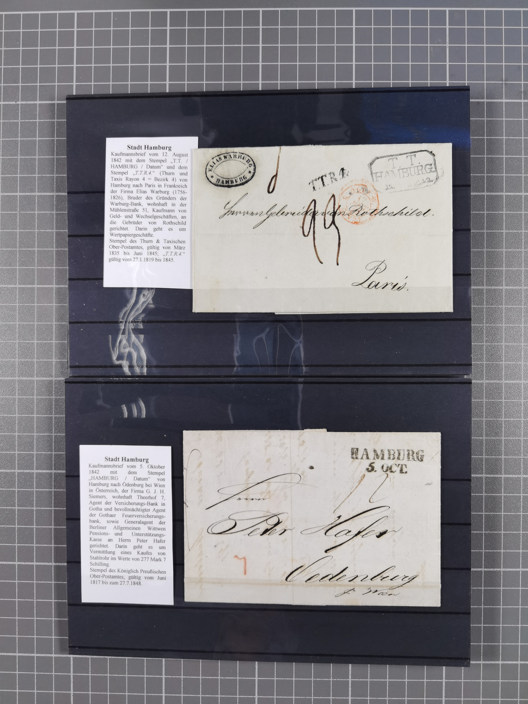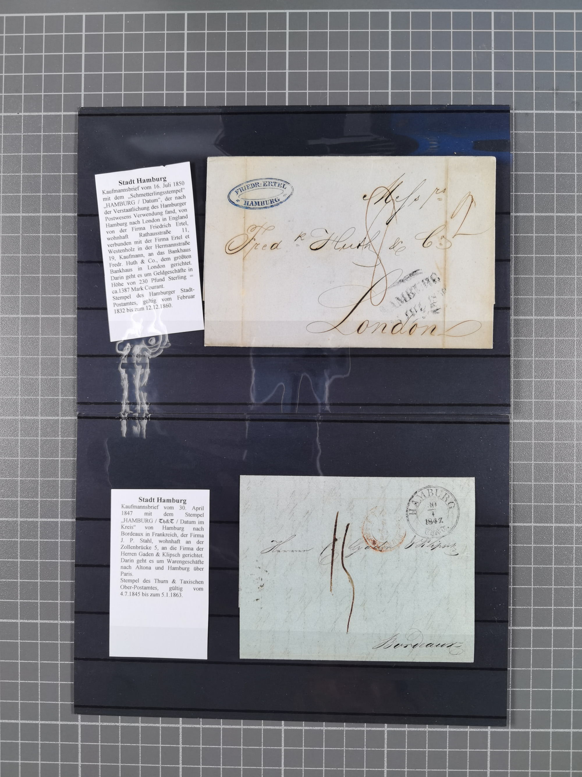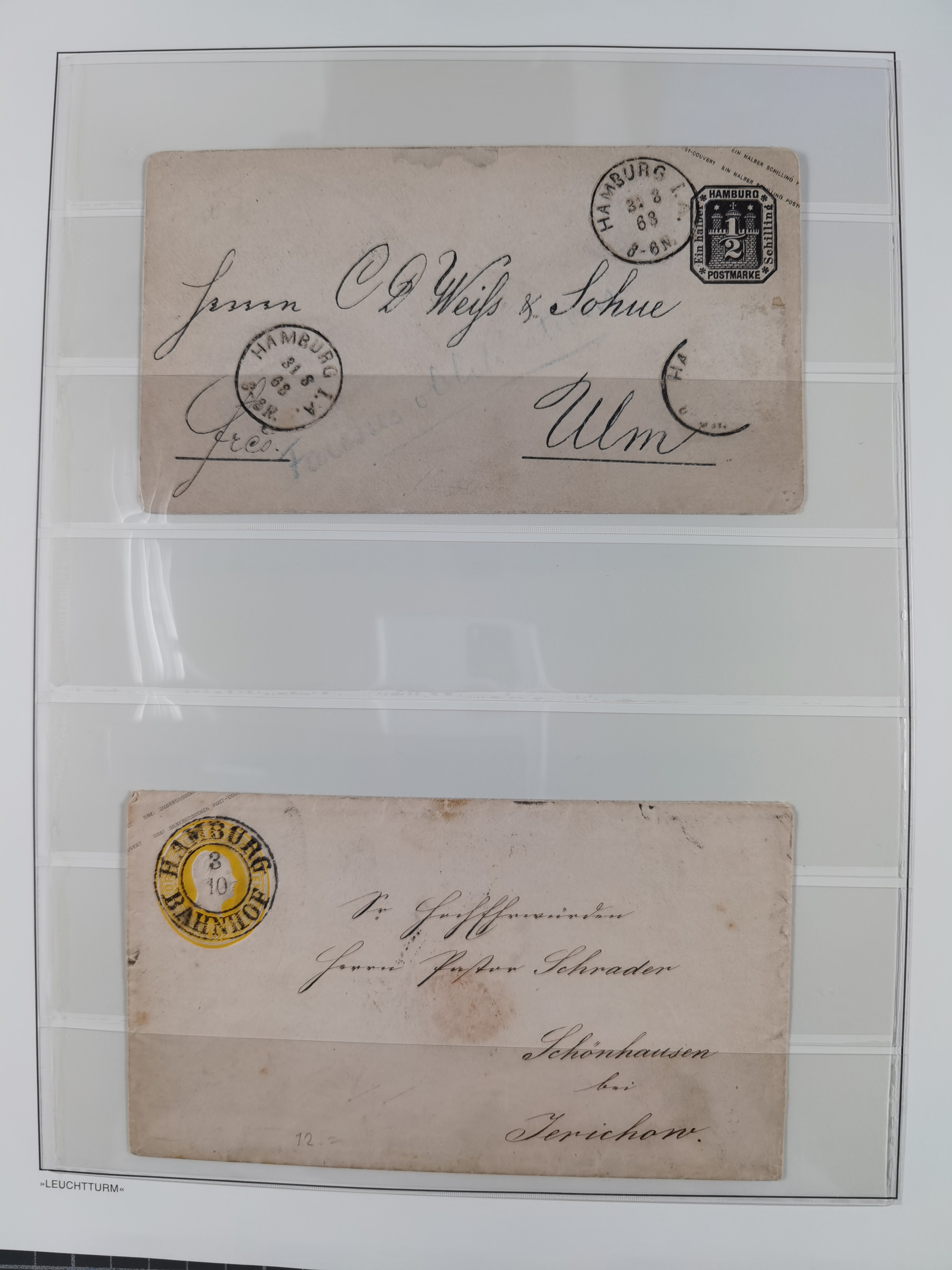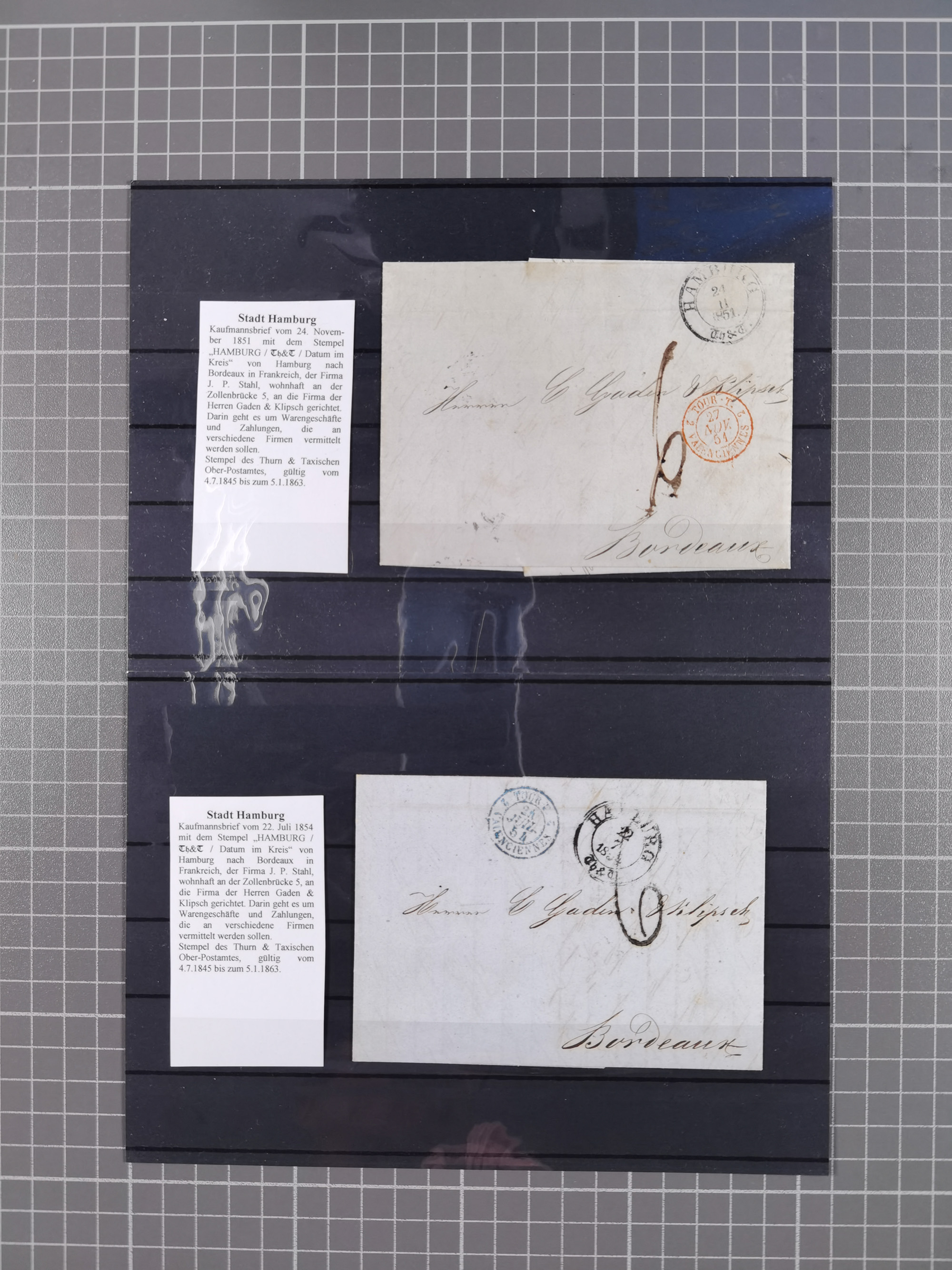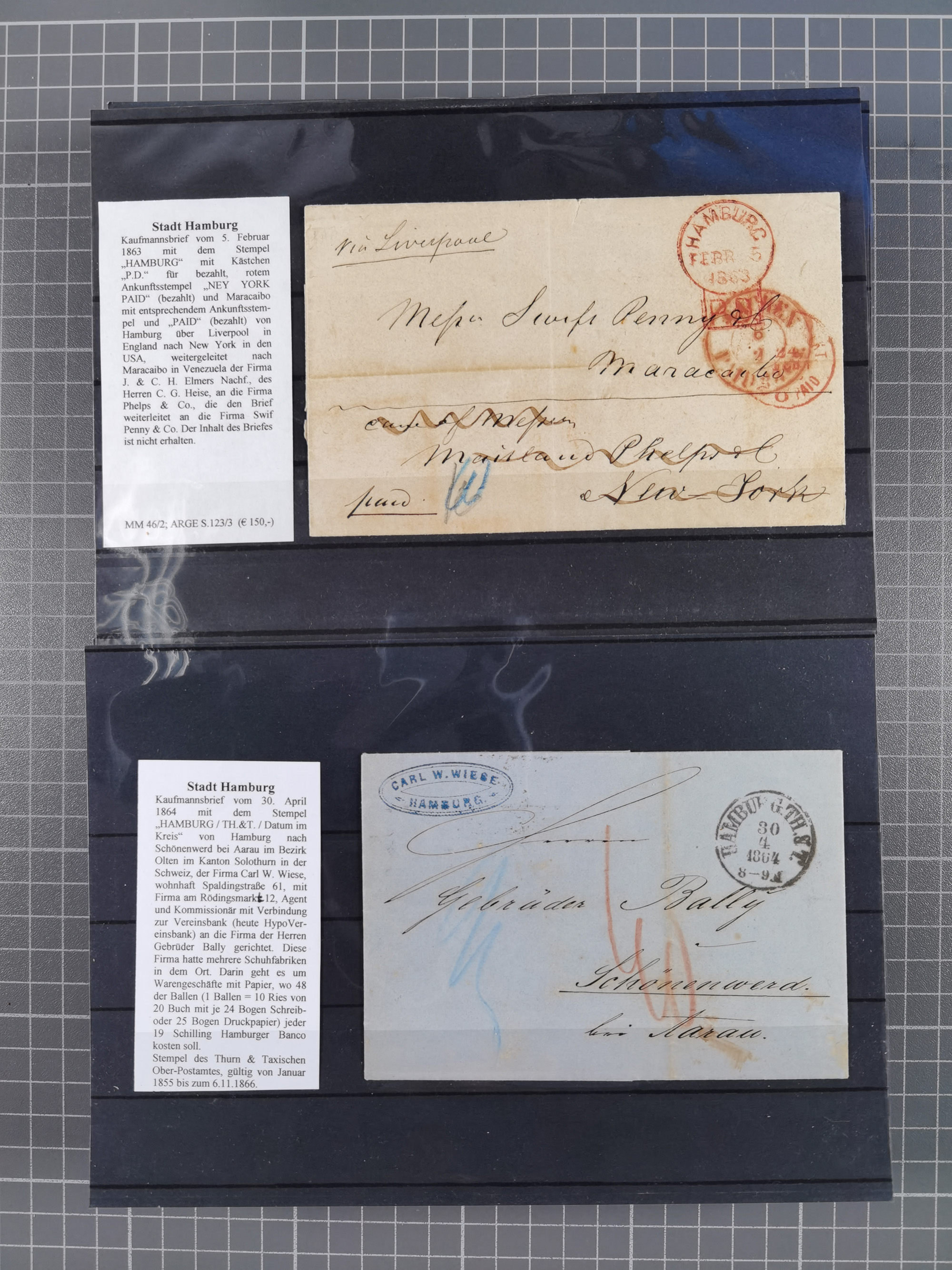 1859/1879, kleine Sammlung mit 26 Briefen von Hamburg bzw. im Transit sowie in den USA, dabei bessere Tax- Stempel, frankierte Post aus USA, diverse Leitvermerke usw., meist in guter Erhaltung