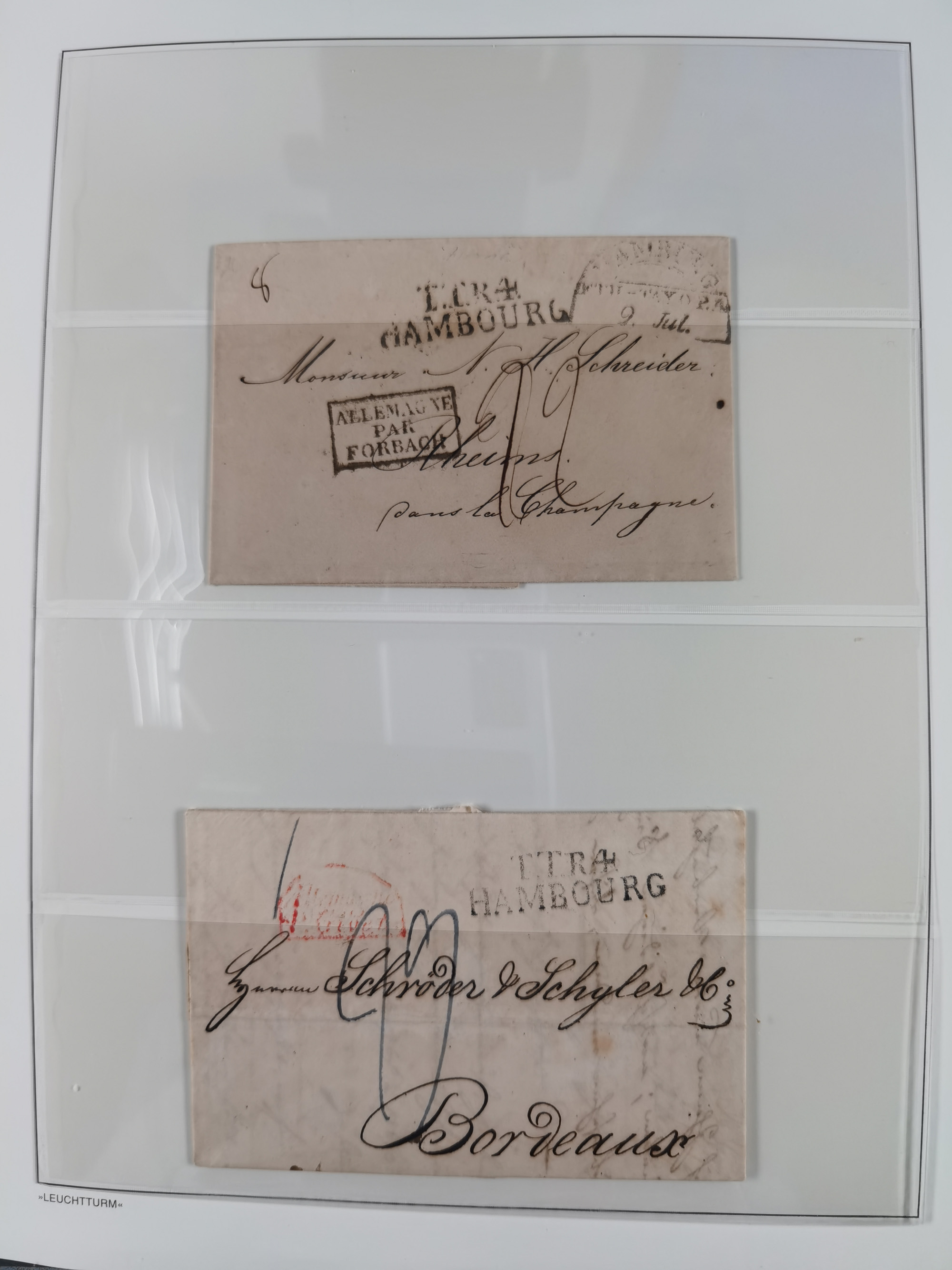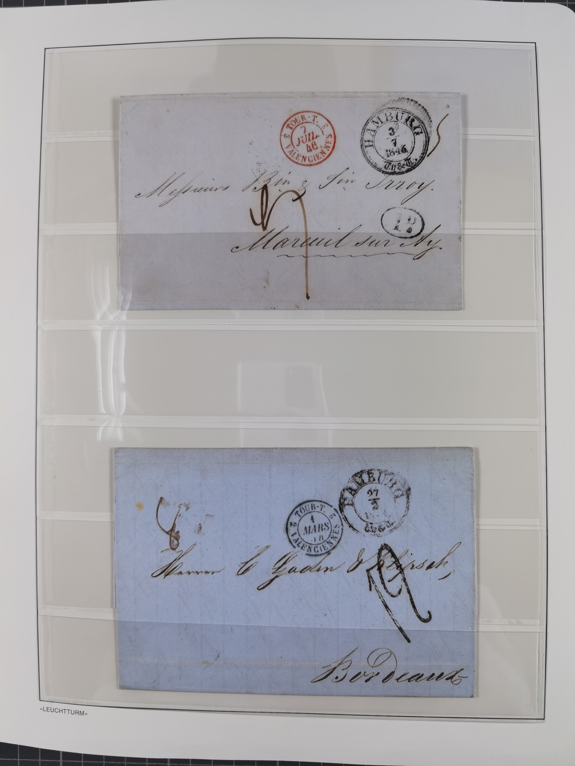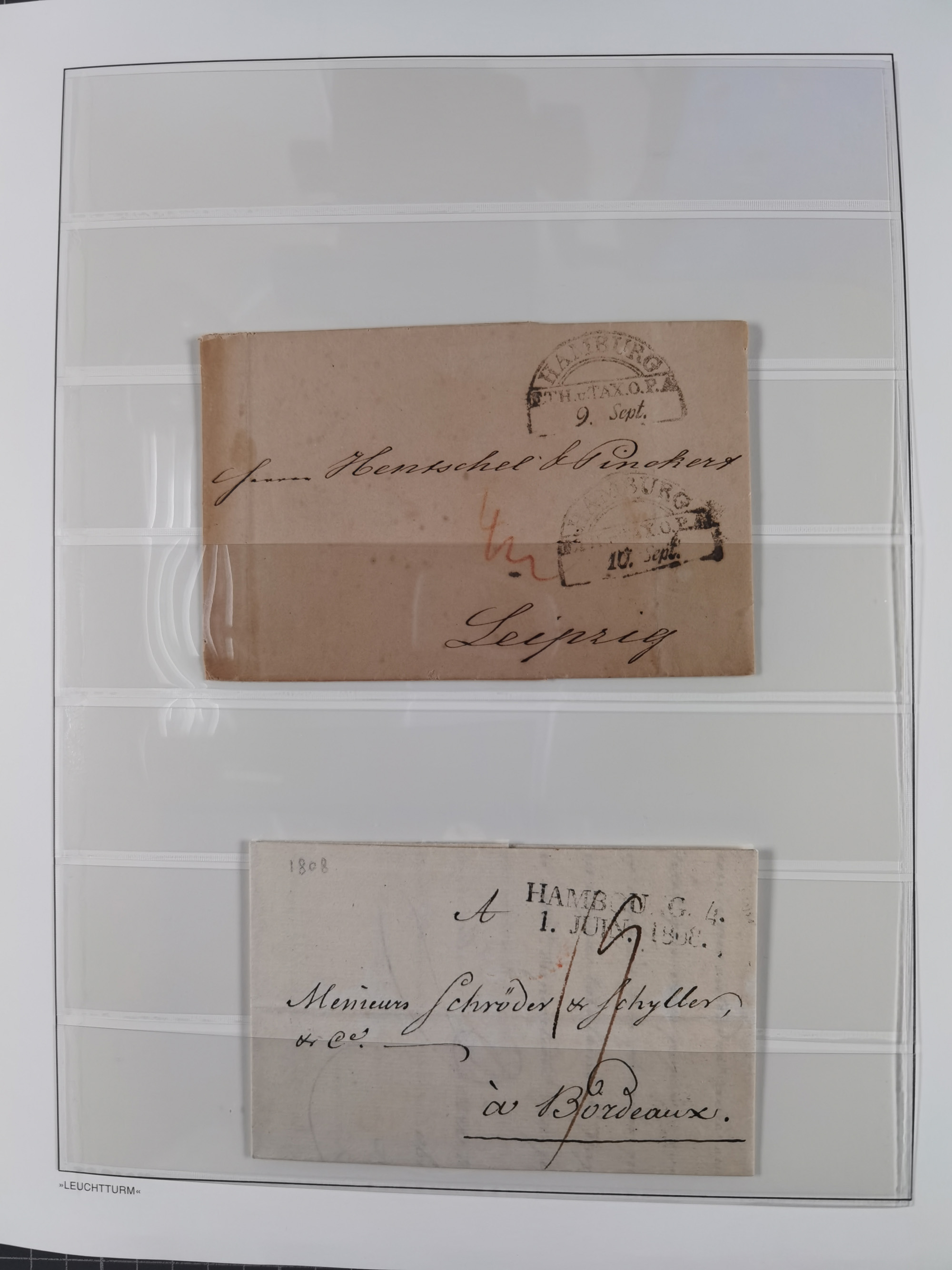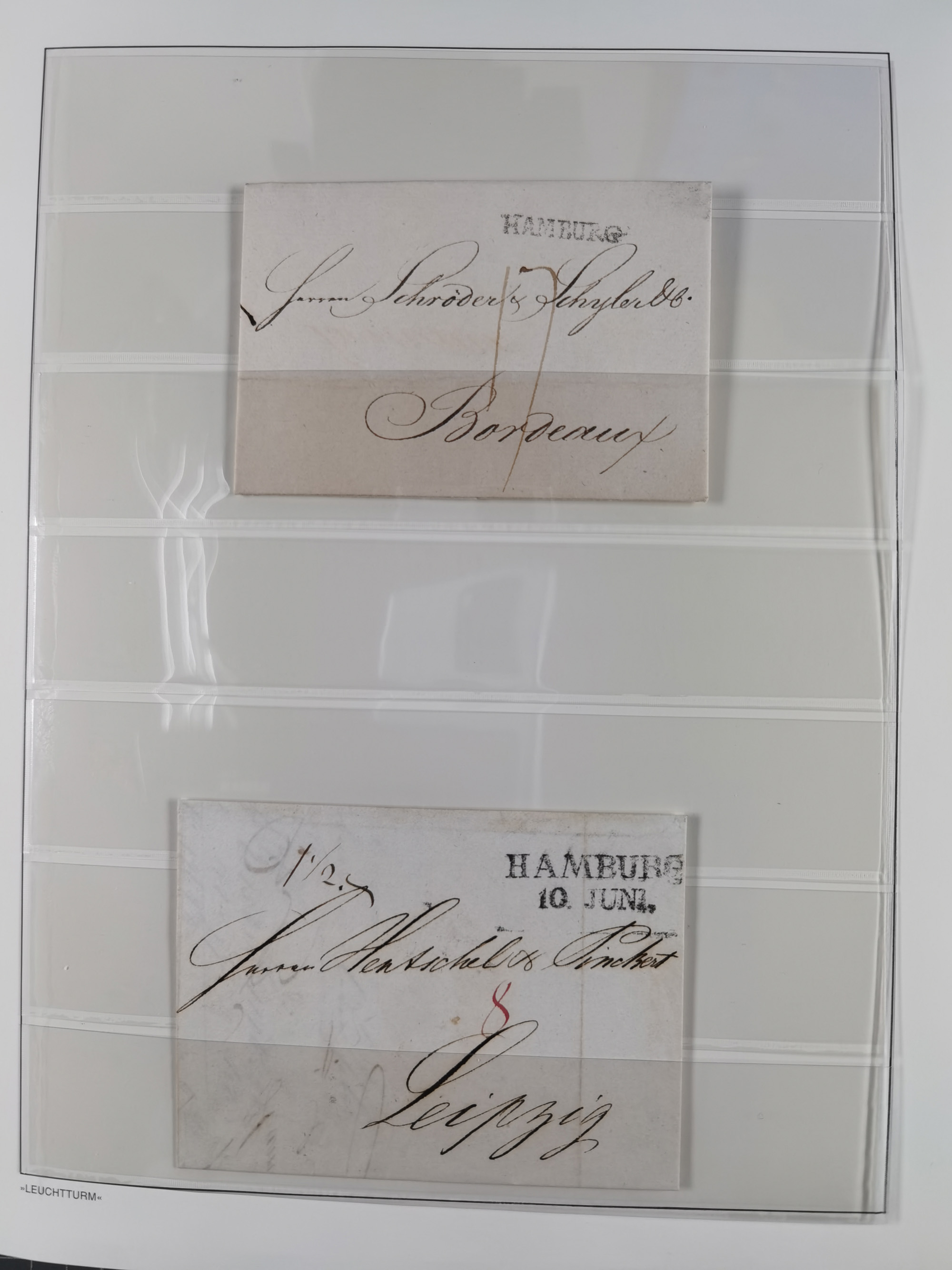 1785/1843 (ca.), kleine Partie mit 12 Vorphila-Briefe, dabei “128 HAMBURG” (x2), “T.T. HAMBURG 13 Dec.43.”, etc., meist in sehr guter Erhaltung