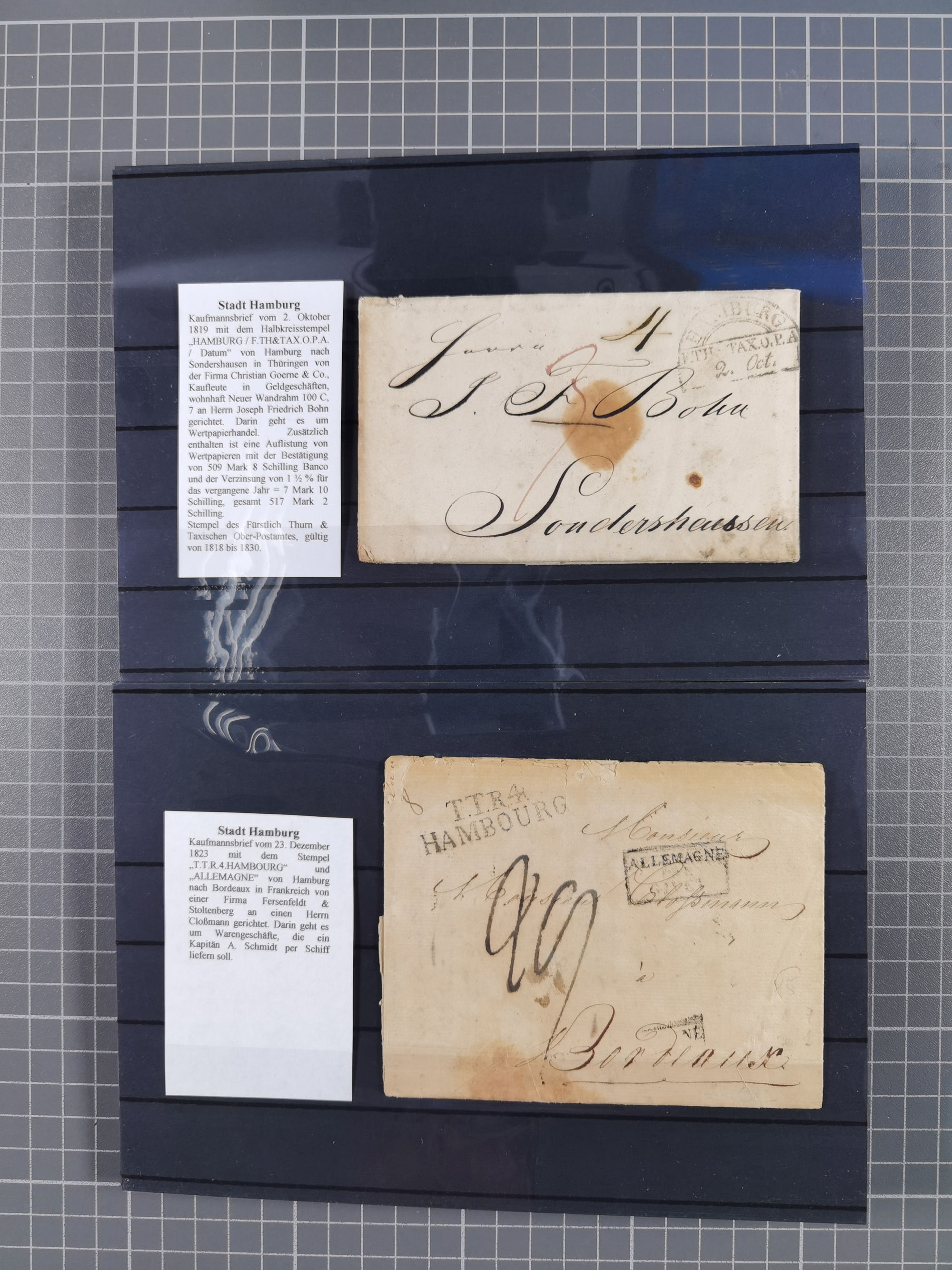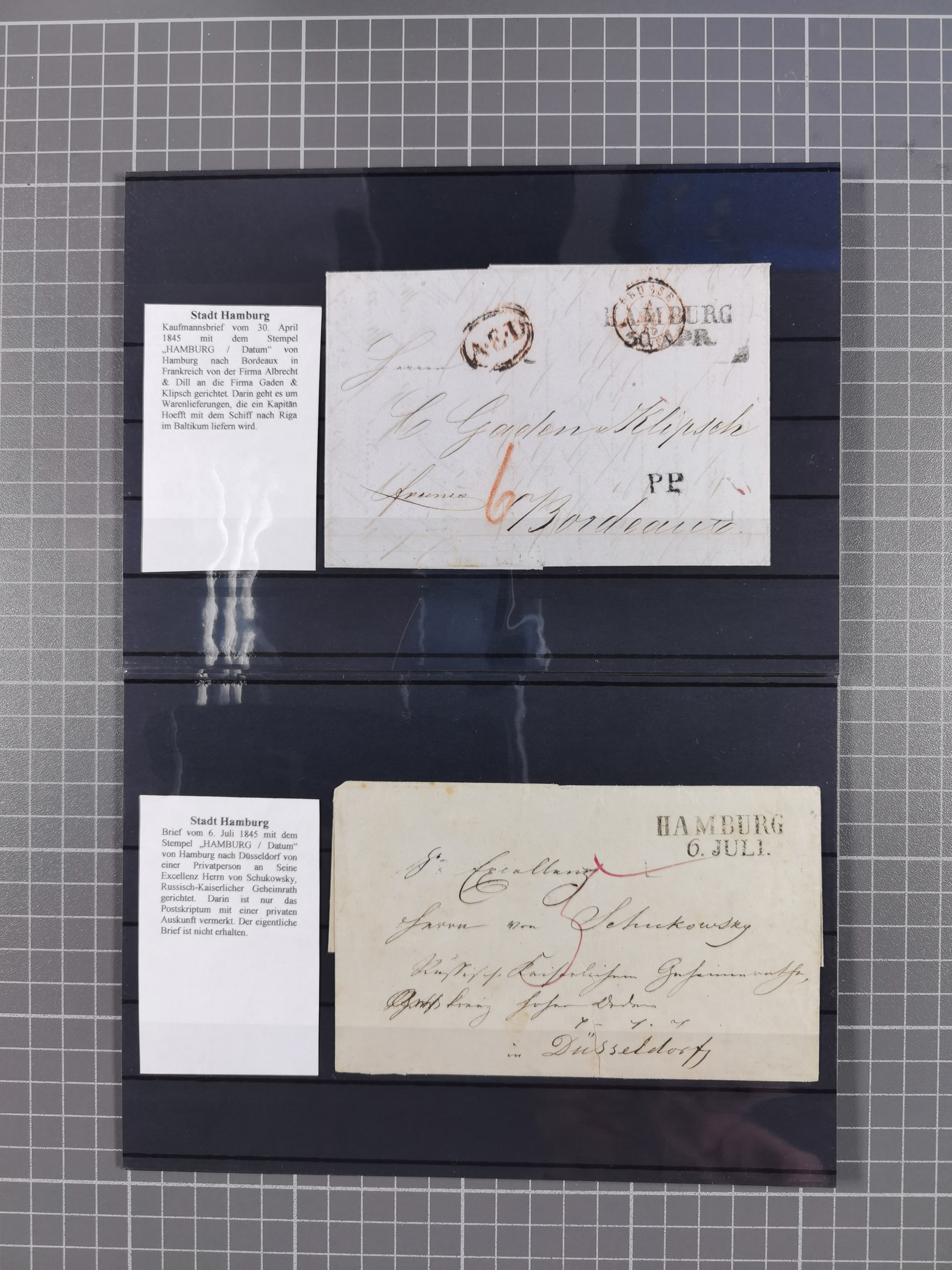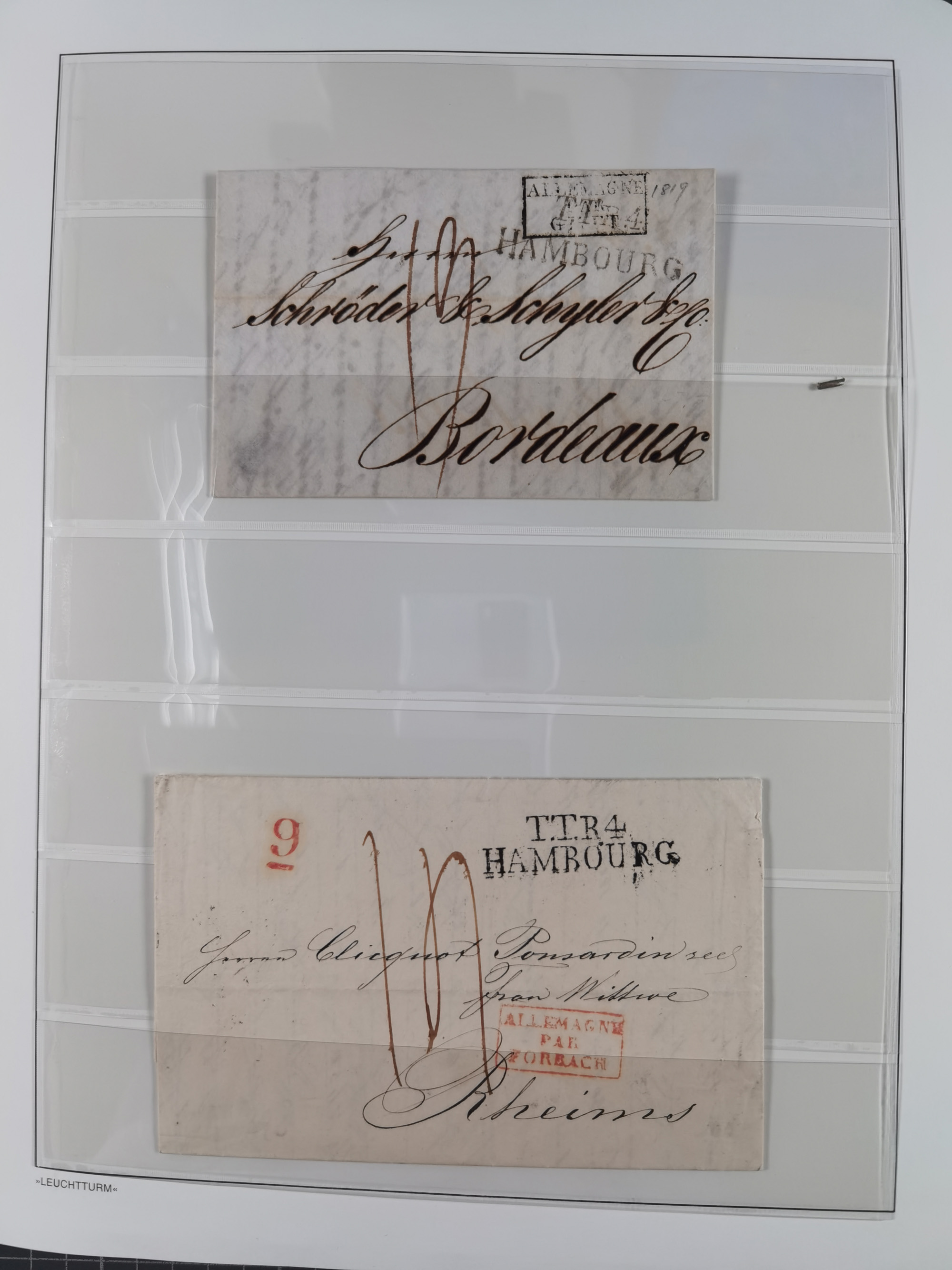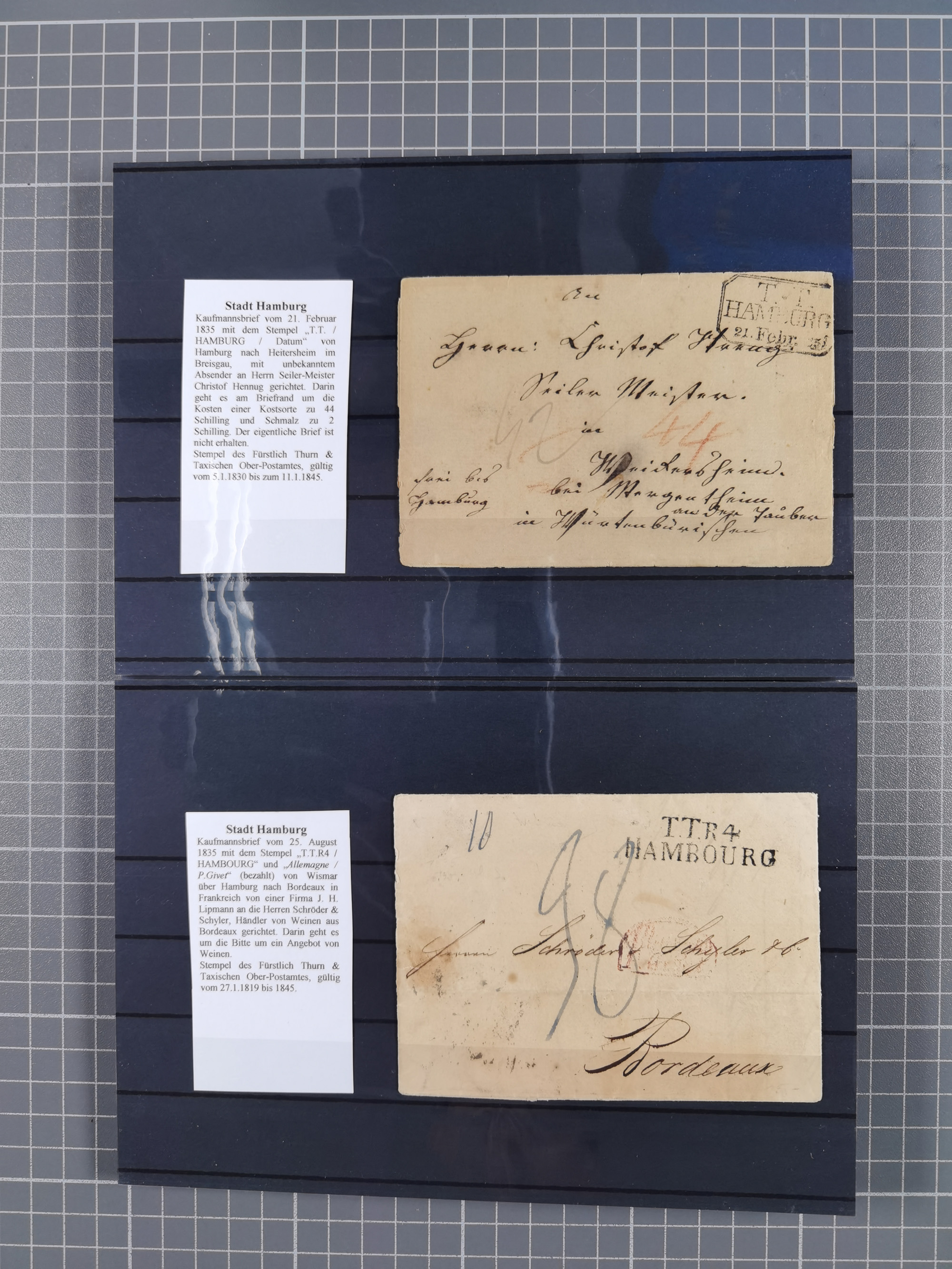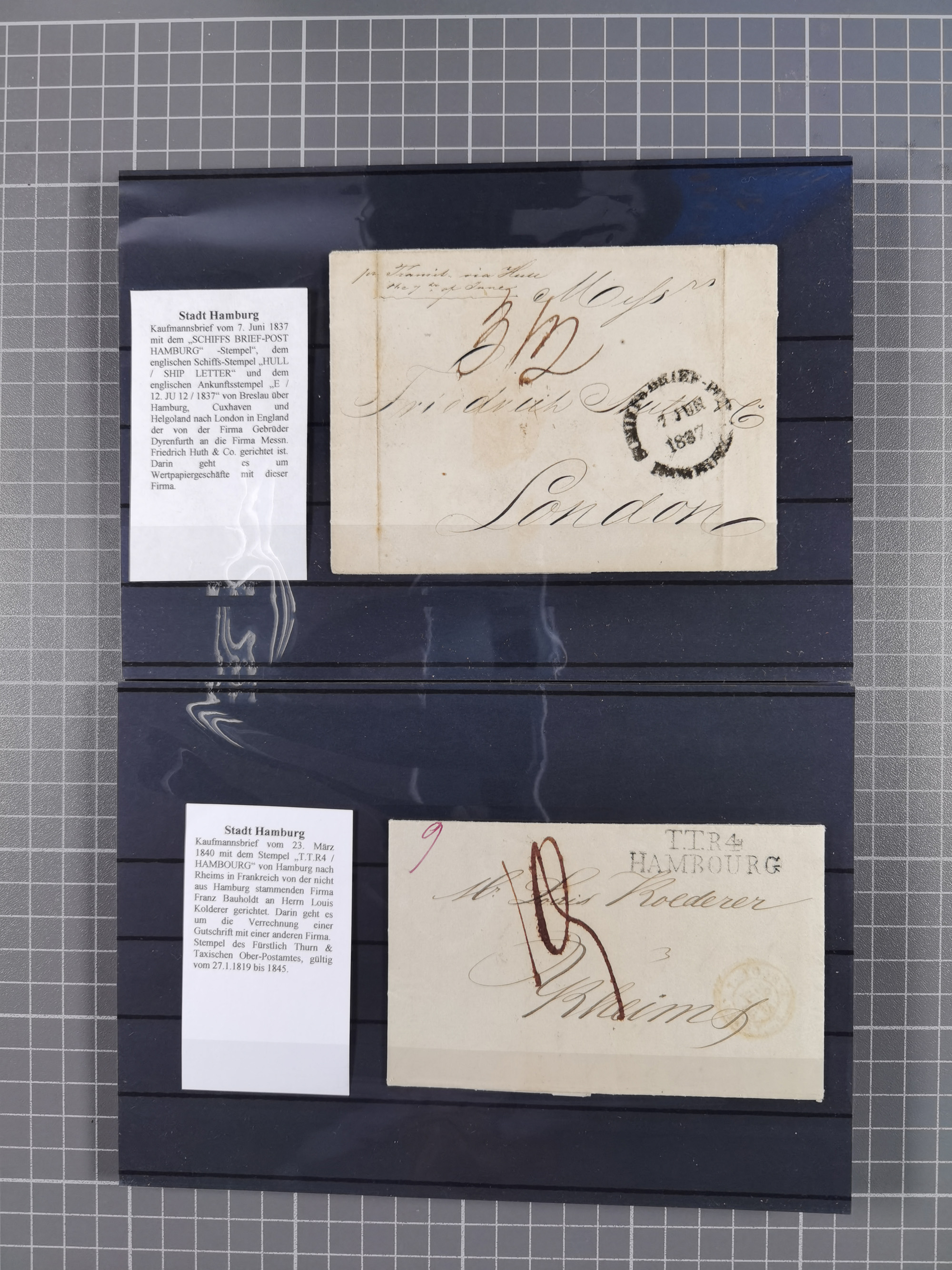1785/1843 (ca.), kleine Partie mit 12 Vorphila-Briefe, dabei “128 HAMBURG” (x2), “T.T. HAMBURG 13 Dec.43.”, etc., meist in sehr guter Erhaltung