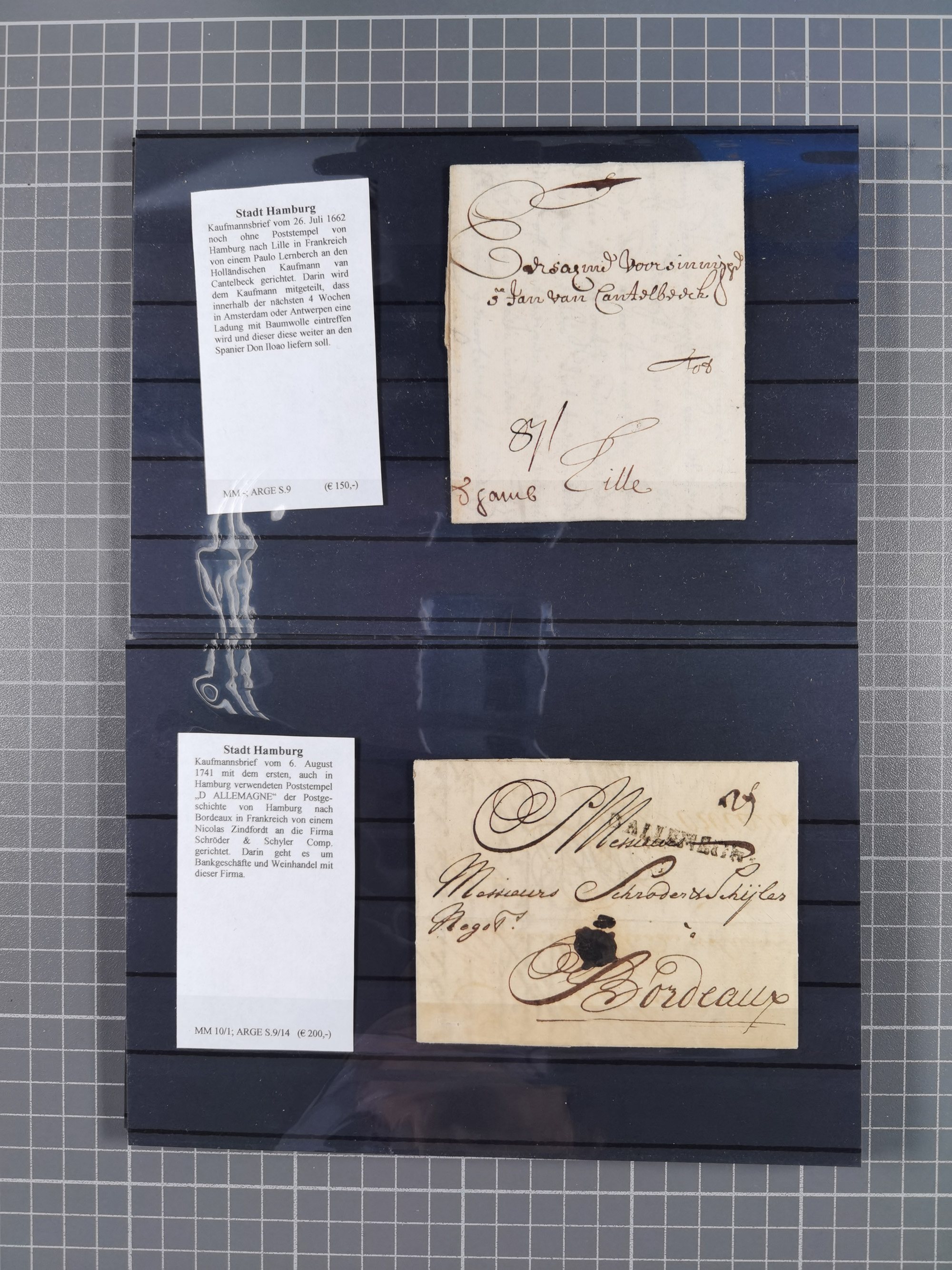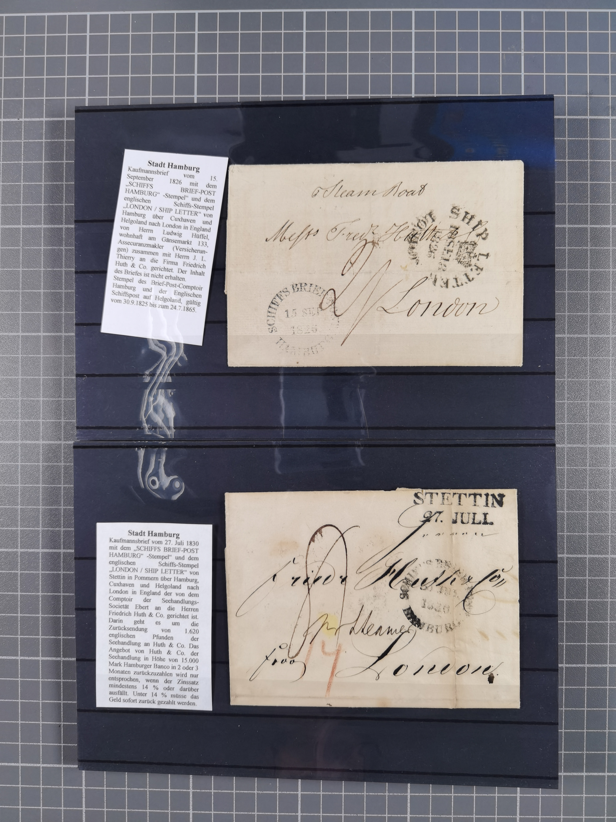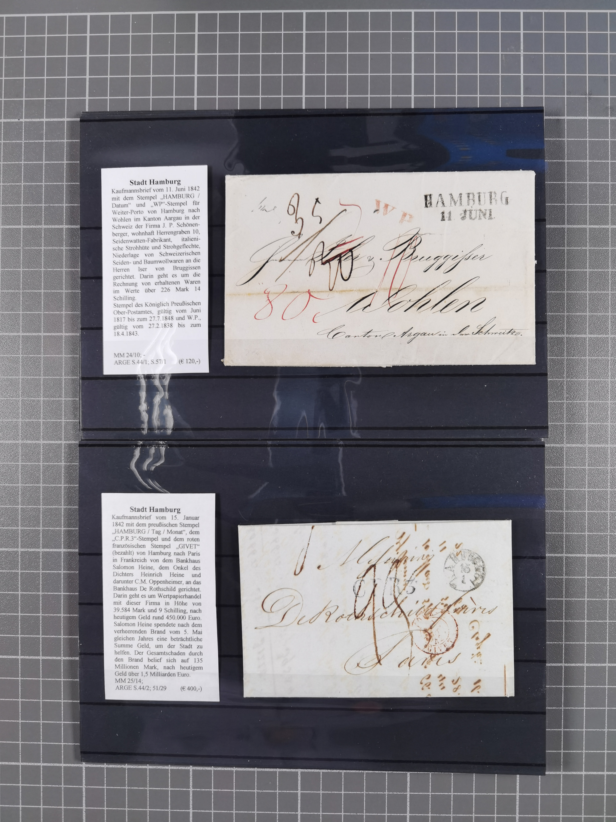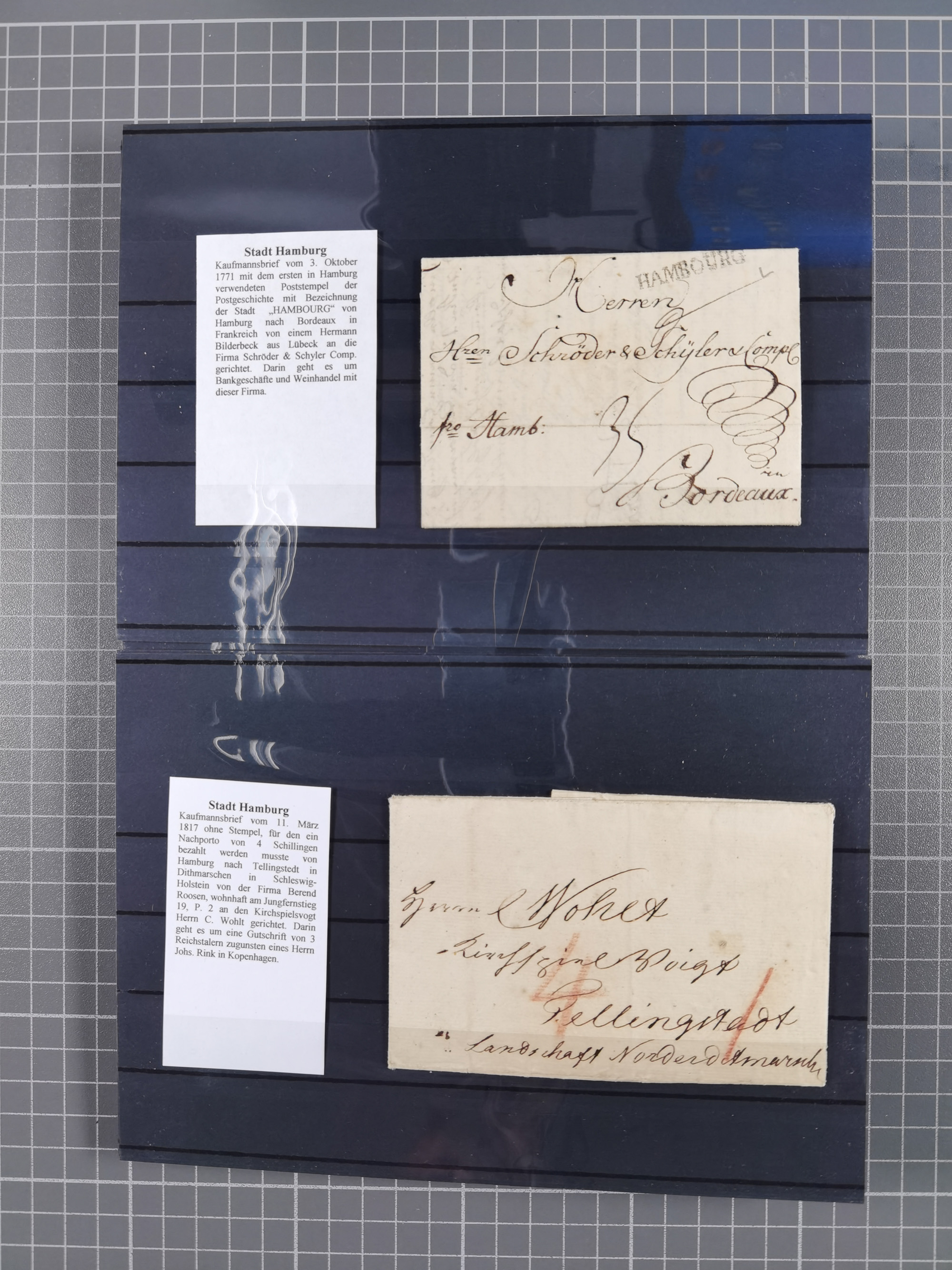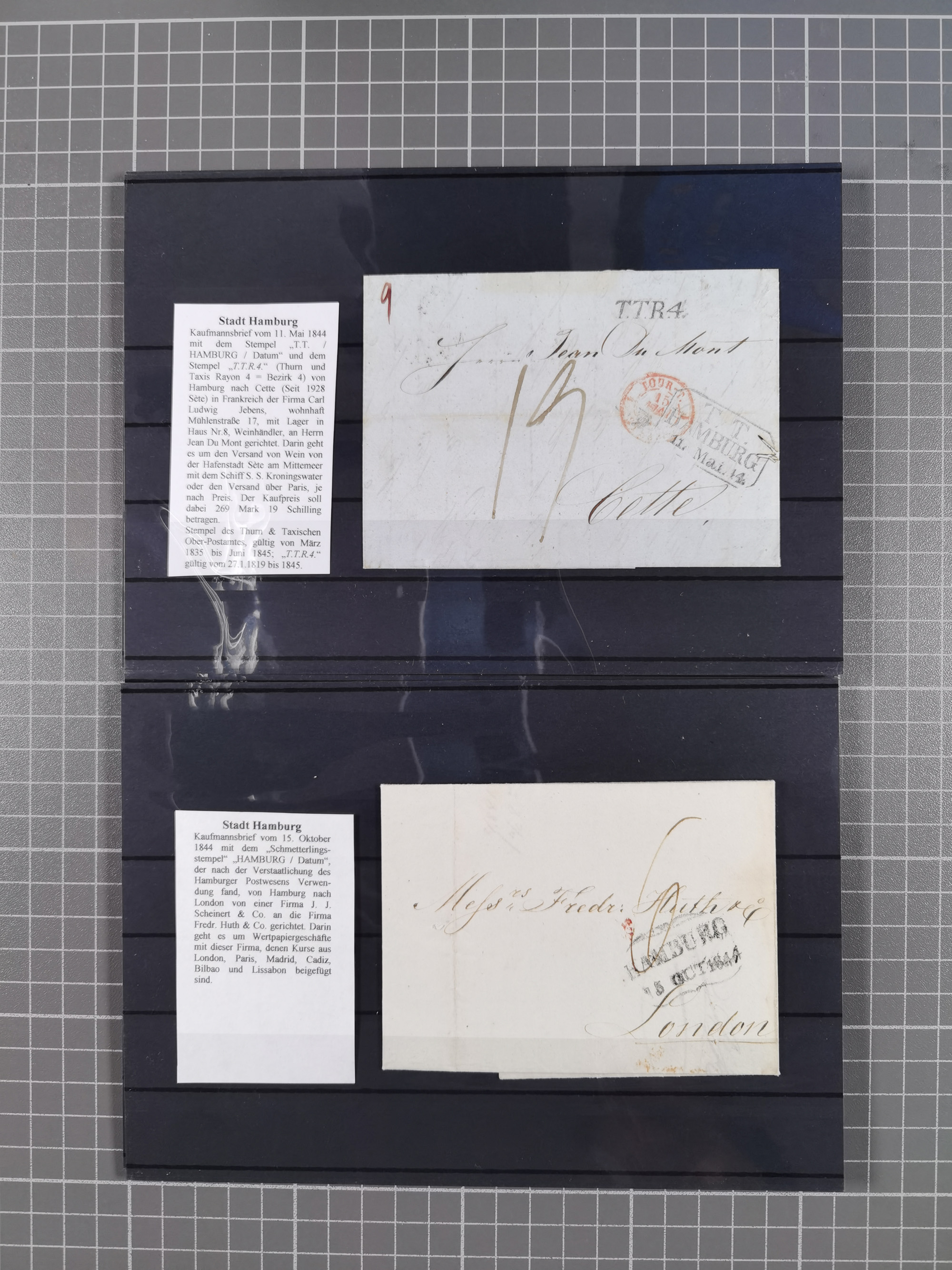 1785/1843 (ca.), kleine Partie mit 12 Vorphila-Briefe, dabei “128 HAMBURG” (x2), “T.T. HAMBURG 13 Dec.43.”, etc., meist in sehr guter Erhaltung
